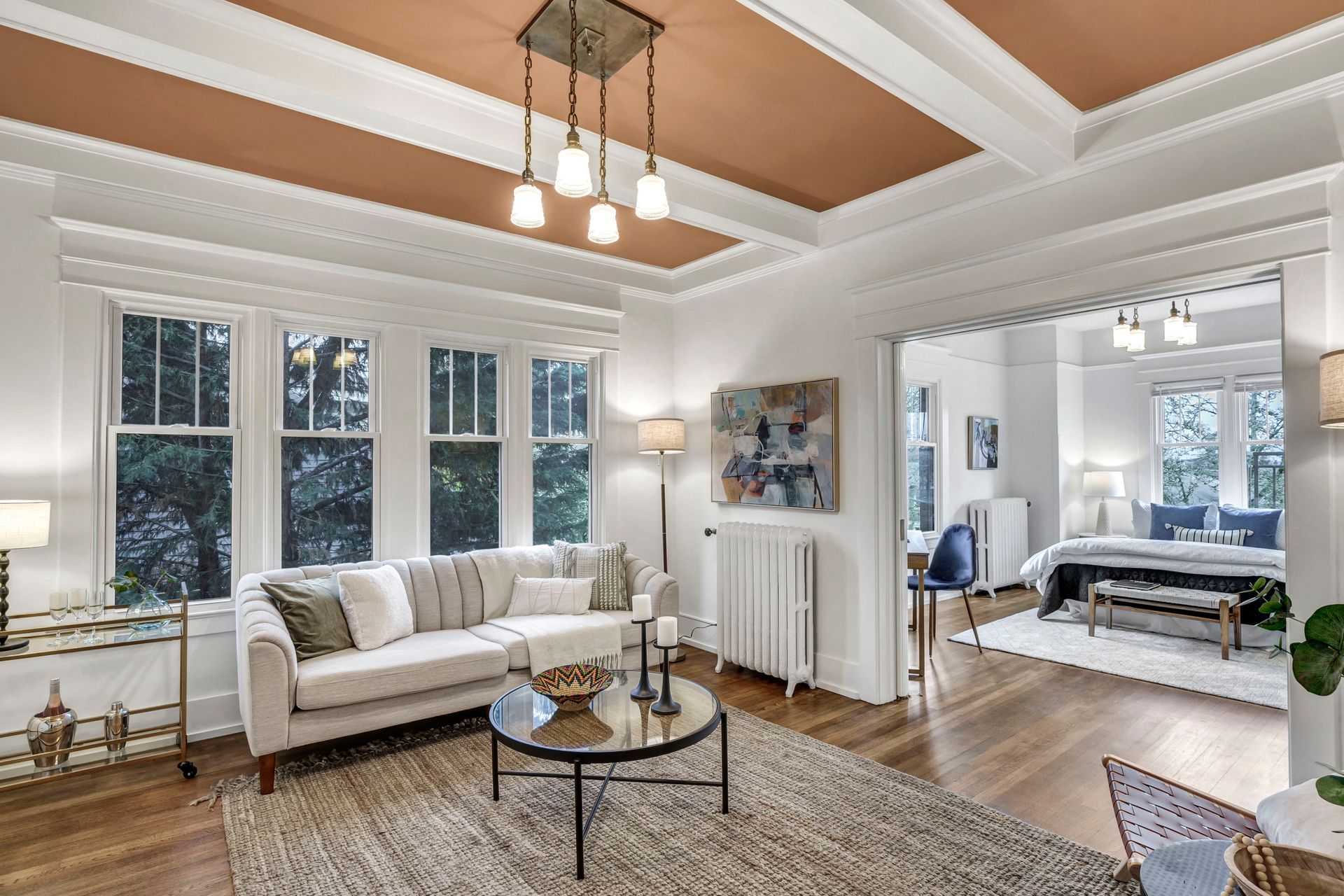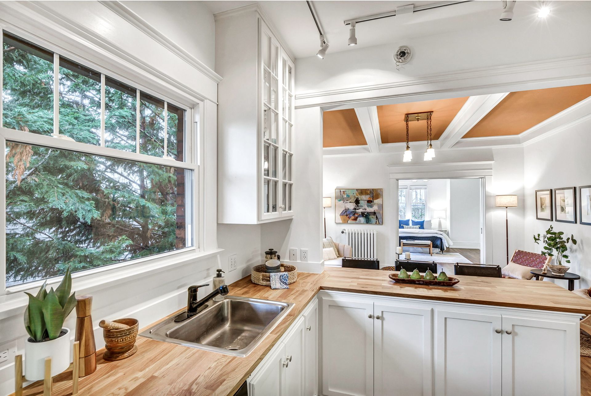 If only these walls could talk. On the market for the first time in three decades, this two bedroom, third floor unit is currently seeking a new owner. The Gables is a proud symbol of a bygone century adjacent to one of the most vibrant streets in Seattle: 15th Avenue. Host guests for appetizers and drinks served from your open kitchen/living room before popping over to one of the restaurants a stone’s throw away. Claim a spot in the community garden for homegrown fruits and veggies (check availability with board). Unit 19 features original light fixtures, newly refinished hardwood floors, over nine-foot ceilings, in-unit laundry and ample closet space plus basement storage. Weave yourself into the fabric of Seattle history and become a part of The Gables community.