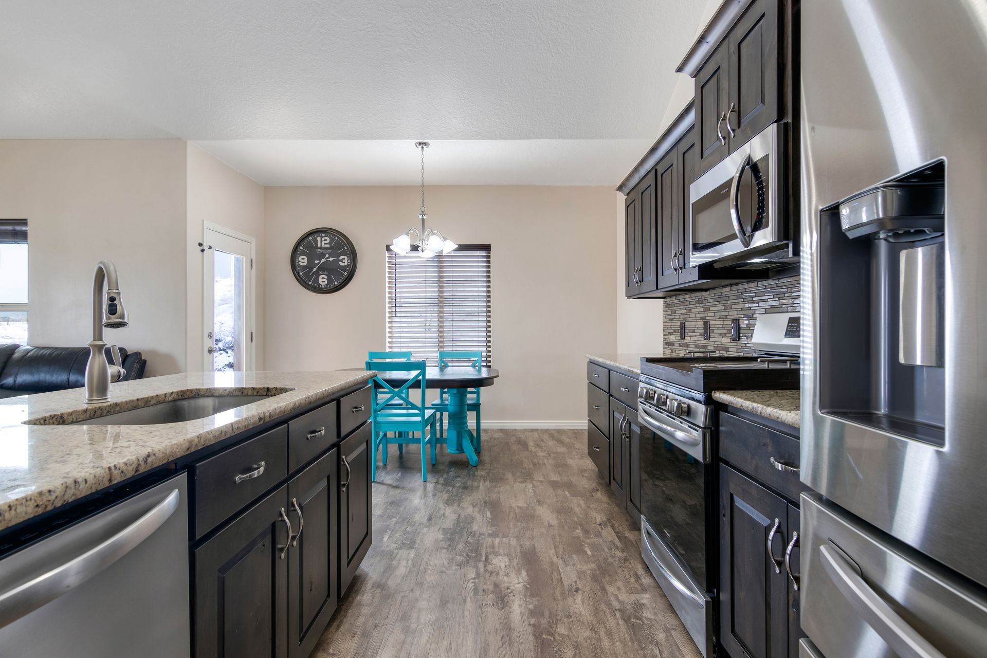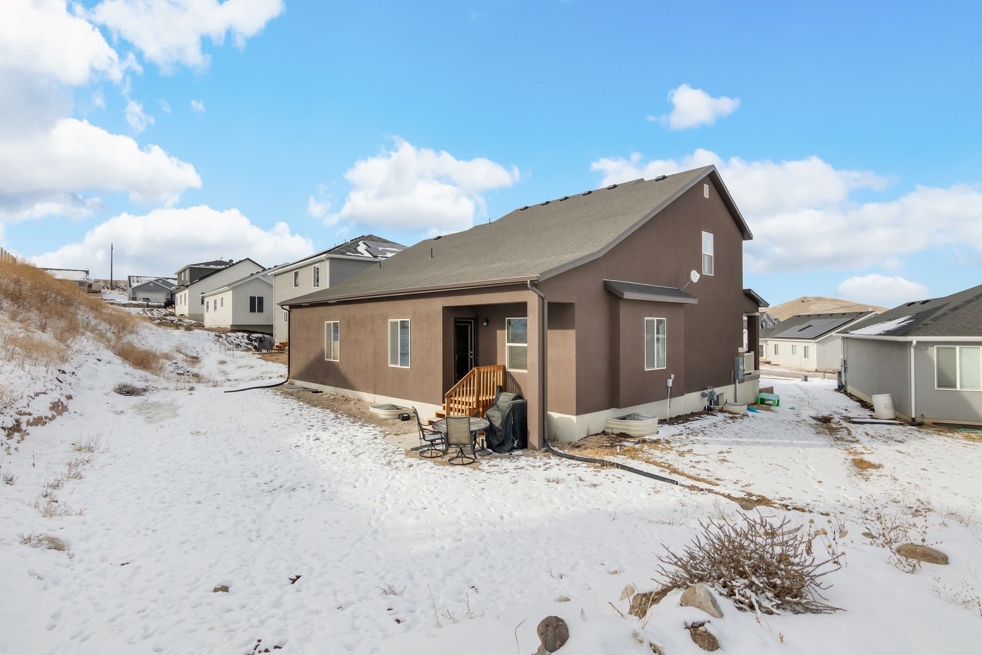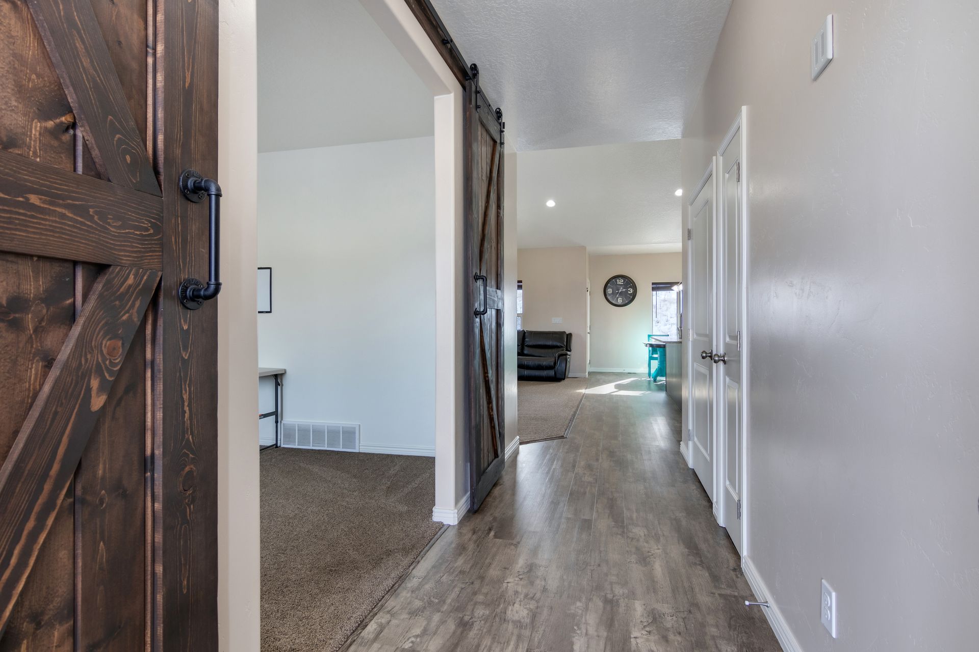 Welcome home! This nearly brand new and gorgeous, spacious home comes with all the bells and whistles including a covered patio, barn doors into your den, a large, open and vaulted family room adjacent to the open kitchen which includes granite, gas stove and range, lots of counter space and a large pantry. Master on the main with a truly expansive walk-in closet and a separate soaking tub and shower. The main floor has two additional spacious bedrooms, bath and laundry. The upstairs comes with an open loft, two more large bedrooms and a bathroom. This home has lots of light and closets! Upgraded carpet and eight-pound pad. Nine-foot ceilings! The basement is huge with lots of space to grow. The lot is amazing! All of this is set in a desirable neighborhood with proximity to great schools.