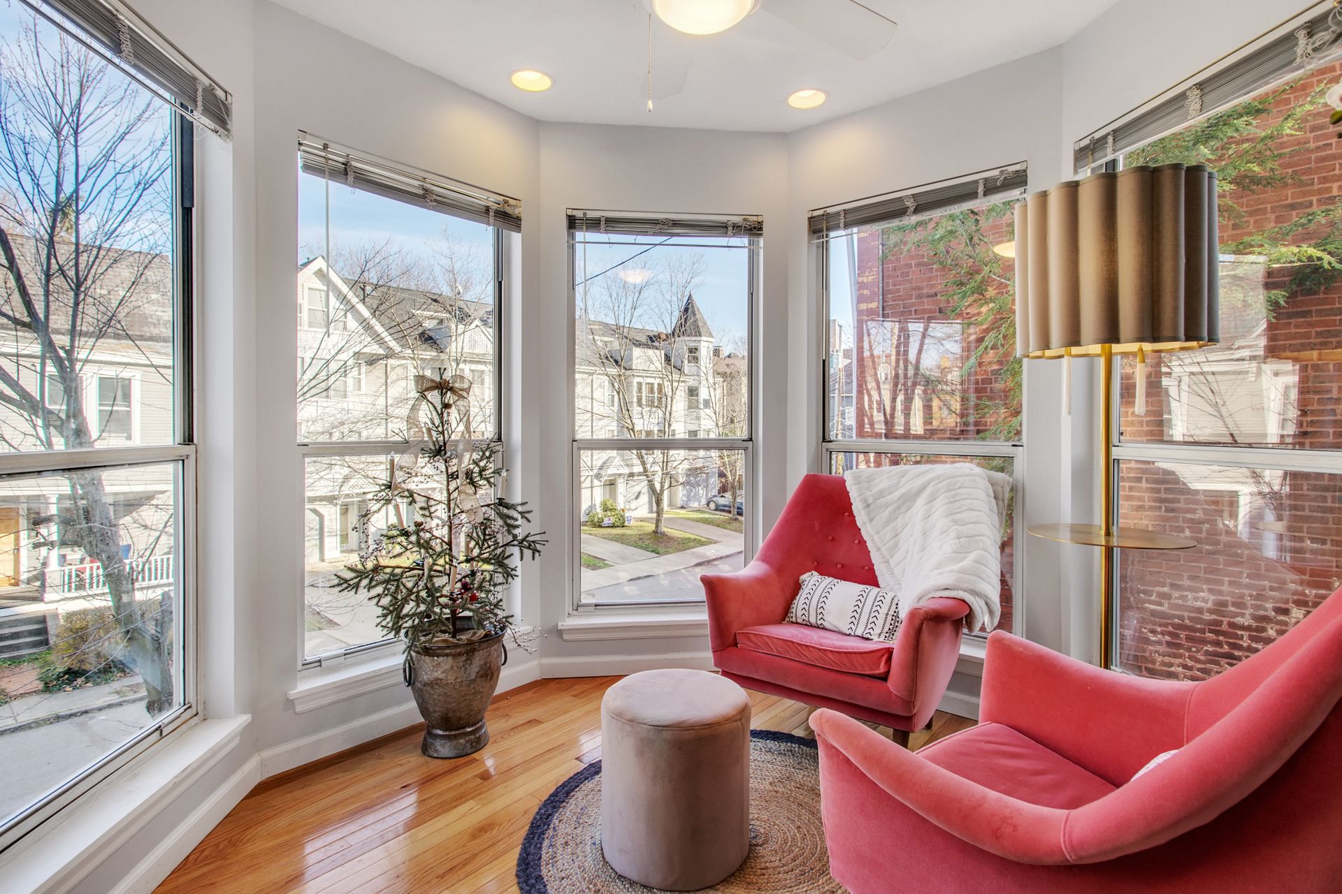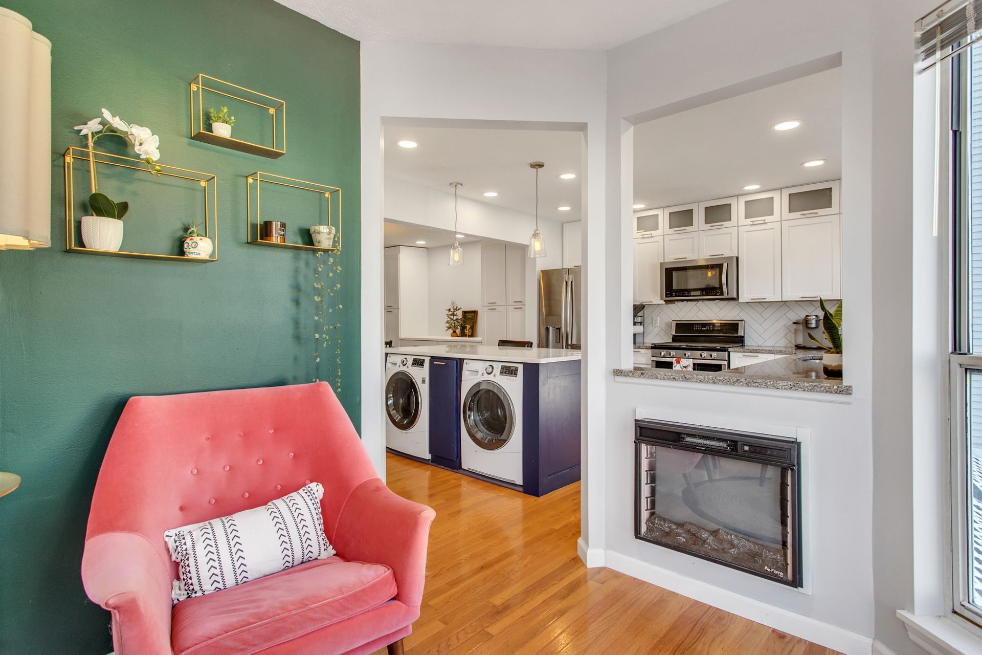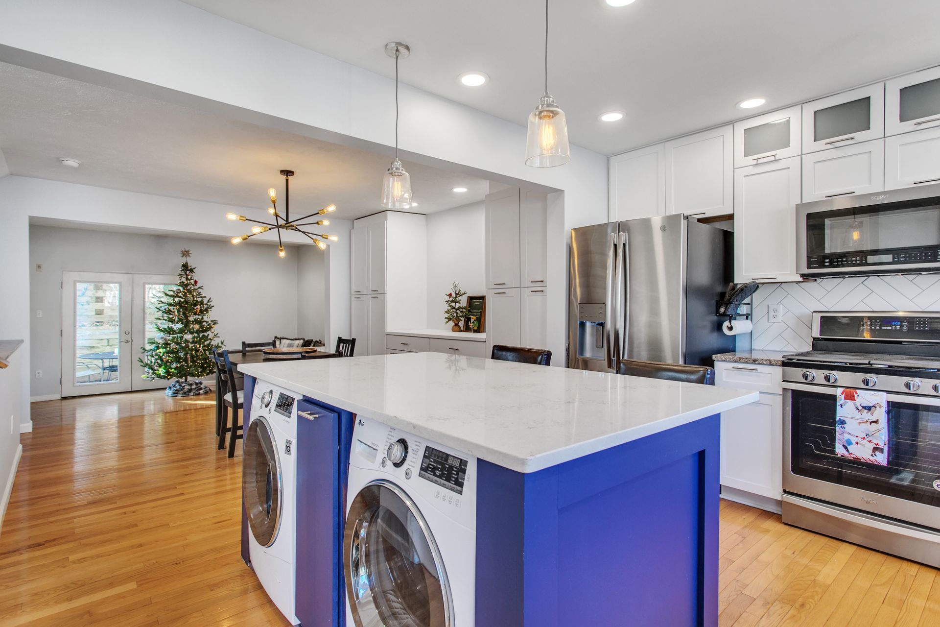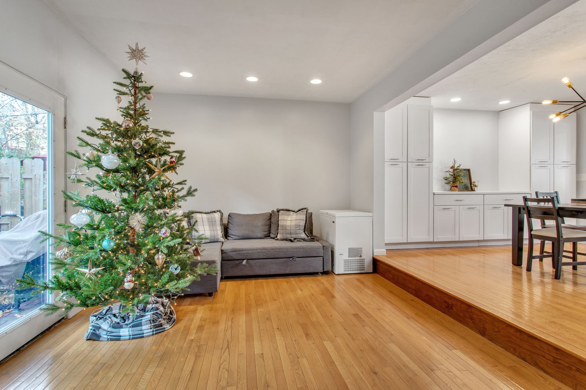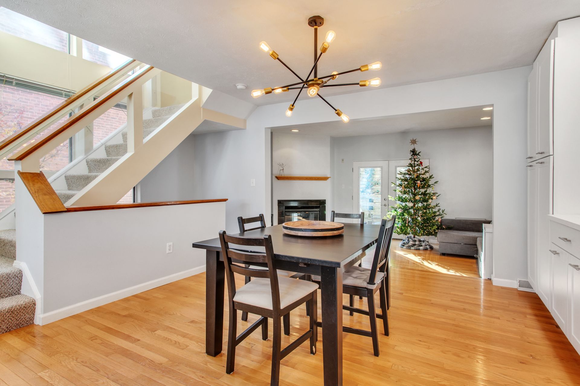 The interior features hardwood floors throughout main level. The white kitchen includes a wine beverage refrigerator and was opened up in 2019 to allow for a massive island. A quaint sitting room/office area was added just off the kitchen and has an abundance of light from the wraparound windows and a fireplace. Enjoy spacious built-in cabinets in the dining room (2020), as well as new hardwood-looking tile in the foyer, which is durable for an entryway.