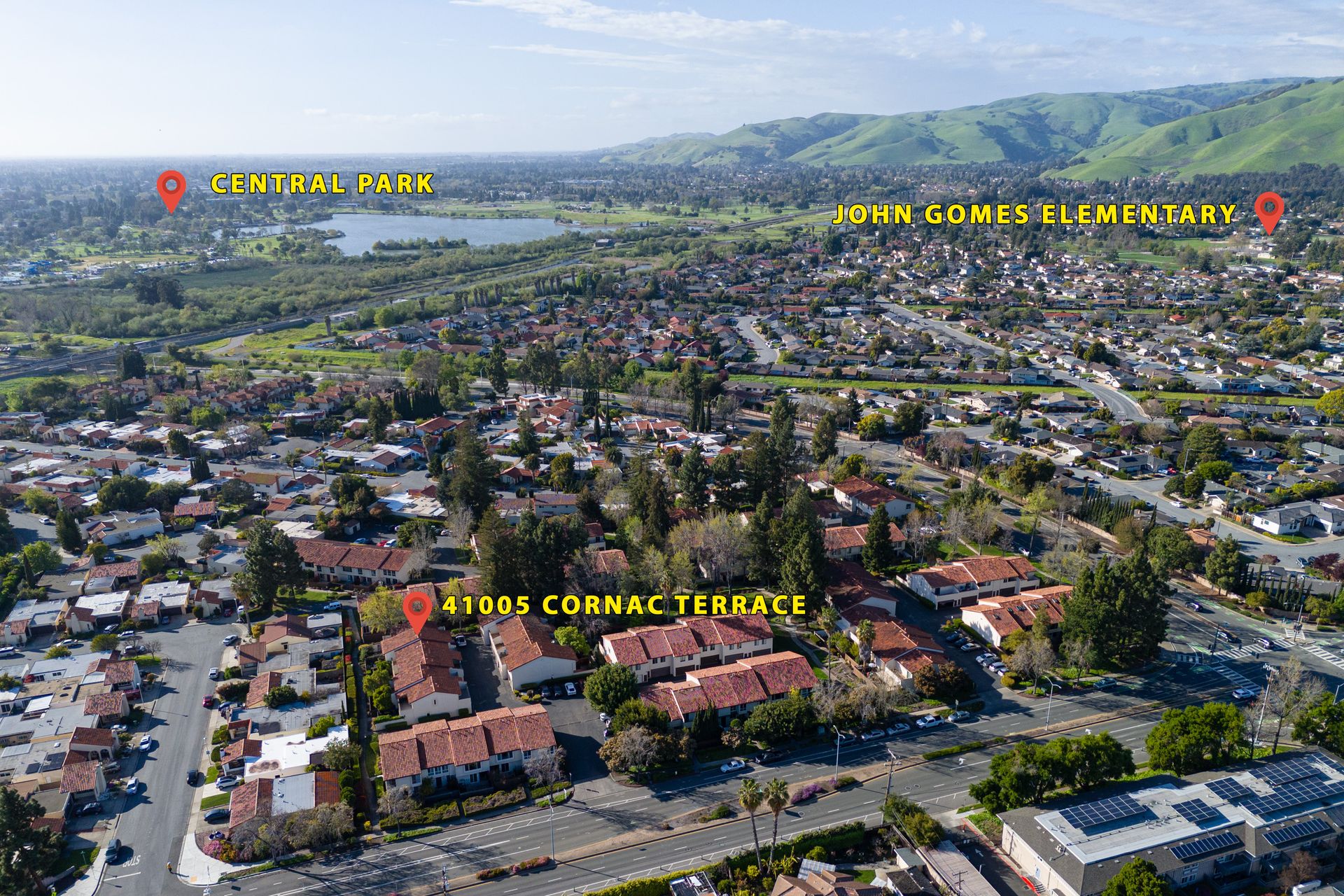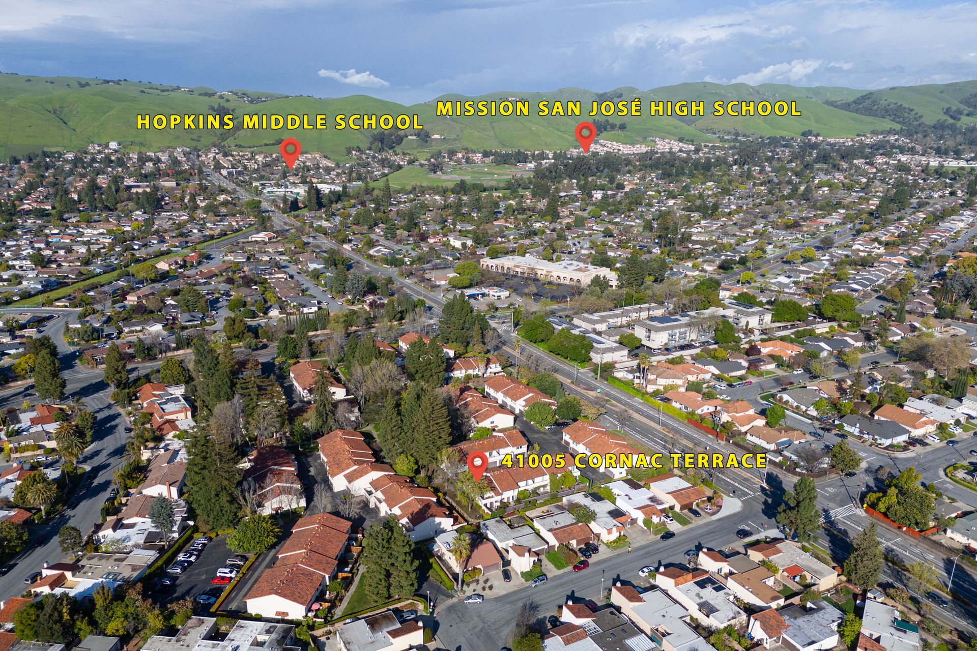 This beautifully maintained Mission San Jose Townhouse, nestled within the highly desirable Mission West community, presents an enticing opportunity for discerning buyers. Boasting a prime location within the renowned Mission San Jose school district, including Gomes Elementary, Hopkins Junior, and Mission San Jose High, it offers a superb educational environment for families. Comprising 2 bedrooms, 1.5 bathrooms, and spanning 1,066 square feet of living space, this townhouse provides a comfortable and functional layout. The convenience of a 2-car attached garage enhances the property's appeal, while its tranquil corner position ensures privacy and serenity. The street level offers a spacious living room adorned with hardwood floors and illuminated by natural light streaming through a sliding glass door leading to the inviting front patio. A recently upgraded kitchen awaits culinary enthusiasts, featuring maple hardwood cabinets, sleek quartz countertops, and brand-new stainless-steel appliances. Upstairs, two generously sized bedrooms offer peaceful retreats, complemented by an updated full bathroom. Each bathroom boasts its balcony, adding a touch of outdoor relaxation to the living experience. Low HOA dues cover water and exterior maintenance.