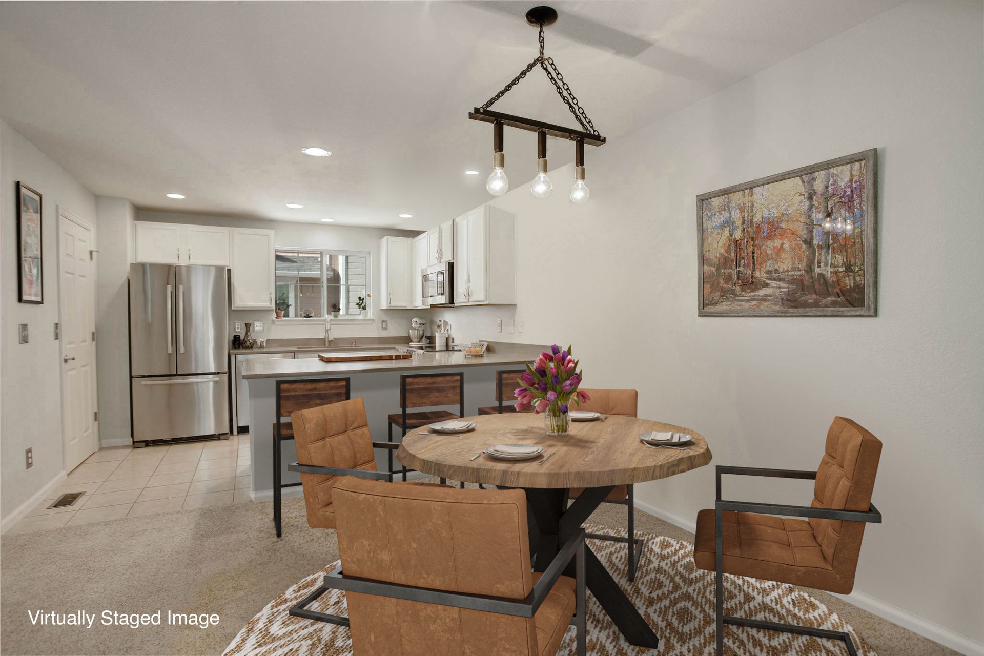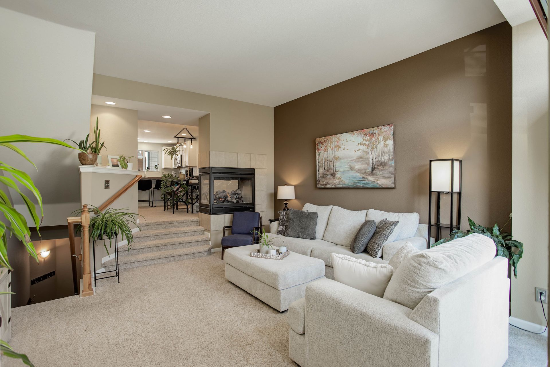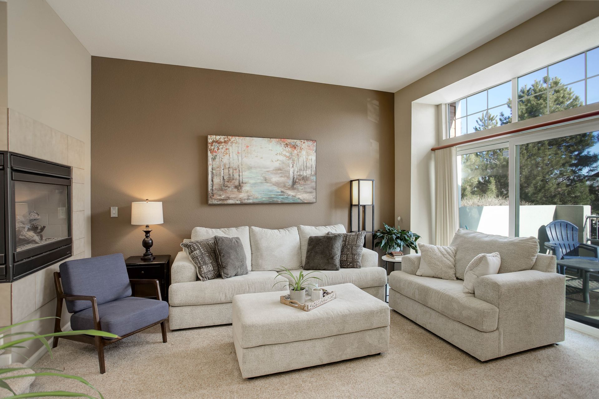 Beautiful two bedroom, three bath townhome in the sought after Reserve at Renaissance community in SW Longmont. This well maintained home features an open and inviting living area on the main level with a double-sided gas fireplace that can be enjoyed in both the living and dining rooms. The living room opens to a private front patio via a sliding glass door that brings in an abundance of natural light and allows for seamless indoor/outdoor living. Perfect for enjoying your morning coffee or a glass of wine on a beautiful Colorado evening. The updated kitchen boasts quartz counter tops, stainless steel Bosch appliances, freshly painted cabinets and a walk-in pantry. The main level half bath also features a matching quartz countertop. The upper level has two spacious bedrooms each with their own ensuite full bathrooms and a convenient upstairs laundry area. The large two car attached (tandem) garage allows for a secure entry, has plenty of room for storage and includes a utility sink and washer/dryer hookups with an additional washer/dryer set included. This contemporary townhome is designed for low maintenance living conveniently located with easy access to Boulder, Niwot and Old Town Longmont in close proximity to parks, shopping, dining, hiking and biking trails.