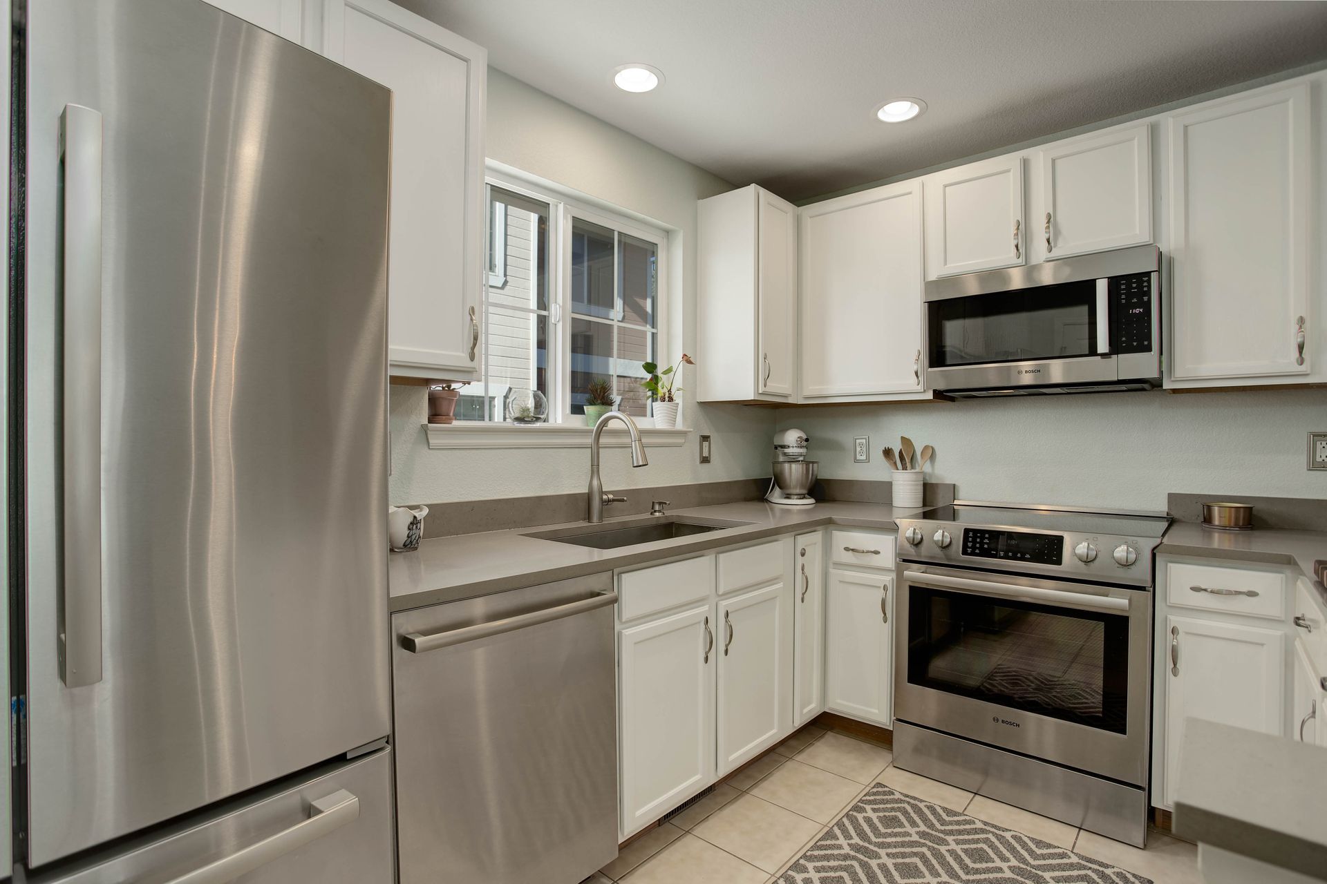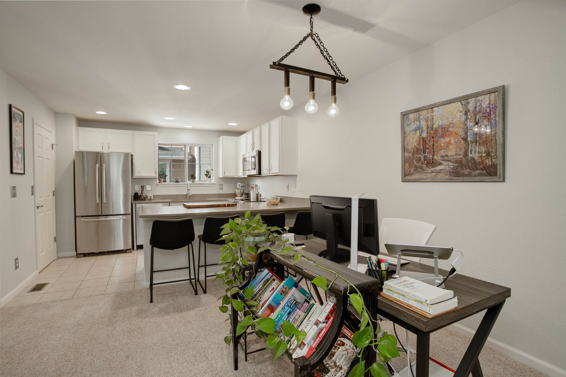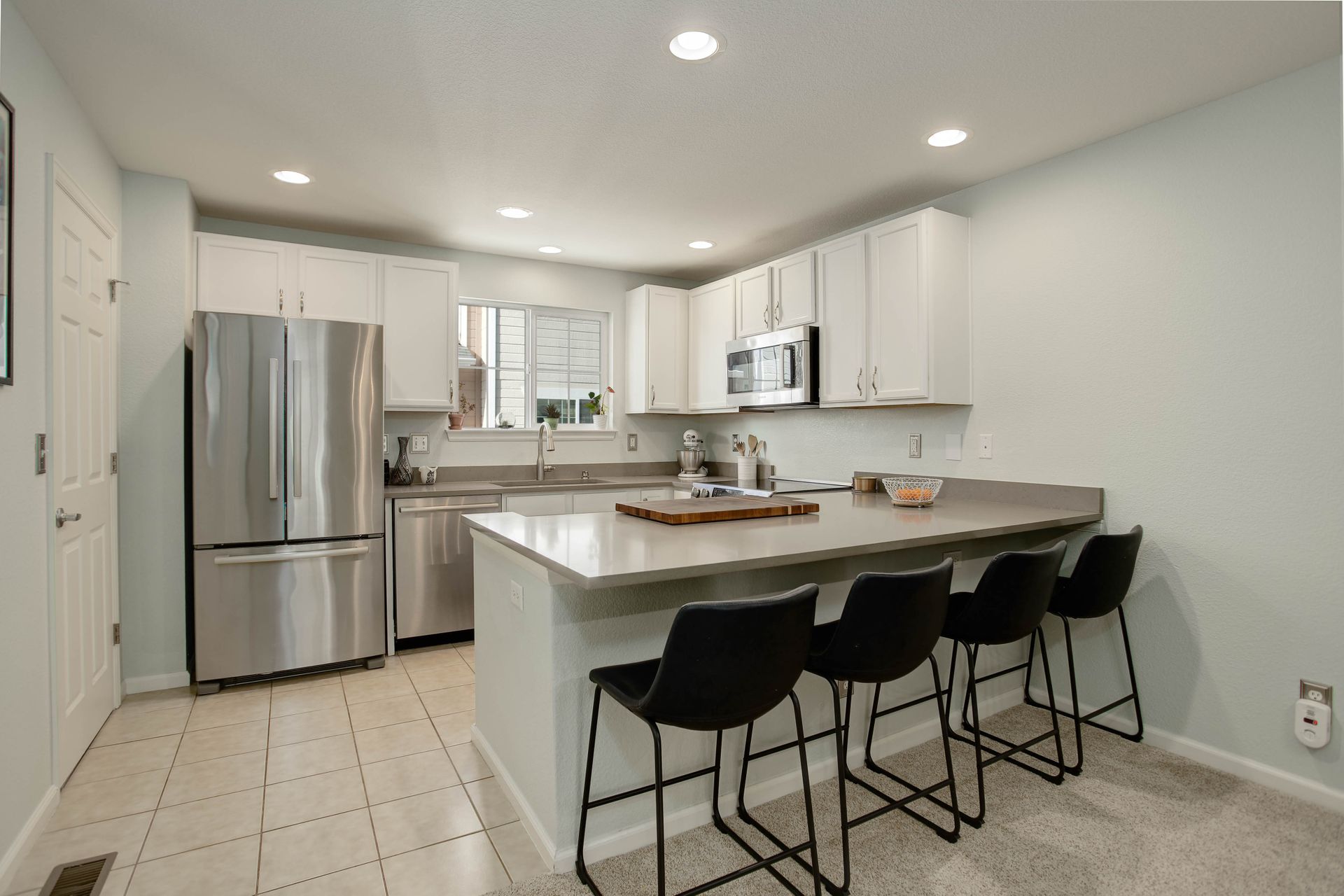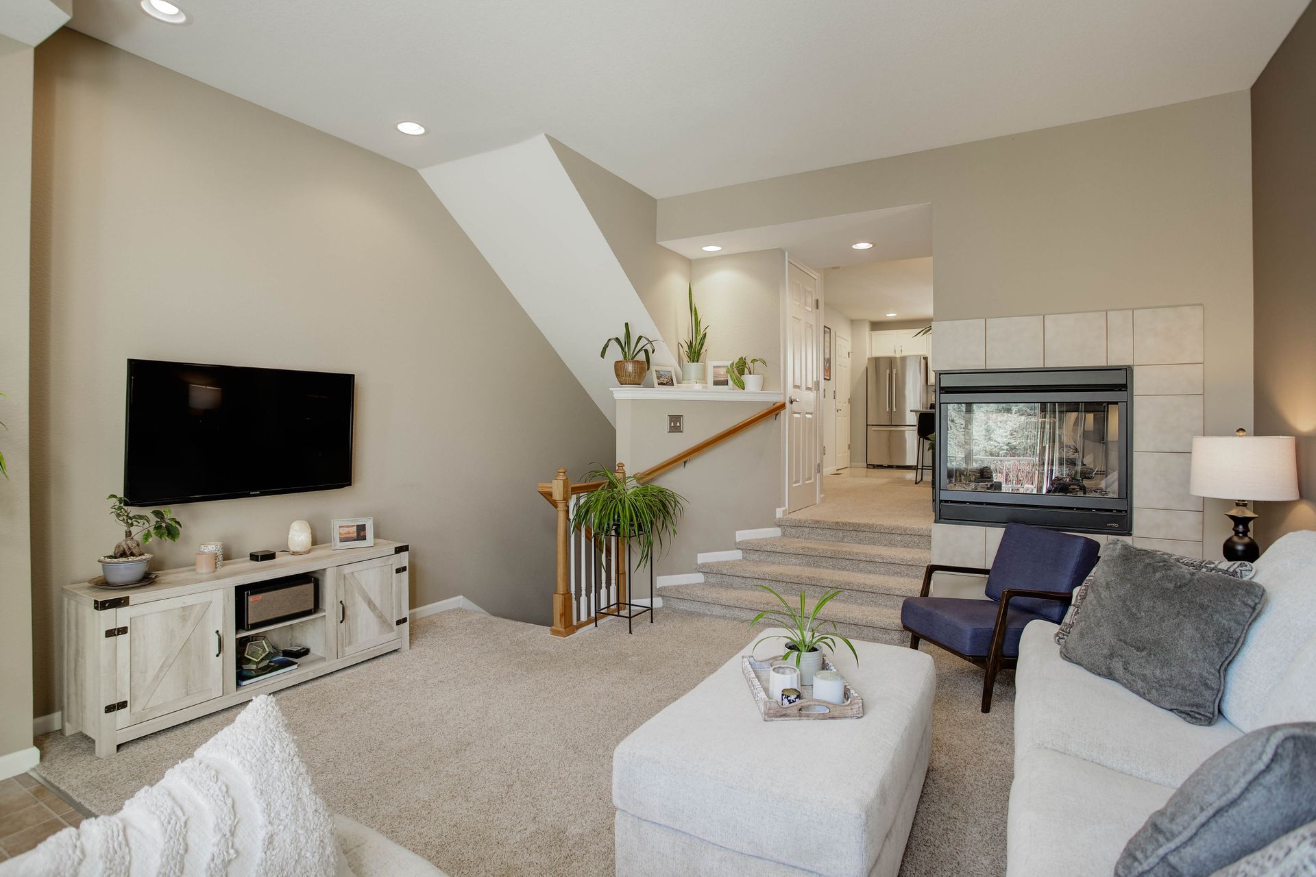 Beautiful two bedroom, three bath townhome in the sought after Reserve at Renaissance community in SW Longmont. This well maintained home features an open and inviting living area on the main level with a double-sided gas fireplace that can be enjoyed in both the living and dining rooms. The living room opens to a private front patio via a sliding glass door that brings in an abundance of natural light and allows for seamless indoor/outdoor living. Perfect for enjoying your morning coffee or a glass of wine on a beautiful Colorado evening. The updated kitchen boasts quartz counter tops, stainless steel Bosch appliances, freshly painted cabinets and a walk-in pantry. The main level half bath also features a matching quartz countertop. The upper level has two spacious bedrooms each with their own ensuite full bathrooms and a convenient upstairs laundry area. The large two car attached (tandem) garage allows for a secure entry, has plenty of room for storage and includes a utility sink and washer/dryer hookups with an additional washer/dryer set included. This contemporary townhome is designed for low maintenance living conveniently located with easy access to Boulder, Niwot and Old Town Longmont in close proximity to parks, shopping, dining, hiking and biking trails.