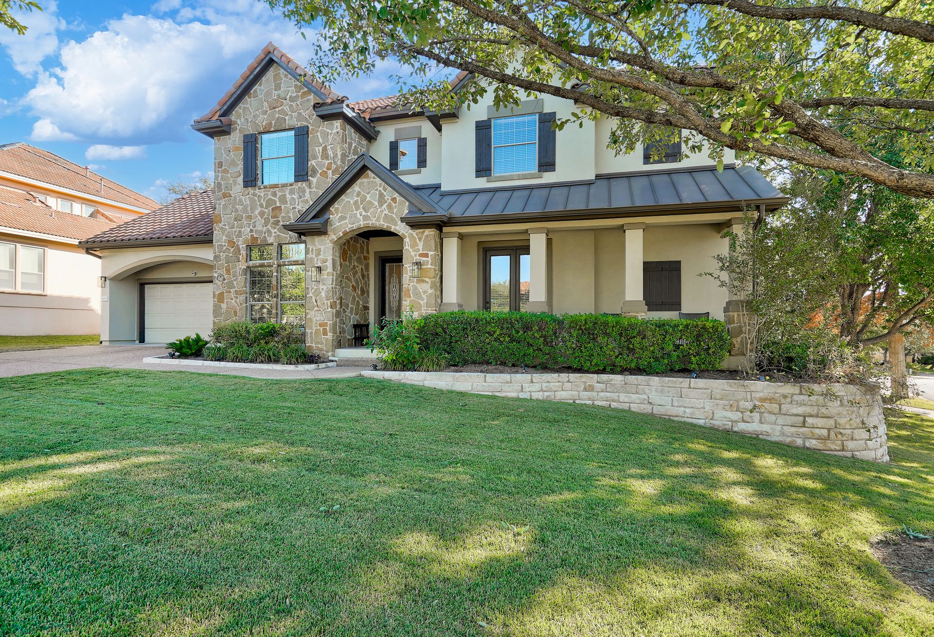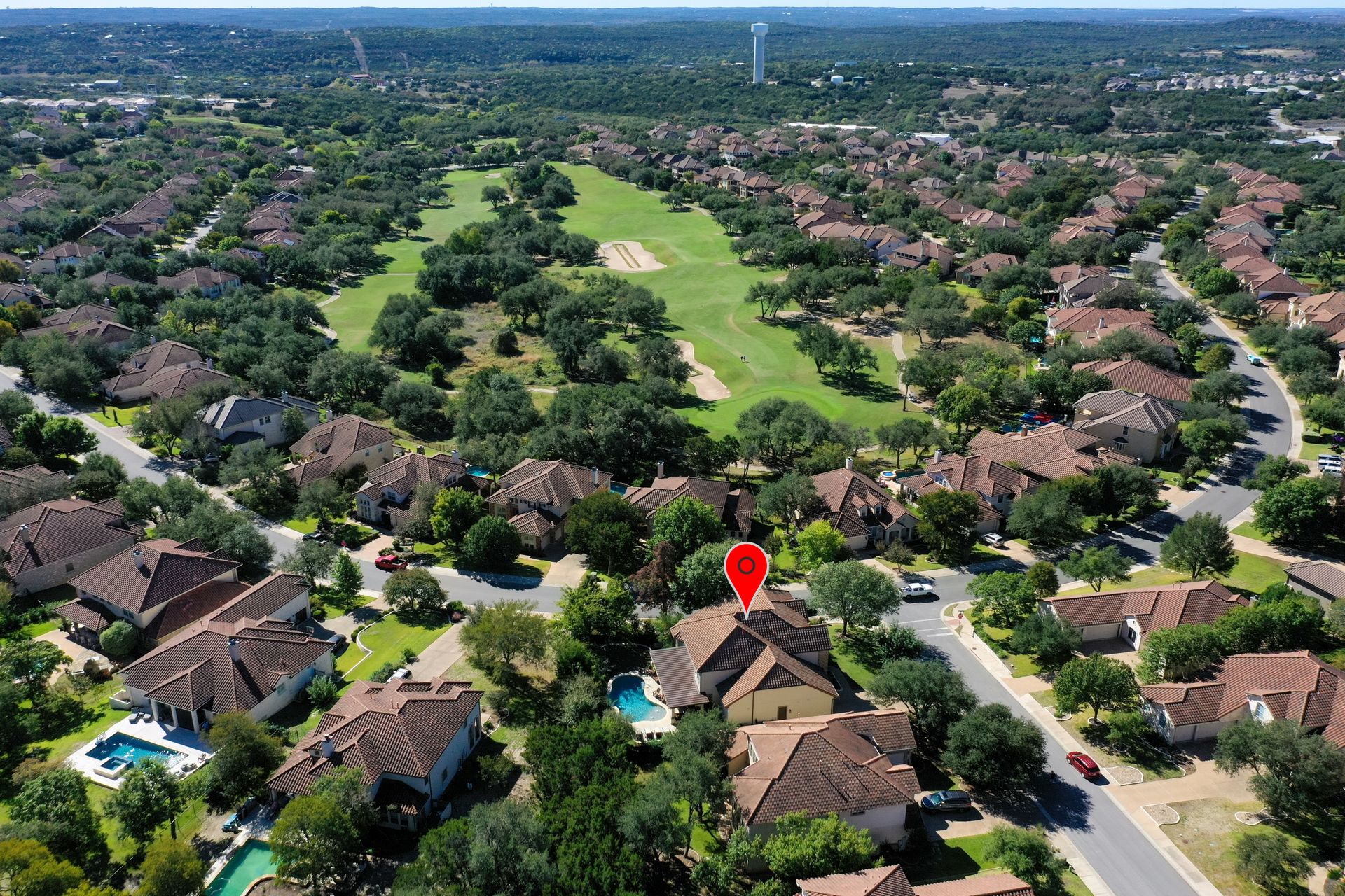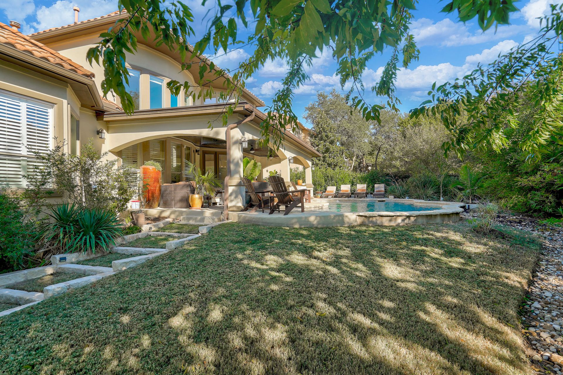 Beautiful 5 bedroom, 4 bath, 3 car garage home has been impeccably maintained in the prestigious Falconhead community. Located on a cul-de-sac with a private and fenced backyard. You are welcomed into a grand entry foyer with a chandelier and dramatic dual staircases. The great room with high ceilings provides plenty of natural light from the wall of windows which allows for viewing the spacious outdoor seating area with a covered patio, and a custom-built pool with beautiful tile accents and water features. Unwind in the peaceful outdoor living space which is truly an oasis and includes a granite outdoor kitchen. Inside, the newly remodeled kitchen is a gourmet chef’s dream with a new gas range cooktop, quartz countertops, a workstation sink, dishwasher, garbage disposal, under-cabinet lighting, and recessed lighting. The oversized island and breakfast room provide the perfect space for family and friends to gather, and it opens into the great room with automatic electric shades that open and closes with the press of a button. The luxurious spacious primary suite overlooks the pool and yard from the bay window. The primary bathroom has been fully remodeled and provides a spa-like environment with a beautiful stand-alone soaking tub, a walk-in shower, dual sink, and a large walk-in closet. The home also has a dedicated office off the entry with wood floors that could also double as a 5th bedroom. Upstairs, there is a large media room that provides an exceptional movie-watching experience. The office nook has built-in shelves and cabinets. There are three upstairs bedrooms; two share a jack-and-jill bathroom, each with tile flooring and coordinated accent tile. The third bedroom has a full bathroom outside in the private hallway. This serene neighborhood has a great golf course, playground, and parks within walking distance. Close to Bee Cave shops and fabulous restaurants. Outstanding Lake Travis ISD. Low taxes and low utilities!