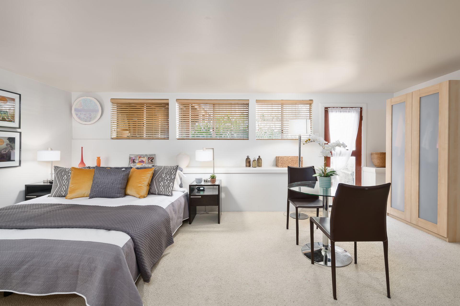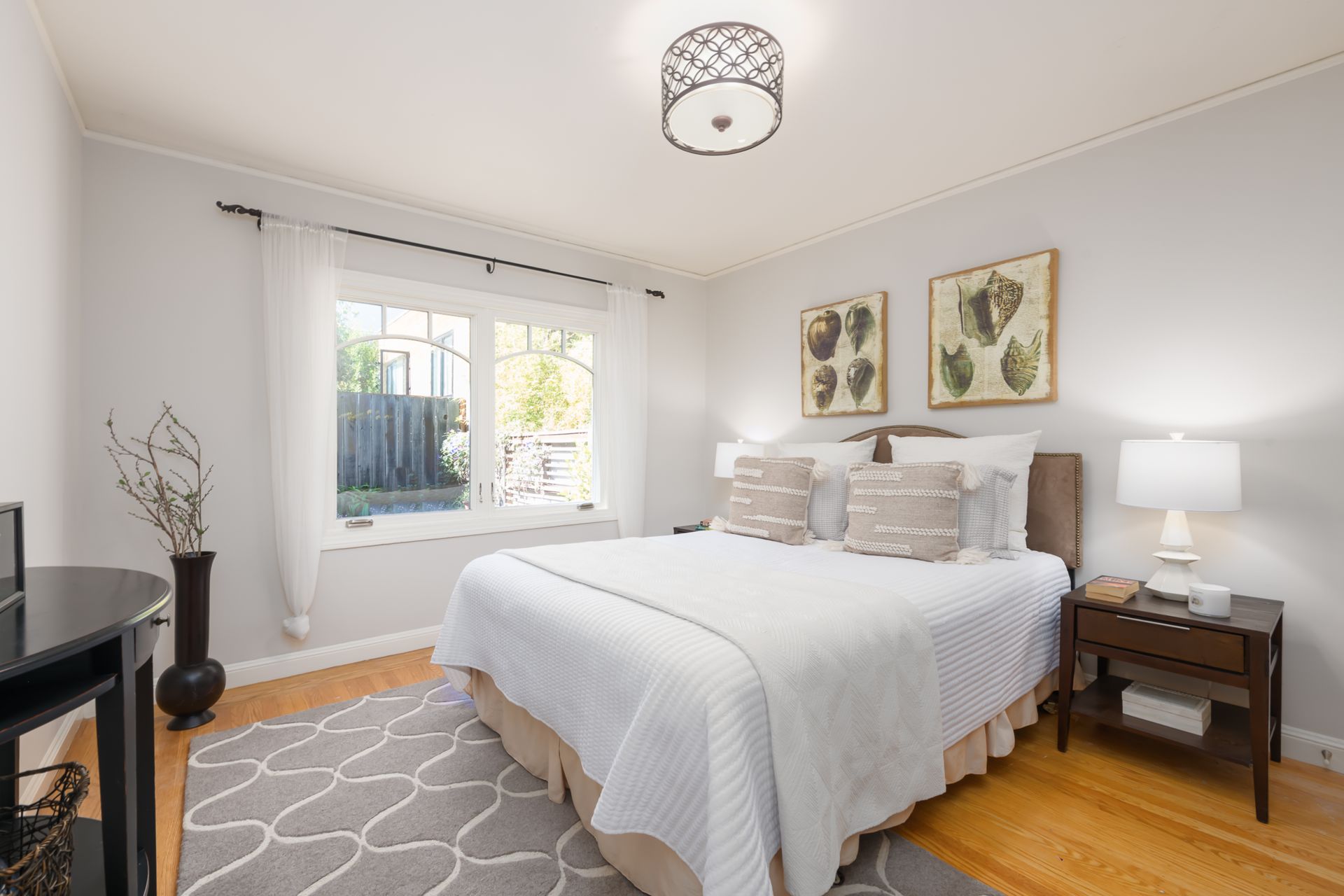 This Potrero Hill North Slope two bedroom, one bath home is where sci-fi legend Frank Herbert wrote his masterpiece “Dune”! Original charm, complemented by updates, creates the ideal place to call home--and feel the creative vibe! Four upstairs skylights bathe the eat-in kitchen, dining, hall and bath with natural light. A tiled bathroom features a separate shower and tub with heated towel rack plus stunning, newly installed feature wall. The main bedroom enjoys a walk-in closet and overlooks the serene two-level rear garden. A second bedroom/office opens onto the rear deck, providing ample natural light. The backyard offers barbecue and dining areas with plantings and steps down to a lower level. This registered Airbnb boasts a wet-bar, private bath and plenty of room for bed, dining and seating areas. The one-car garage has abundant storage plus a side-by-side washer and dryer. This desirable, flat block enjoys easy parking and stunning views. Head to 18th or 20th Street for coffee, restaurants, bars, groceries and shops. Welcome to your new home!
