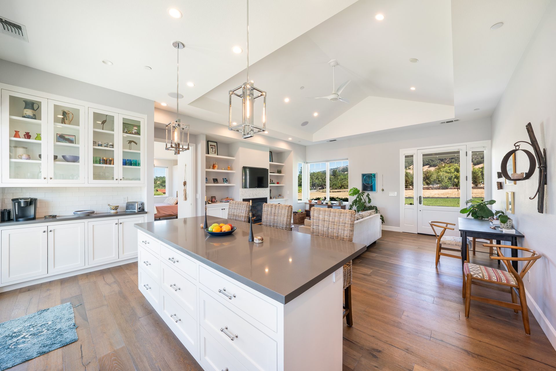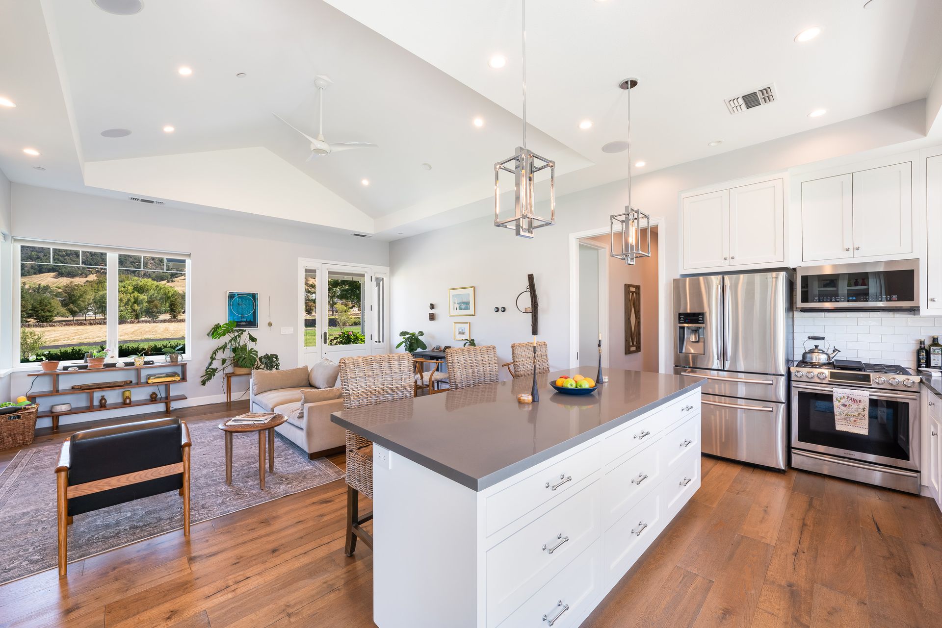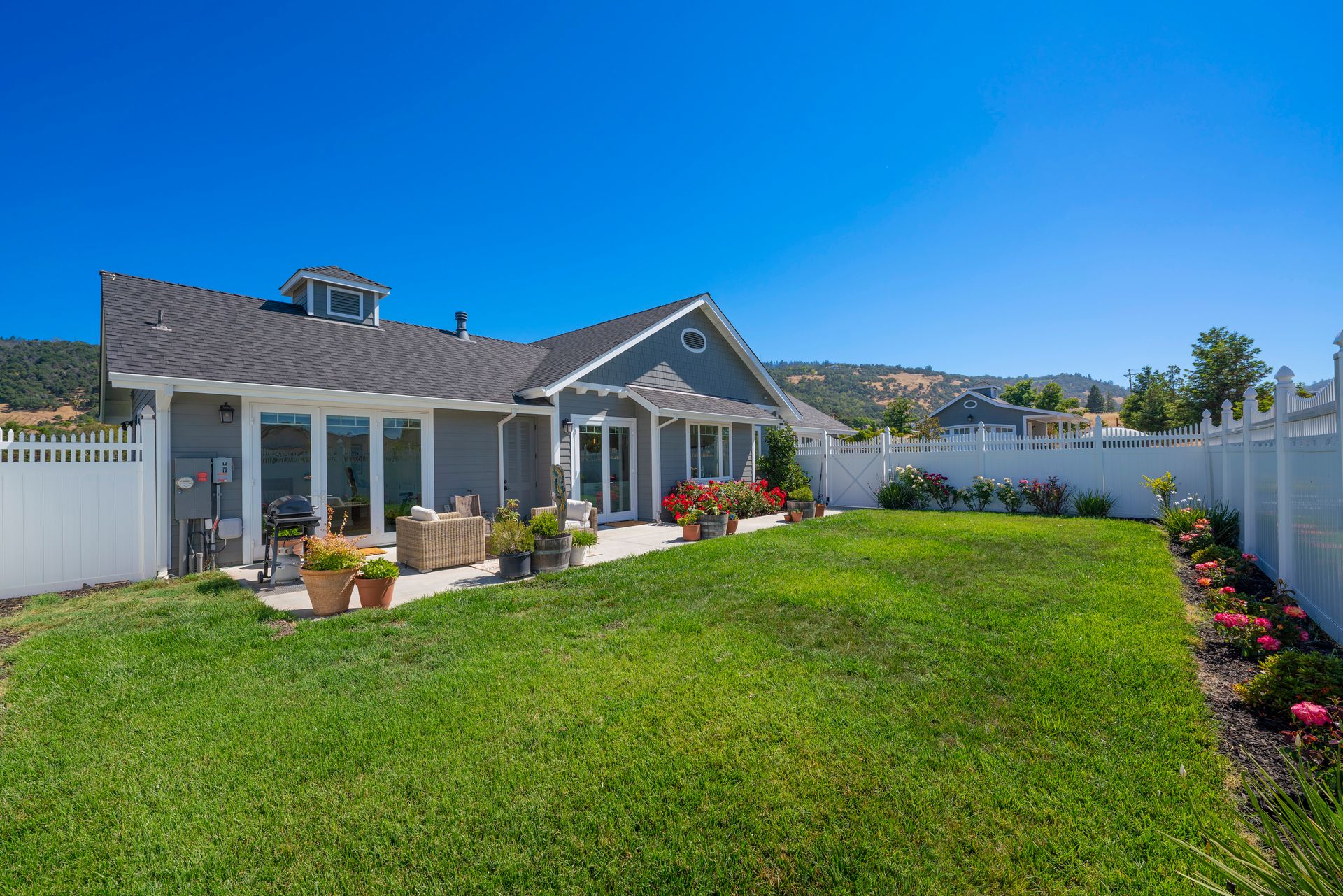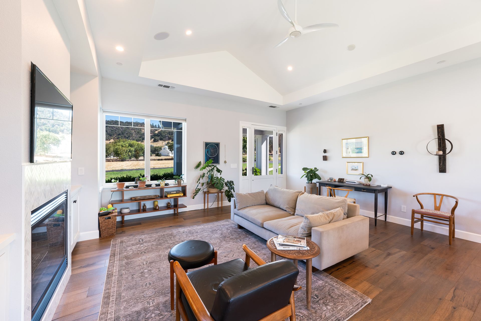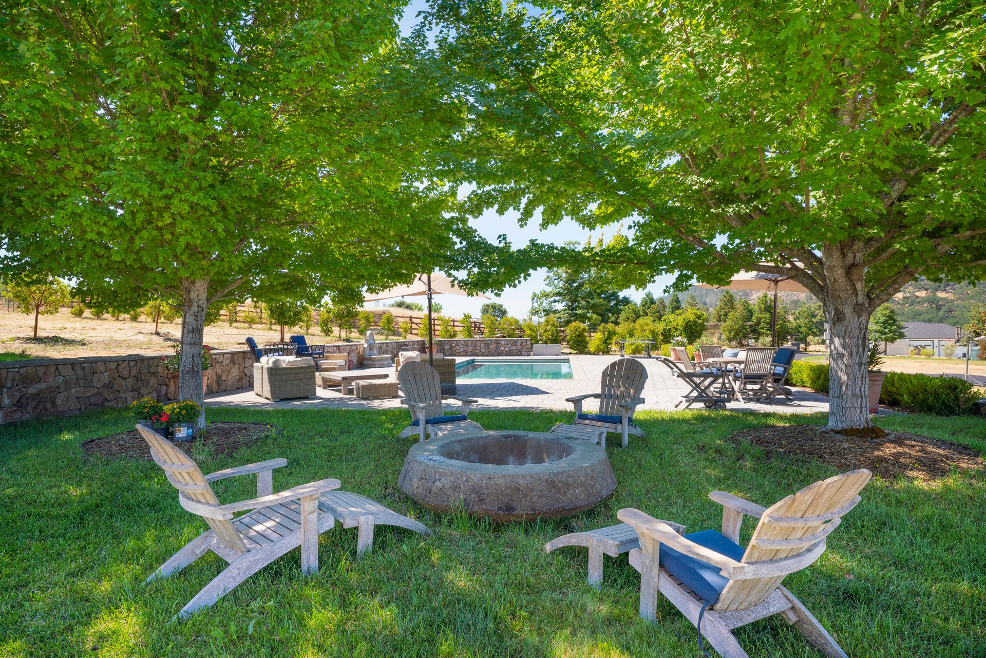 Beautiful 5-acre gated Wine Country estate property with a 1,200 square foot additional dwelling unit built in 2018 featuring 2 bedrooms, 2 full bathrooms, a fenced back yard, an attached 2-car garage, and a detached 2-car garage. An open floor plan great room boasts a vaulted ceiling, a gas fireplace, and French doors leading to the patio, extending the living area, and providing seamless indoor-outdoor flow. An open concept kitchen is highlighted by a center island and Silestone quartz counter tops. Prepare meals surrounded by beauty and functionality, as natural light pours in through the large windows, offering picturesque views of the surrounding hills and vineyards. Additional property features include a large inground pool with an expansive paver pool deck, built-in grill with granite countertops and sink, charming old-world potter’s shed and greenhouse, large-fenced garden area with raised stone garden beds, a French lavender garden with a stunning fountain, custom-designed chicken coop, large concrete firepit for special gatherings, and much more. Flat usable land with room for horses or vineyards offers endless possibilities while just minutes to town. This stunning Wine Country property is the opportunity to build the main house of your dreams, completing your resort-style estate.