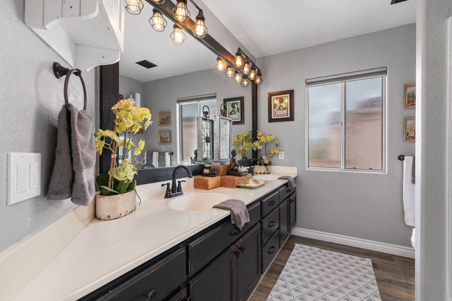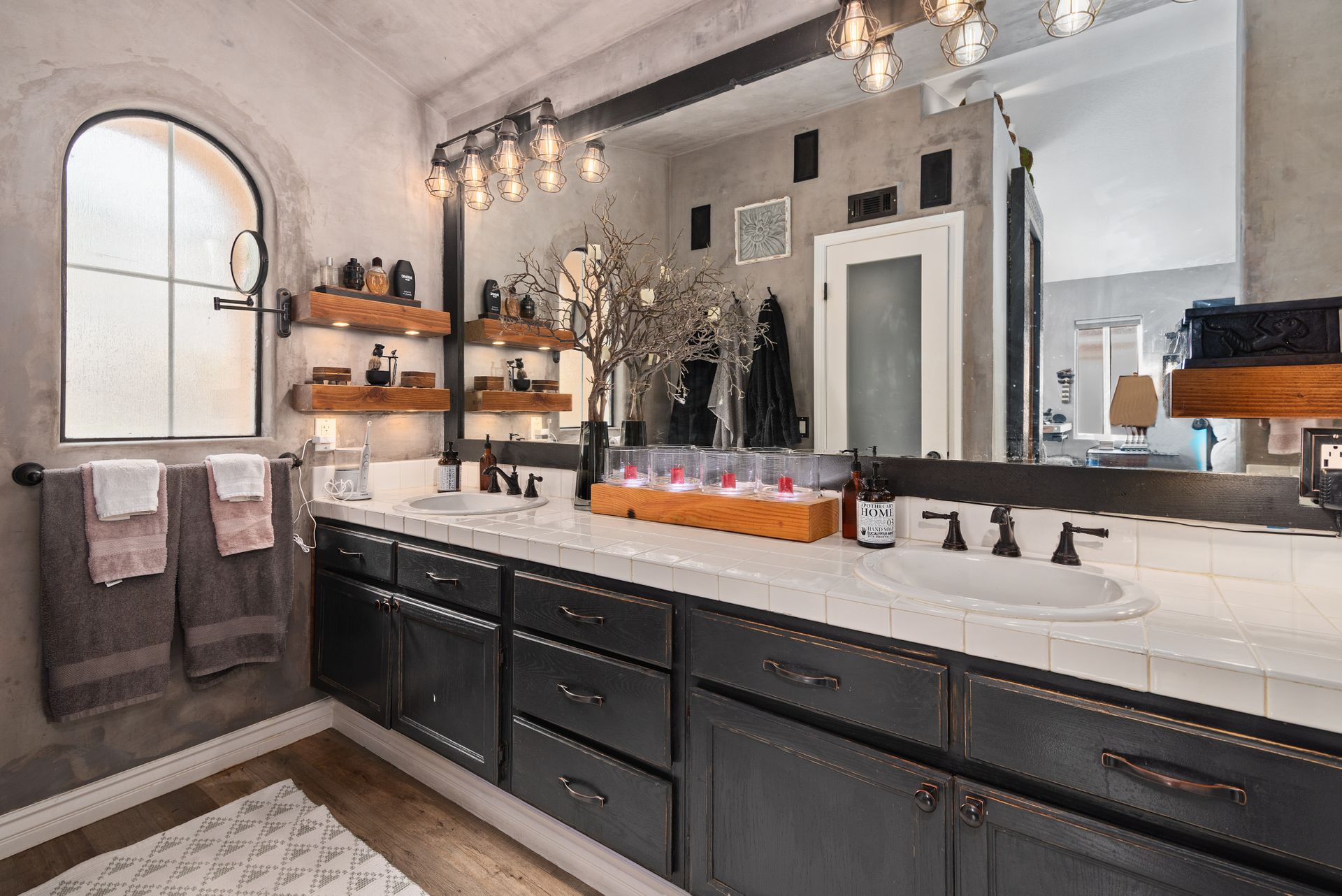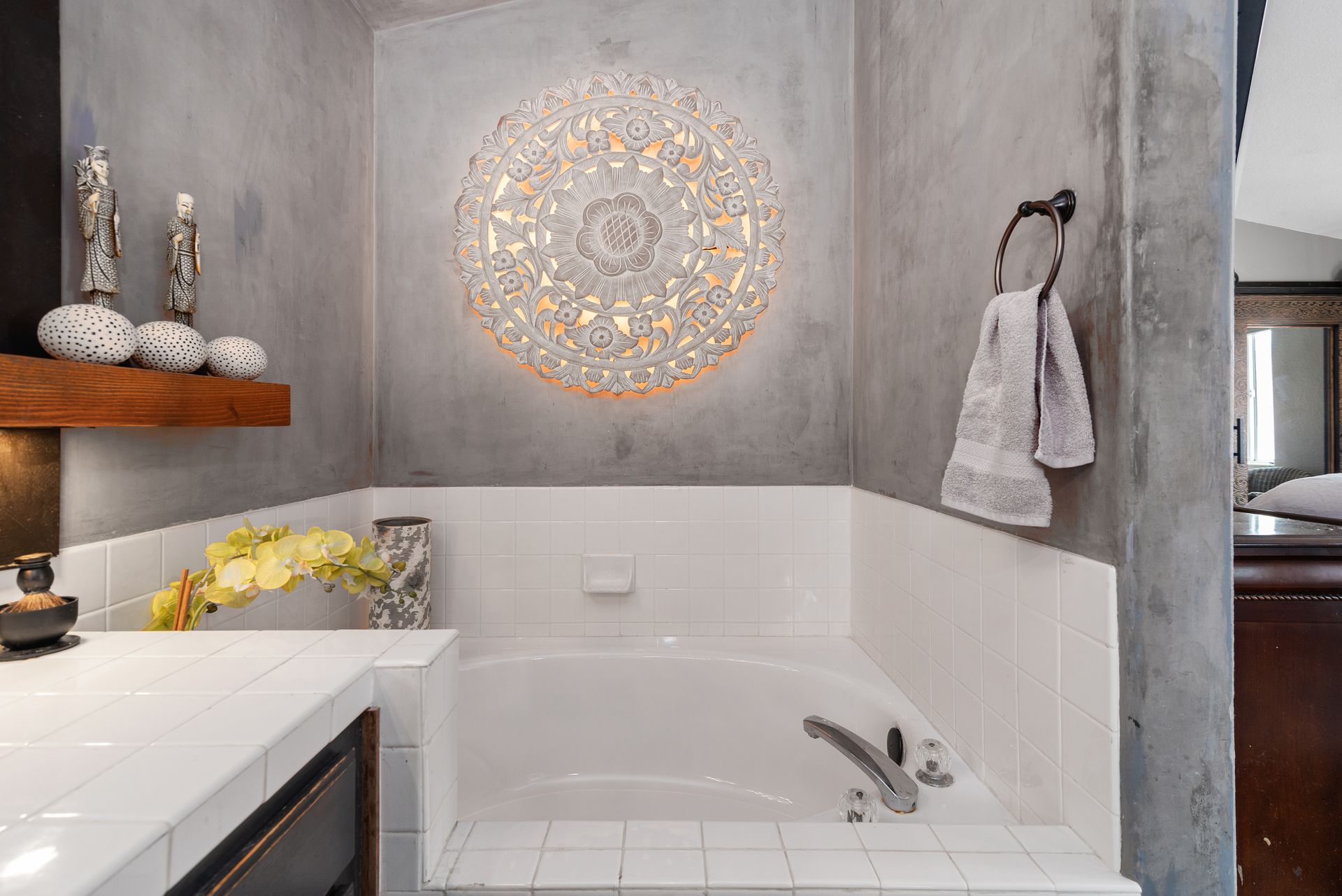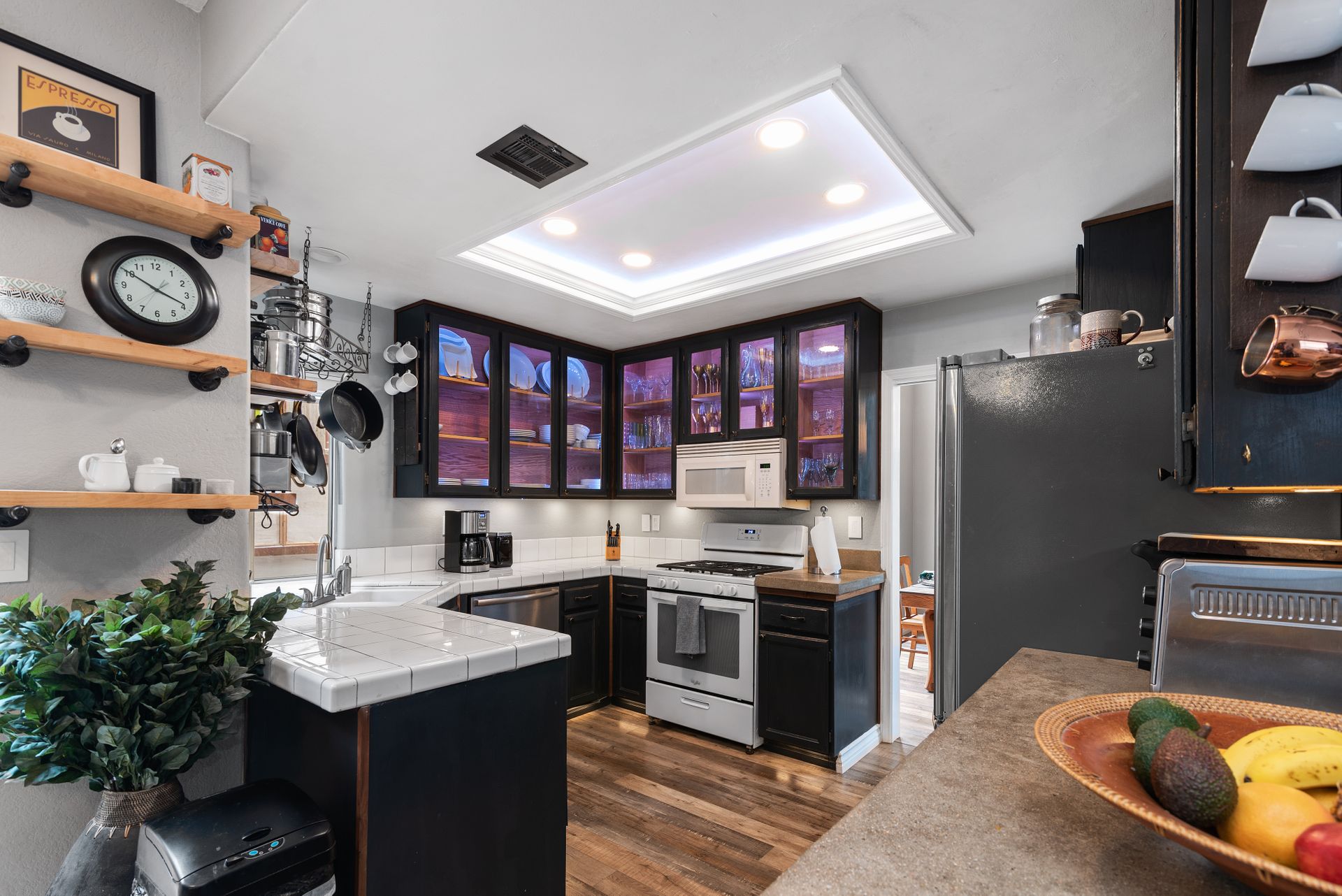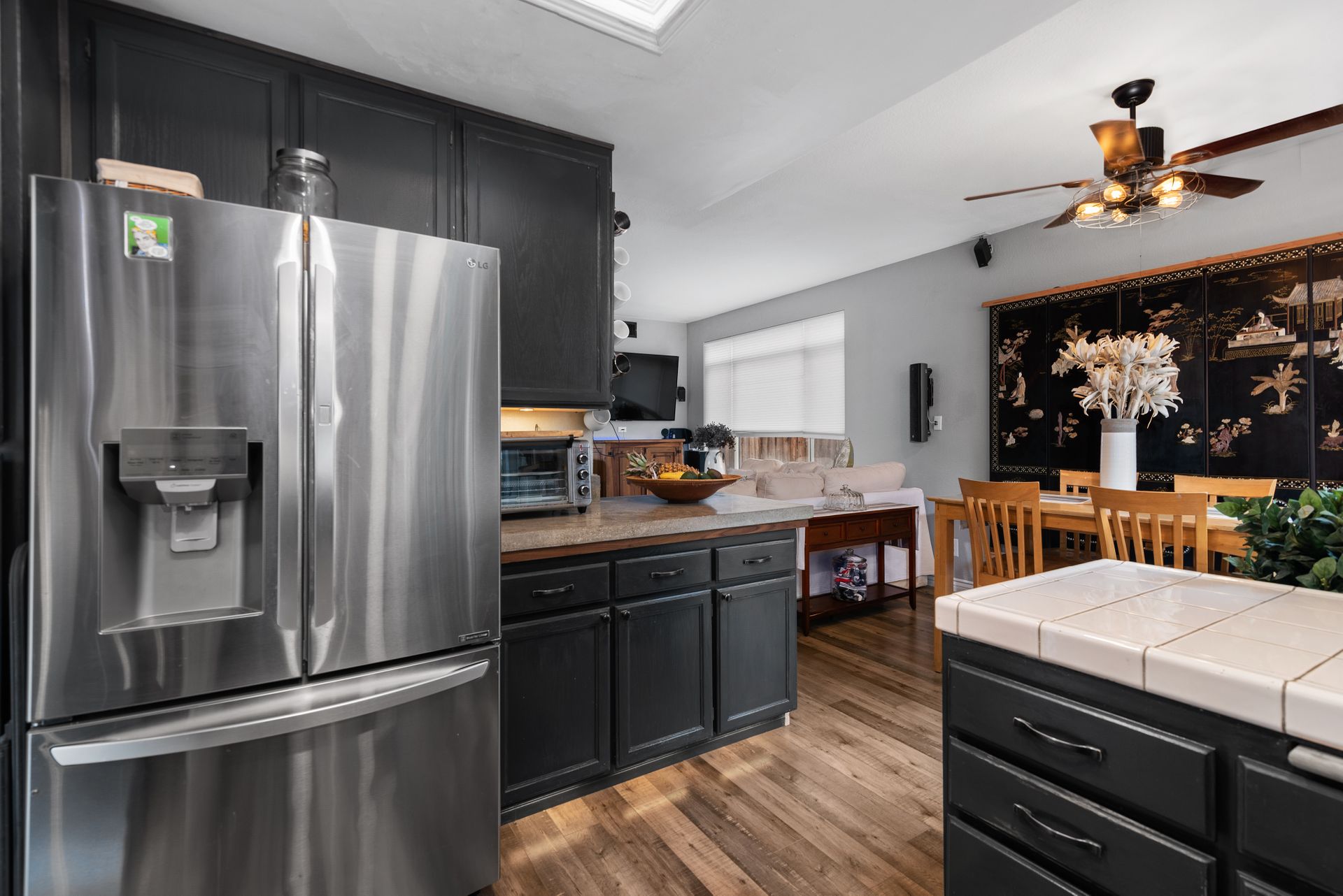 The first things you notice as you enter this home are the soaring high ceilings and light from all of the windows, giving the space a very light and airy feel. There is a two-sided fireplace that services both the formal living area as well as the den for those cozy winter evenings. The circular layout of the downstairs creates a wonderful open space for entertaining. There is a room off of the foyer that could function as an office space, art studio, etc. The kitchen has a large breakfast room off of it as well as a formal dining room on the other side. On the upper level of the home are three bedrooms. There is a lovely hall bath for the secondary rooms just off the large walkway that overlooks the living area. The large primary suite is really special with some very unique features. It has gorgeous Polynesian panels made into closet barn doors, a custom-made closet organizer in the large walk-in closet, complete with a coffee/breakfast station, a wonderful bench seat overlooking the backyard with extra storage inside, and a custom floating desk, all designed and constructed by the homeowner. The en-suite bathroom features a garden tub and walk-in shower along with double sinks. When you access the backyard through the sliding doors downstairs, there is a screened hot tub just outside the door with multiple patio spaces for seating. The yard itself is private with a terraced hill to the back. There is also a lovely custom archway near the front door, that leads into the backyard area. There, you will find numerous fruit trees including apricot, cherry, Fuji apple, plum, lemon, and olive trees. There are also raised beds for growing vegetables. This home is located in the Rancho Del Oro area of Oceanside, midway between the 76 and the 78 freeways and about 10 minutes from the lively downtown area, with the pier, breweries, restaurants, etc. It is zoned for Ivey Ranch Schools and the neighborhood has multiple playgrounds. Come by and see this unique home!