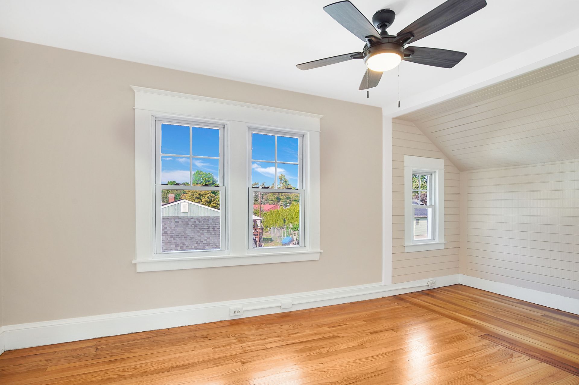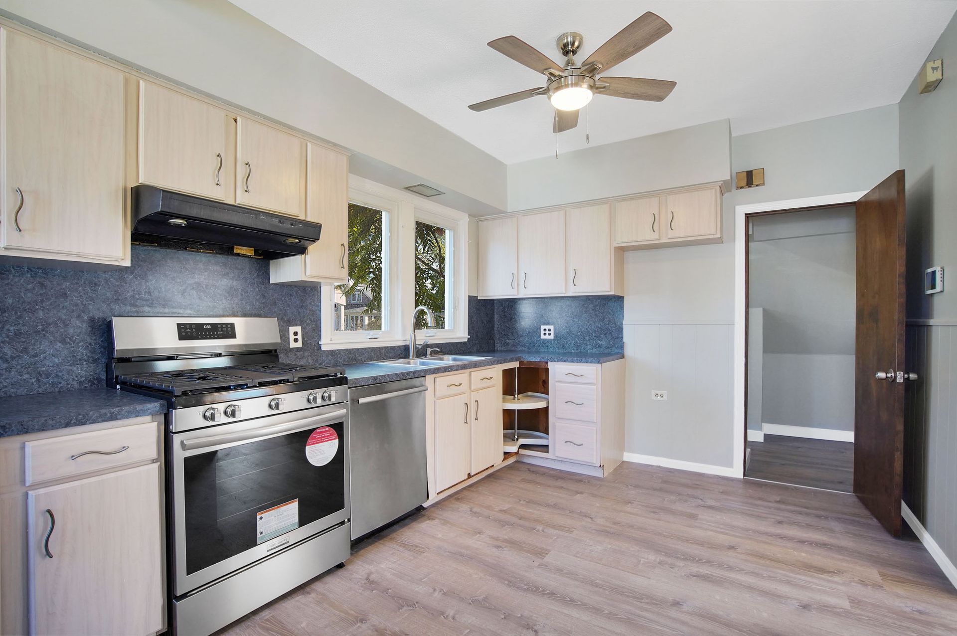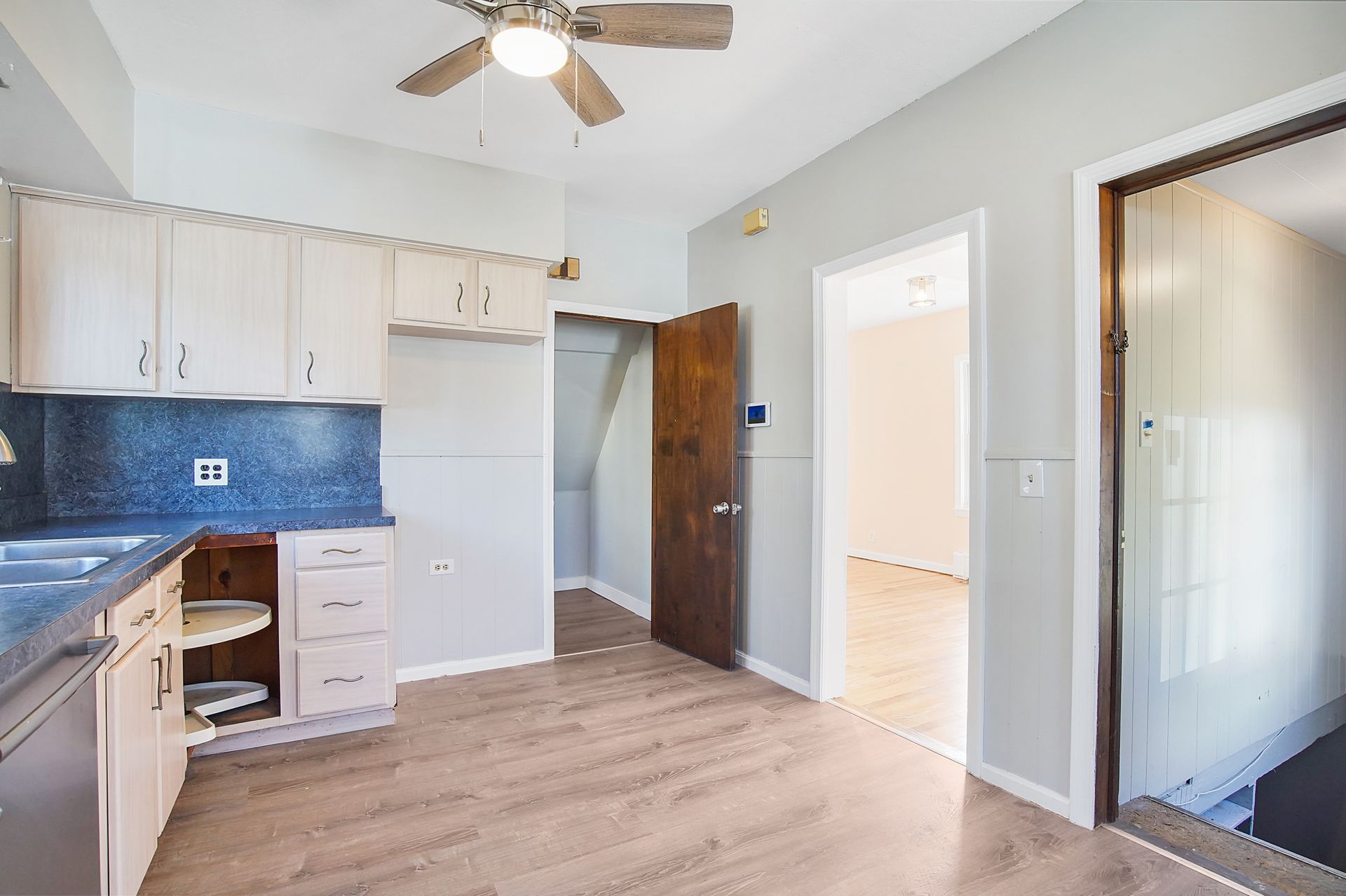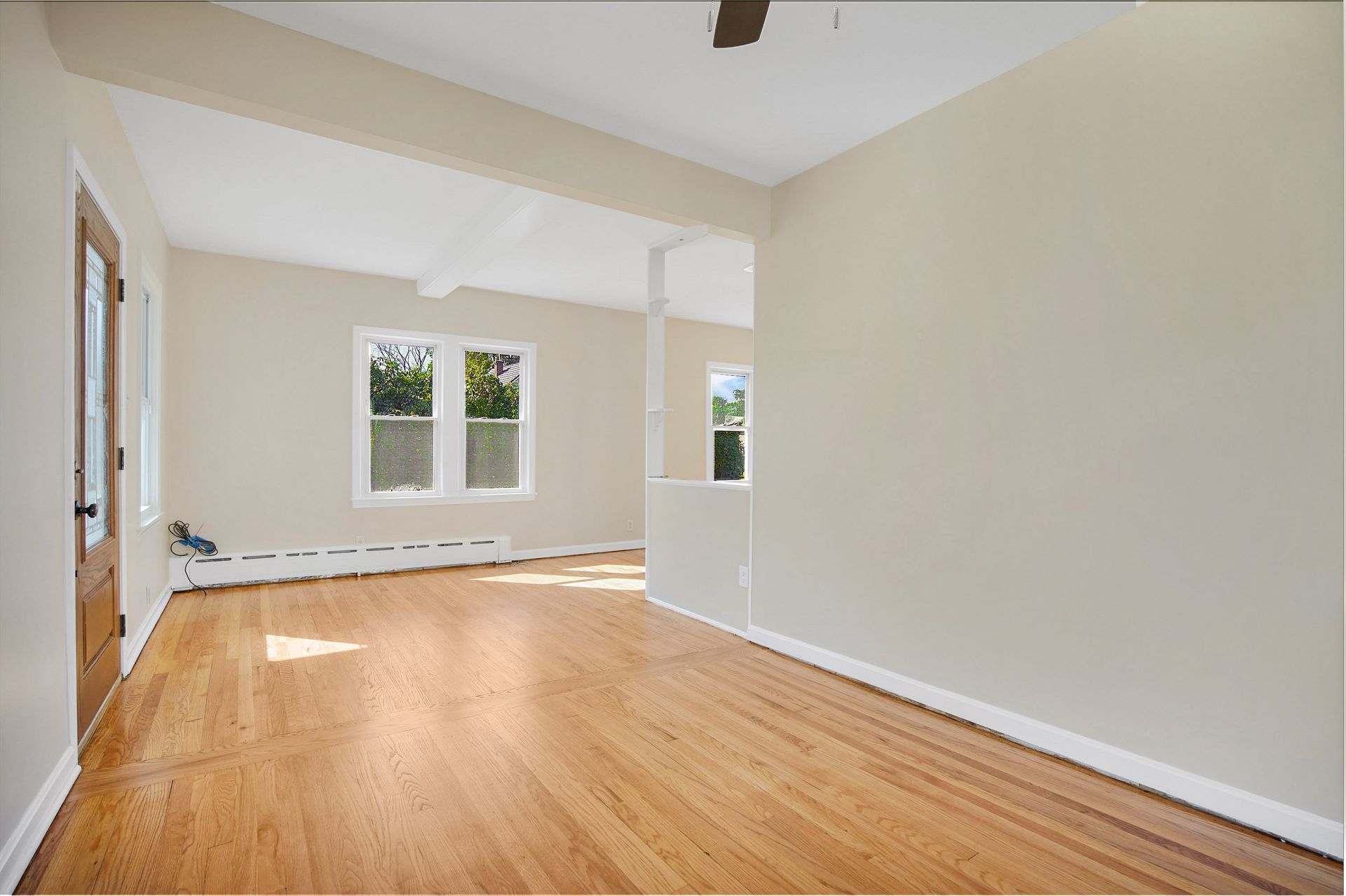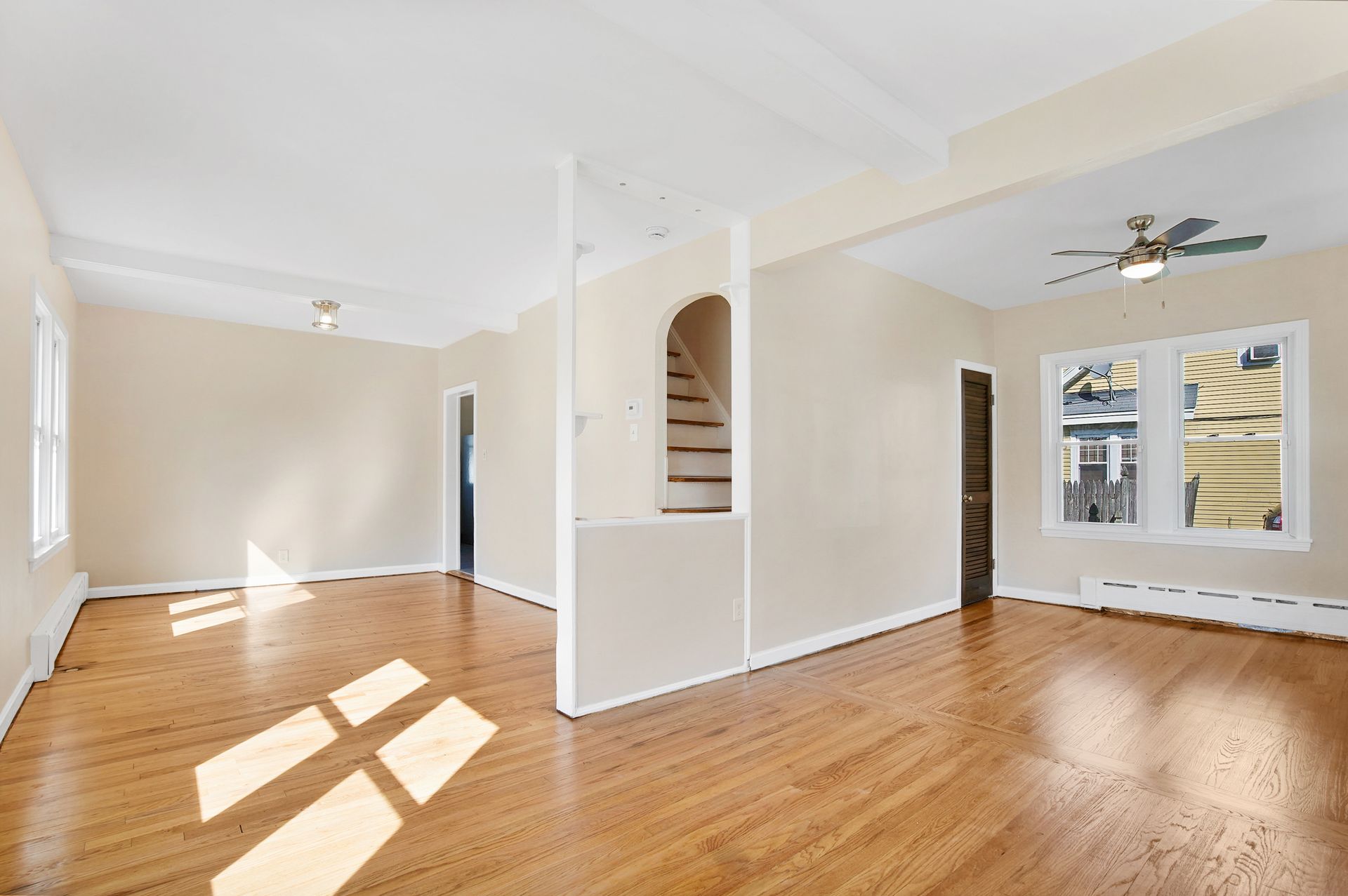 This two-bedroom, one and a half bathroom house features approximately 1,400 square feet of living space. The property has been updated, offering modern updates while maintaining its charming character. The main level includes an open floor plan with a spacious living room and dining area. The adjacent kitchen provides ample counter space and storage. Upstairs, you'll find the two bedrooms, including a primary bedroom. The property also includes a full bathroom on the main level. The backyard provides a private outdoor space. This home is situated in a convenient location, offering accessibility to local amenities.