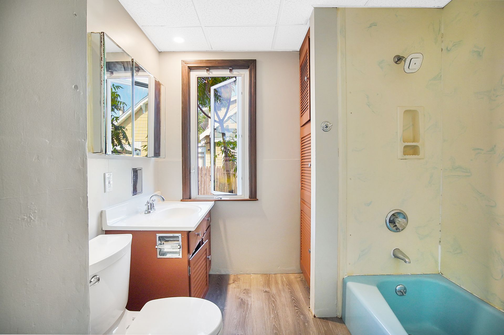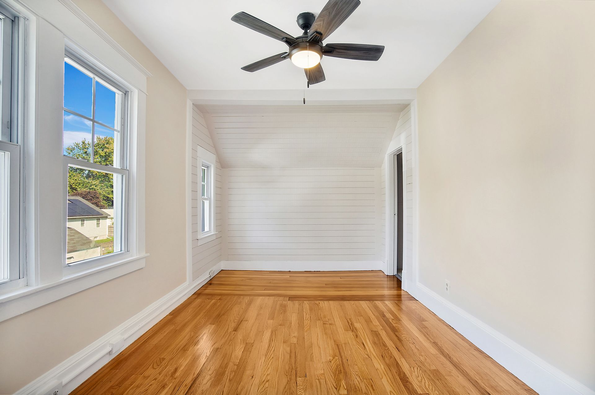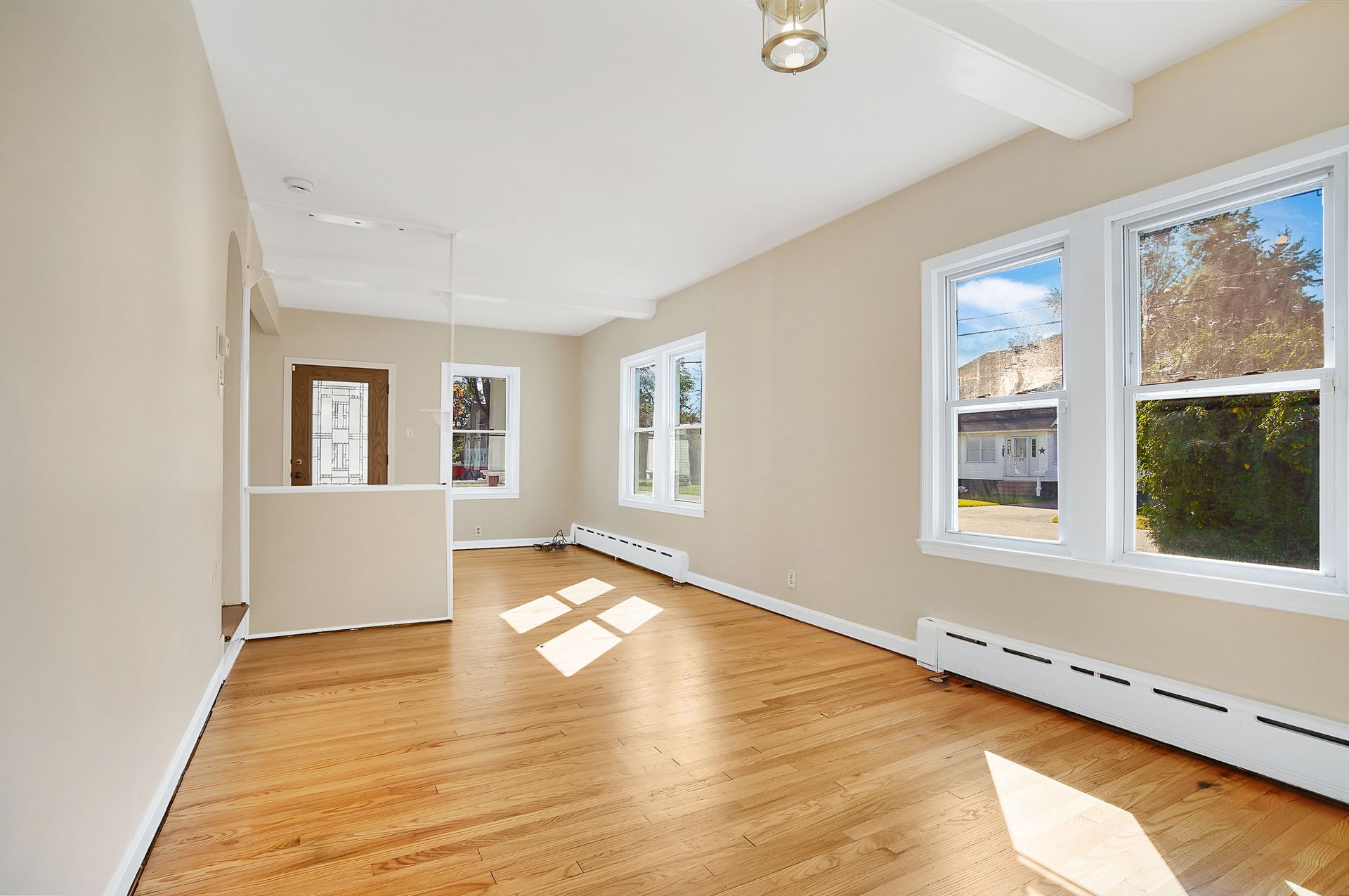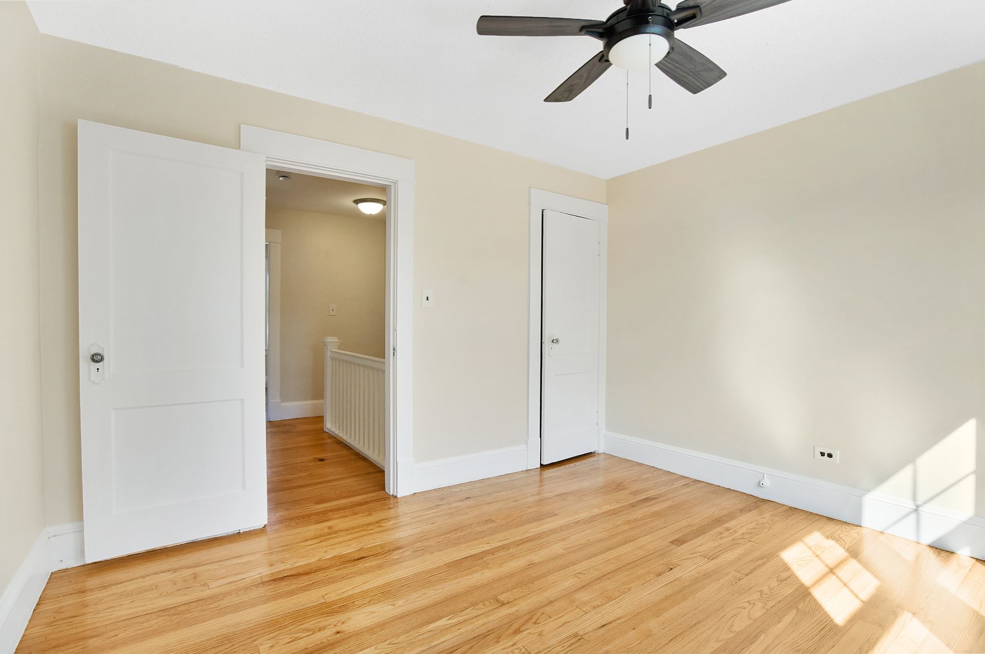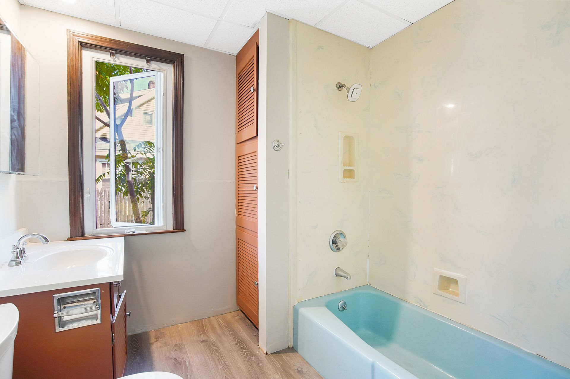 This two-bedroom, one and a half bathroom house features approximately 1,400 square feet of living space. The property has been updated, offering modern updates while maintaining its charming character. The main level includes an open floor plan with a spacious living room and dining area. The adjacent kitchen provides ample counter space and storage. Upstairs, you'll find the two bedrooms, including a primary bedroom. The property also includes a full bathroom on the main level. The backyard provides a private outdoor space. This home is situated in a convenient location, offering accessibility to local amenities.