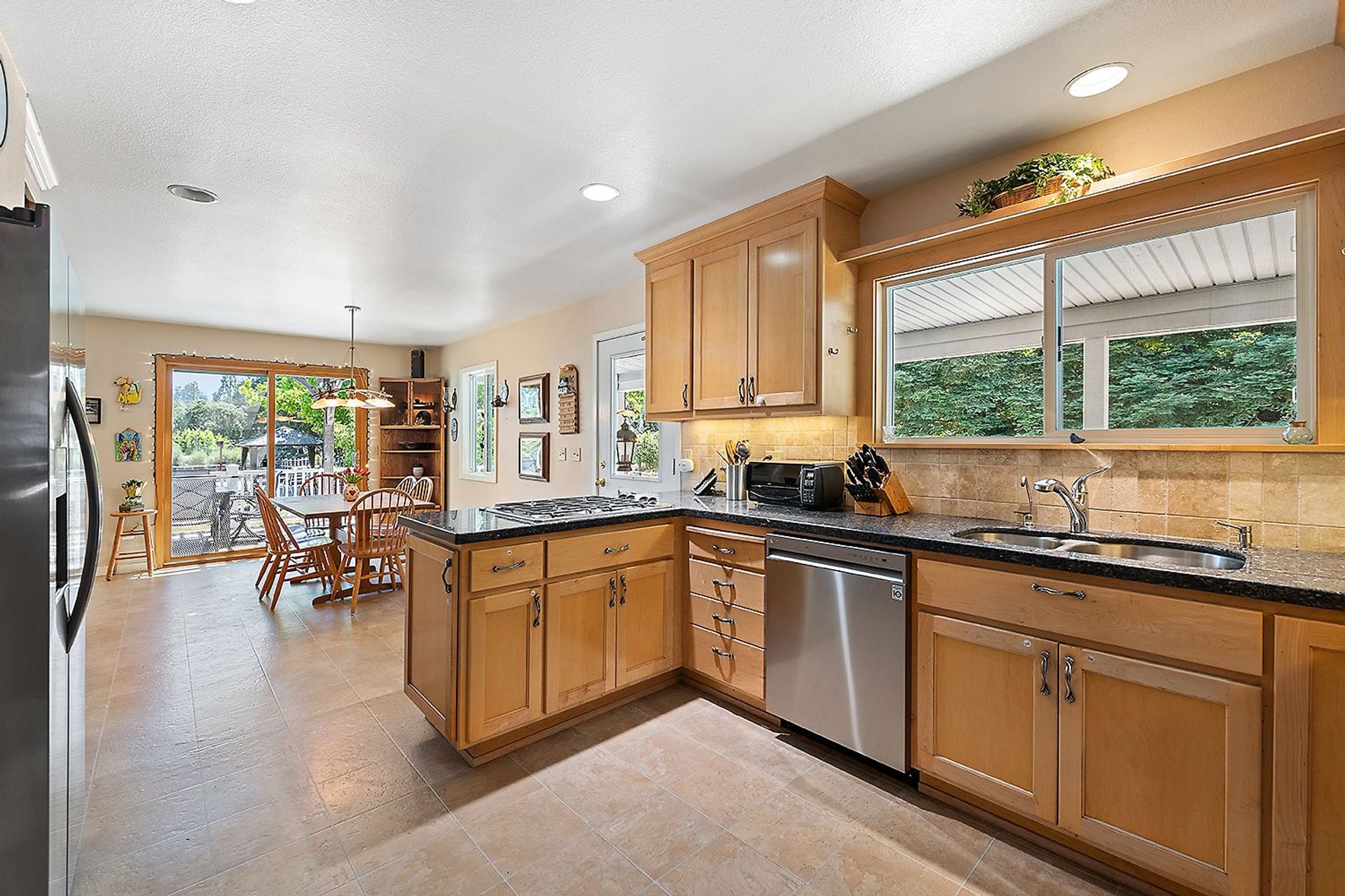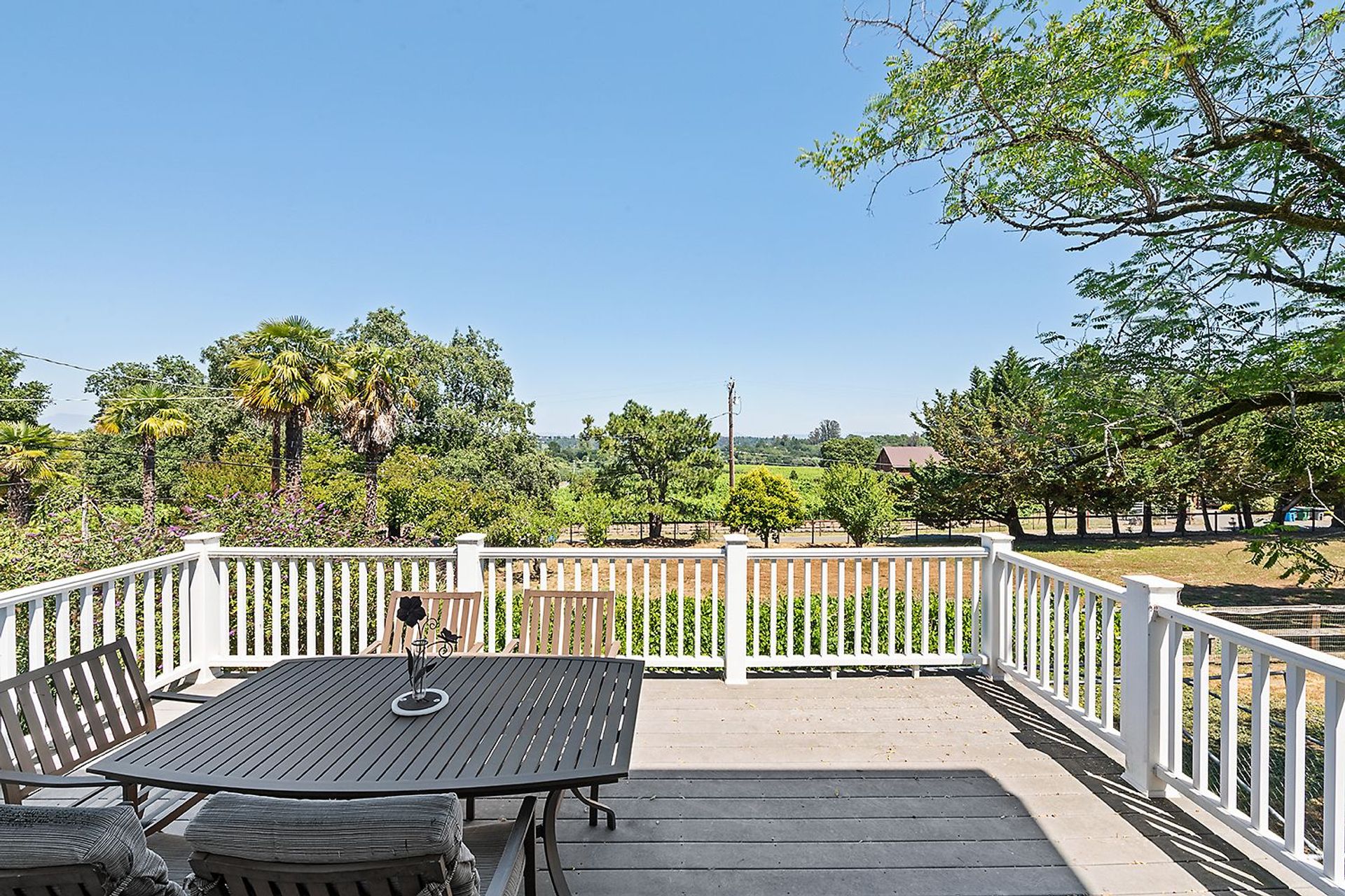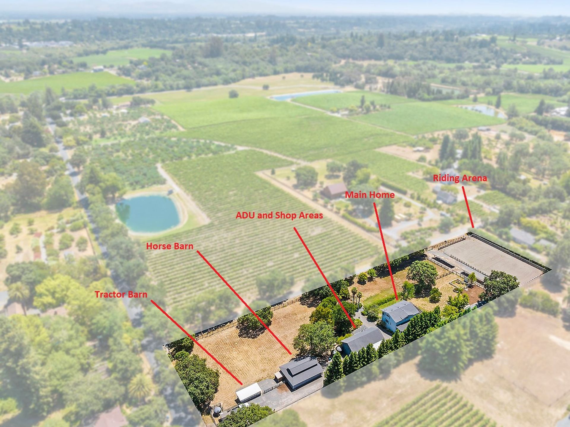 Located just minutes from Graton and down a quiet country lane sits this truly one-of-a-kind property. The 3-story farmhouse style home offers a flexible floor plan, each level with 1 or more bedrooms and a full bathroom. The remodeled kitchen includes newer appliances and a generous dining area that opens to a large Trex deck to enjoy amazing easterly views of sunrises and lush vineyards. Each level of the home has decks or yards to relax and enjoy an early morning cup of coffee. A separate granny unit has a living room, kitchen, full bath, washer/dryer, heated floors and room to garden. Perfect for the horse lover is a wonderful horse barn with stalls, tack room, grooming area, storage and attic. To make it even better, there is a professionally installed, fenced 110' x 165' riding arena. The arena consists of 600 yards of compacted blue shale, 300 tons of river sand and a 6-rainbird water system to reduce dust. The fenced garden area also has a water system. There are 2 large shop areas with storage and attic areas. Don't forget the tractor barn and the beautiful pasture. Additional features include solar installed 3 years ago, an array of fruit trees, 2 wells, a water treatment system and two 2500-gallon water storage tanks. All this on a level, usable 2.9 acres!