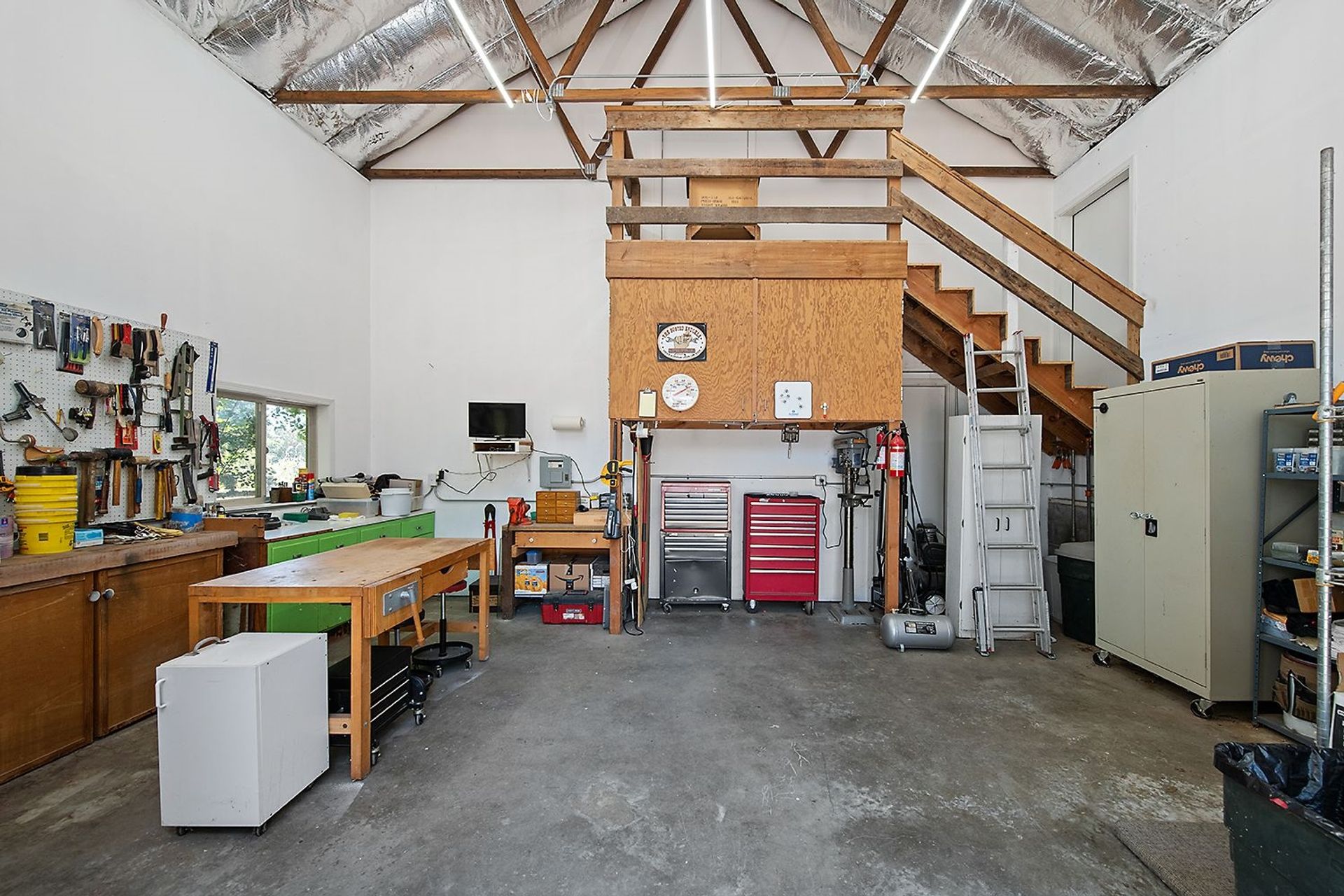 *Approximate 24'x54' building that includes a 750 sq/ft Granny Unit, 18'x24' workshop with 25' peaked ceiling, 10'x54' "Shed" area with concrete door and automatic garage door and attic with approximate 24'x30' storage area.