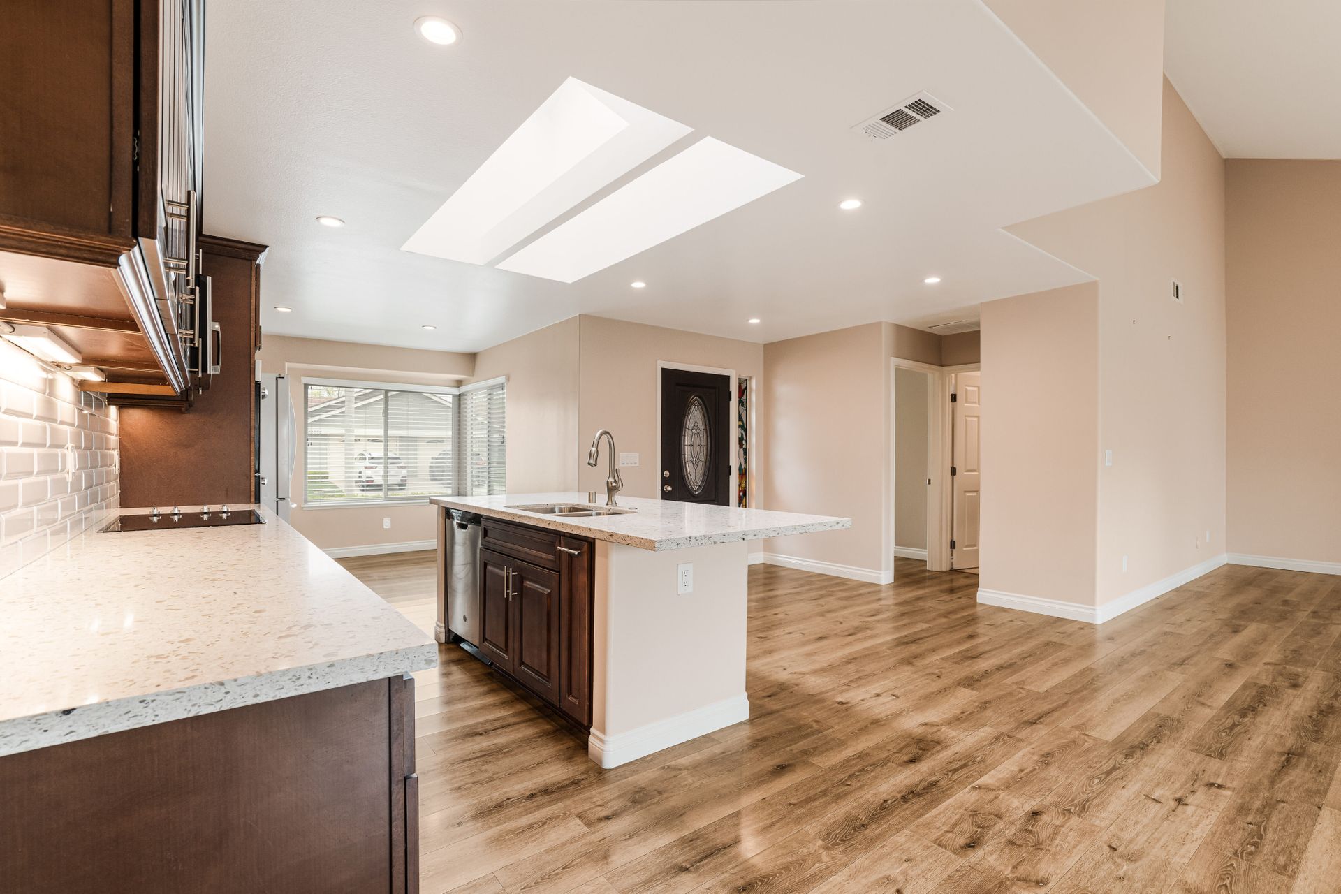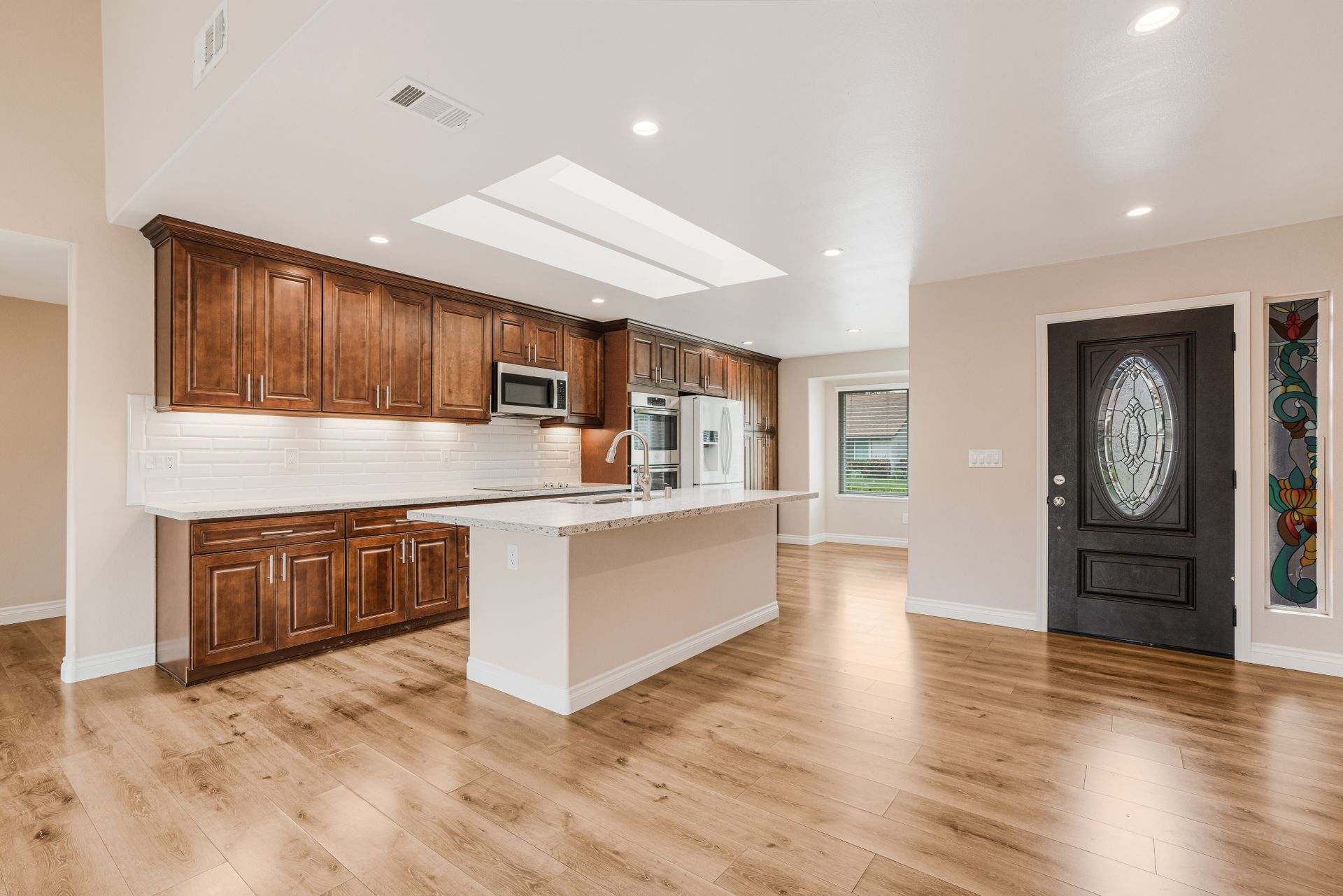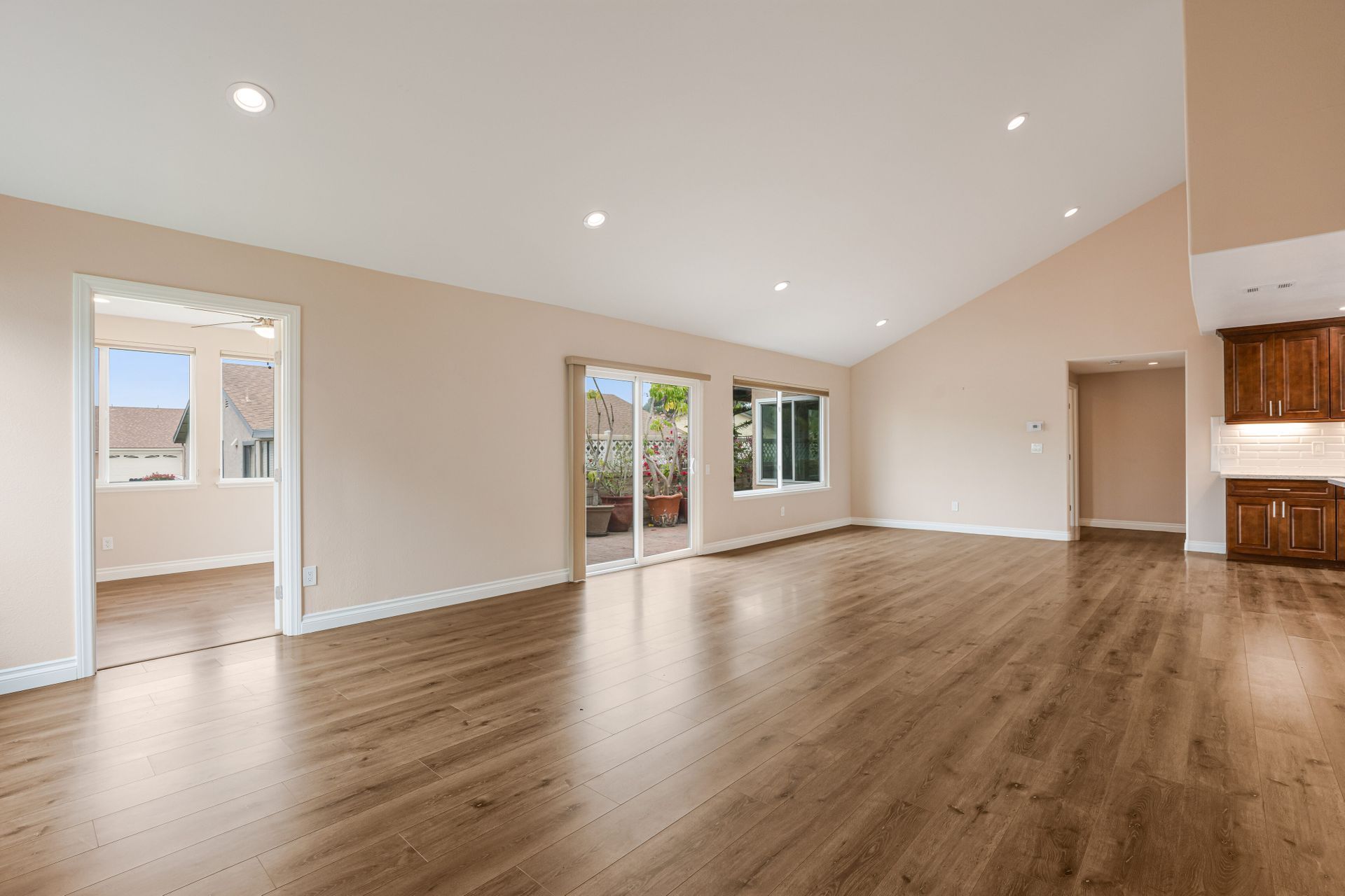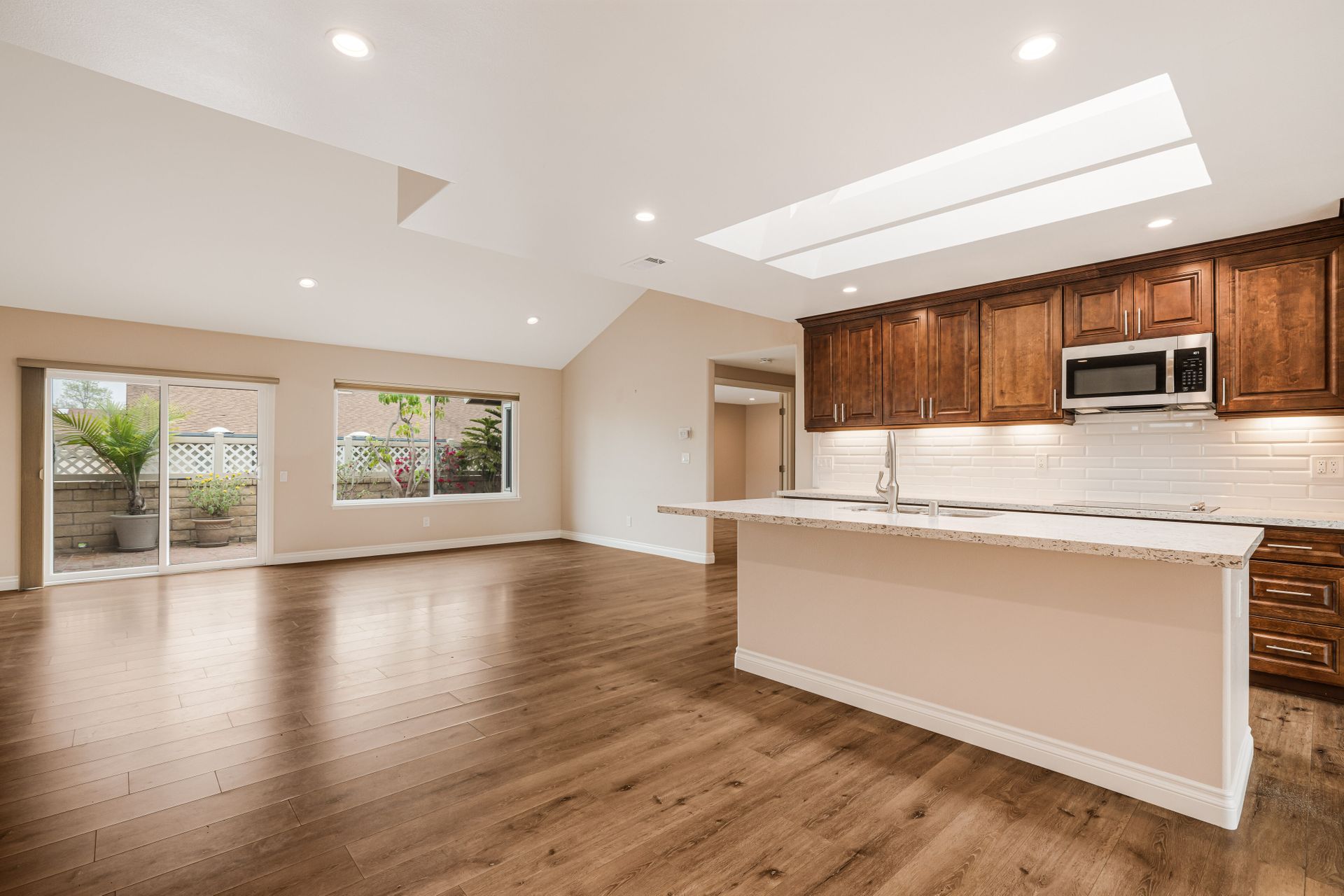 This single-family home in Camarillo, CA is a remodeled one-story property that offers resort living at its finest. Located in a security guard gated community, this home features two bedrooms and two bathrooms with a square footage of 1,800. The property includes a golf course, tennis court, pool, spa, bocce ball court, and billiard room. The Valencia model home is the most popular and has been completely remodeled. The large gourmet kitchen has quartz counters and a large island that opens into the dining room and living room. The open-concept living room has an extra room of approximately 150 square feet that could be a den, office, or even a third bedroom. Other features include dual pane windows, skylight, high ceilings, recessed lighting, bullnose wall corners, and popular vinyl plank flooring throughout. The entire unit is full of natural light. The very large bedroom suites are located on each side of the home for perfect privacy. The primary bedroom has a walk-in closet. Both bathrooms have been updated with quartz counters, double sinks, and ample cabinet space. The primary bathroom has a walk-in shower. The guest bathroom features a combination bathtub/shower. There is a separate laundry room and a two-car attached garage. The property also includes a private outdoor patio with access to the greenbelt and mountain views. HOA includes a Golf Course, Fitness Center, Guard, Security, Earthquake Insurance, Trash, Water, Cable TV, Internet, Sewer, Landscaping, Pool, Spa, Tennis Court, Paddle Tennis, Gym, Billiard Room, Bocce Ball Court, and Fire Pit.