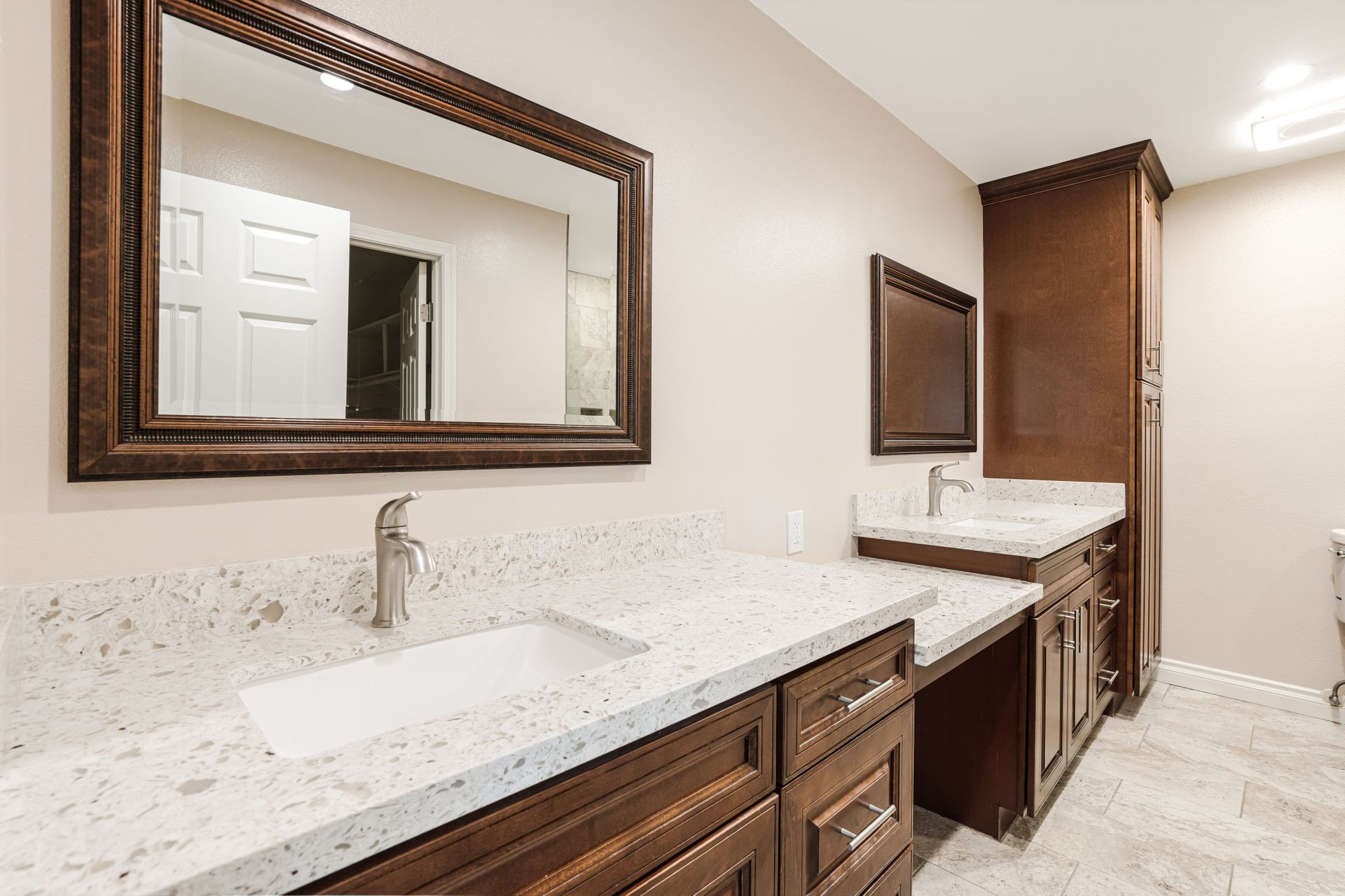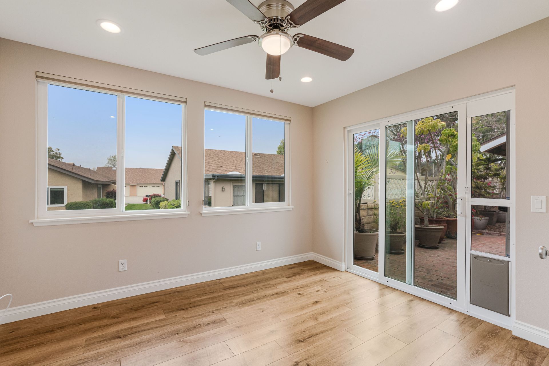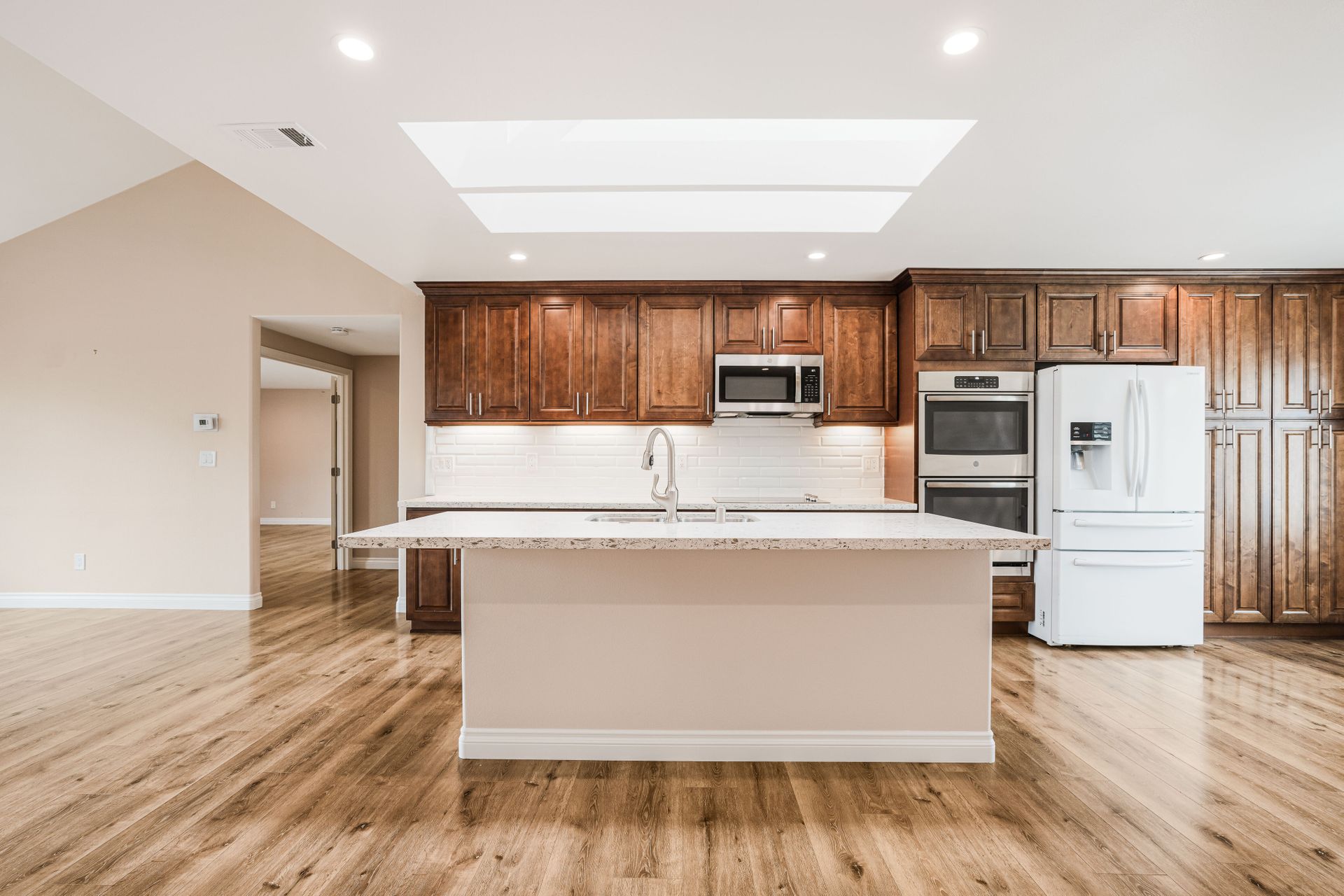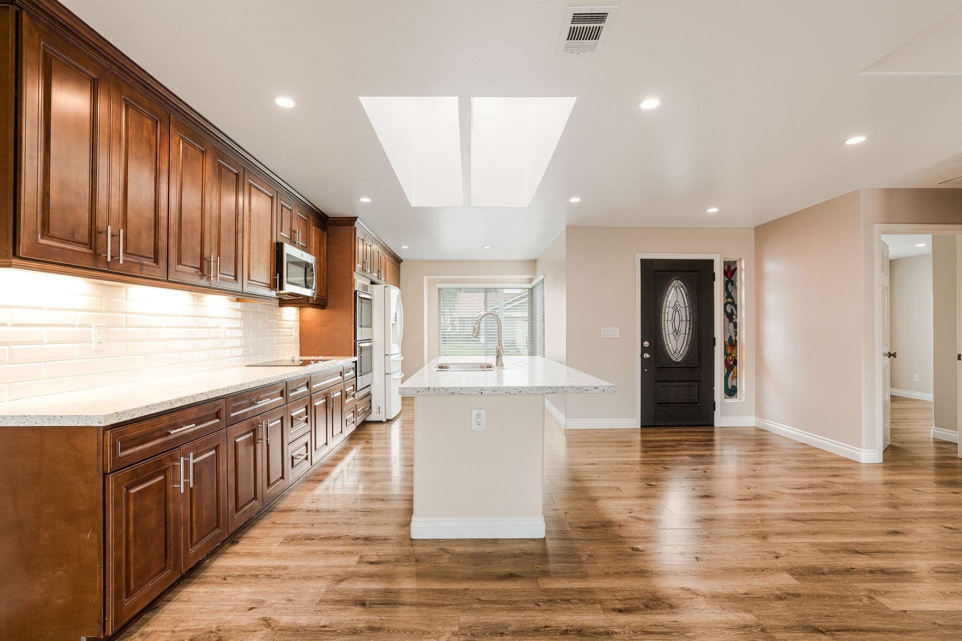 This single-family home in Camarillo, CA is a remodeled one-story property that offers resort living at its finest. Located in a security guard gated community, this home features two bedrooms and two bathrooms with a square footage of 1,800. The property includes a golf course, tennis court, pool, spa, bocce ball court, and billiard room. The Valencia model home is the most popular and has been completely remodeled. The large gourmet kitchen has quartz counters and a large island that opens into the dining room and living room. The open-concept living room has an extra room of approximately 150 square feet that could be a den, office, or even a third bedroom. Other features include dual pane windows, skylight, high ceilings, recessed lighting, bullnose wall corners, and popular vinyl plank flooring throughout. The entire unit is full of natural light. The very large bedroom suites are located on each side of the home for perfect privacy. The primary bedroom has a walk-in closet. Both bathrooms have been updated with quartz counters, double sinks, and ample cabinet space. The primary bathroom has a walk-in shower. The guest bathroom features a combination bathtub/shower. There is a separate laundry room and a two-car attached garage. The property also includes a private outdoor patio with access to the greenbelt and mountain views. HOA includes a Golf Course, Fitness Center, Guard, Security, Earthquake Insurance, Trash, Water, Cable TV, Internet, Sewer, Landscaping, Pool, Spa, Tennis Court, Paddle Tennis, Gym, Billiard Room, Bocce Ball Court, and Fire Pit.