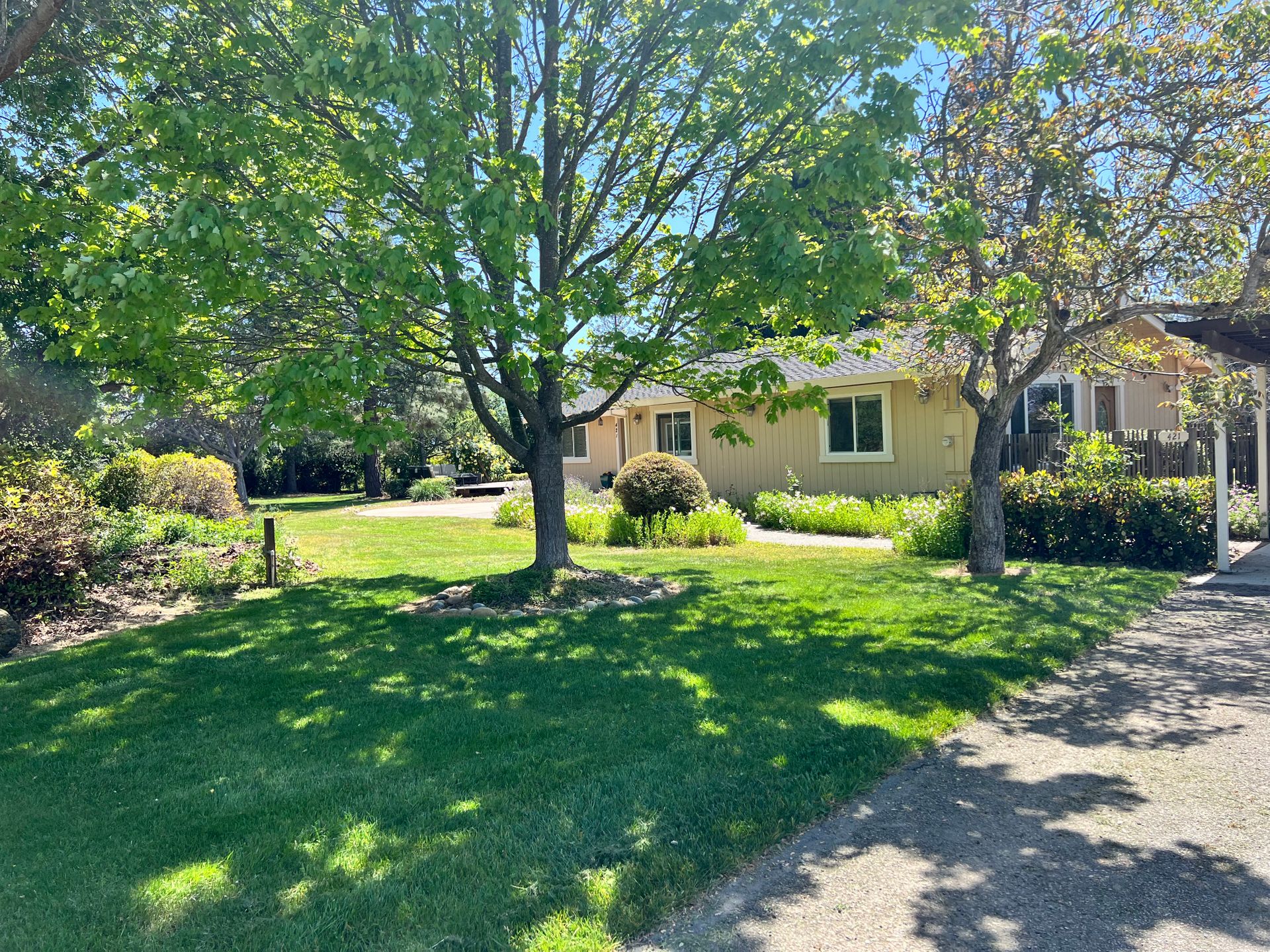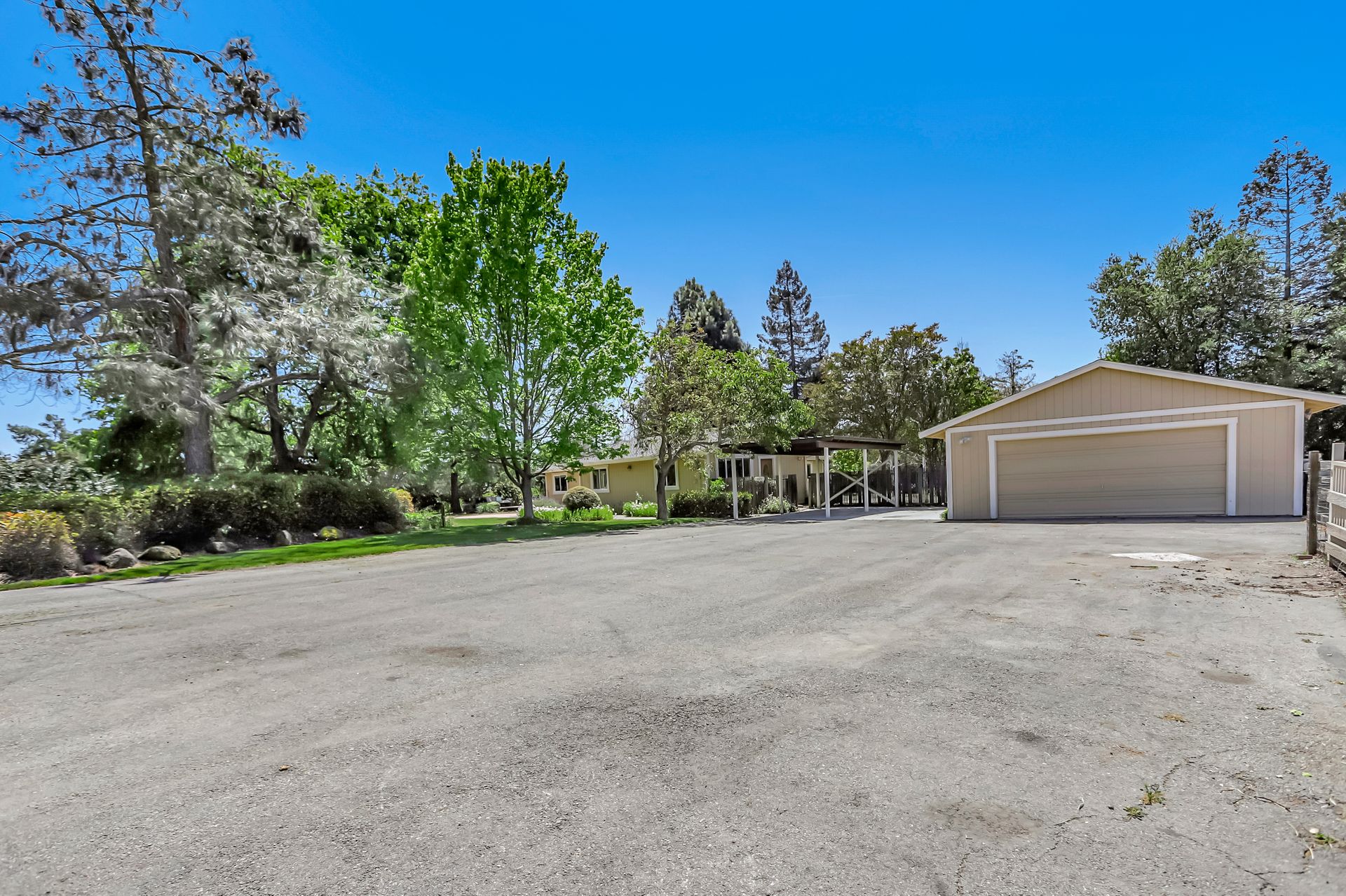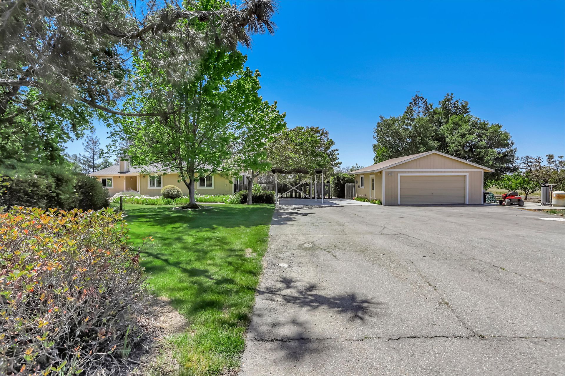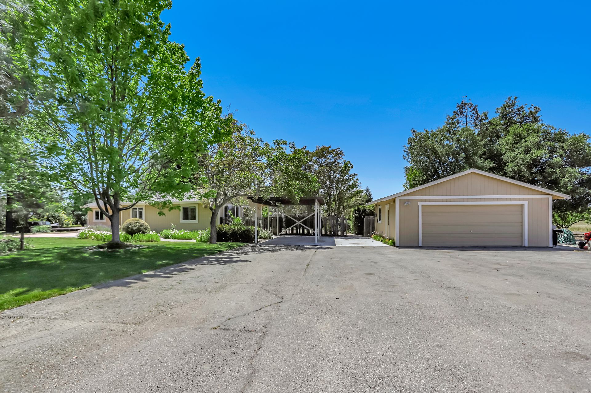 Step outside onto the approximately five-acre canvas of natural beauty. Lush greenery surrounds you and towering trees provide shade, creating a tranquil atmosphere. The detached two-car garage is a bonus for car enthusiasts or DIY aficionados.