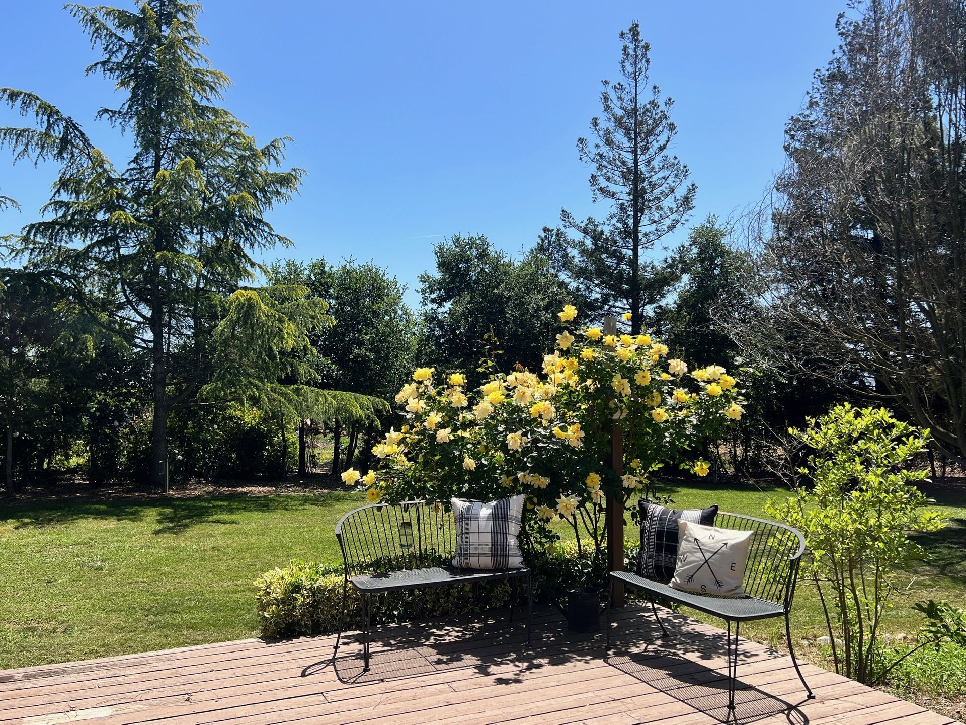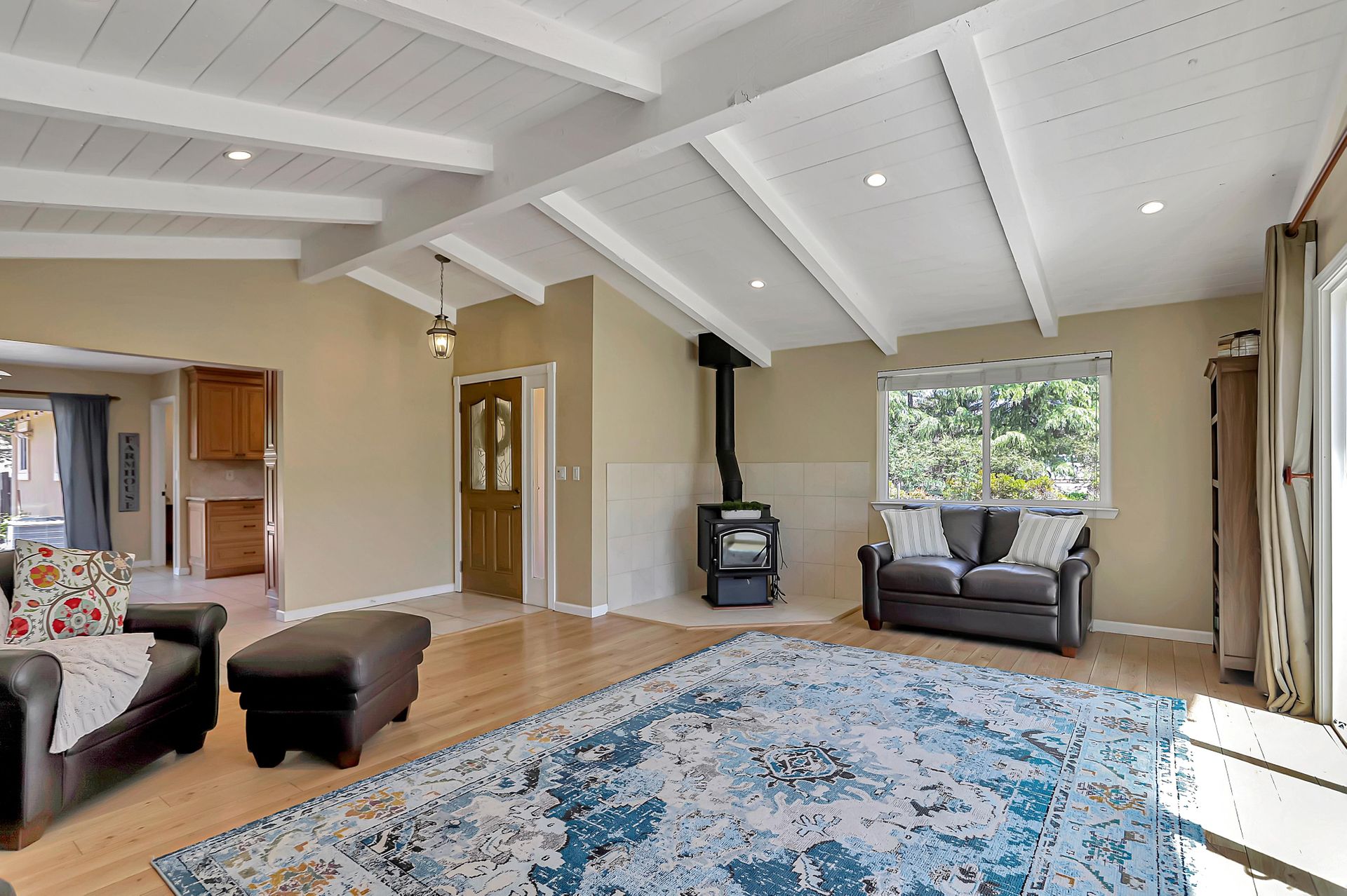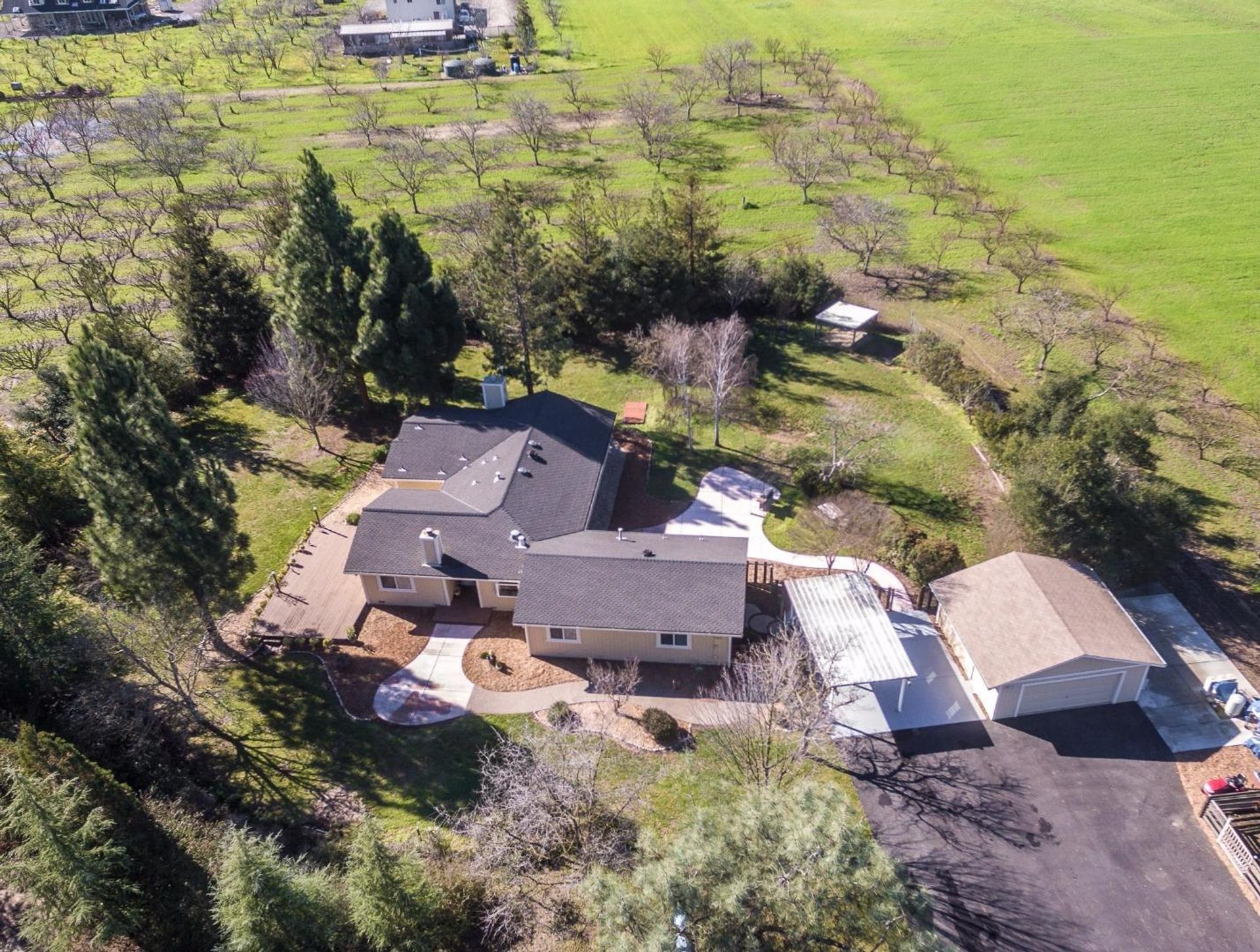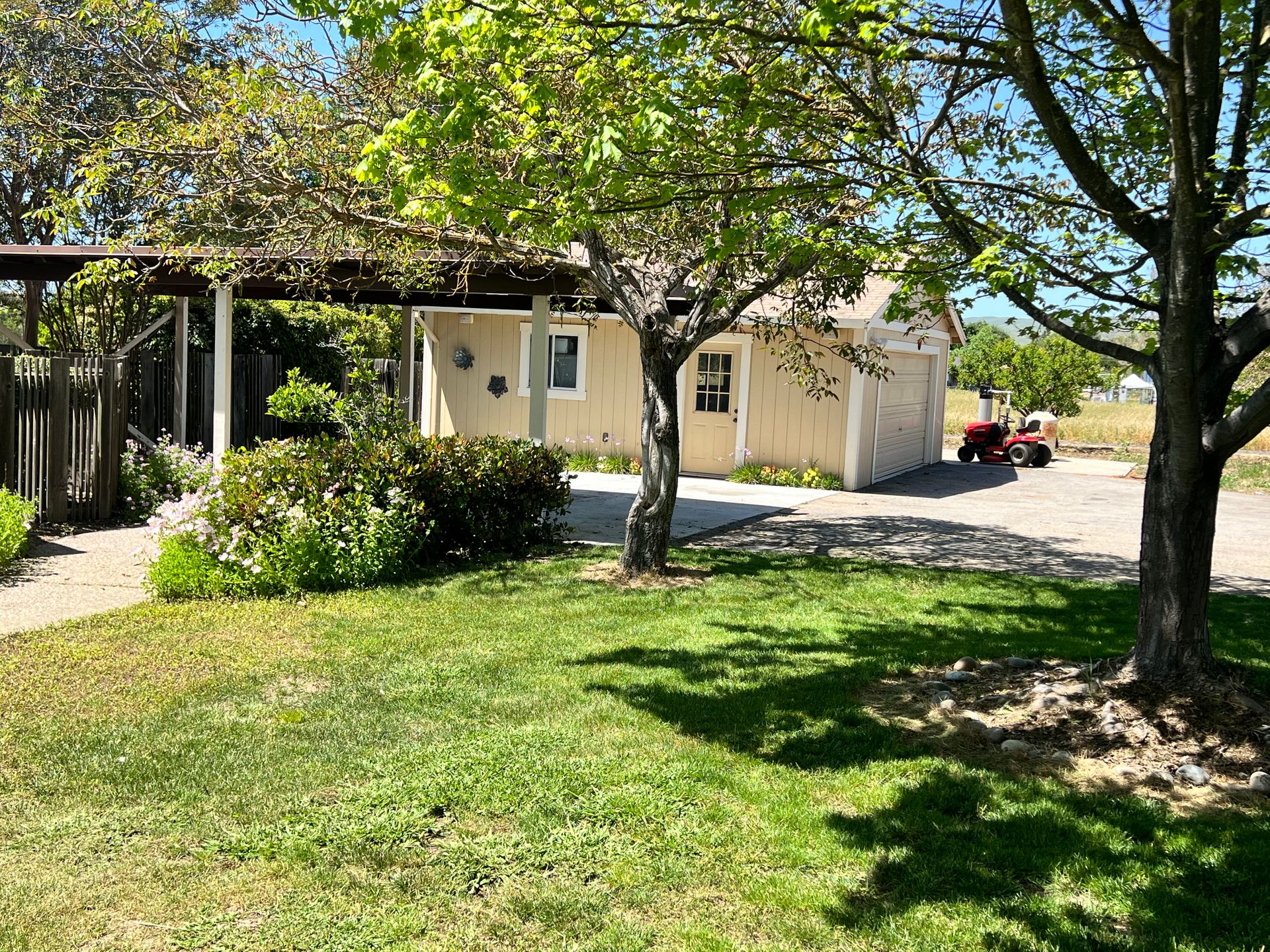 Step outside onto the approximately five-acre canvas of natural beauty. Lush greenery surrounds you and towering trees provide shade, creating a tranquil atmosphere. The detached two-car garage is a bonus for car enthusiasts or DIY aficionados.