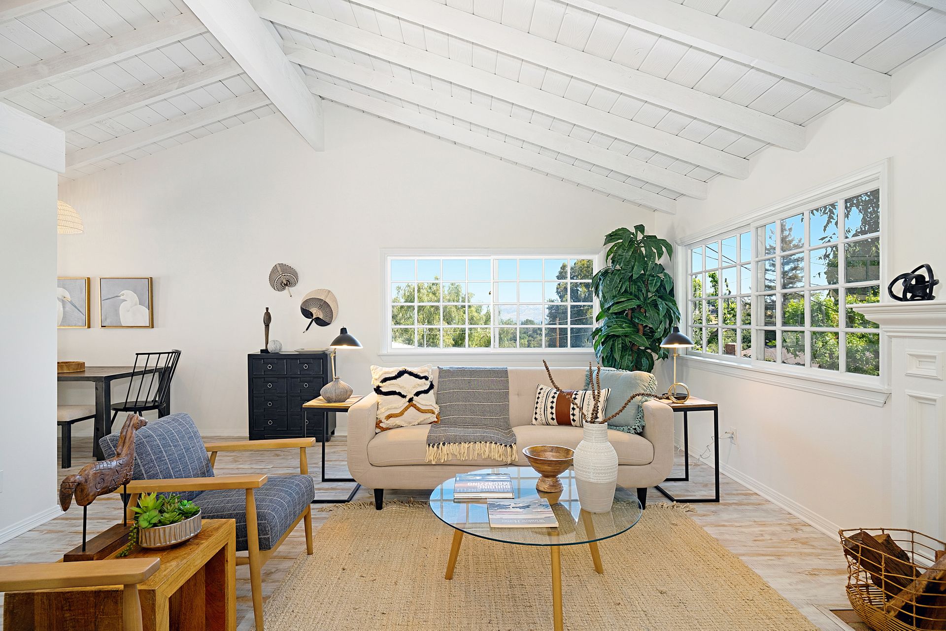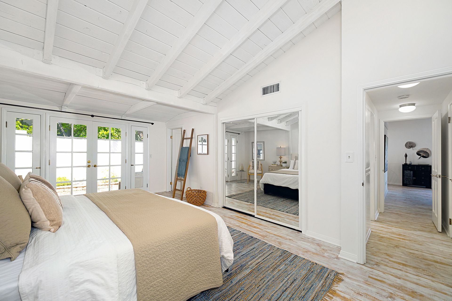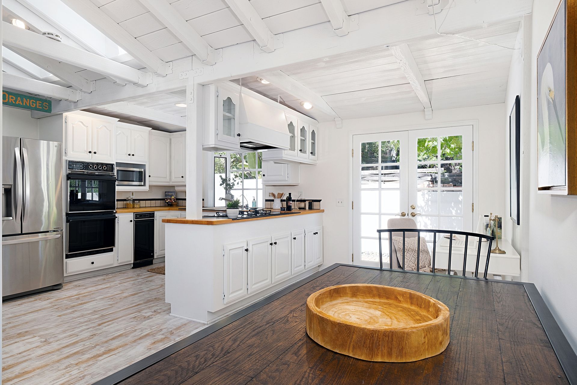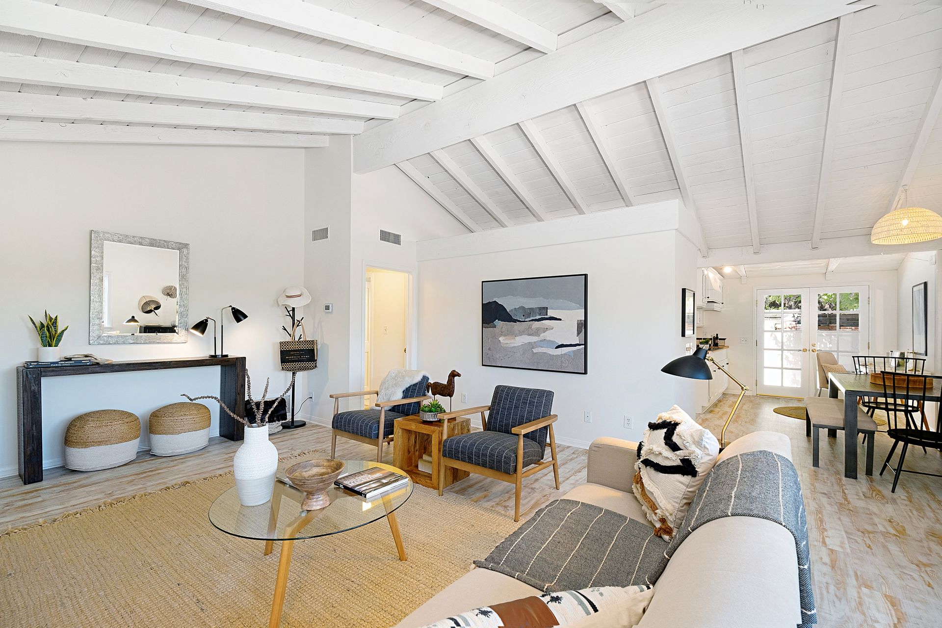 This charming bungalow is nestled in a great location in the canyons of Woodland Hills, south of Ventura Boulevard. This light-filled home features vaulted wood beam ceilings, plank flooring, two large bedrooms and an open kitchen with oak cabinetry, a pantry, butcher block counter and inlaid tile. The spacious owner's suite has a cozy sitting area with French doors that open to the patio. The large guest bedroom has vaulted, wood ceilings and lots of light. There is an attached two-car tandem garage, and the private brick-lined patio is ideal for relaxing in the sun or alfresco dining under the stars. The property provides easy access to shopping and entertainment in Woodland Hills, and it's a short drive through Topanga Canyon to beaches. Don’t miss this great opportunity to live in a special community surrounded by natural beauty.