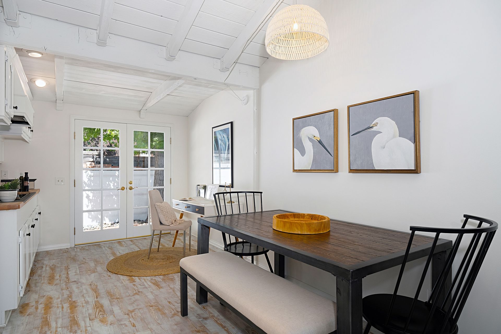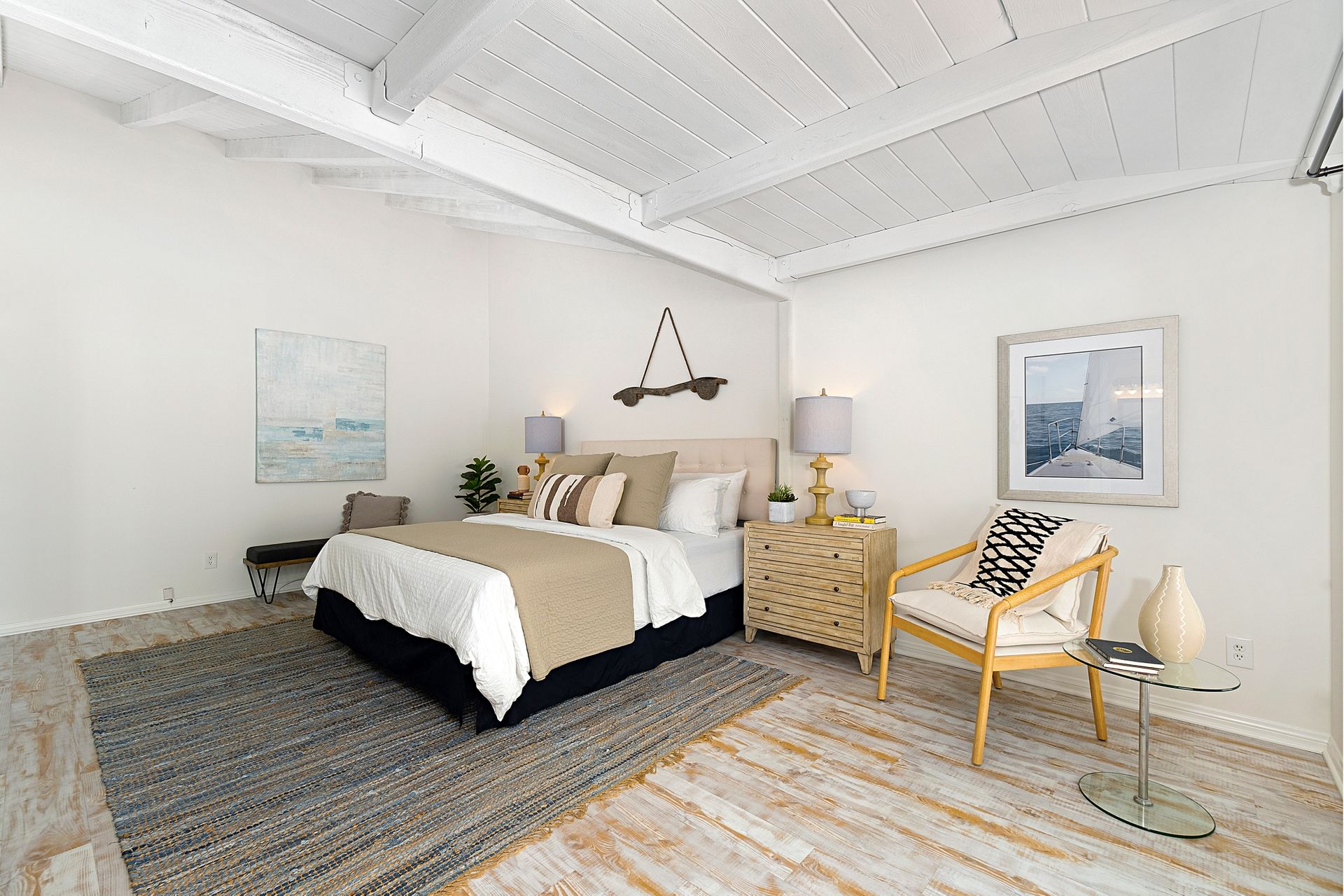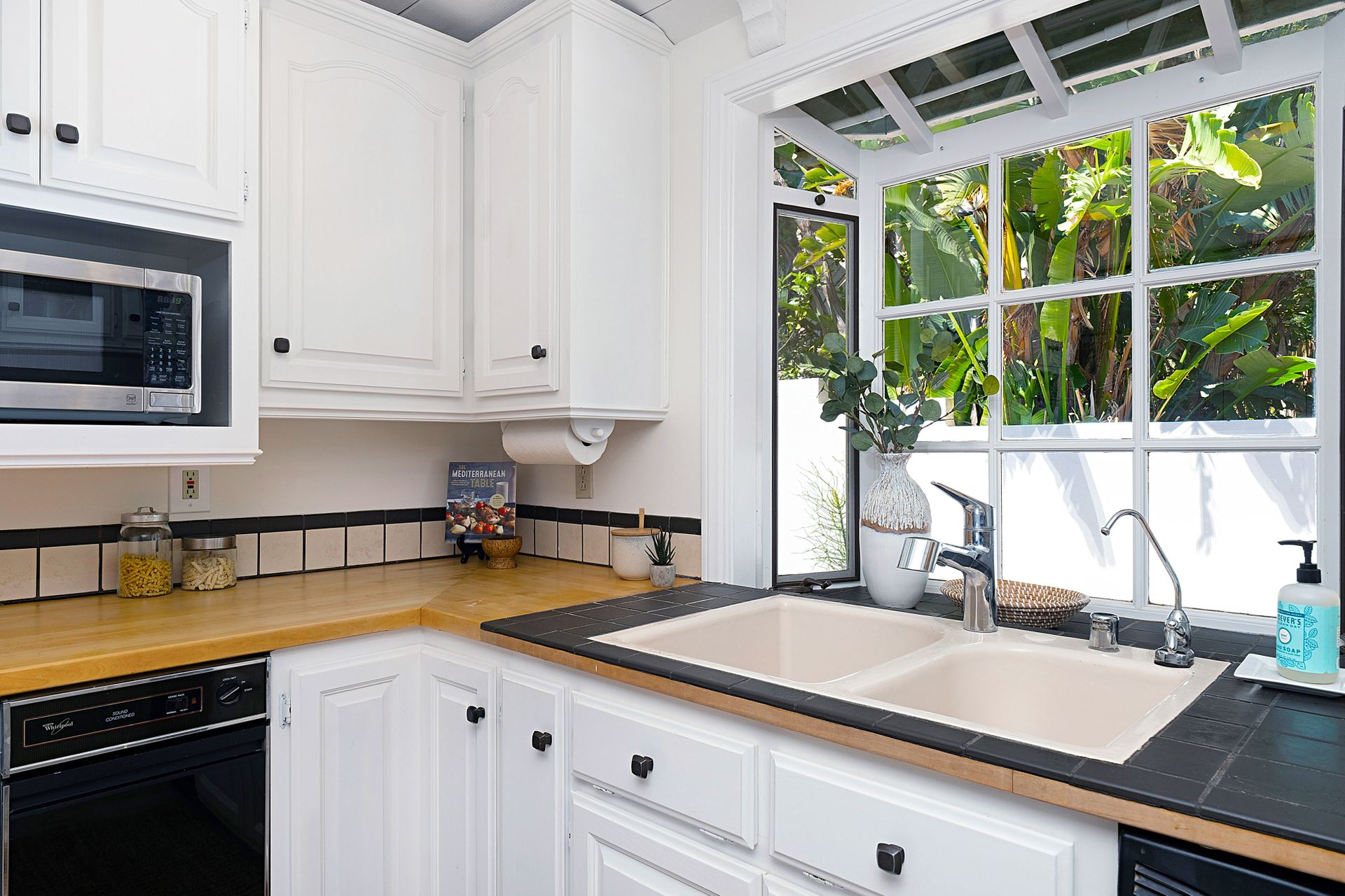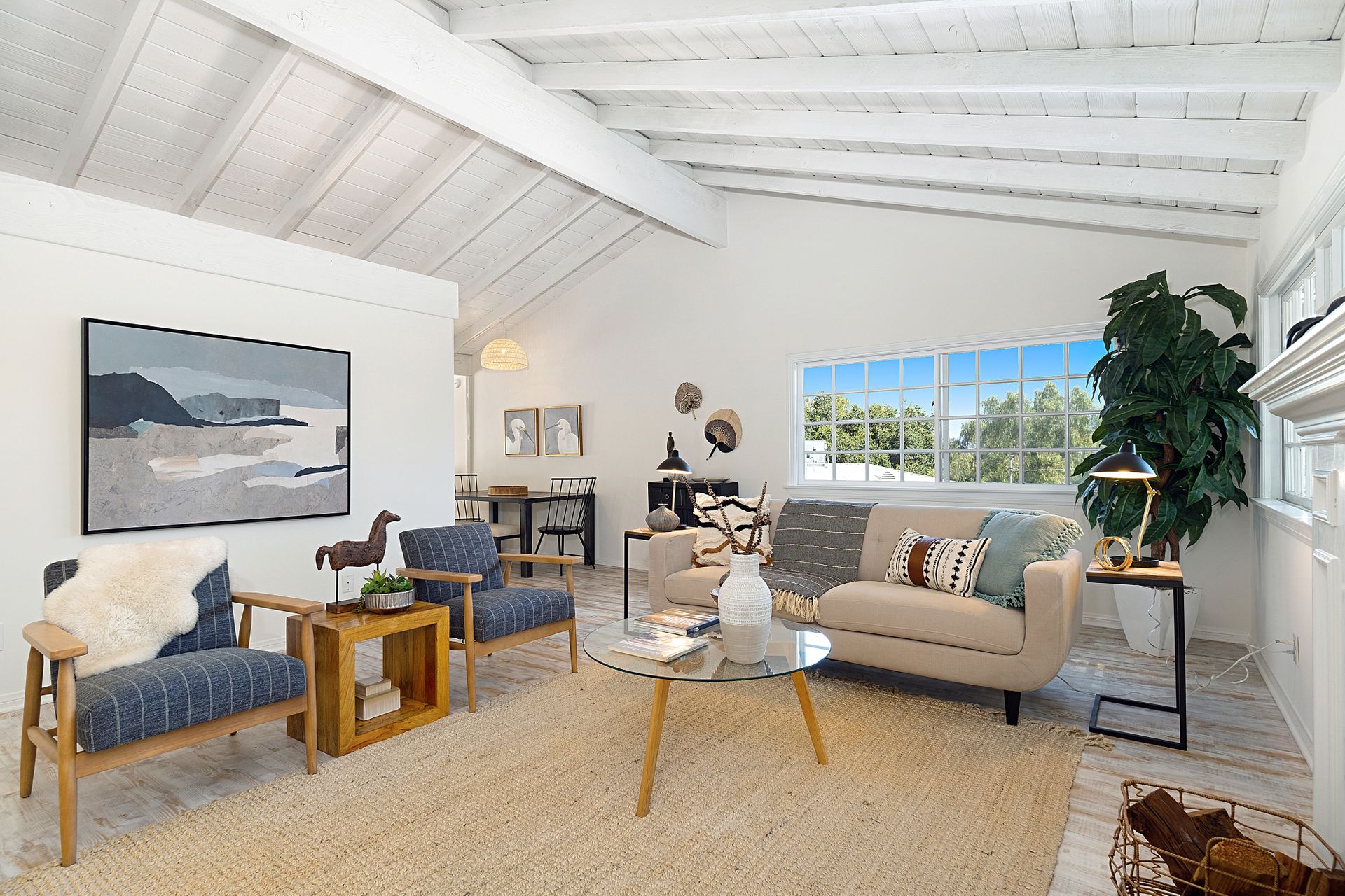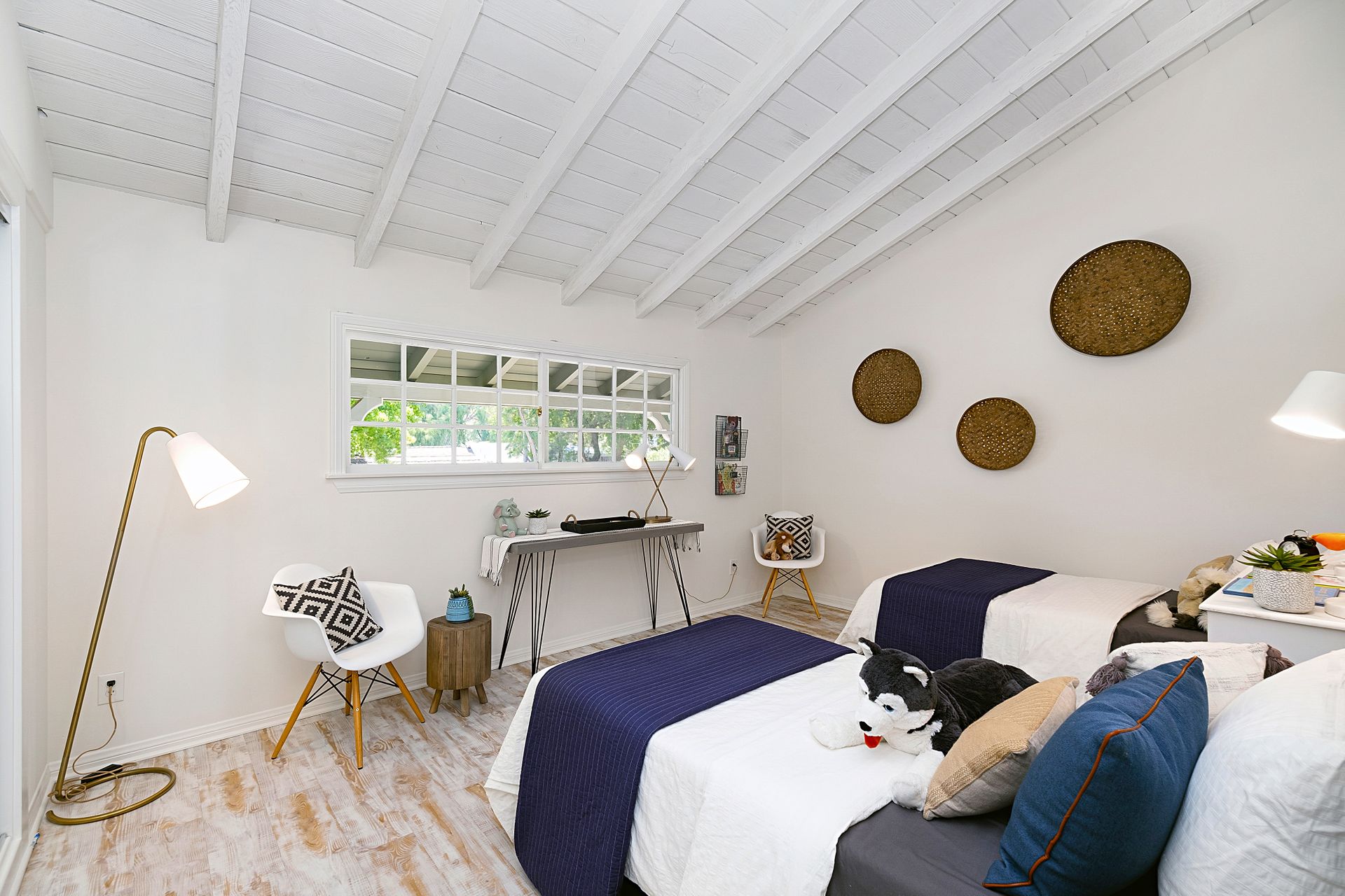 This charming bungalow is nestled in a great location in the canyons of Woodland Hills, south of Ventura Boulevard. This light-filled home features vaulted wood beam ceilings, plank flooring, two large bedrooms and an open kitchen with oak cabinetry, a pantry, butcher block counter and inlaid tile. The spacious owner's suite has a cozy sitting area with French doors that open to the patio. The large guest bedroom has vaulted, wood ceilings and lots of light. There is an attached two-car tandem garage, and the private brick-lined patio is ideal for relaxing in the sun or alfresco dining under the stars. The property provides easy access to shopping and entertainment in Woodland Hills, and it's a short drive through Topanga Canyon to beaches. Don’t miss this great opportunity to live in a special community surrounded by natural beauty.