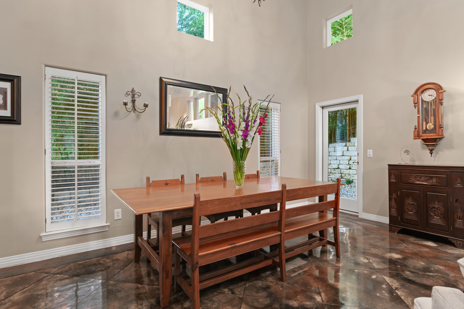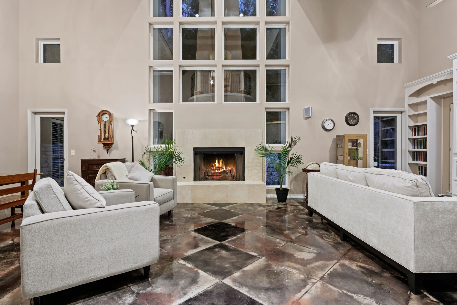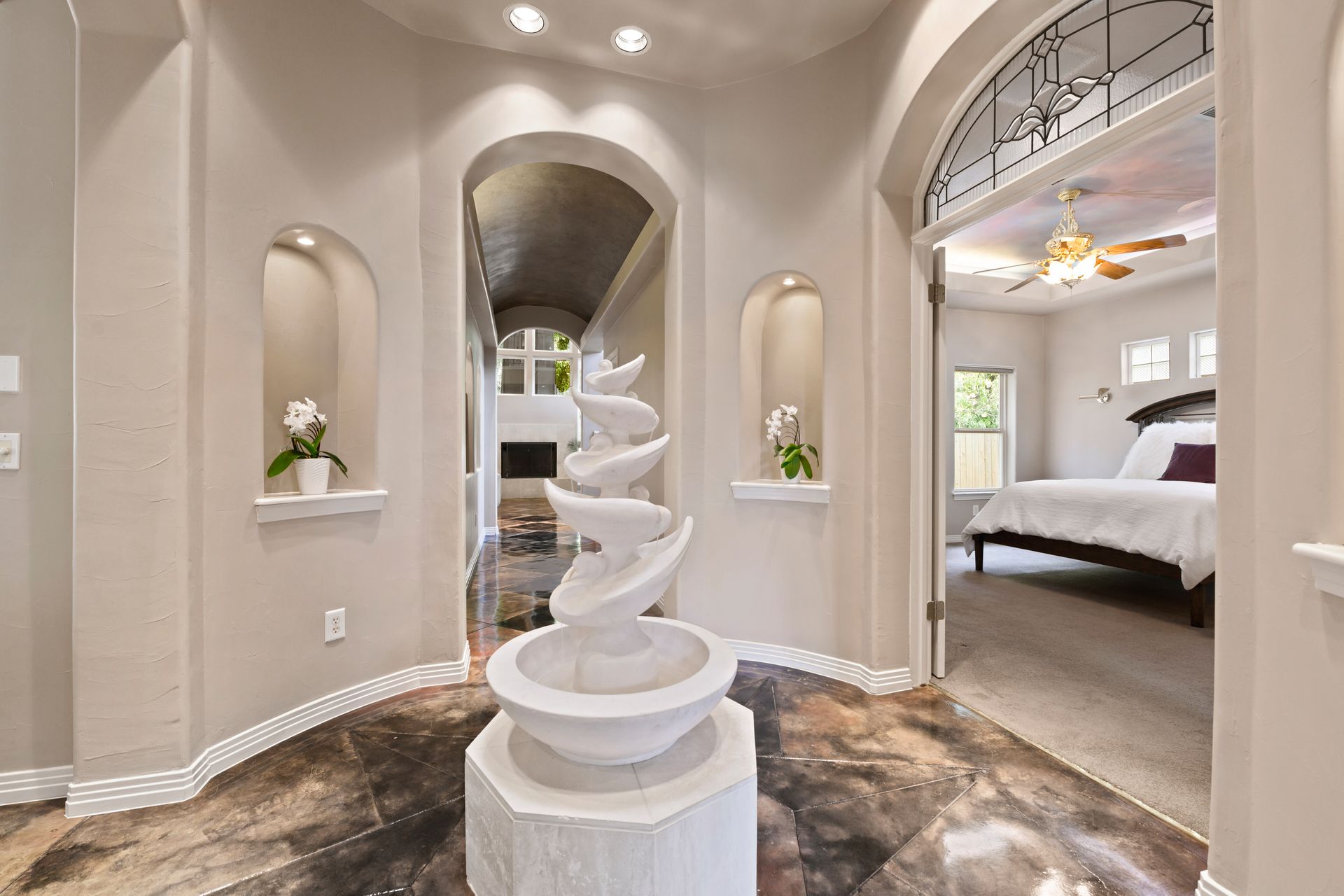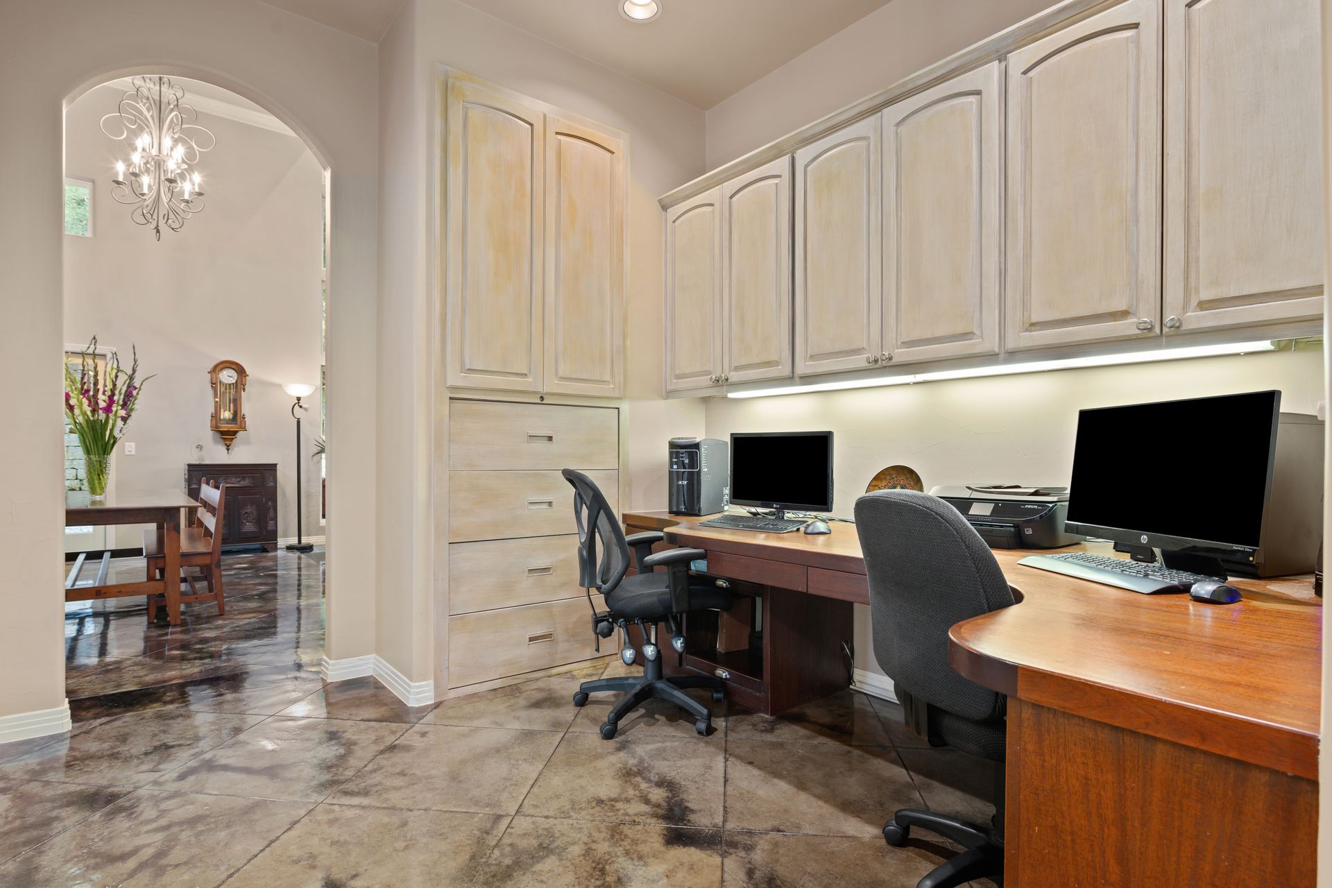 From the moment you enter the home, you know you are in for something special. You are greeted by calming sounds from a beautiful water feature, and polished concrete floors. As you move through the home, you will notice a well thought out floor plan with a built-in office for two just off the kitchen, ideal for working from home. Well-appointed kitchen with Viking double oven, with plenty of cabinet space. Move into the soaring 20 foot ceilings of the grand living room and dining, where you will hold exquisite parties for guests and friends. Owner's retreat is on main level where you will enjoy a quiet and tranquil luxury bath with oversized jetted bathtub and large walk in shower.