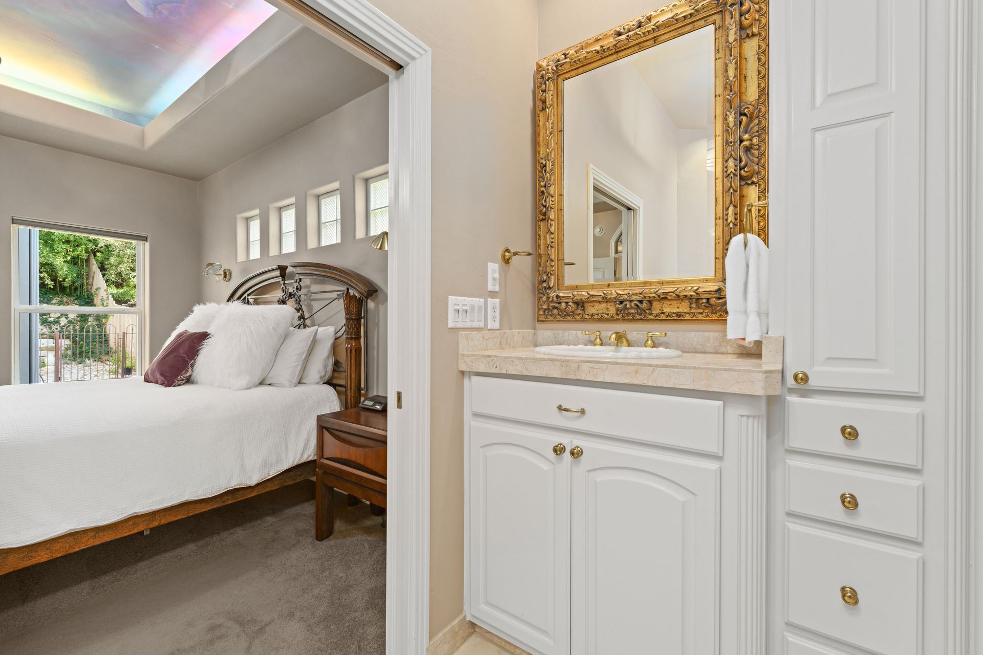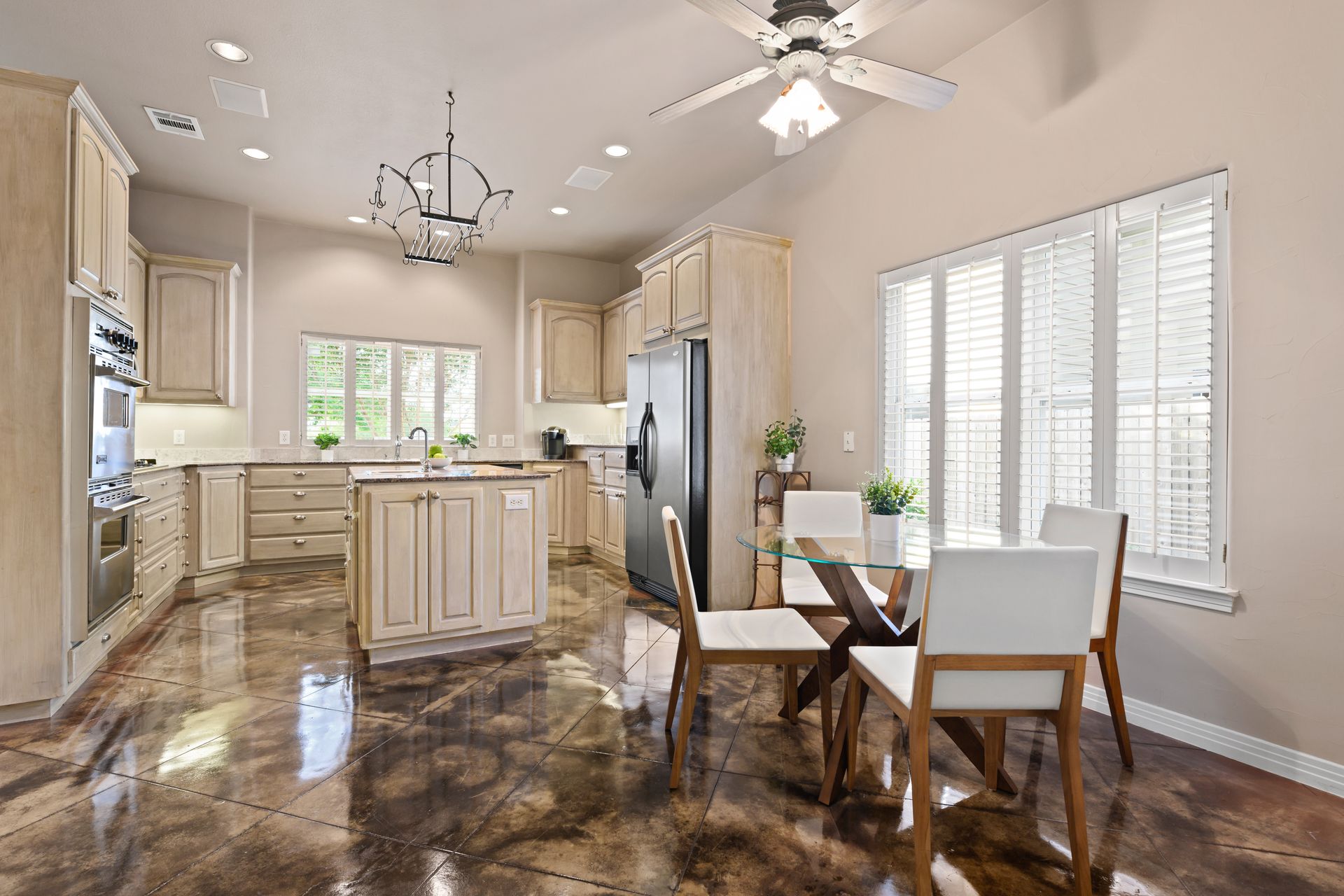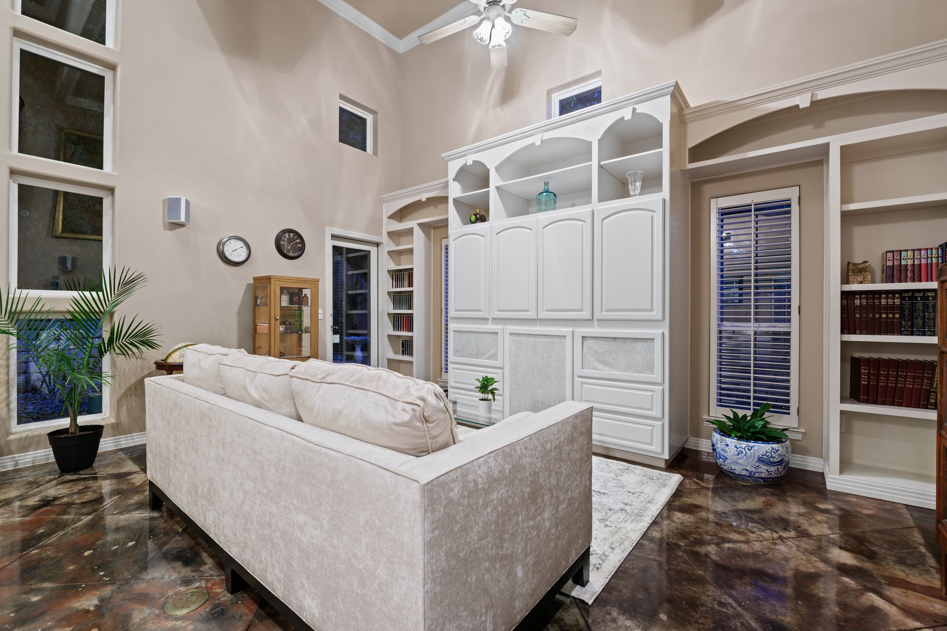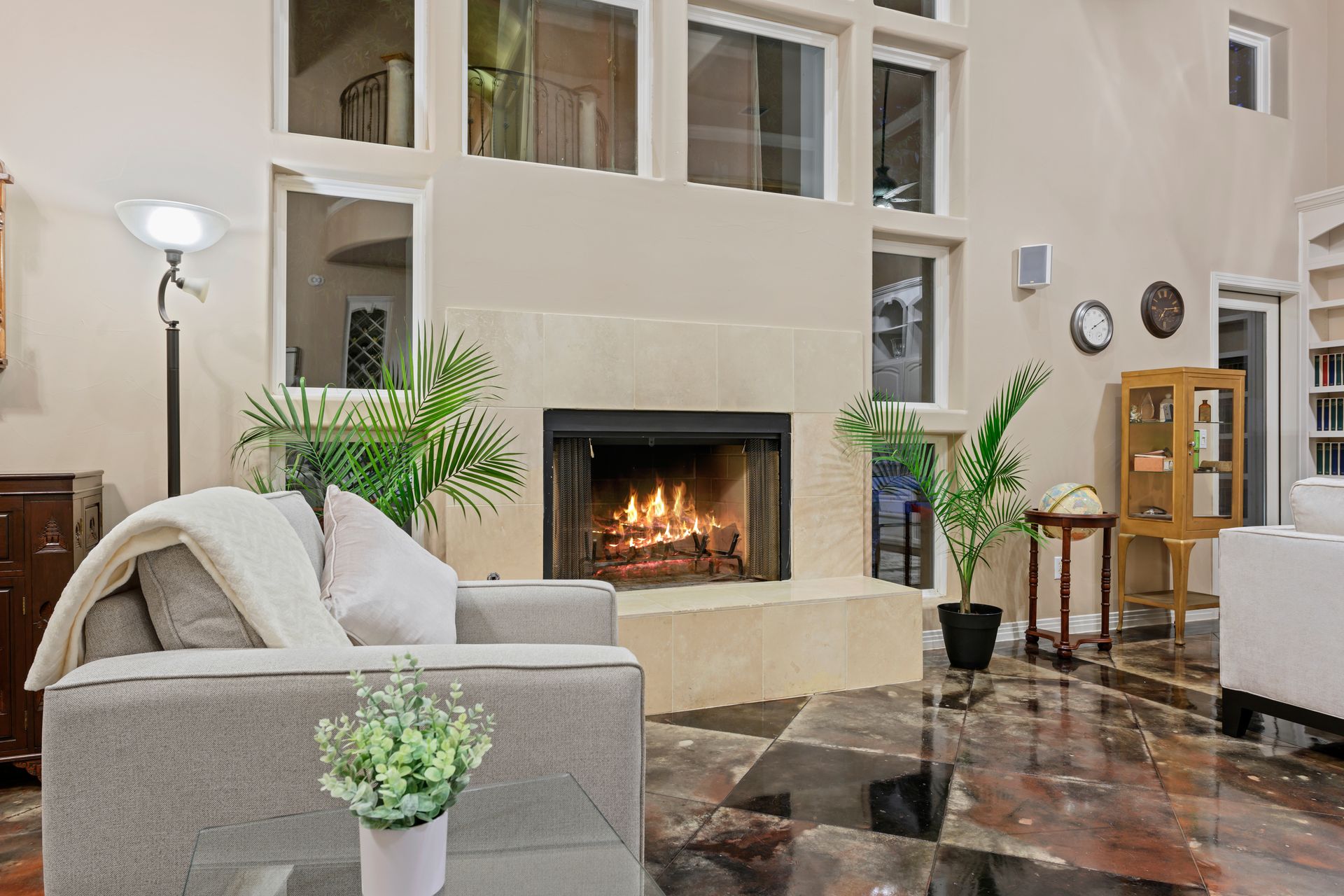 From the moment you enter the home, you know you are in for something special. You are greeted by calming sounds from a beautiful water feature, and polished concrete floors. As you move through the home, you will notice a well thought out floor plan with a built-in office for two just off the kitchen, ideal for working from home. Well-appointed kitchen with Viking double oven, with plenty of cabinet space. Move into the soaring 20 foot ceilings of the grand living room and dining, where you will hold exquisite parties for guests and friends. Owner's retreat is on main level where you will enjoy a quiet and tranquil luxury bath with oversized jetted bathtub and large walk in shower.