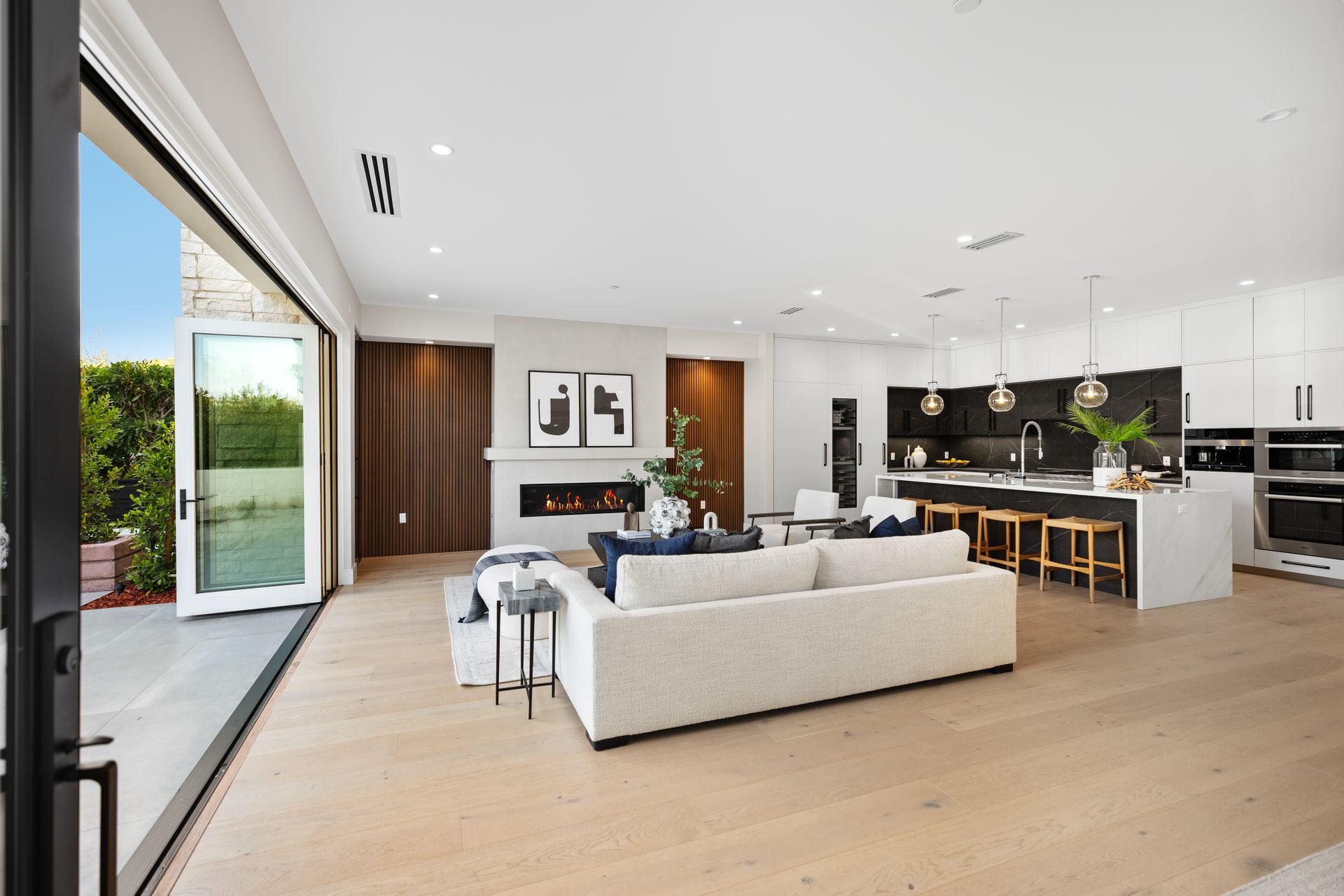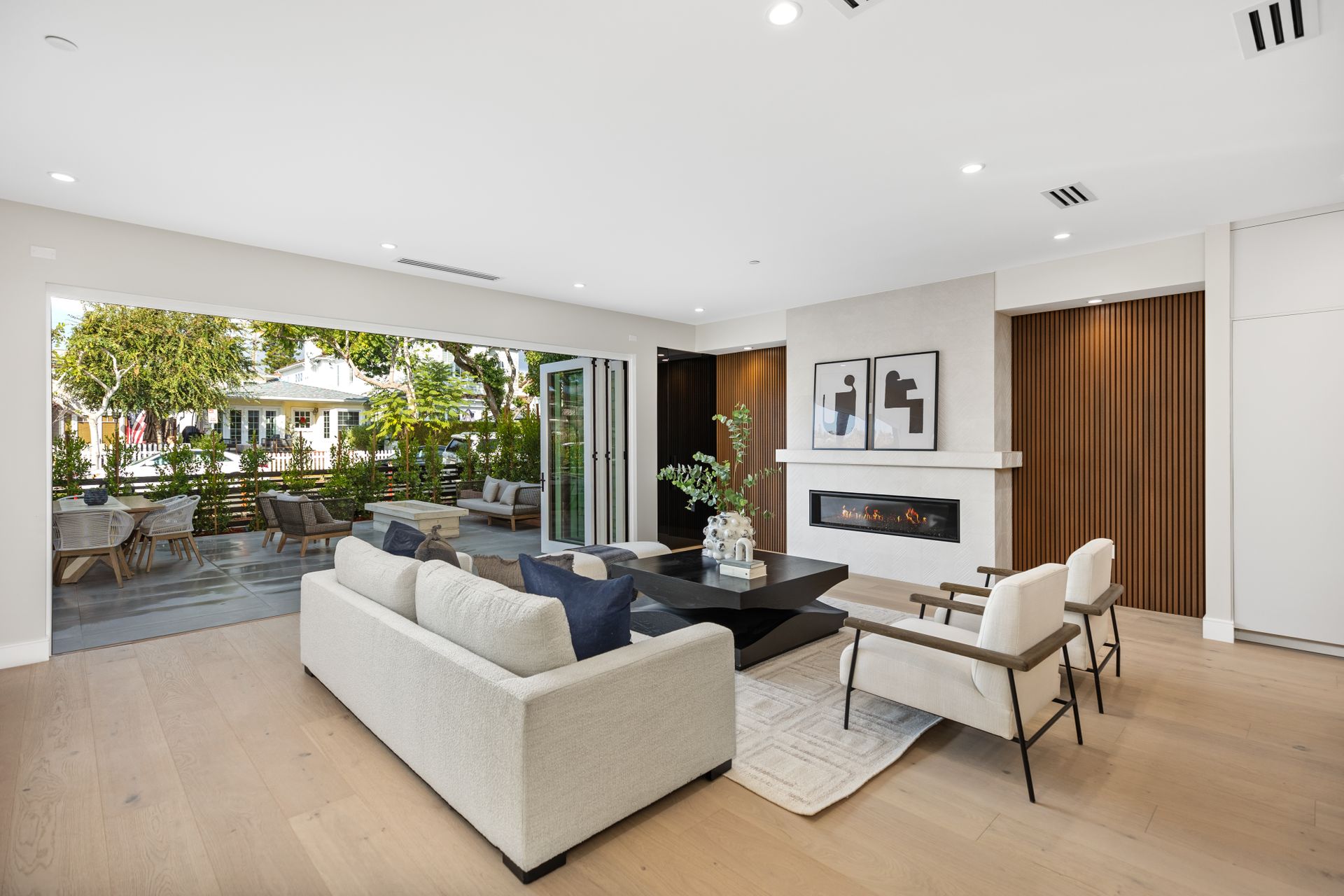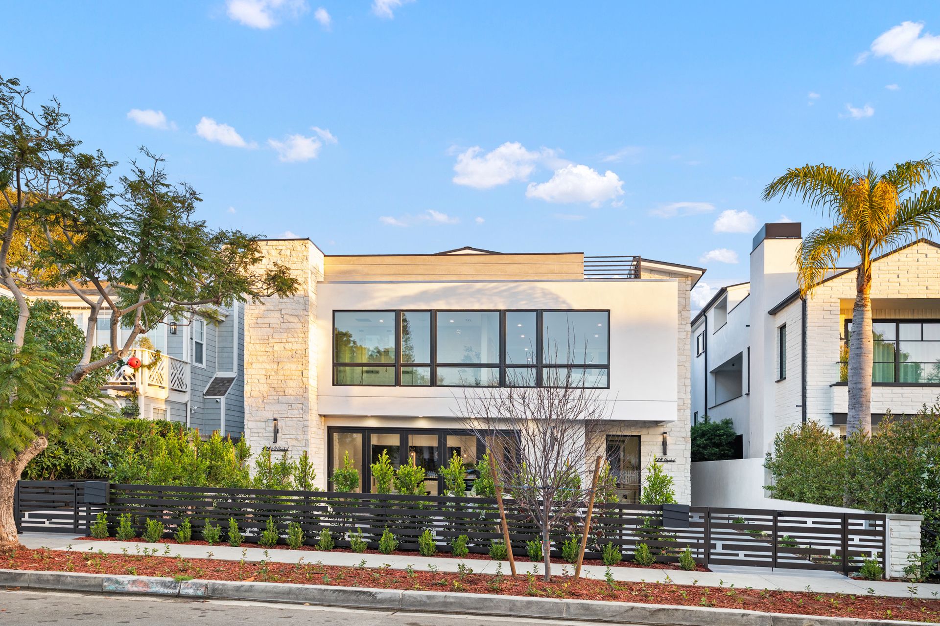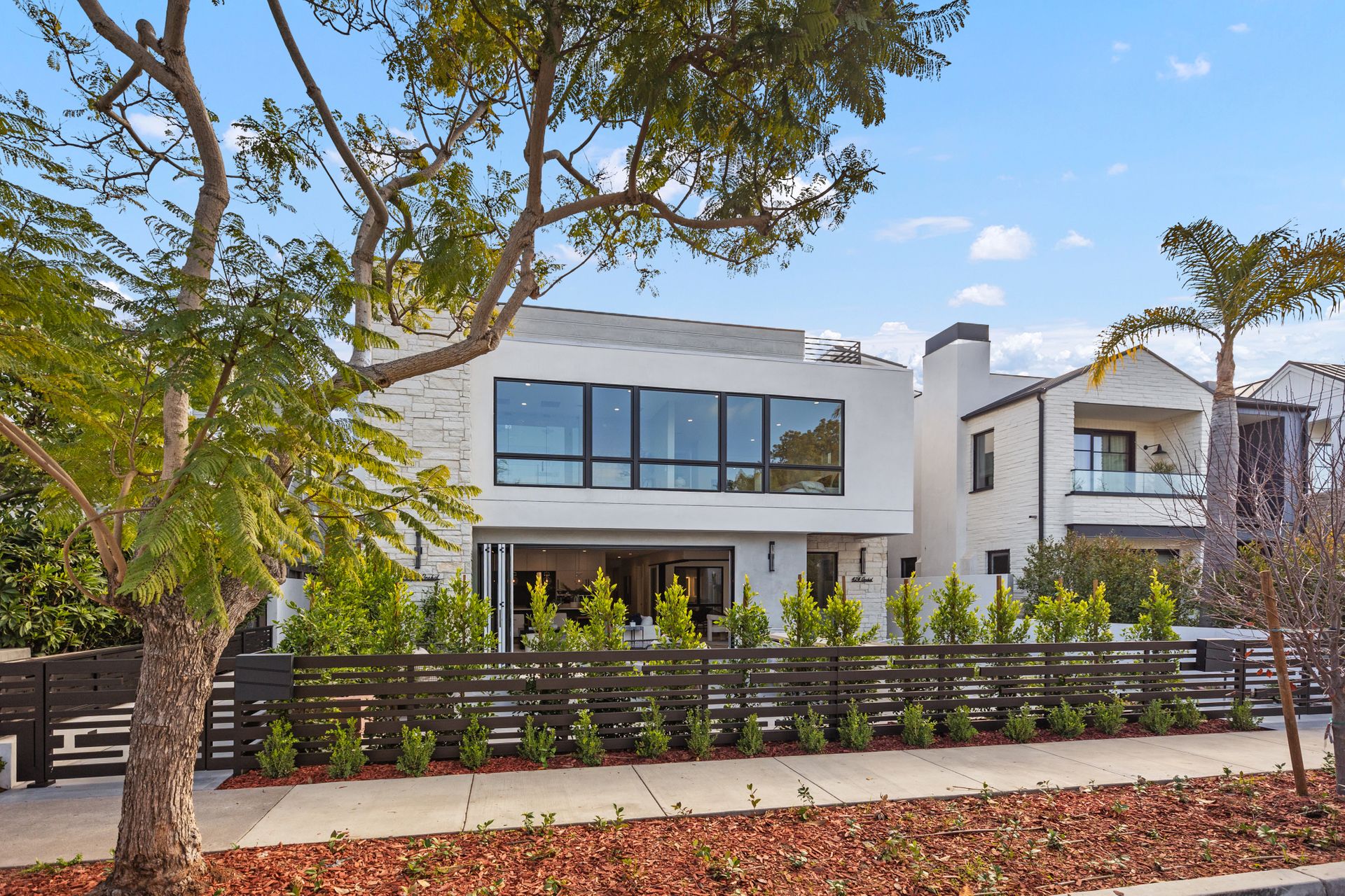 Nestled on the exclusive 400 Block of Flower Street, 424 Orchid Avenue in Corona Del Mar stands out as a remarkable masterpiece with a rare 45-foot lot. This brand-new construction residence is a testament to Organic Modern design, seamlessly blending natural elements with contemporary aesthetics. Upon entry, abundant natural light welcomes you through bifold windows, revealing a spacious front patio highlighted with a gorgeous firepit and ample seating—an ideal space for relaxation and entertainment. The expansive great room boasts a modern fireplace with exquisite porcelain tiles, serving as a refined focal point. The heart of the home is a Porcelanosa two-tone custom kitchen, meticulously crafted in Spain—a dream for culinary enthusiasts. It is equipped with top-of-the-line Miele appliances and an integrated espresso brewing system. A dedicated storage space caters to the wine connoisseur. Effortless entertainment unfolds in the inviting courtyard seamlessly connected to the kitchen and dining area, fostering a delightful flow for al fresco gatherings. Other features on the first floor include an ensuite bedroom/office, providing versatile living space for guests or facilitating remote work from home, extra storage, and a luxurious powder room for guests. Ascend to the second floor to find the primary suite, featuring a lavish bathroom embellished with luxurious Walker Zanger tiles. Large windows, stunning custom walk-in closets, and an enclosed patio create an intimate outdoor oasis. Two additional en-suite bedrooms on this level offer comfort and privacy, complemented by a dedicated laundry room for practicality. Enjoy wide-ranging views of Corona Del Mar village, city lights, sunsets, and picturesque Spyglass hills all year round on the spacious roof-top with a modern multi-color flame fireplace, adorned with beautiful stone detailing and ample seating.