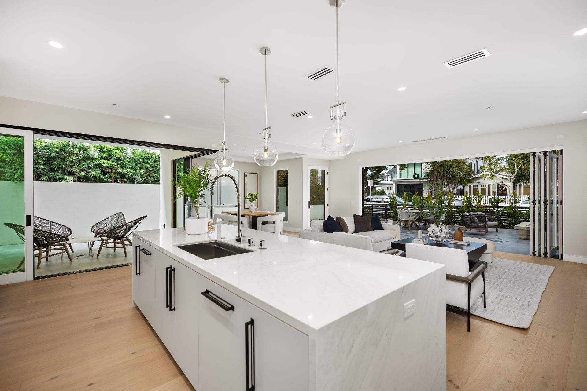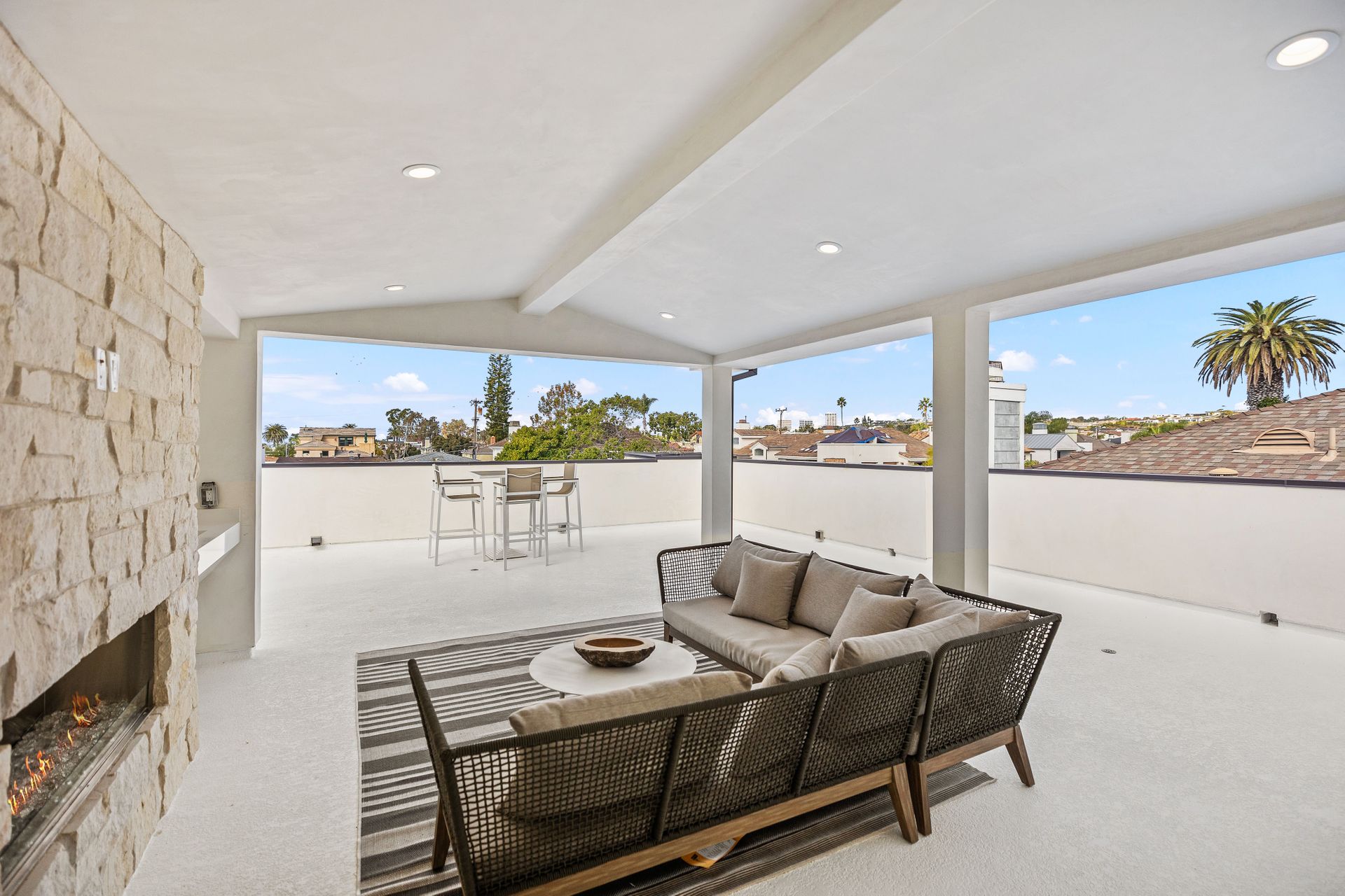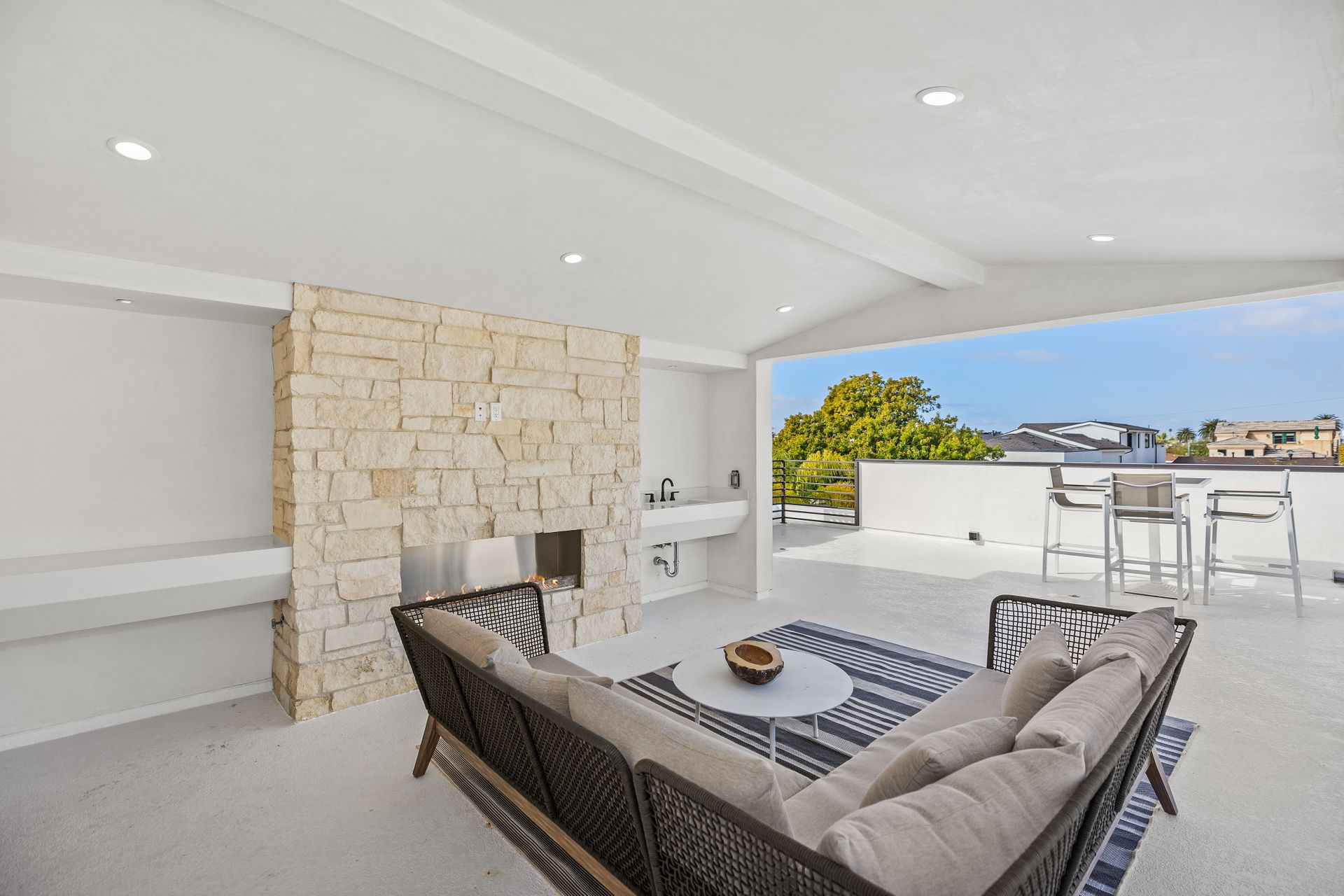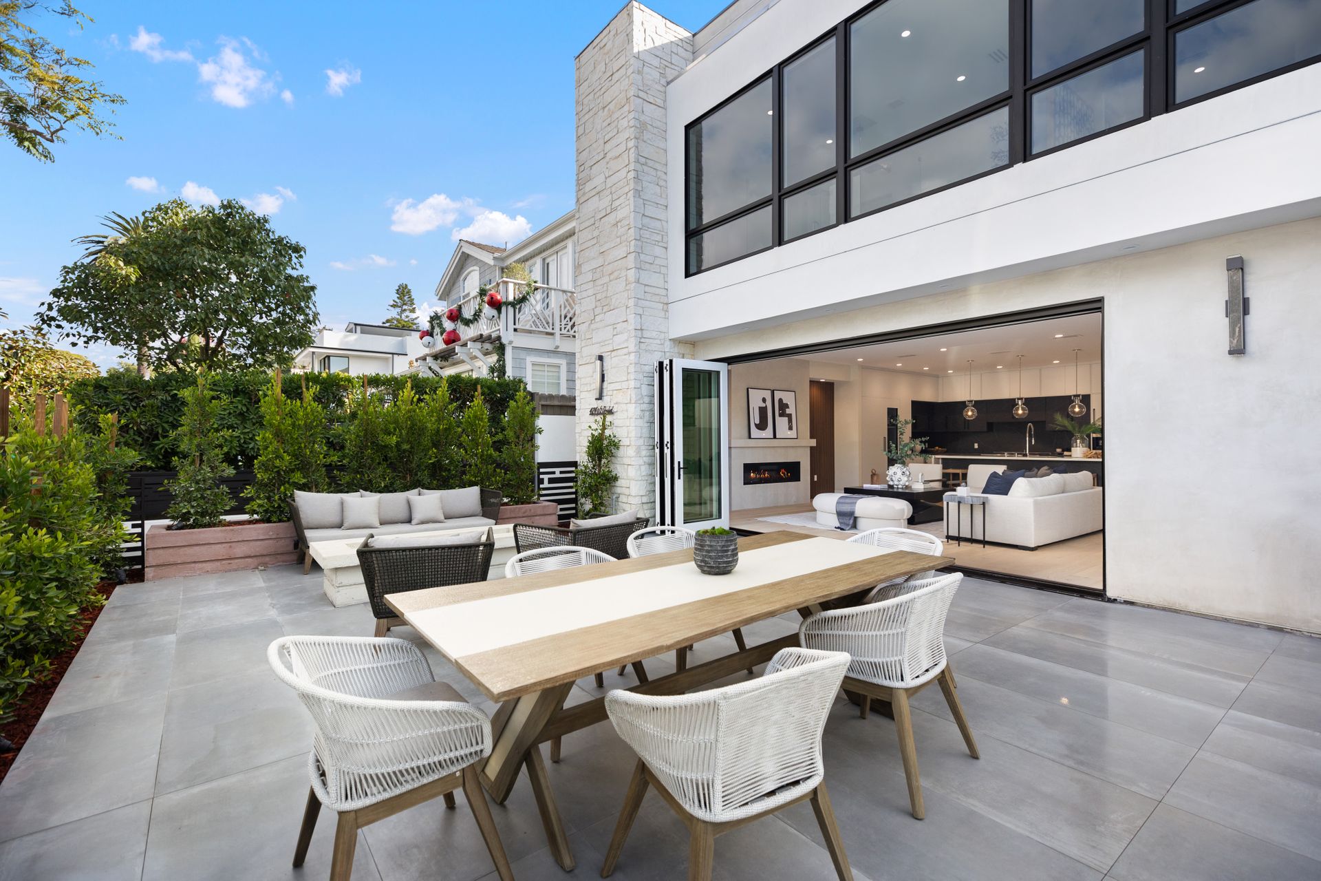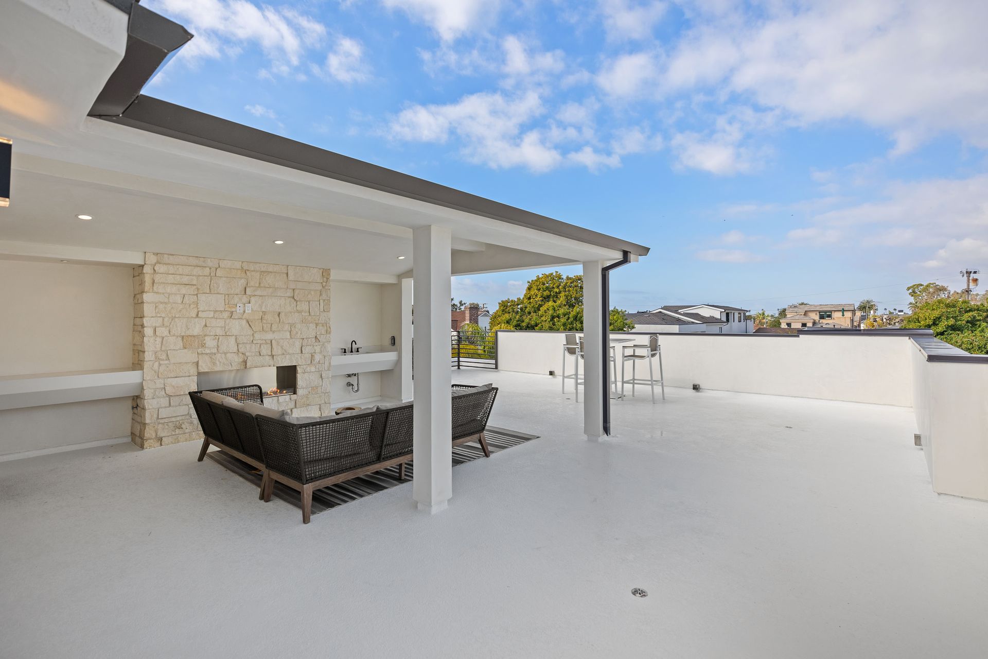 Nestled on the exclusive 400 Block of Flower Street, 424 Orchid Avenue in Corona Del Mar stands out as a remarkable masterpiece with a rare 45-foot lot. This brand-new construction residence is a testament to Organic Modern design, seamlessly blending natural elements with contemporary aesthetics. Upon entry, abundant natural light welcomes you through bifold windows, revealing a spacious front patio highlighted with a gorgeous firepit and ample seating—an ideal space for relaxation and entertainment. The expansive great room boasts a modern fireplace with exquisite porcelain tiles, serving as a refined focal point. The heart of the home is a Porcelanosa two-tone custom kitchen, meticulously crafted in Spain—a dream for culinary enthusiasts. It is equipped with top-of-the-line Miele appliances and an integrated espresso brewing system. A dedicated storage space caters to the wine connoisseur. Effortless entertainment unfolds in the inviting courtyard seamlessly connected to the kitchen and dining area, fostering a delightful flow for al fresco gatherings. Other features on the first floor include an ensuite bedroom/office, providing versatile living space for guests or facilitating remote work from home, extra storage, and a luxurious powder room for guests. Ascend to the second floor to find the primary suite, featuring a lavish bathroom embellished with luxurious Walker Zanger tiles. Large windows, stunning custom walk-in closets, and an enclosed patio create an intimate outdoor oasis. Two additional en-suite bedrooms on this level offer comfort and privacy, complemented by a dedicated laundry room for practicality. Enjoy wide-ranging views of Corona Del Mar village, city lights, sunsets, and picturesque Spyglass hills all year round on the spacious roof-top with a modern multi-color flame fireplace, adorned with beautiful stone detailing and ample seating.