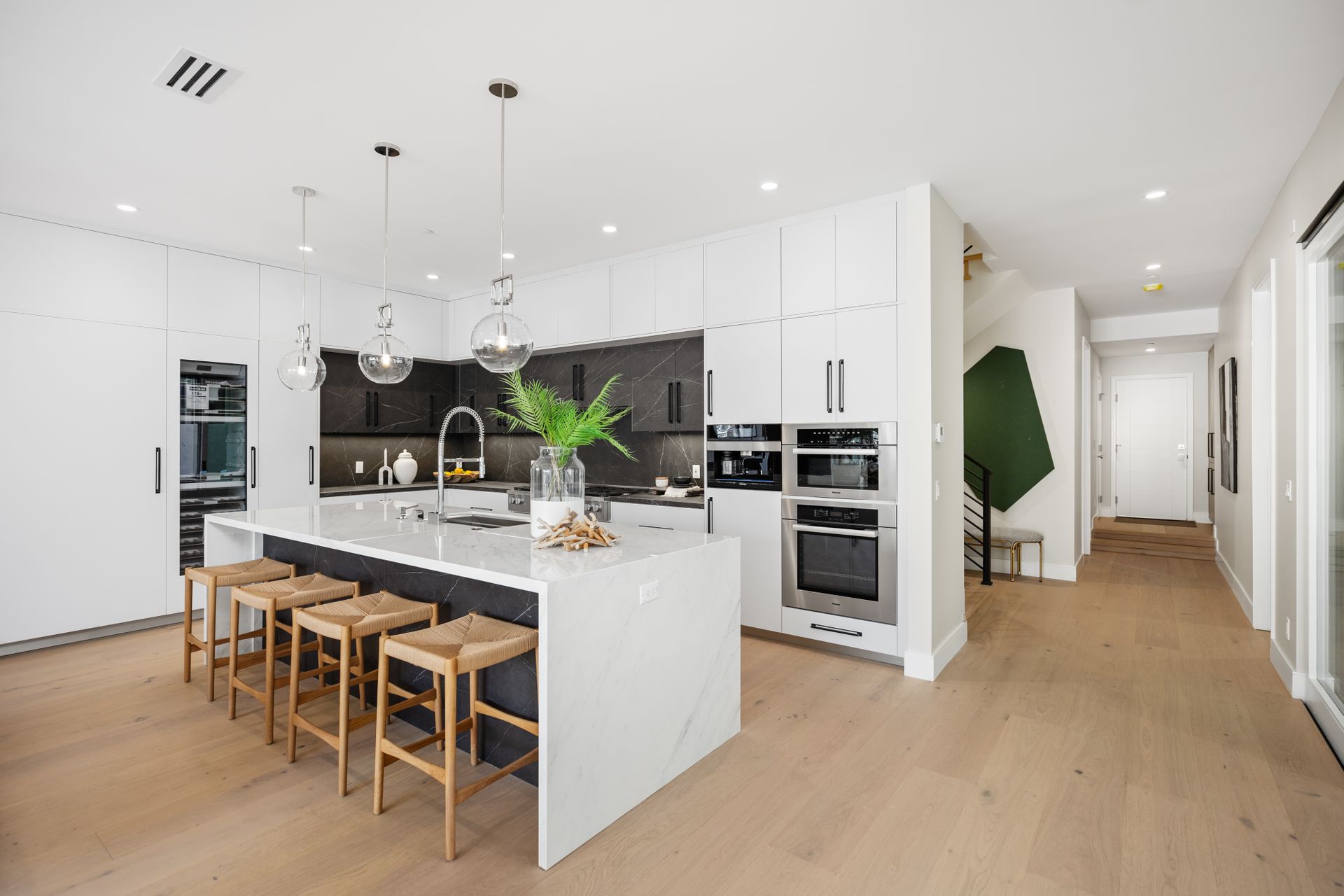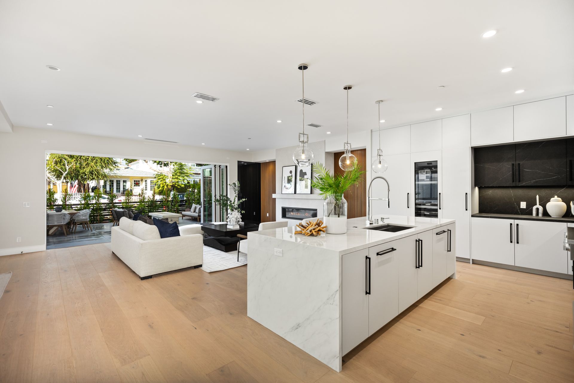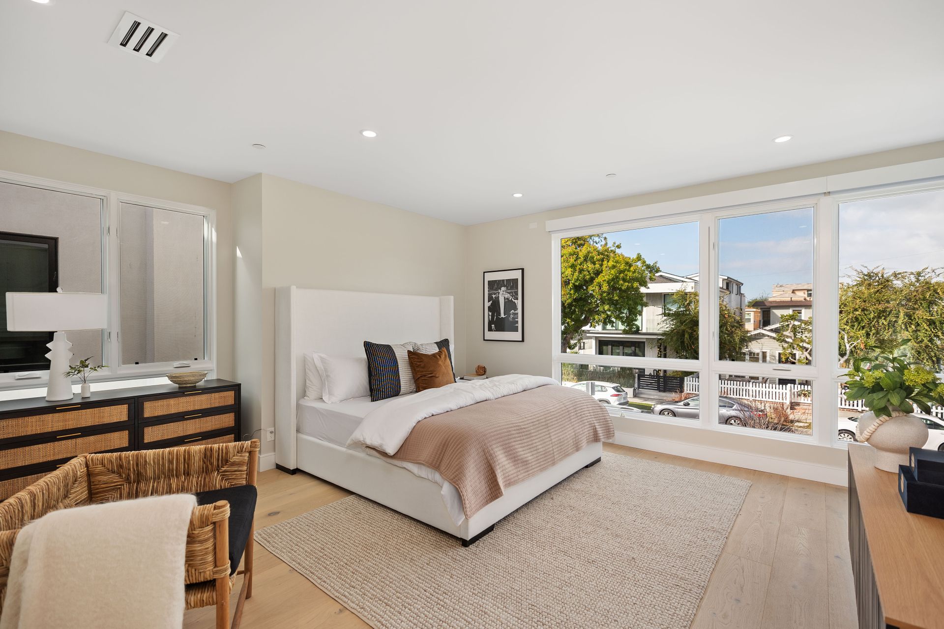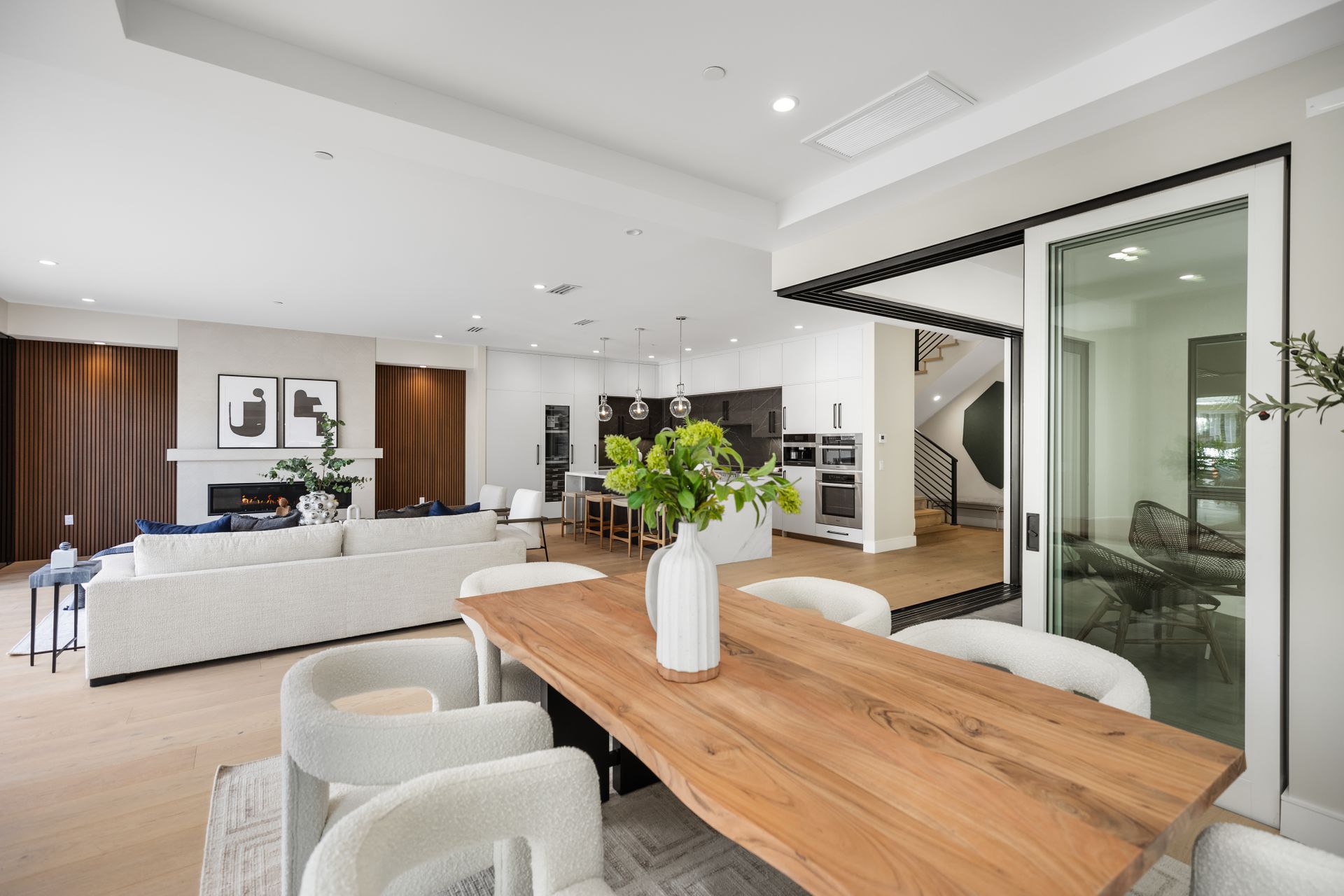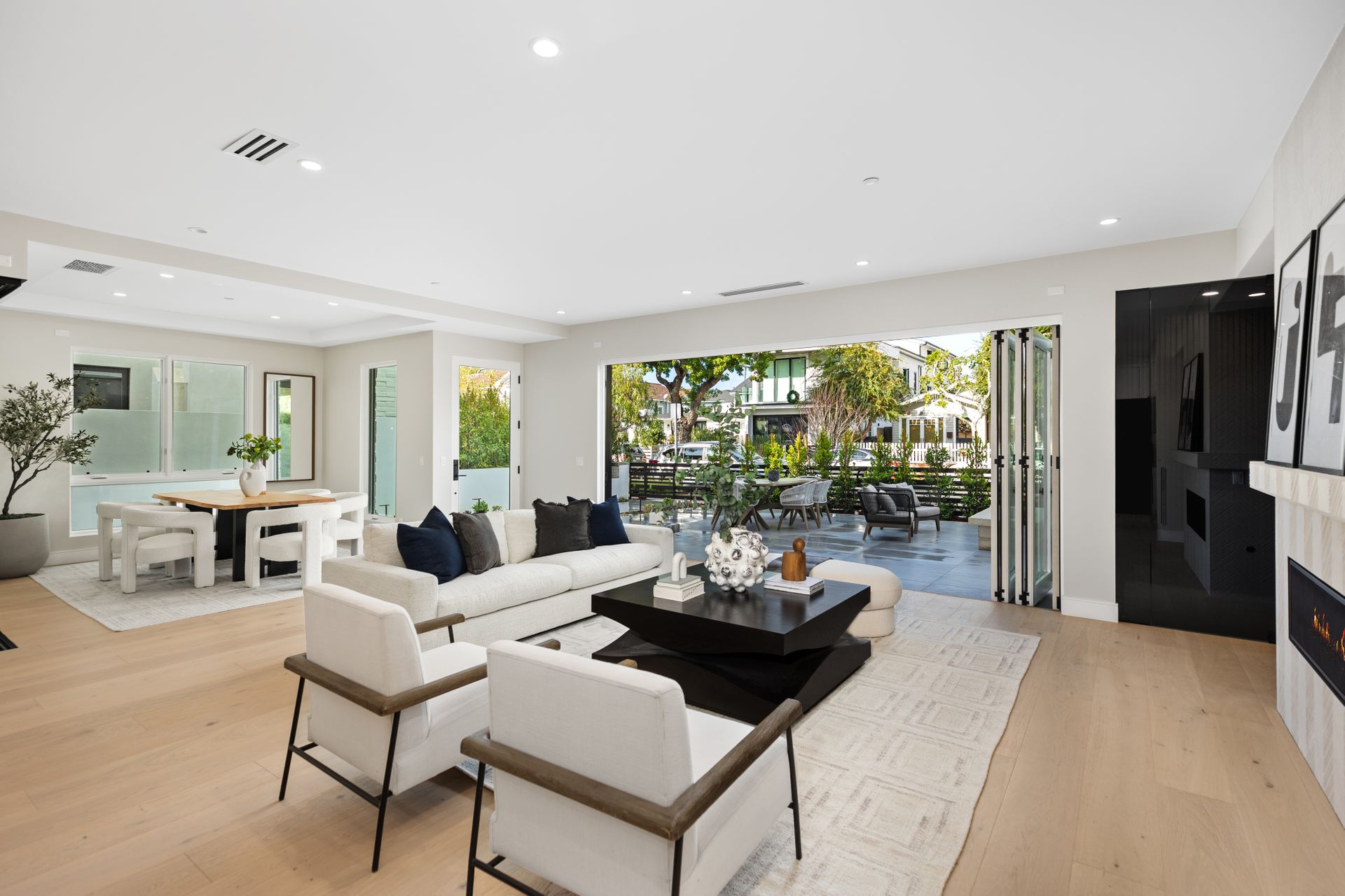 Nestled on the exclusive 400 Block of Flower Street, 424 Orchid Avenue in Corona Del Mar stands out as a remarkable masterpiece with a rare 45-foot lot. This brand-new construction residence is a testament to Organic Modern design, seamlessly blending natural elements with contemporary aesthetics. Upon entry, abundant natural light welcomes you through bifold windows, revealing a spacious front patio highlighted with a gorgeous firepit and ample seating—an ideal space for relaxation and entertainment. The expansive great room boasts a modern fireplace with exquisite porcelain tiles, serving as a refined focal point. The heart of the home is a Porcelanosa two-tone custom kitchen, meticulously crafted in Spain—a dream for culinary enthusiasts. It is equipped with top-of-the-line Miele appliances and an integrated espresso brewing system. A dedicated storage space caters to the wine connoisseur. Effortless entertainment unfolds in the inviting courtyard seamlessly connected to the kitchen and dining area, fostering a delightful flow for al fresco gatherings. Other features on the first floor include an ensuite bedroom/office, providing versatile living space for guests or facilitating remote work from home, extra storage, and a luxurious powder room for guests. Ascend to the second floor to find the primary suite, featuring a lavish bathroom embellished with luxurious Walker Zanger tiles. Large windows, stunning custom walk-in closets, and an enclosed patio create an intimate outdoor oasis. Two additional en-suite bedrooms on this level offer comfort and privacy, complemented by a dedicated laundry room for practicality. Enjoy wide-ranging views of Corona Del Mar village, city lights, sunsets, and picturesque Spyglass hills all year round on the spacious roof-top with a modern multi-color flame fireplace, adorned with beautiful stone detailing and ample seating.
