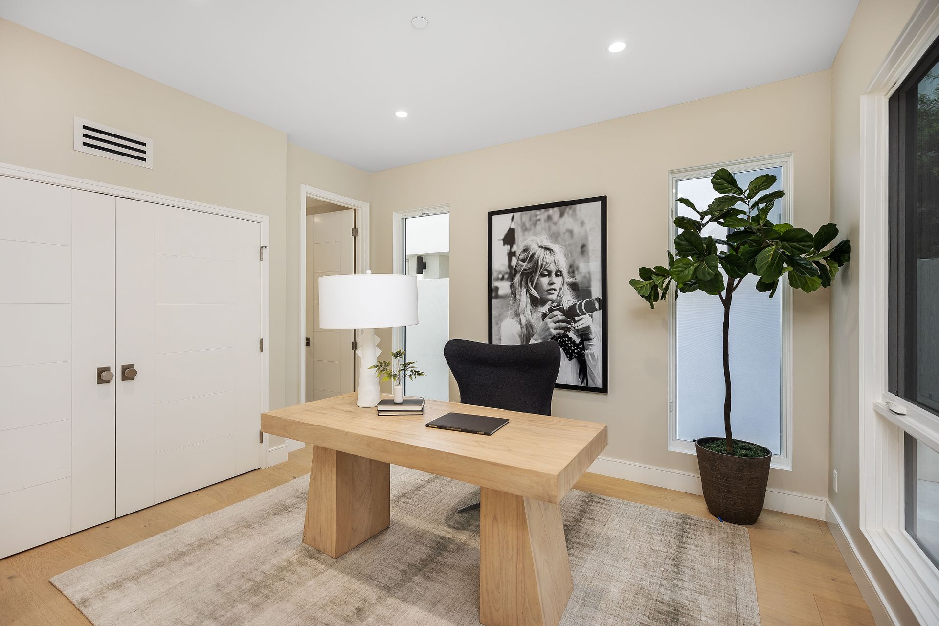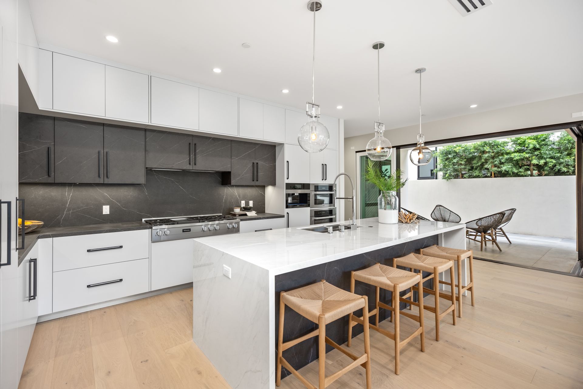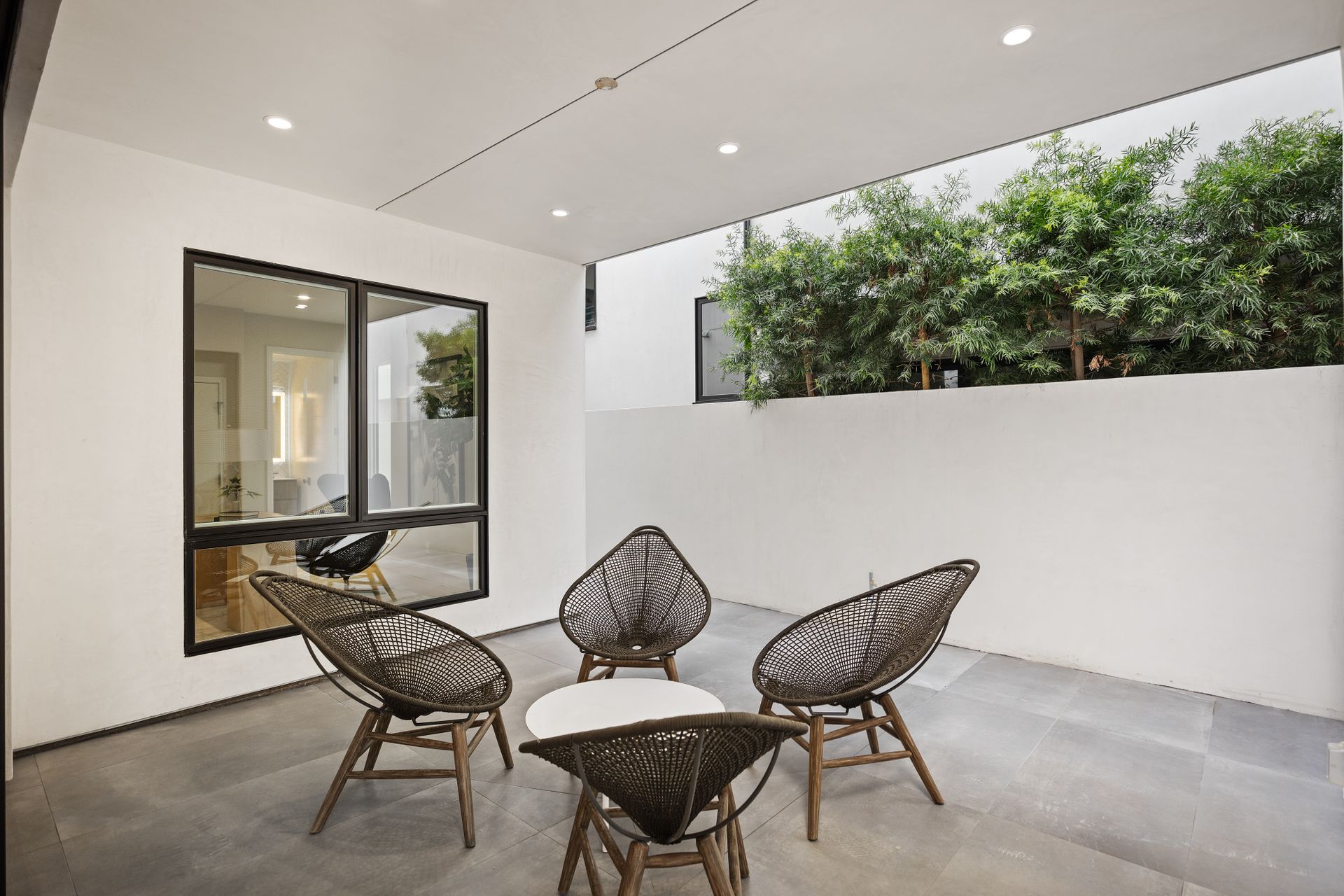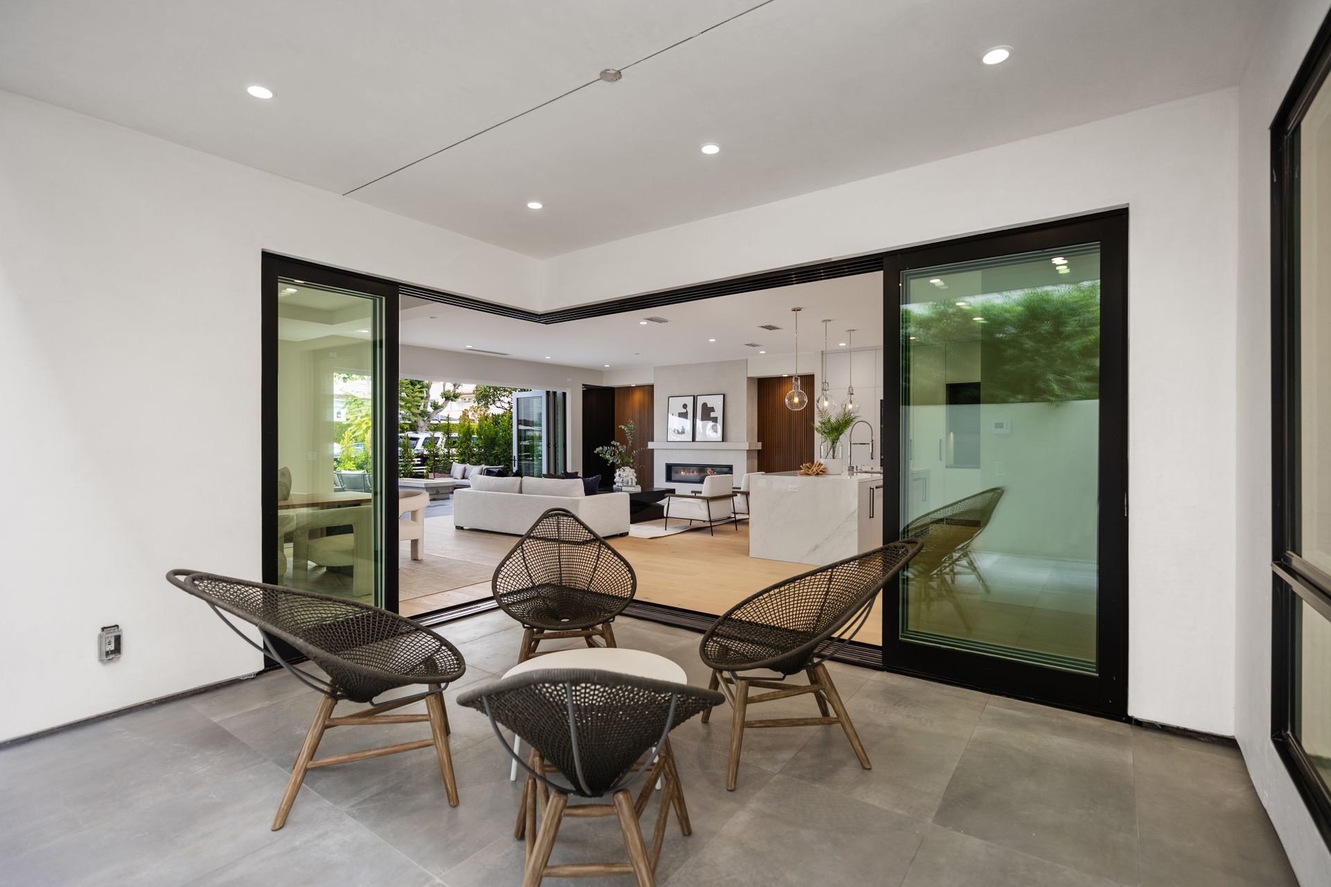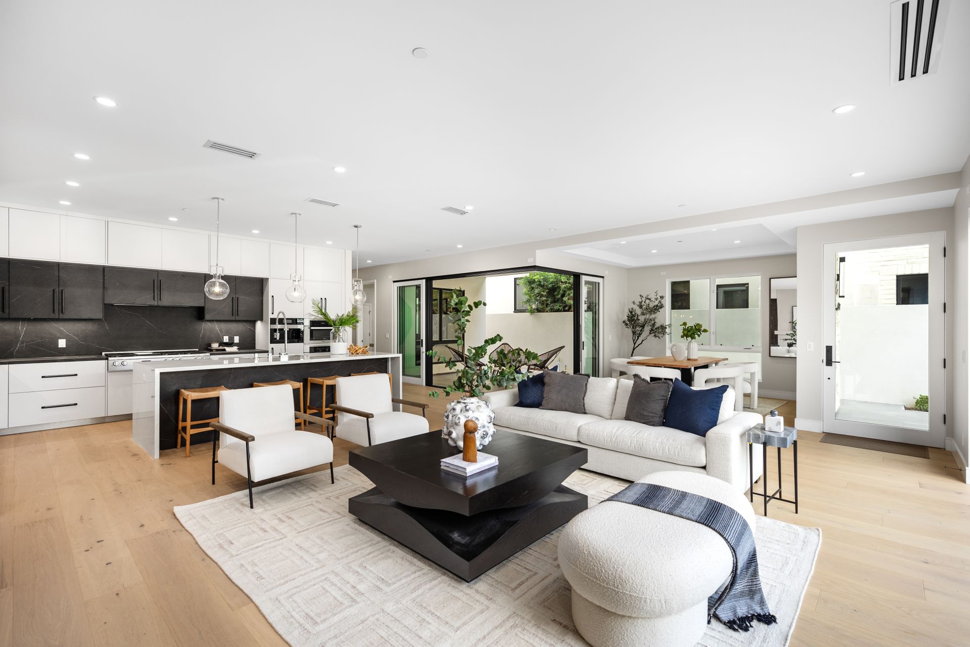 Nestled on the exclusive 400 Block of Flower Street, 424 Orchid Avenue in Corona Del Mar stands out as a remarkable masterpiece with a rare 45-foot lot. This brand-new construction residence is a testament to Organic Modern design, seamlessly blending natural elements with contemporary aesthetics. Upon entry, abundant natural light welcomes you through bifold windows, revealing a spacious front patio highlighted with a gorgeous firepit and ample seating—an ideal space for relaxation and entertainment. The expansive great room boasts a modern fireplace with exquisite porcelain tiles, serving as a refined focal point. The heart of the home is a Porcelanosa two-tone custom kitchen, meticulously crafted in Spain—a dream for culinary enthusiasts. It is equipped with top-of-the-line Miele appliances and an integrated espresso brewing system. A dedicated storage space caters to the wine connoisseur. Effortless entertainment unfolds in the inviting courtyard seamlessly connected to the kitchen and dining area, fostering a delightful flow for al fresco gatherings. Other features on the first floor include an ensuite bedroom/office, providing versatile living space for guests or facilitating remote work from home, extra storage, and a luxurious powder room for guests. Ascend to the second floor to find the primary suite, featuring a lavish bathroom embellished with luxurious Walker Zanger tiles. Large windows, stunning custom walk-in closets, and an enclosed patio create an intimate outdoor oasis. Two additional en-suite bedrooms on this level offer comfort and privacy, complemented by a dedicated laundry room for practicality. Enjoy wide-ranging views of Corona Del Mar village, city lights, sunsets, and picturesque Spyglass hills all year round on the spacious roof-top with a modern multi-color flame fireplace, adorned with beautiful stone detailing and ample seating.