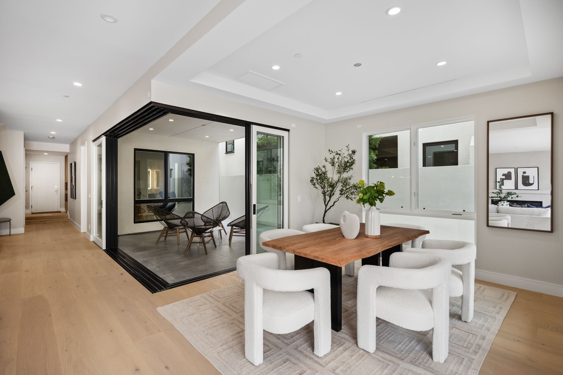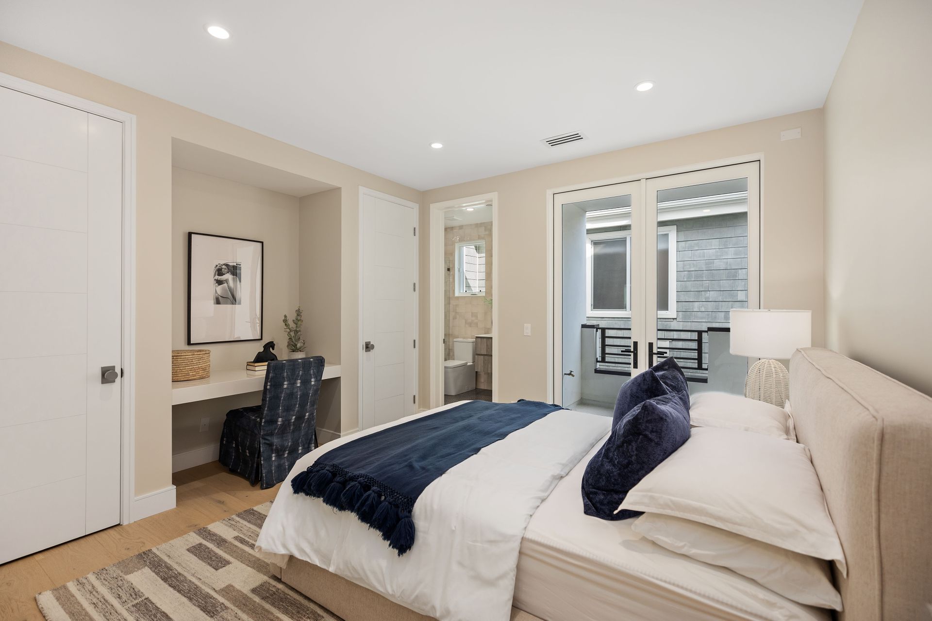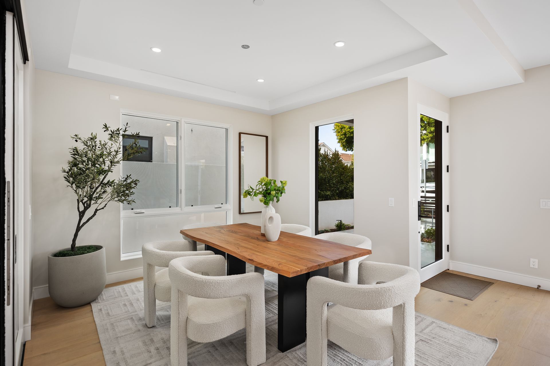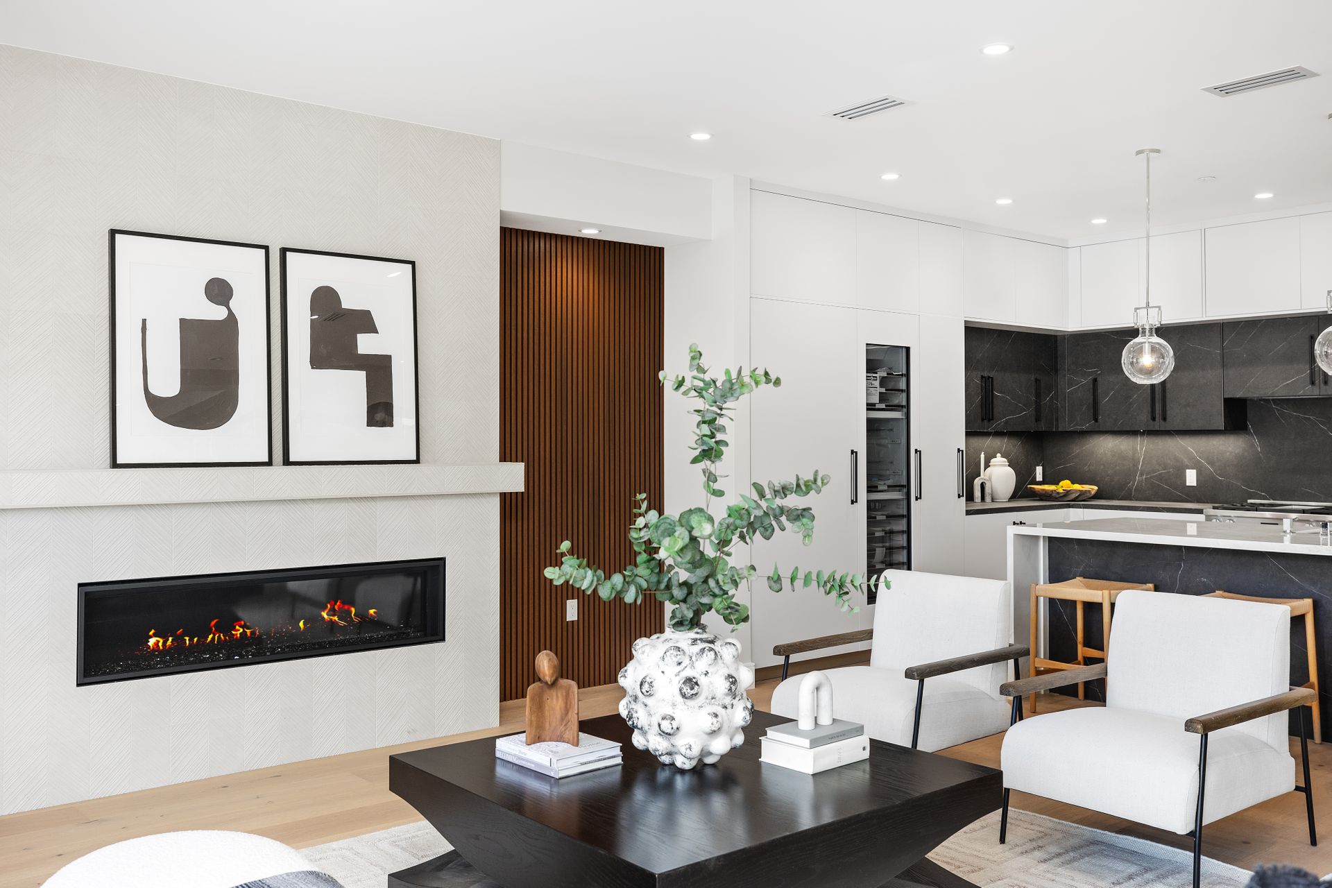 Nestled on the exclusive 400 Block of Flower Street, 424 Orchid Avenue in Corona Del Mar stands out as a remarkable masterpiece with a rare 45-foot lot. This brand-new construction residence is a testament to Organic Modern design, seamlessly blending natural elements with contemporary aesthetics. Upon entry, abundant natural light welcomes you through bifold windows, revealing a spacious front patio highlighted with a gorgeous firepit and ample seating—an ideal space for relaxation and entertainment. The expansive great room boasts a modern fireplace with exquisite porcelain tiles, serving as a refined focal point. The heart of the home is a Porcelanosa two-tone custom kitchen, meticulously crafted in Spain—a dream for culinary enthusiasts. It is equipped with top-of-the-line Miele appliances and an integrated espresso brewing system. A dedicated storage space caters to the wine connoisseur. Effortless entertainment unfolds in the inviting courtyard seamlessly connected to the kitchen and dining area, fostering a delightful flow for al fresco gatherings. Other features on the first floor include an ensuite bedroom/office, providing versatile living space for guests or facilitating remote work from home, extra storage, and a luxurious powder room for guests. Ascend to the second floor to find the primary suite, featuring a lavish bathroom embellished with luxurious Walker Zanger tiles. Large windows, stunning custom walk-in closets, and an enclosed patio create an intimate outdoor oasis. Two additional en-suite bedrooms on this level offer comfort and privacy, complemented by a dedicated laundry room for practicality. Enjoy wide-ranging views of Corona Del Mar village, city lights, sunsets, and picturesque Spyglass hills all year round on the spacious roof-top with a modern multi-color flame fireplace, adorned with beautiful stone detailing and ample seating.