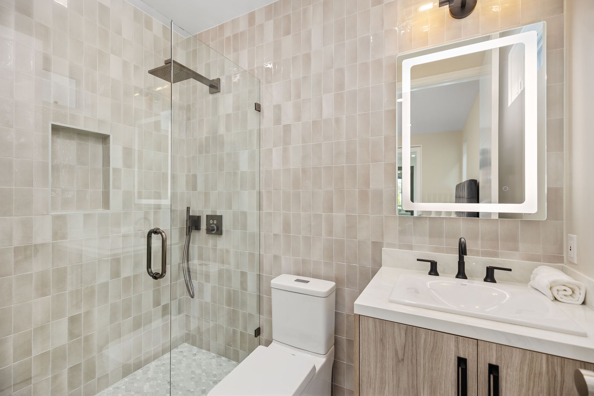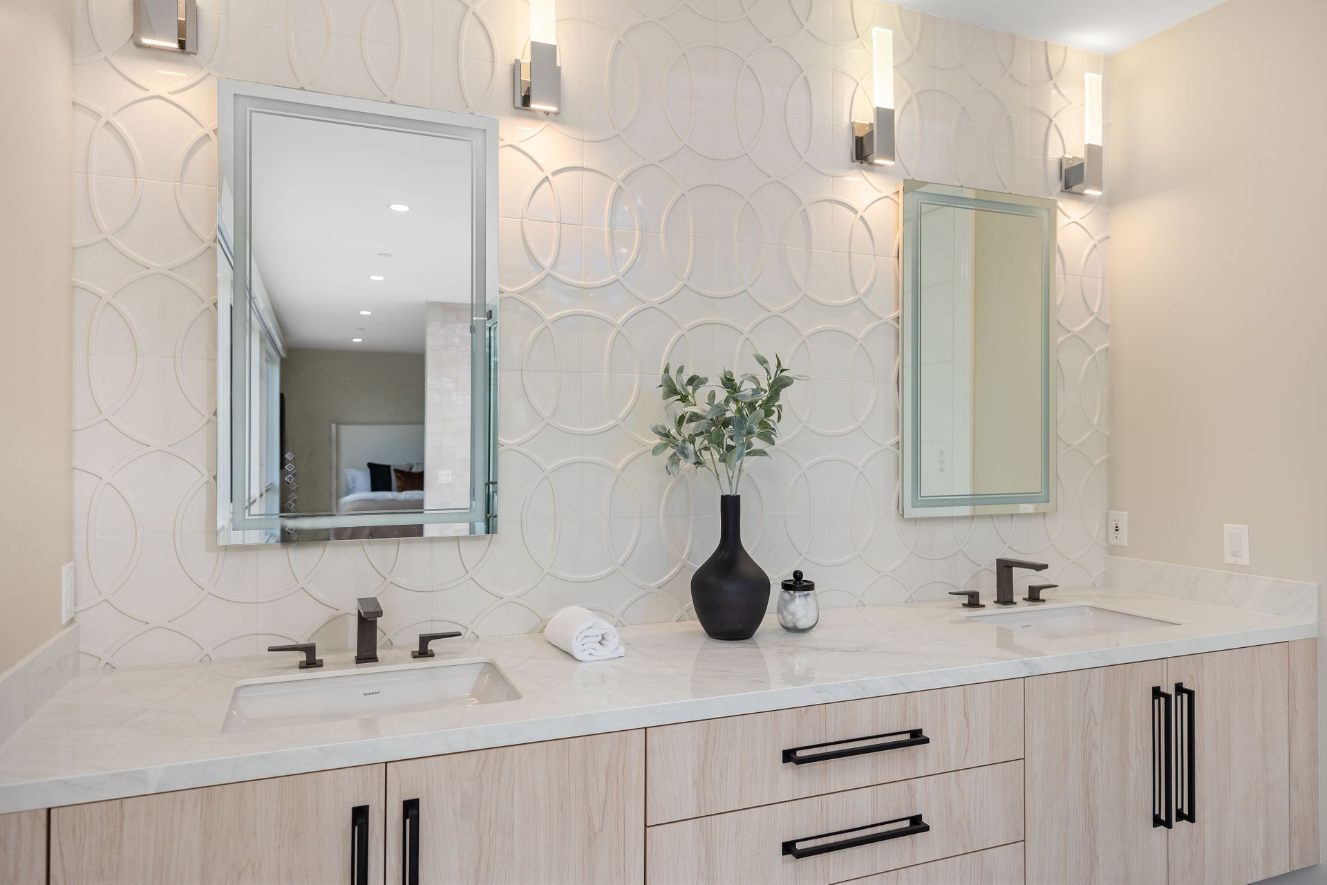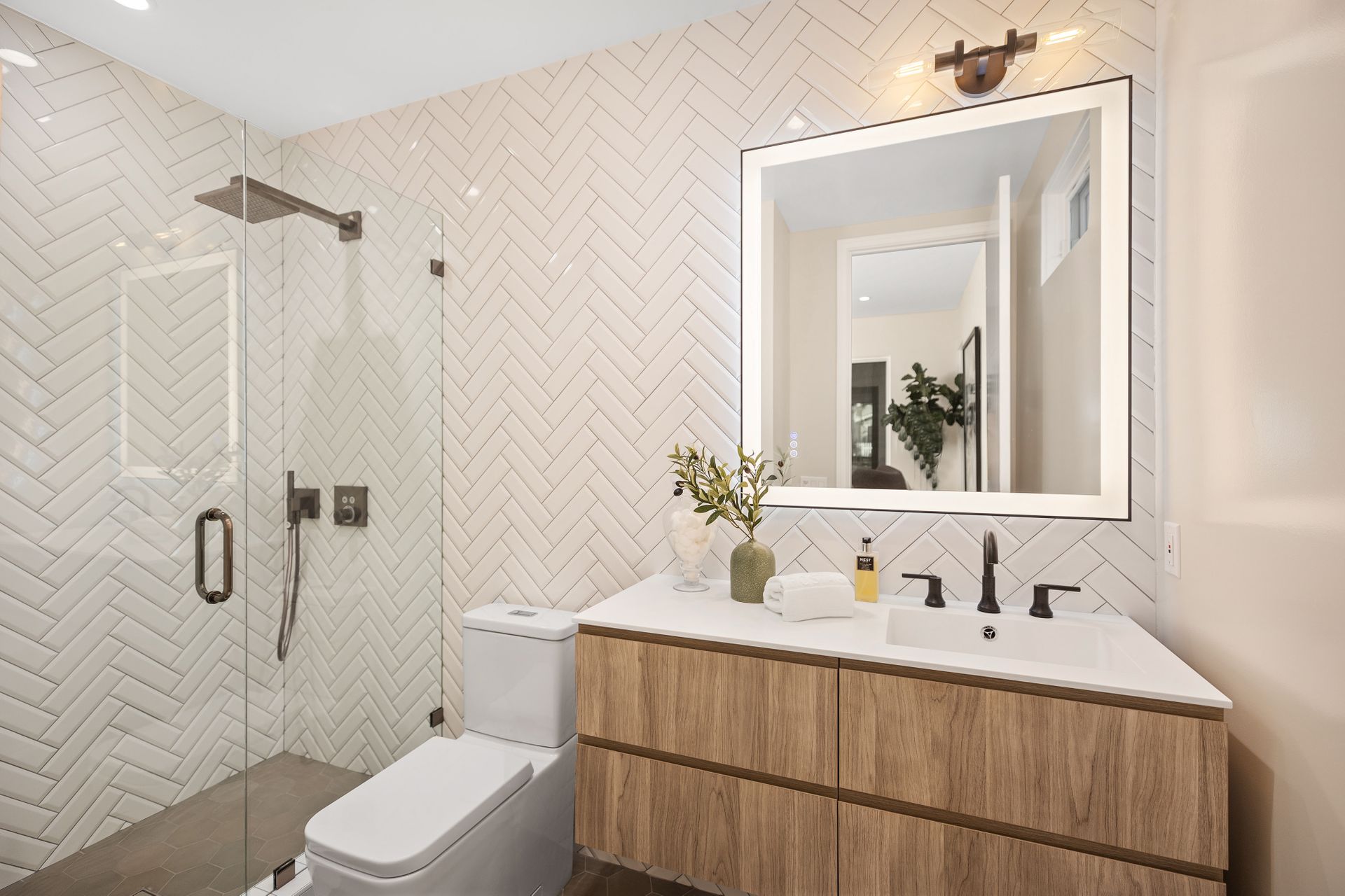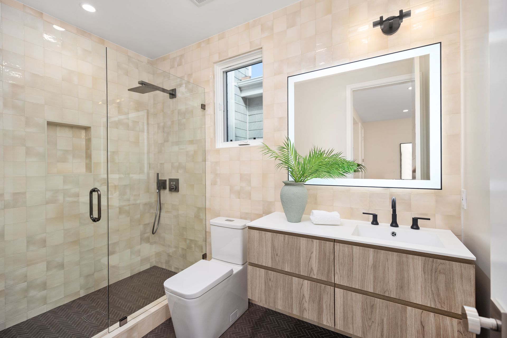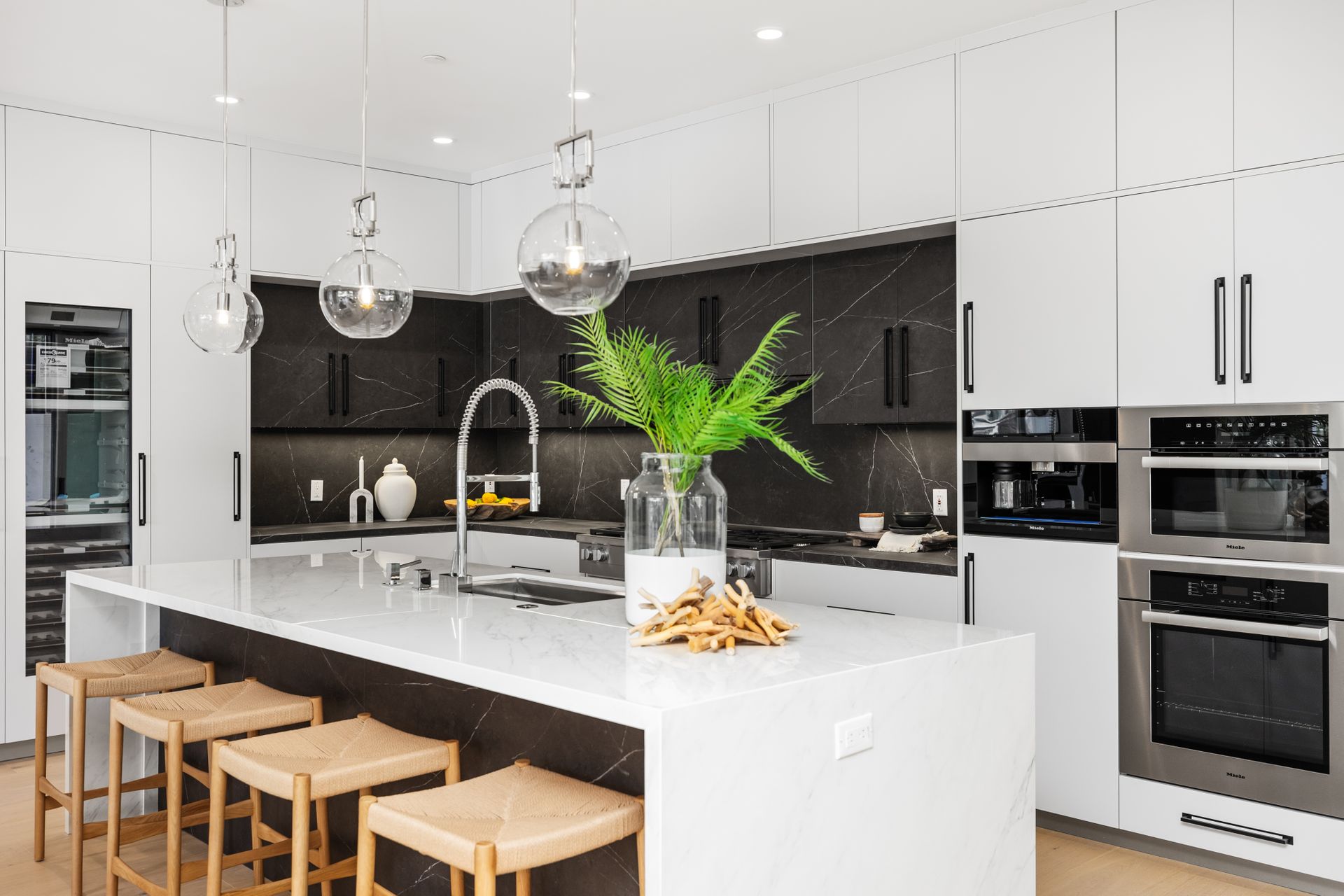 Nestled on the exclusive 400 Block of Flower Street, 424 Orchid Avenue in Corona Del Mar stands out as a remarkable masterpiece with a rare 45-foot lot. This brand-new construction residence is a testament to Organic Modern design, seamlessly blending natural elements with contemporary aesthetics. Upon entry, abundant natural light welcomes you through bifold windows, revealing a spacious front patio highlighted with a gorgeous firepit and ample seating—an ideal space for relaxation and entertainment. The expansive great room boasts a modern fireplace with exquisite porcelain tiles, serving as a refined focal point. The heart of the home is a Porcelanosa two-tone custom kitchen, meticulously crafted in Spain—a dream for culinary enthusiasts. It is equipped with top-of-the-line Miele appliances and an integrated espresso brewing system. A dedicated storage space caters to the wine connoisseur. Effortless entertainment unfolds in the inviting courtyard seamlessly connected to the kitchen and dining area, fostering a delightful flow for al fresco gatherings. Other features on the first floor include an ensuite bedroom/office, providing versatile living space for guests or facilitating remote work from home, extra storage, and a luxurious powder room for guests. Ascend to the second floor to find the primary suite, featuring a lavish bathroom embellished with luxurious Walker Zanger tiles. Large windows, stunning custom walk-in closets, and an enclosed patio create an intimate outdoor oasis. Two additional en-suite bedrooms on this level offer comfort and privacy, complemented by a dedicated laundry room for practicality. Enjoy wide-ranging views of Corona Del Mar village, city lights, sunsets, and picturesque Spyglass hills all year round on the spacious roof-top with a modern multi-color flame fireplace, adorned with beautiful stone detailing and ample seating.