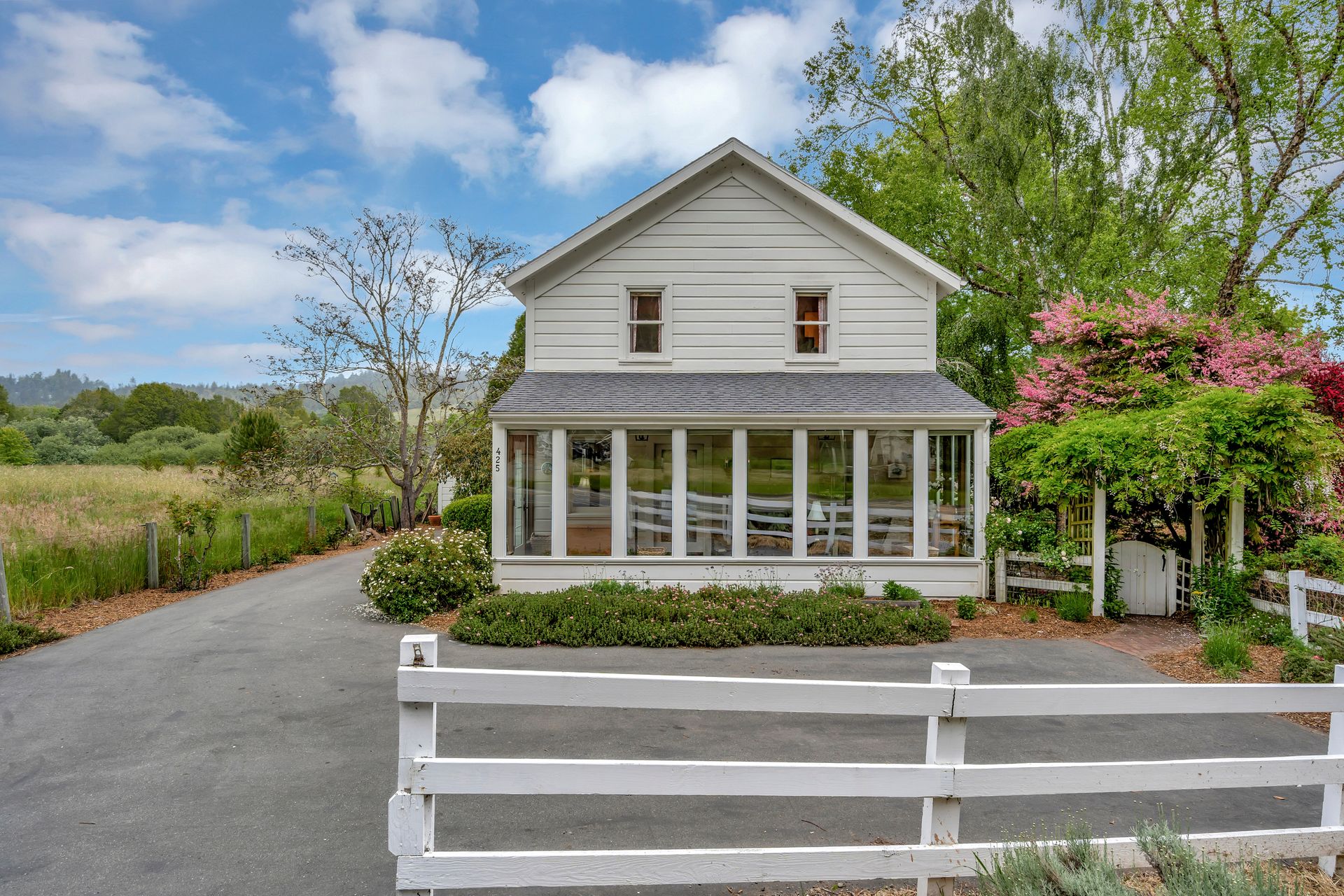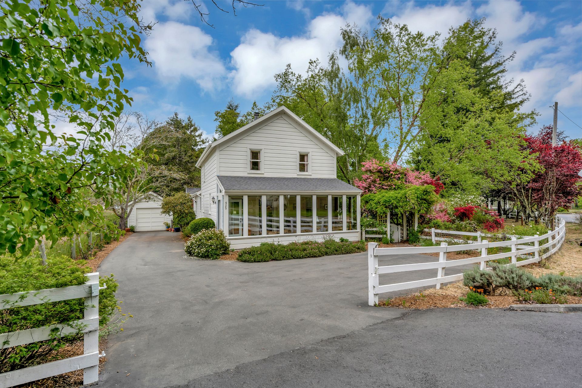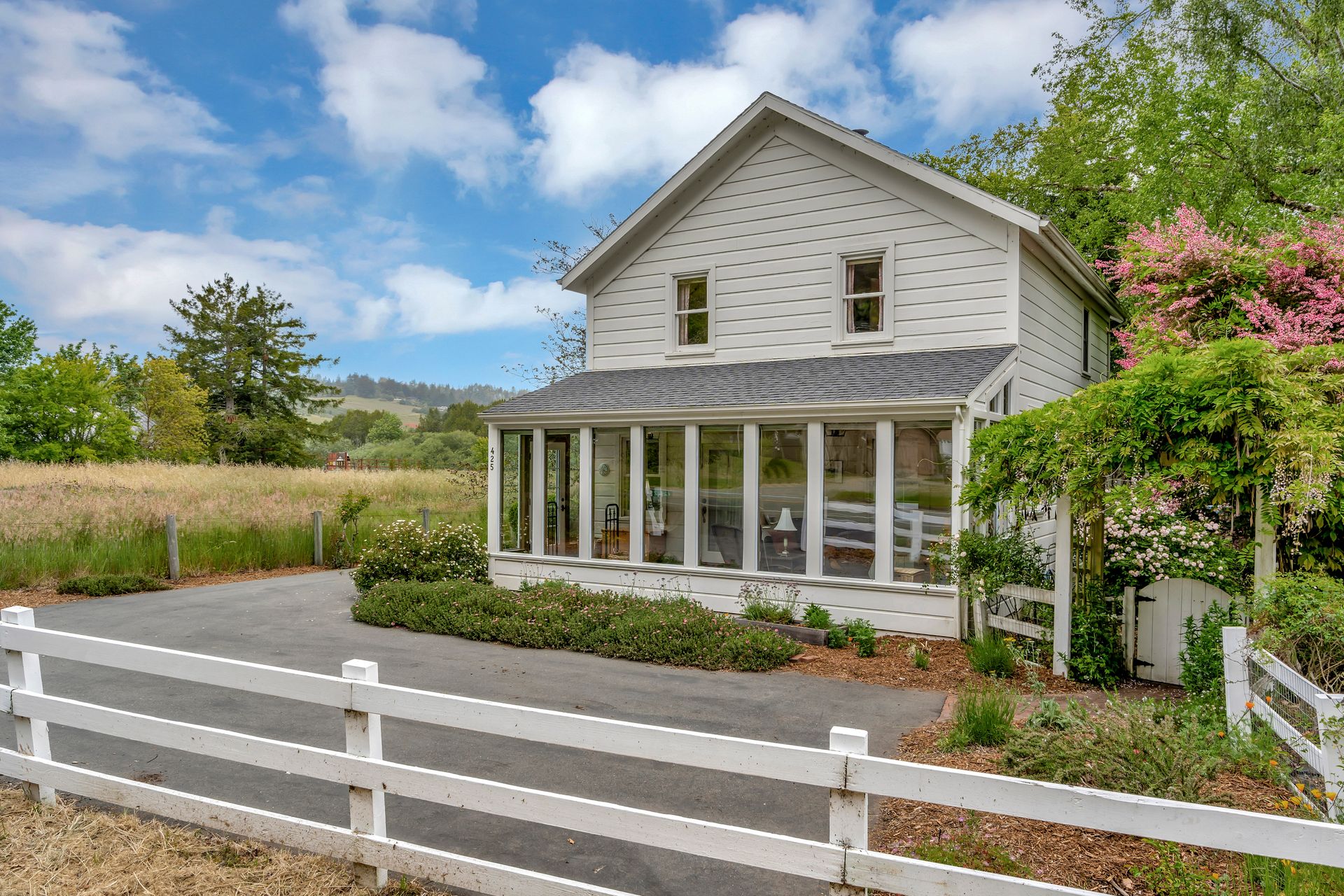 Sold: Nestled in the hamlet of Freestone is this charming farmhouse offering modern amenities while maintaining its original character. The inviting sunroom leads to the living room featuring a wood burning stove. Tall ceilings and hardwood floors run throughout the main floor. The light-filled kitchen offers Carrara marble topped island and countertops, shaker style cabinets, stainless-steel appliances, and a walk-in pantry. A wall of windows let in serene garden views to the kitchen and dining area. The garden room has a fireplace and French doors. With 3 bedrooms, 3 full and 1 half baths, this home is over 2,000 square feet. The primary ensuite is upstairs, a second ensuite is on the main floor currently being used as an office. There’s a detached single car garage. Originally built around 1900, more recent updates include a new foundation, wall finishes, electrical, plumbing, heating, dual pane windows and more. Vintage light fixtures and other details complement this period architecture. Relax on the spacious deck and wander the garden paths to admire the impressive Paper Birch tree, flowers, plants, and mature redwoods. Surrounded by pastoral vistas and rolling hills, Freestone is just 5 miles to Sebastopol and 10 miles to the Coast.