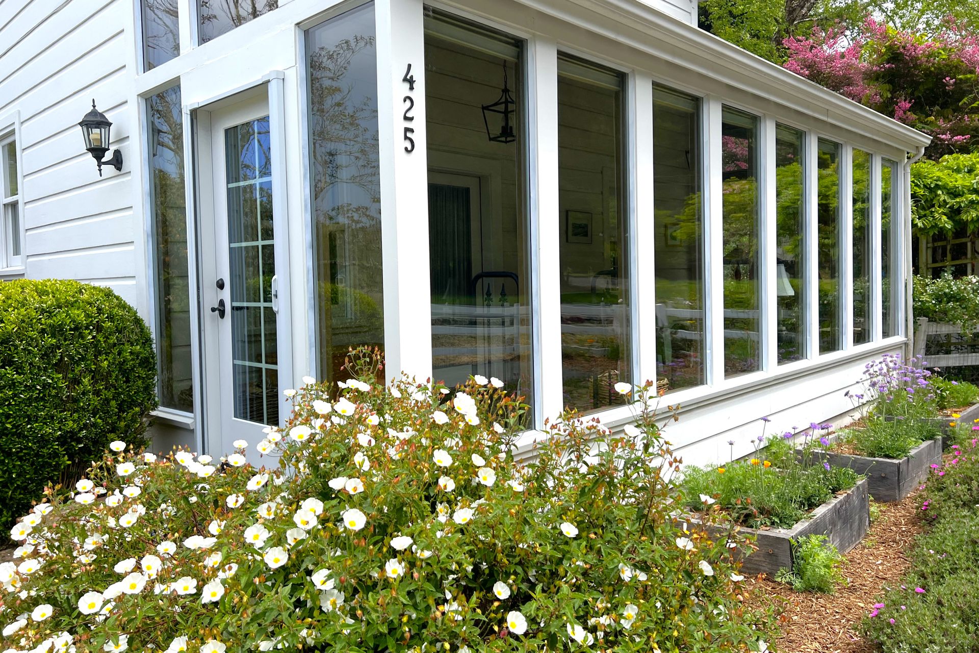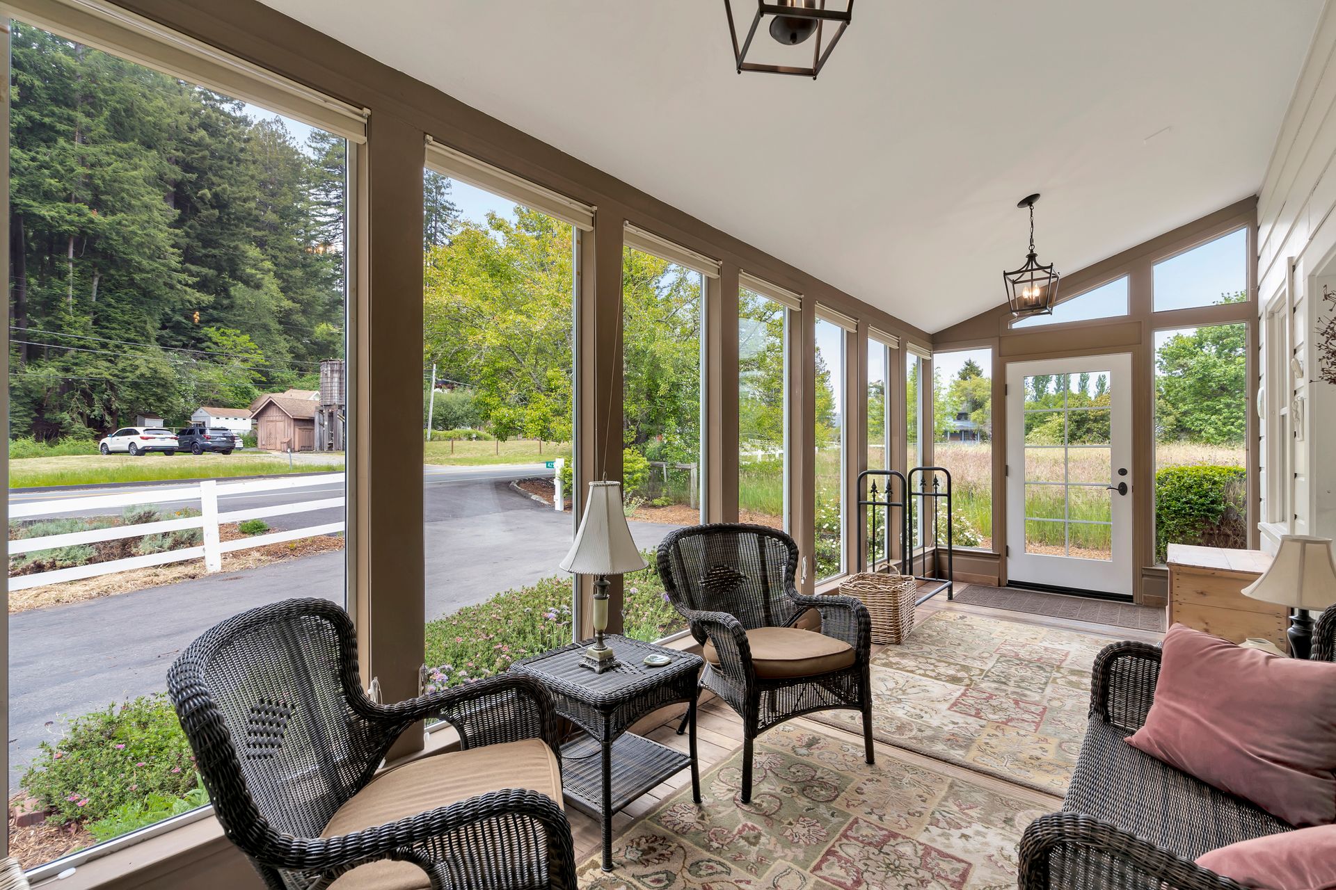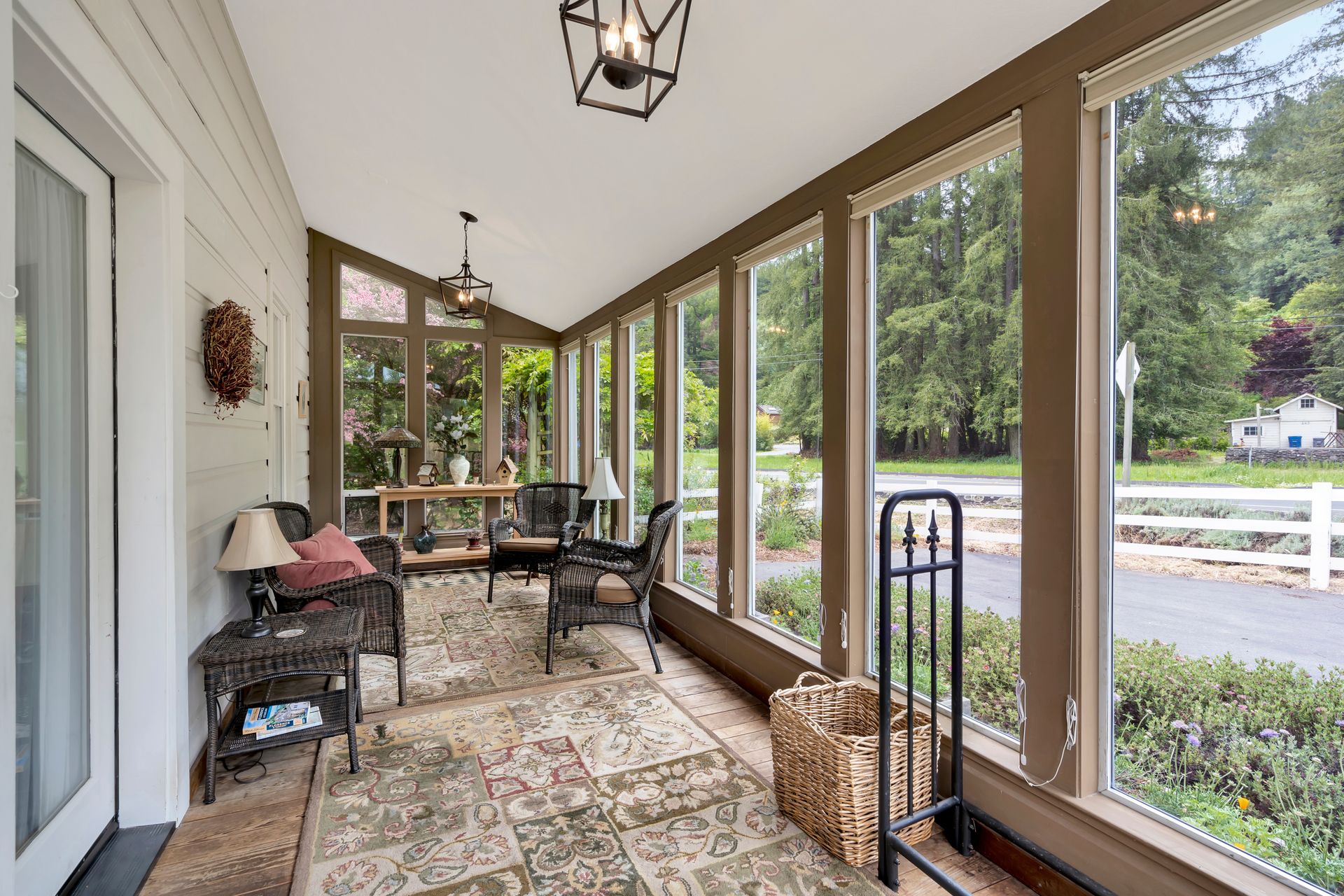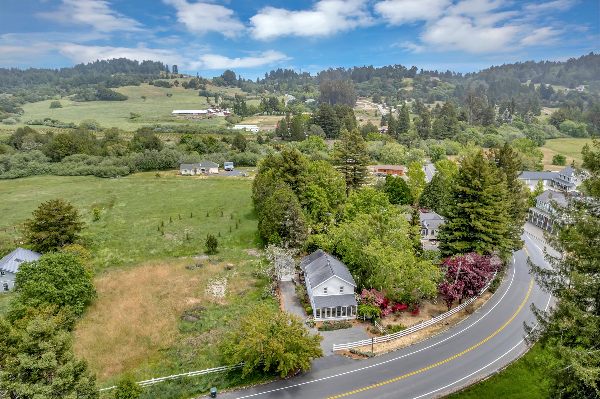 Sold: Nestled in the hamlet of Freestone is this charming farmhouse offering modern amenities while maintaining its original character. The inviting sunroom leads to the living room featuring a wood burning stove. Tall ceilings and hardwood floors run throughout the main floor. The light-filled kitchen offers Carrara marble topped island and countertops, shaker style cabinets, stainless-steel appliances, and a walk-in pantry. A wall of windows let in serene garden views to the kitchen and dining area. The garden room has a fireplace and French doors. With 3 bedrooms, 3 full and 1 half baths, this home is over 2,000 square feet. The primary ensuite is upstairs, a second ensuite is on the main floor currently being used as an office. There’s a detached single car garage. Originally built around 1900, more recent updates include a new foundation, wall finishes, electrical, plumbing, heating, dual pane windows and more. Vintage light fixtures and other details complement this period architecture. Relax on the spacious deck and wander the garden paths to admire the impressive Paper Birch tree, flowers, plants, and mature redwoods. Surrounded by pastoral vistas and rolling hills, Freestone is just 5 miles to Sebastopol and 10 miles to the Coast.