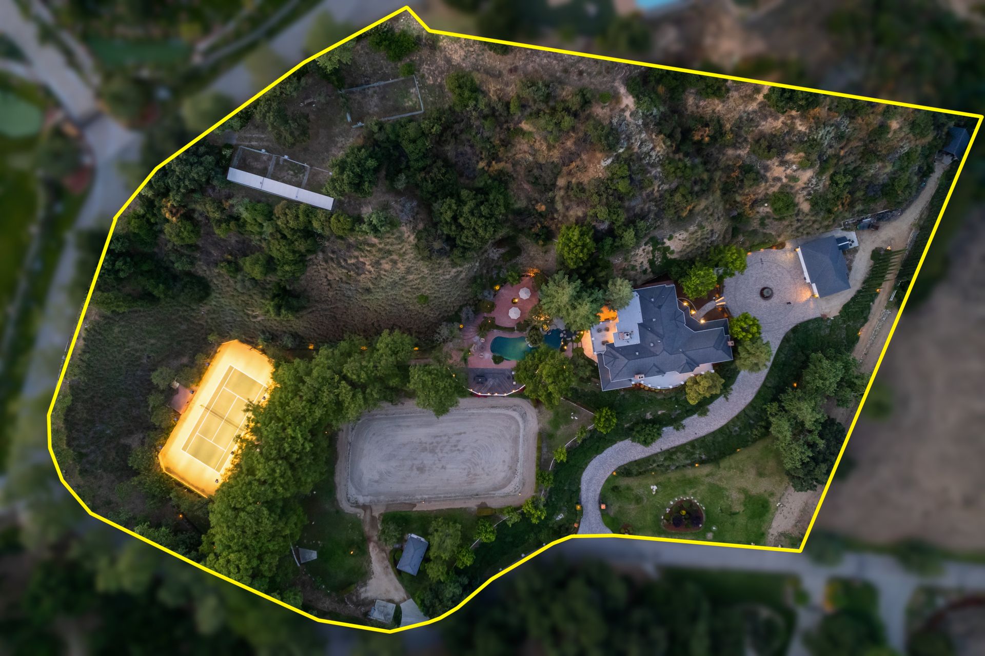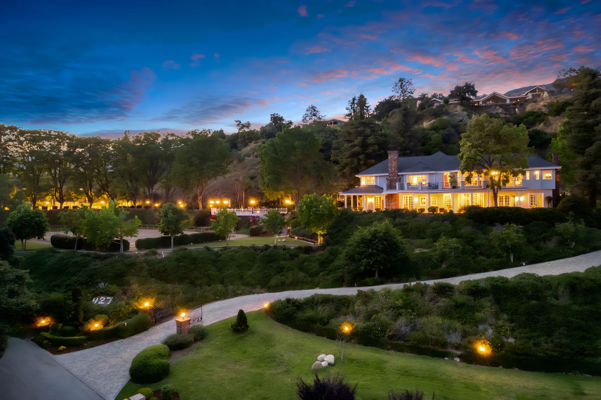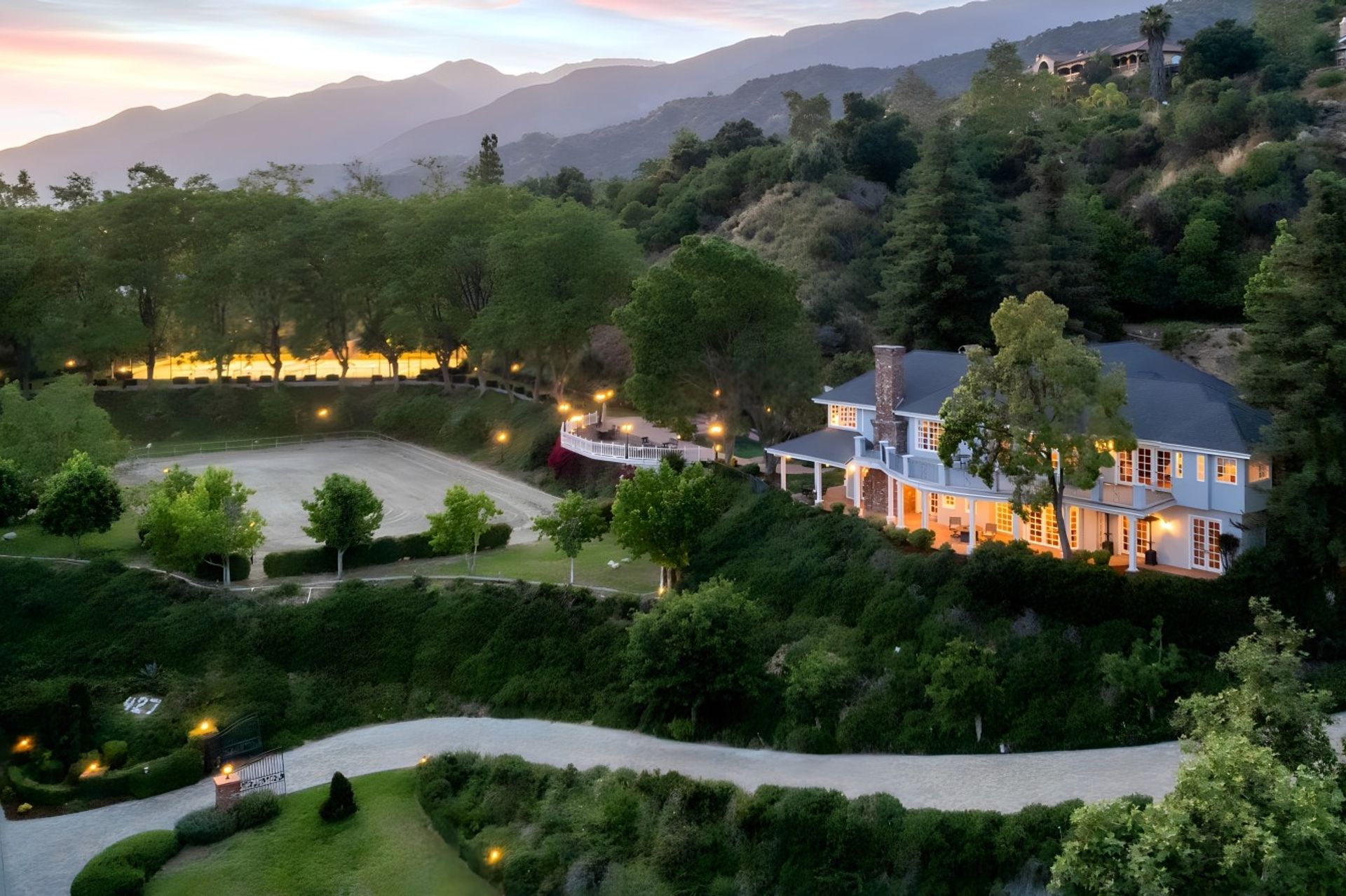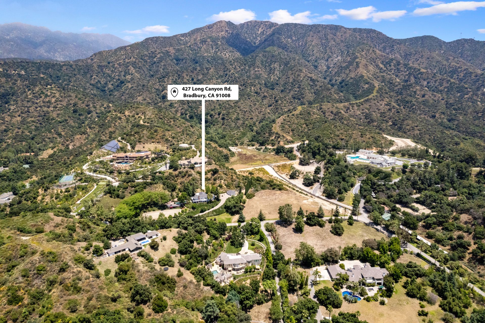 Welcome to 427 Long Canyon Road, an exquisite masterpiece nestled in the 24-hour guard-gated community of Bradbury Estates. This extraordinary property offers an unparalleled living experience, harmoniously blending luxury amenities with breathtaking natural surroundings and views. As you approach the estate, you are greeted by meticulously manicured landscaping and a serene ambiance that sets the stage for what lies beyond. This Mur-Sol Construction custom-built estate spans across a generous lot of nearly five acres and showcases exceptional craftsmanship and attention to detail. The main residence boasts an impressive floor plan spread over two levels, offering approximately 6,579-square feet of living space. Upon entry, you are immediately captivated by the grand foyer, featuring soaring ceilings, a curved staircase and an abundance of natural light that fills the home. The gourmet kitchen is a chef’s dream, featuring high-end appliances, a center island for culinary creations, and a magnificent breakfast area with six sets of French doors that lead to the backyard and BBQ area. Adjacent to the kitchen is a spacious formal dining room, ideal for hosting intimate gatherings or extravagant dining parties. The two expansive balconies and the covered veranda provide sweeping views of the surrounding hills and city lights. The residence is designed for both everyday living and entertaining, with an array of luxurious amenities that cater to every need. The impressive outdoor space features a stunning pool and spa with a rock waterfall, several areas to dine, relax or entertain, and a professional tennis court that faces North-South. A full-size equestrian riding area with a casita/tack room and stables. This estate offers tranquility and privacy and presents a rare opportunity to own an extraordinary estate in the coveted community of Bradbury. Bradbury is known for its prestigious estates, expansive lots, and serene atmosphere surrounded by nature.