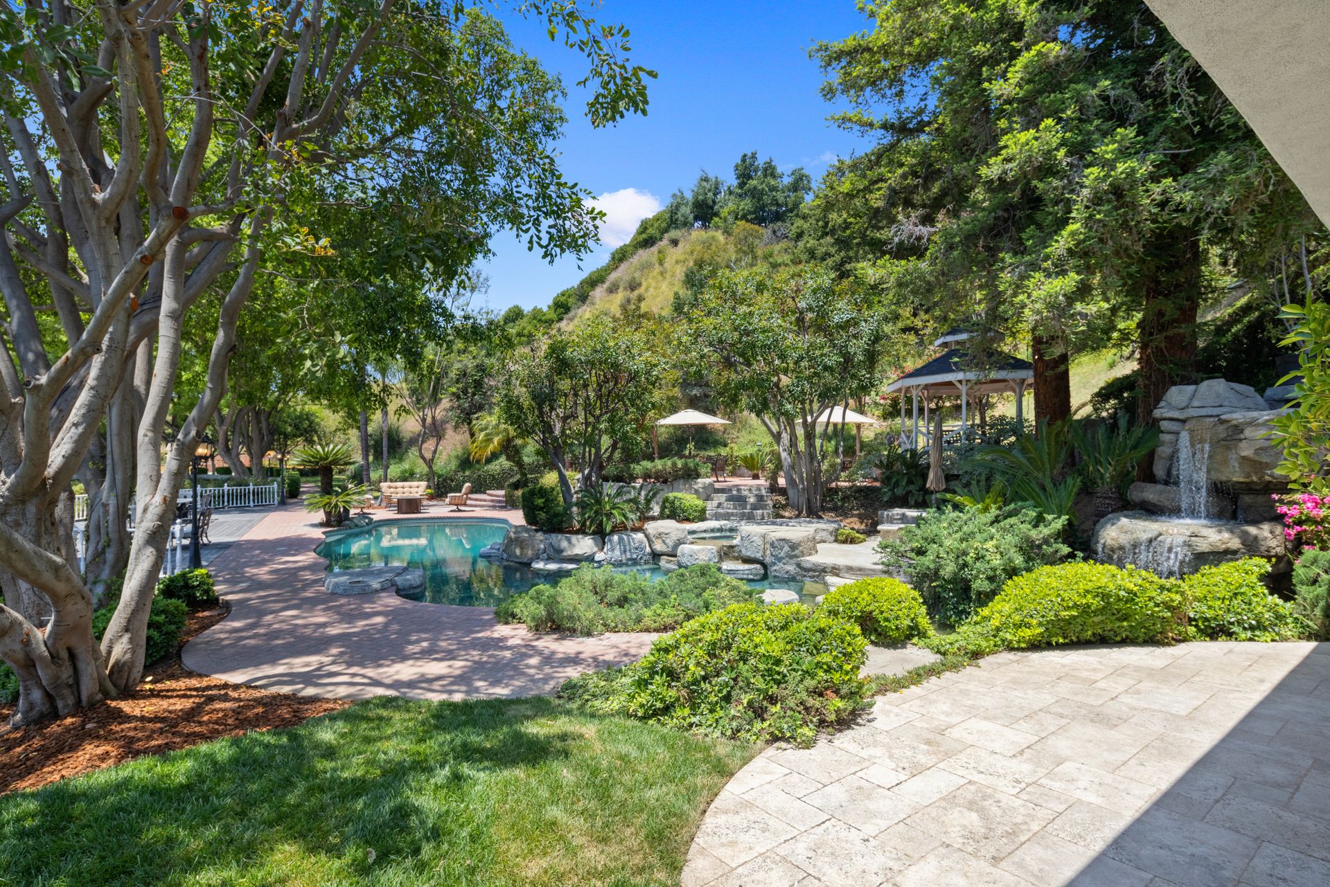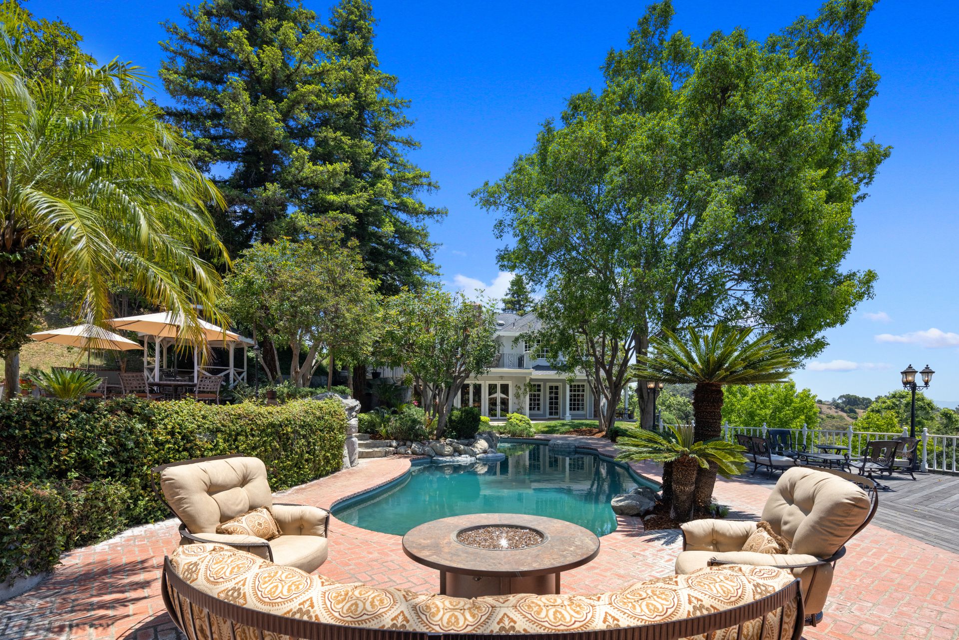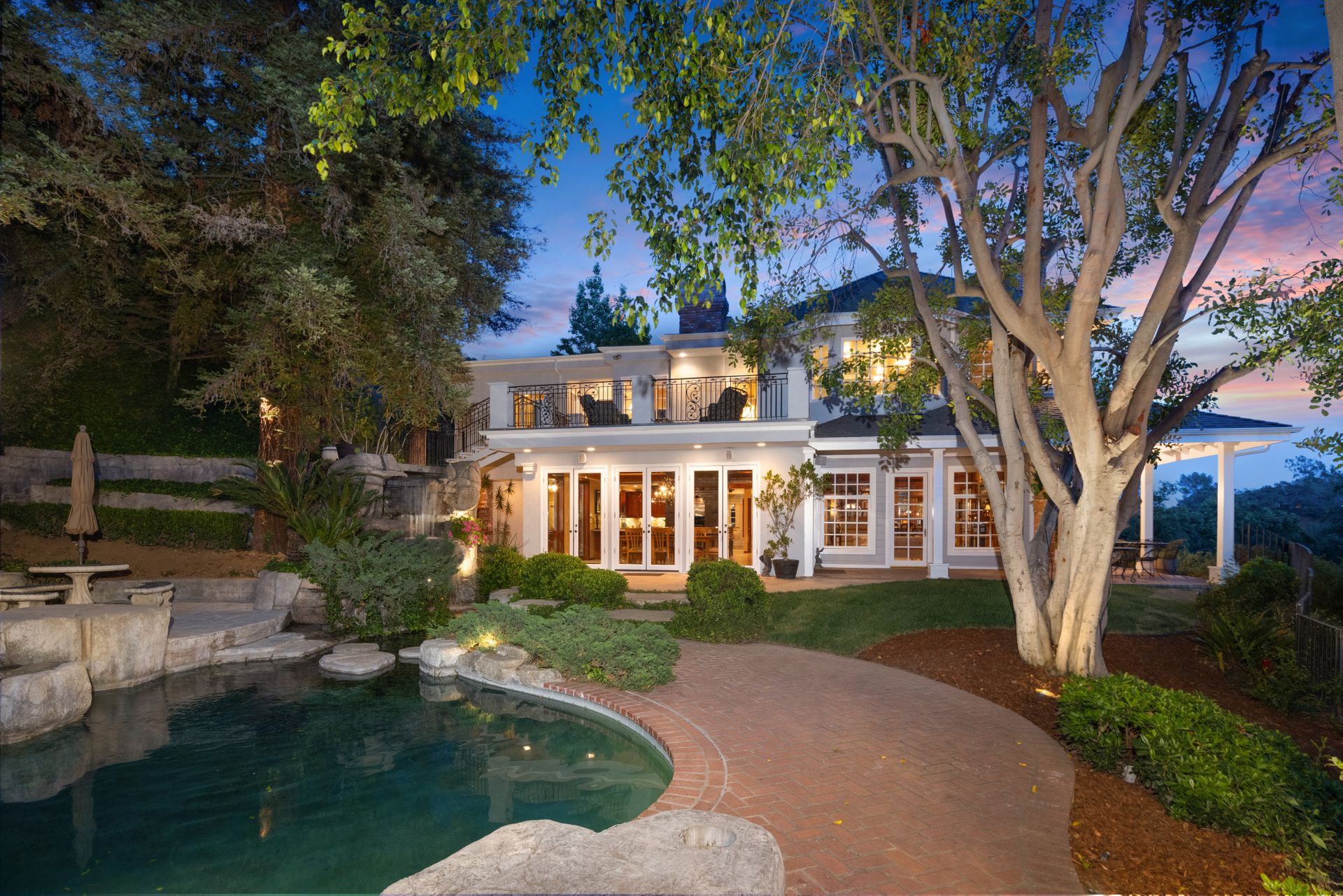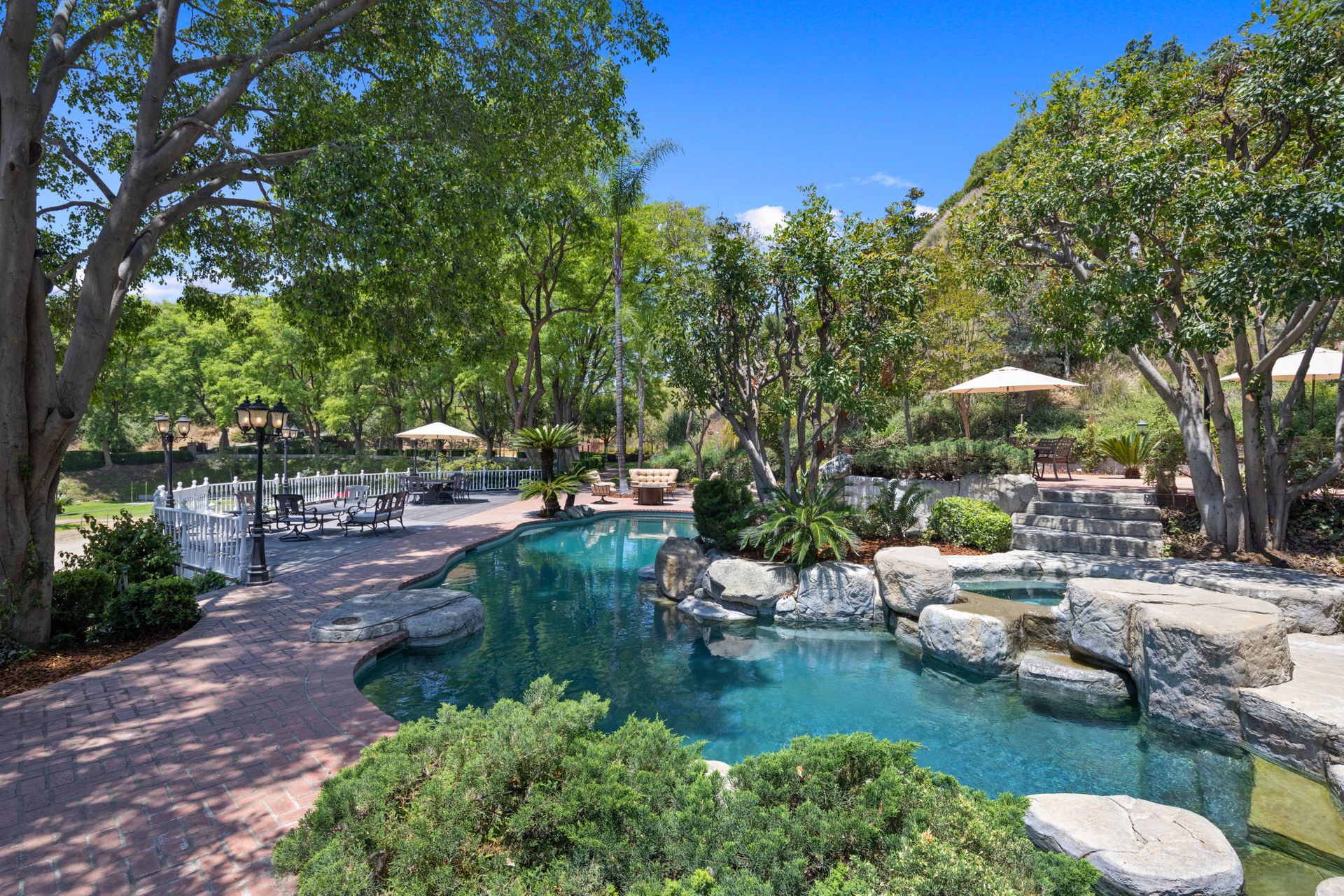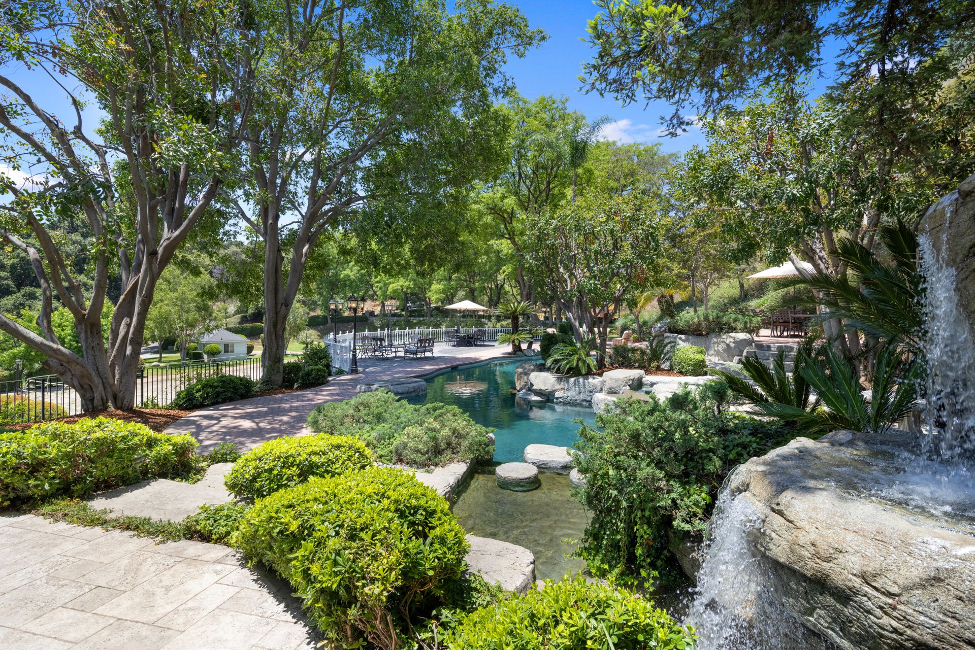Welcome to 427 Long Canyon Road, an exquisite masterpiece nestled in the 24-hour guard-gated community of Bradbury Estates. This extraordinary property offers an unparalleled living experience, harmoniously blending luxury amenities with breathtaking natural surroundings and views. As you approach the estate, you are greeted by meticulously manicured landscaping and a serene ambiance that sets the stage for what lies beyond. This Mur-Sol Construction custom-built estate spans across a generous lot of nearly five acres and showcases exceptional craftsmanship and attention to detail. The main residence boasts an impressive floor plan spread over two levels, offering approximately 6,579-square feet of living space. Upon entry, you are immediately captivated by the grand foyer, featuring soaring ceilings, a curved staircase and an abundance of natural light that fills the home. The gourmet kitchen is a chef’s dream, featuring high-end appliances, a center island for culinary creations, and a magnificent breakfast area with six sets of French doors that lead to the backyard and BBQ area. Adjacent to the kitchen is a spacious formal dining room, ideal for hosting intimate gatherings or extravagant dining parties. The two expansive balconies and the covered veranda provide sweeping views of the surrounding hills and city lights. The residence is designed for both everyday living and entertaining, with an array of luxurious amenities that cater to every need. The impressive outdoor space features a stunning pool and spa with a rock waterfall, several areas to dine, relax or entertain, and a professional tennis court that faces North-South. A full-size equestrian riding area with a casita/tack room and stables. This estate offers tranquility and privacy and presents a rare opportunity to own an extraordinary estate in the coveted community of Bradbury. Bradbury is known for its prestigious estates, expansive lots, and serene atmosphere surrounded by nature.
