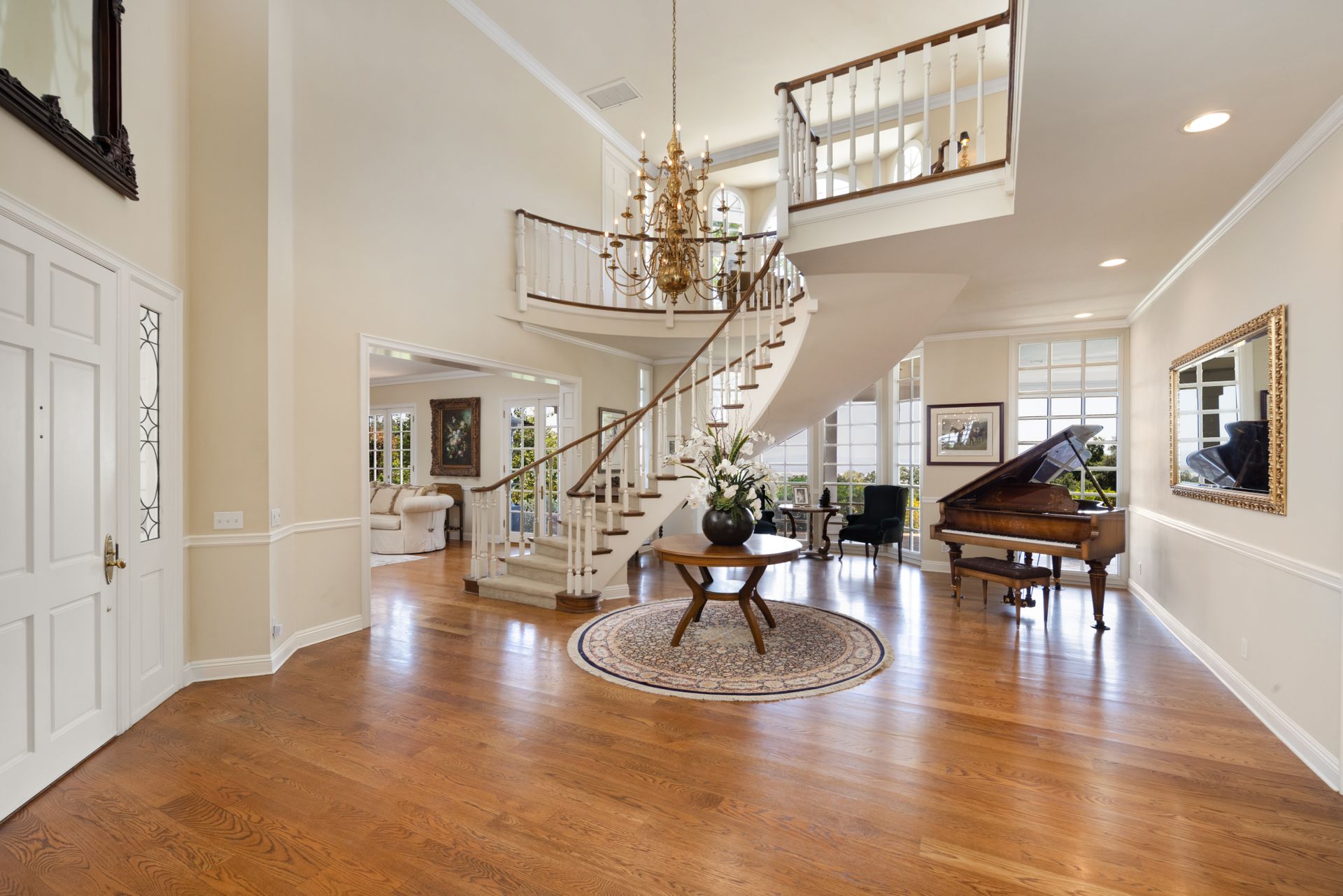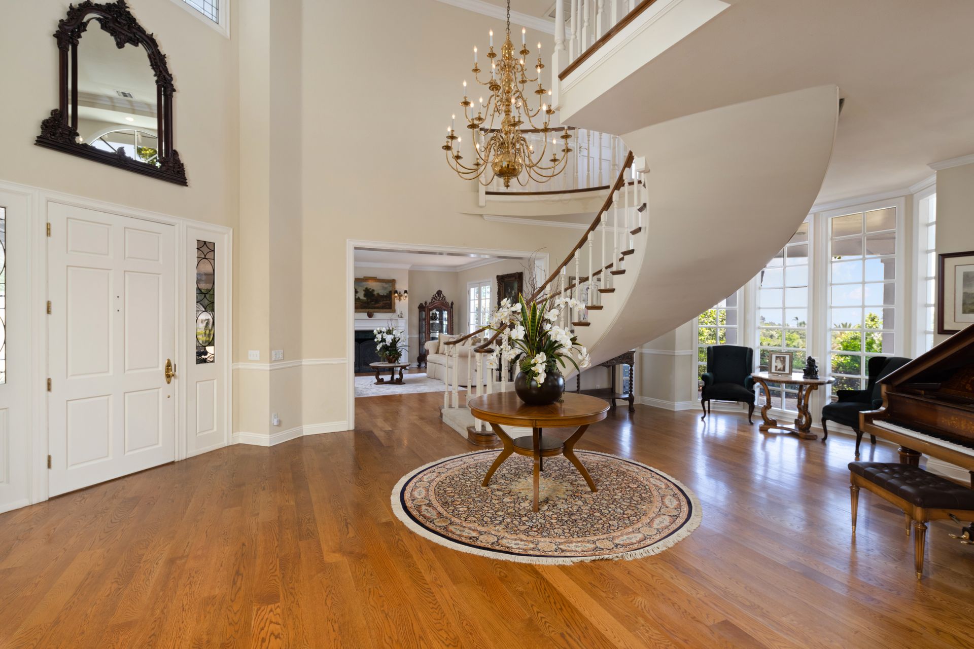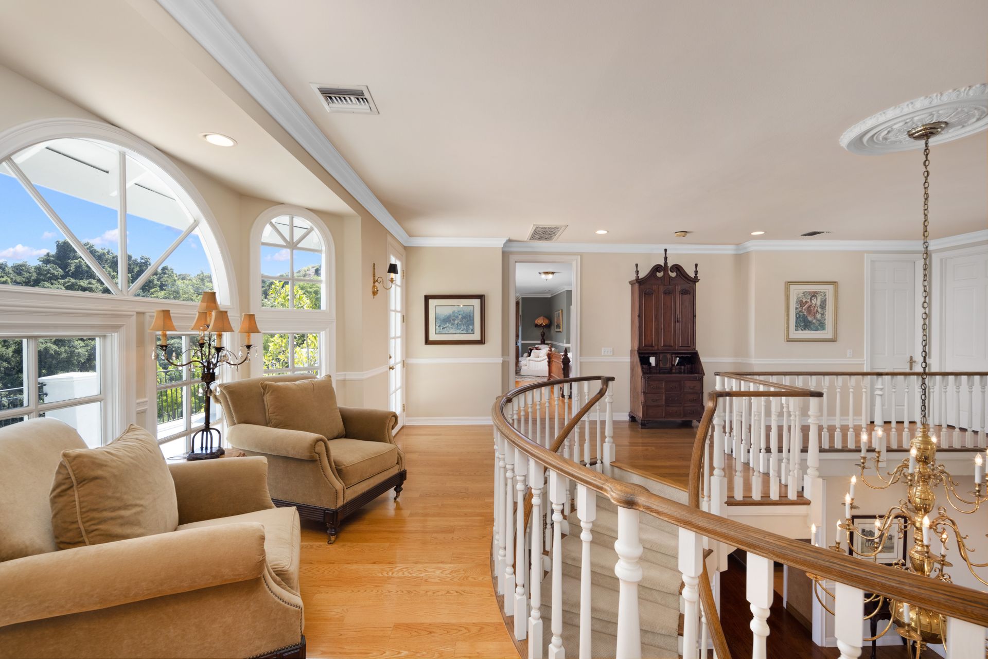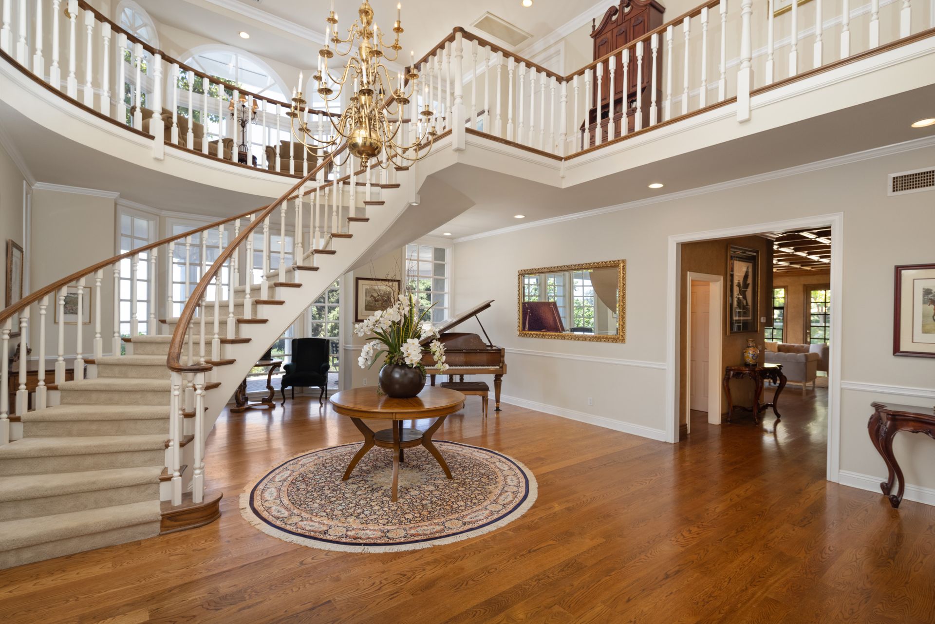 Welcome to 427 Long Canyon Road, an exquisite masterpiece nestled in the 24-hour guard-gated community of Bradbury Estates. This extraordinary property offers an unparalleled living experience, harmoniously blending luxury amenities with breathtaking natural surroundings and views. As you approach the estate, you are greeted by meticulously manicured landscaping and a serene ambiance that sets the stage for what lies beyond. This Mur-Sol Construction custom-built estate spans across a generous lot of nearly five acres and showcases exceptional craftsmanship and attention to detail. The main residence boasts an impressive floor plan spread over two levels, offering approximately 6,579-square feet of living space. Upon entry, you are immediately captivated by the grand foyer, featuring soaring ceilings, a curved staircase and an abundance of natural light that fills the home. The gourmet kitchen is a chef’s dream, featuring high-end appliances, a center island for culinary creations, and a magnificent breakfast area with six sets of French doors that lead to the backyard and BBQ area. Adjacent to the kitchen is a spacious formal dining room, ideal for hosting intimate gatherings or extravagant dining parties. The two expansive balconies and the covered veranda provide sweeping views of the surrounding hills and city lights. The residence is designed for both everyday living and entertaining, with an array of luxurious amenities that cater to every need. The impressive outdoor space features a stunning pool and spa with a rock waterfall, several areas to dine, relax or entertain, and a professional tennis court that faces North-South. A full-size equestrian riding area with a casita/tack room and stables. This estate offers tranquility and privacy and presents a rare opportunity to own an extraordinary estate in the coveted community of Bradbury. Bradbury is known for its prestigious estates, expansive lots, and serene atmosphere surrounded by nature.