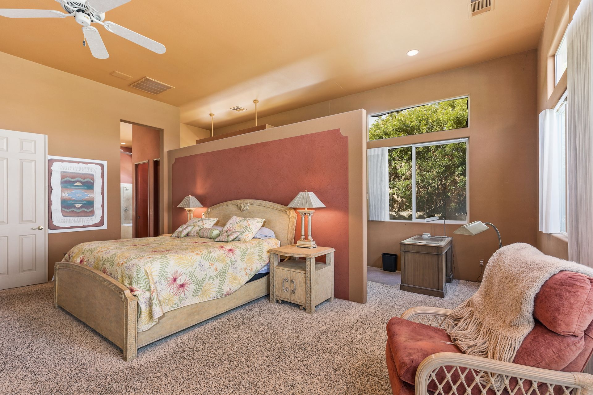 Your dream home awaits you with incredible views! This luxurious, approximately 3136 square-foot home is located on an elevated lot overlooking the #8 fairway at renowned Bermuda Dunes Country Club. With Chocolate Mountain and Fairway views, this three bed, three and one-half bath custom pool home has it all! The owners had this home built for themselves in 1999 and decorated it with creative flair! This home has gorgeous curb appeal on a peaceful street inside this lovely gated community.