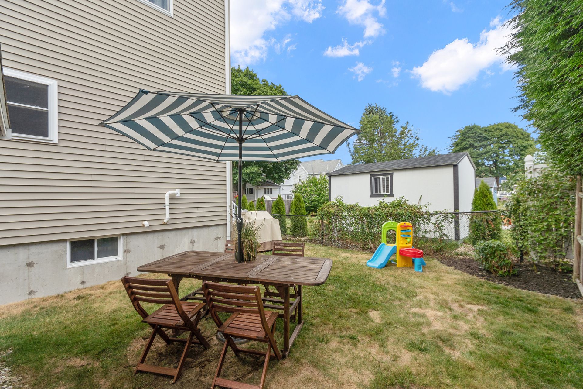Your search is over once you step through the door of this lovely newer townhome!  First floor boasts tall ceilings, hard wood flooring, an open concept living room/kitchen area, and a convenient half bath.  Second level offers two generous size bedrooms with hardwood flooring good sized closets and a full bath. Third floor office/bedroom lends itself perfectly for a teen suite, bedroom or an office for a work at home professional. Plenty of windows throughout provides an abundance of natural light.  Lower level offers future expansion potential or can be used for storage. Quaint side yard for barbeques and two off street parking spots.  All of this and a quiet side street location within close proximity to commuter rail, schools, fells walking trails and Melrose's vibrant downtown shops and restaurants make this home a must see!