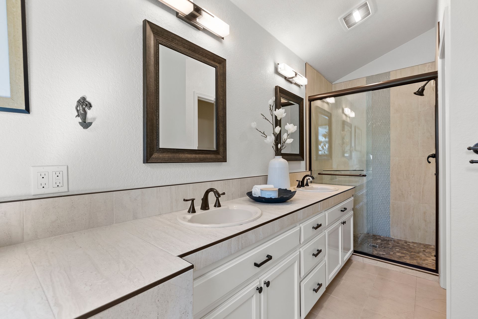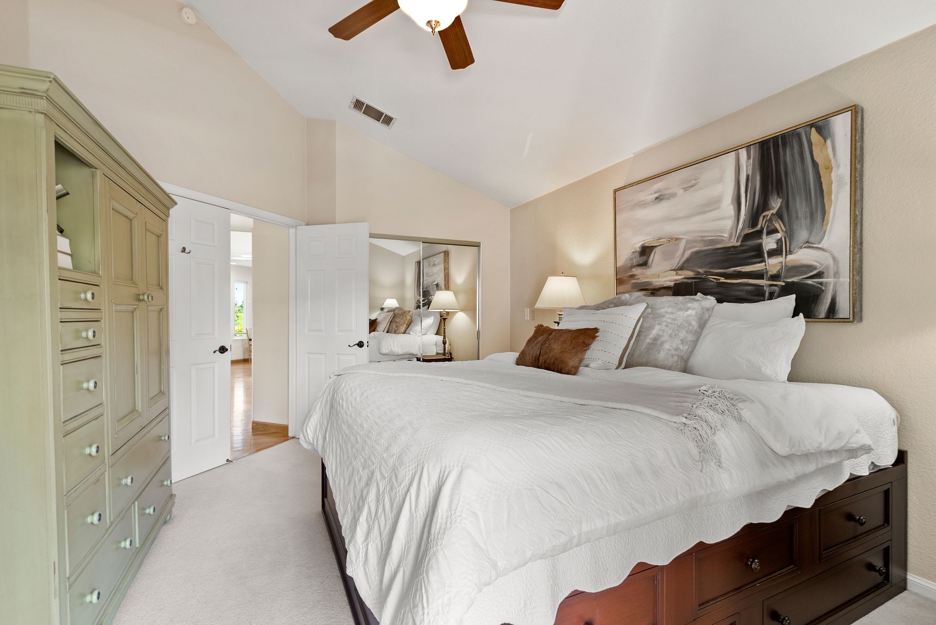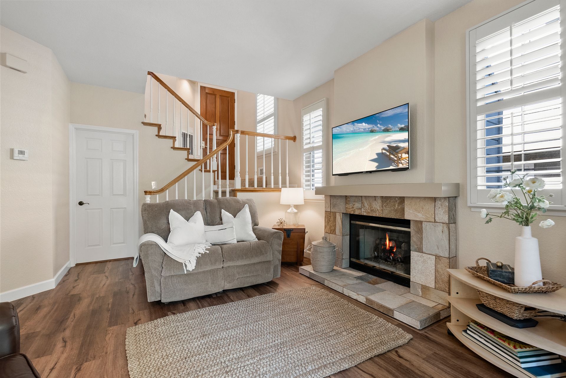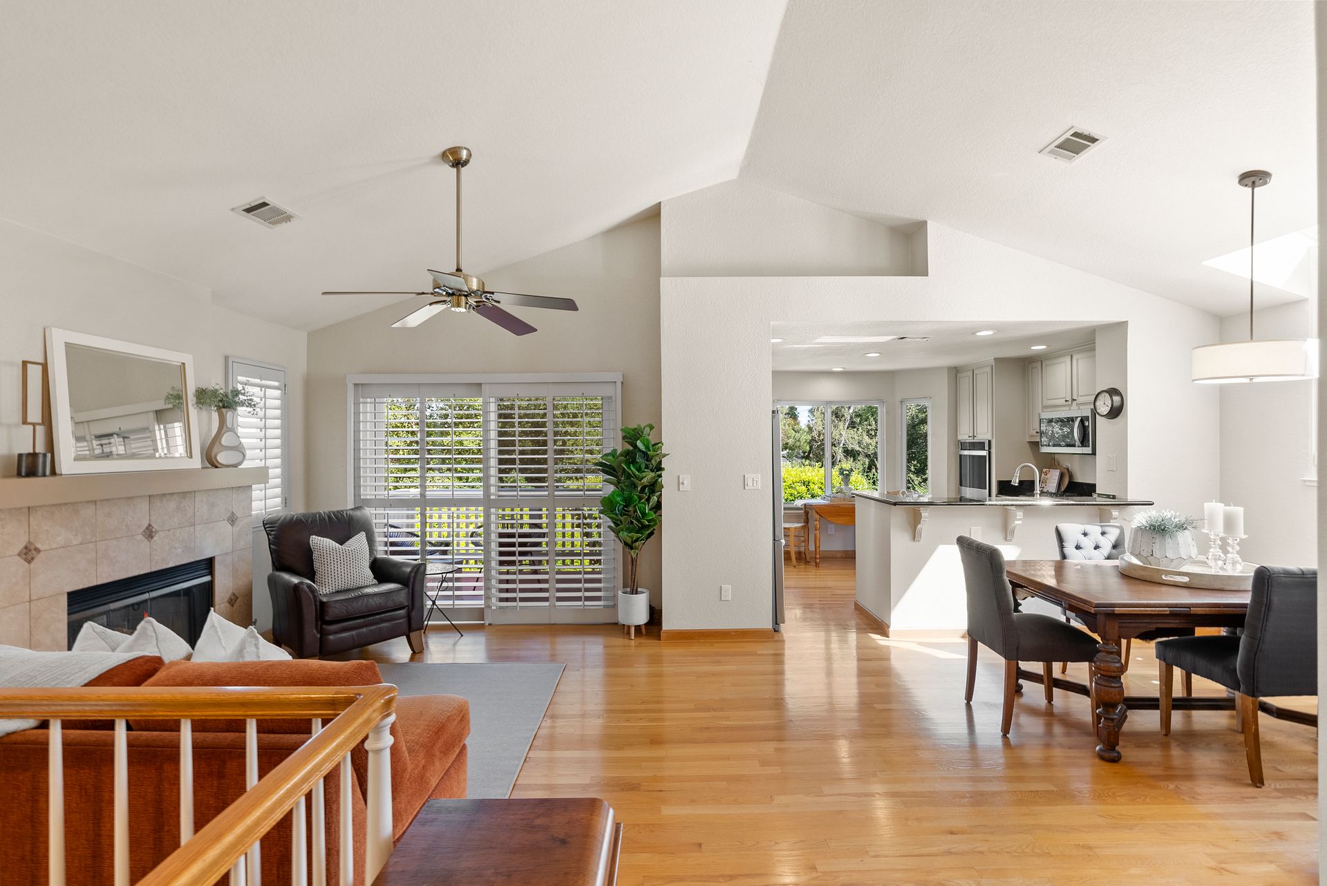 Sparkling opportunity to live in Westside Danville! This light-fille stunning home is in the desirable California Chateau at Danville Ranch and is situated on a private cul-de-sac. As you enter you will be mesmerized by the soaring ceilings, the manicured backyard and the openness. When you ascend to the main entertainment space you will be enthralled by the plethora of windows and the serene views of nature. The great room with hardwood floors and plantation shutters is comprised of the living room complete with fireplace, dining room and remodeled kitchen. It is the ideal place to entertain your guests – cocktails on the patio anyone? The home backs to open space and enjoying the views from the upstairs patio is spectacular! This desirable floor plan boasts three spacious bedrooms and two remodeled bathrooms. Downstairs there is another fireplace in a comfortable family room, ideal for relaxing. The siding door leads to a spacious backyard with slate patio, mature trees, flowers, river rocks and a fountain, Enjoy meals al fresco and the serenity of the area. The HOA amenities complete the package with clubhouse, pool, playground, tennis courts and basketball courts. You will feel like you are living at a resort, yet you are only a short distance from the iconic downtown Danville with premium restaurants, entertainment and shopping. The schools are award winning and the proximity to the freeway makes this one of the premier places to live in the East Bay Area!