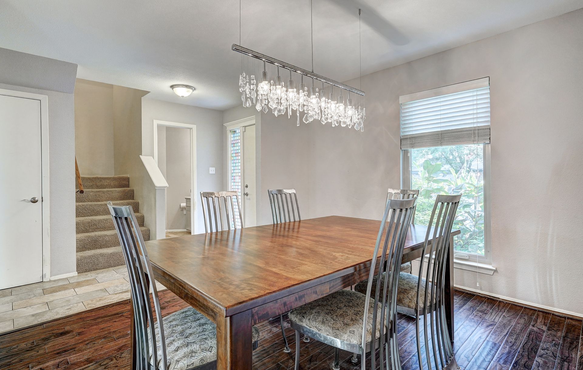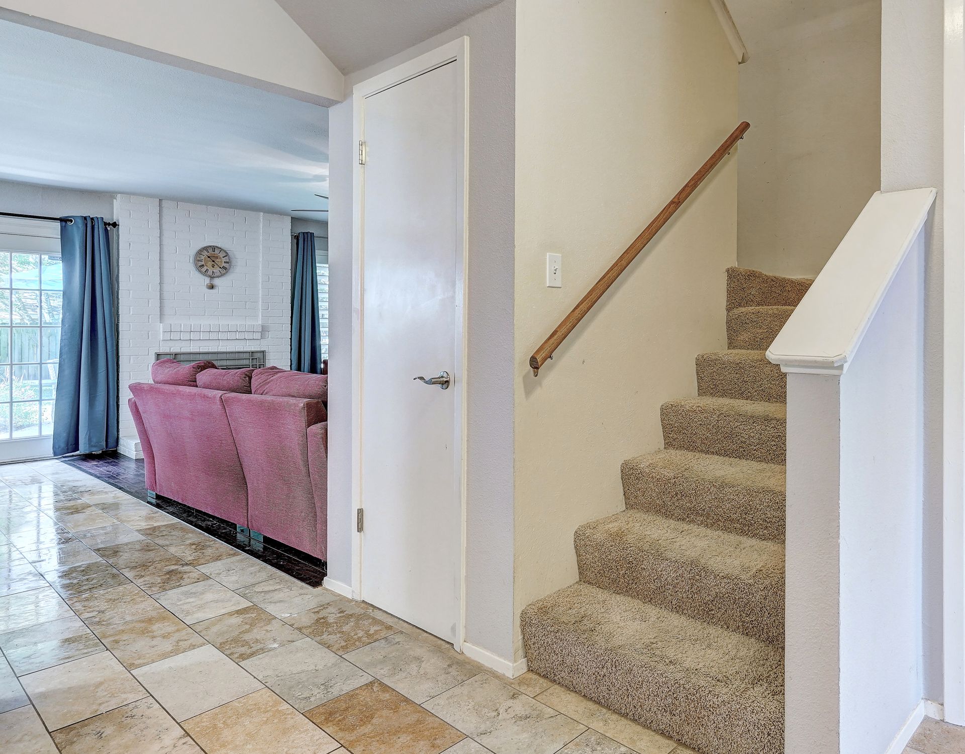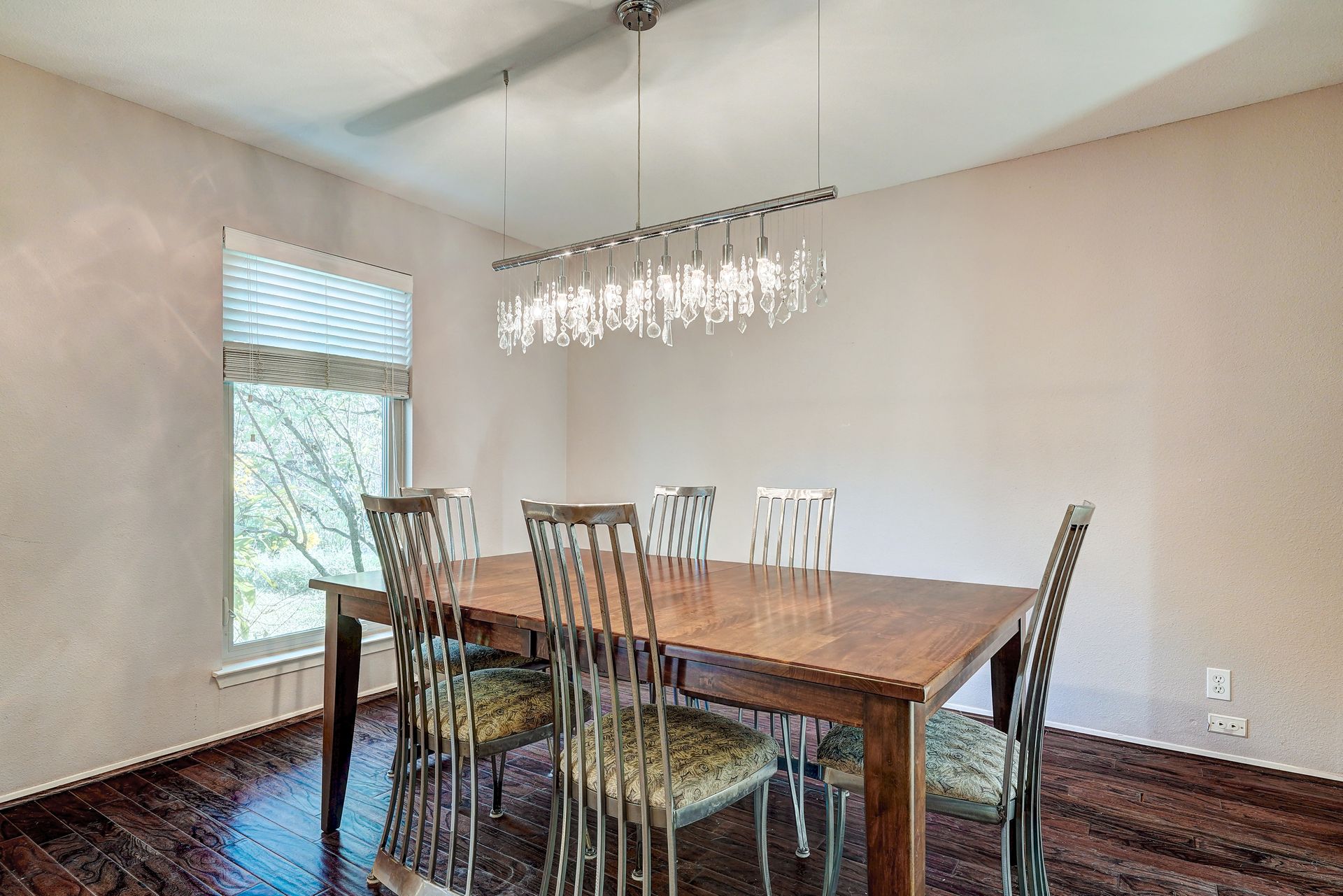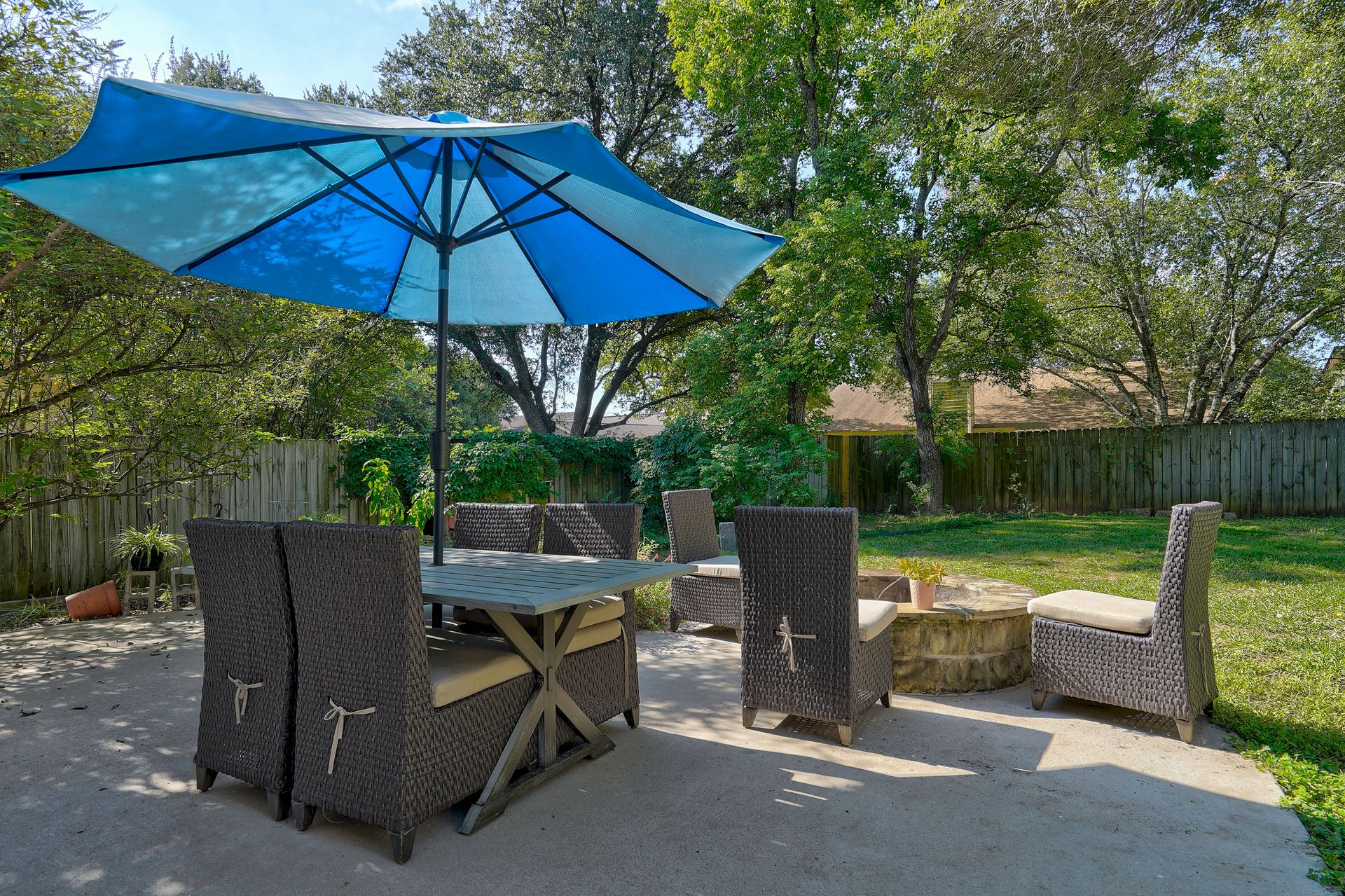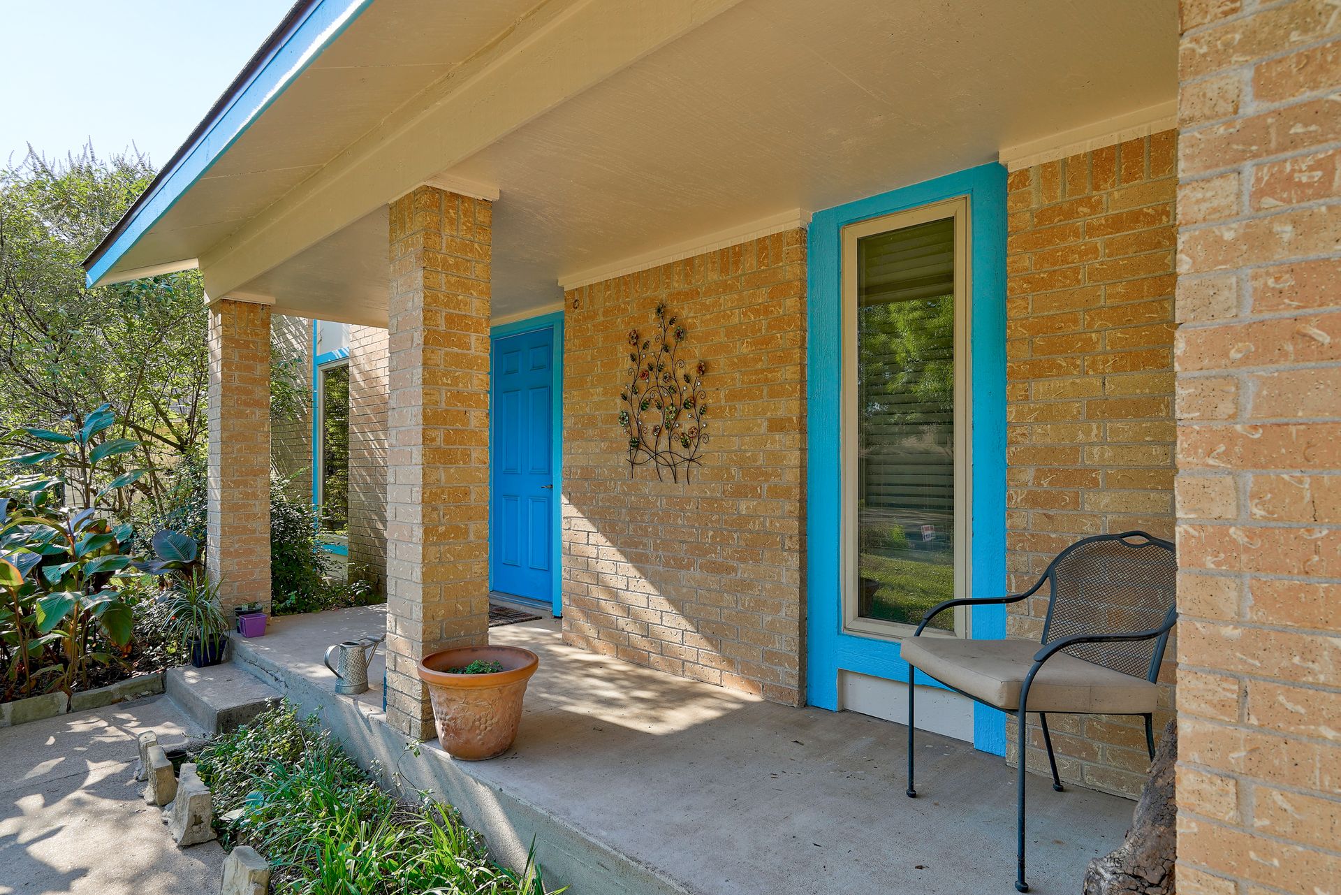 Cute as a button two-story home in Mesa Park with Robin's egg blue trim located just minutes from the Domain, Arboretum and Quarry Lake with easy access to Mopac/183. The home boasts an open floorplan downstairs with a cohesive living/dining area and a kitchen complete with a gourmet bar, stainless steel appliances, oversized cabinets, pot drawers and vent hood, perfect for the stay at home chef. You will enjoy the view of the spacious tree-lined backyard, landscaped with native plants, and the patio with stone firepit through the beautiful Plantation shutters. Many structural updates throughout, including a wall of windows and double French doors which provide loads of natural light, an inviting brick fireplace with raised hearth in living area and recently installed carpet upstairs! All of the fun, bright-colored bedrooms are located upstairs, along with a King-sized great room with attached bath. There is also a bonus half bath downstairs. Exemplary schools include Davis Elementary, Murchison MS and Anderson HS. It is a perfect place to call home!!
