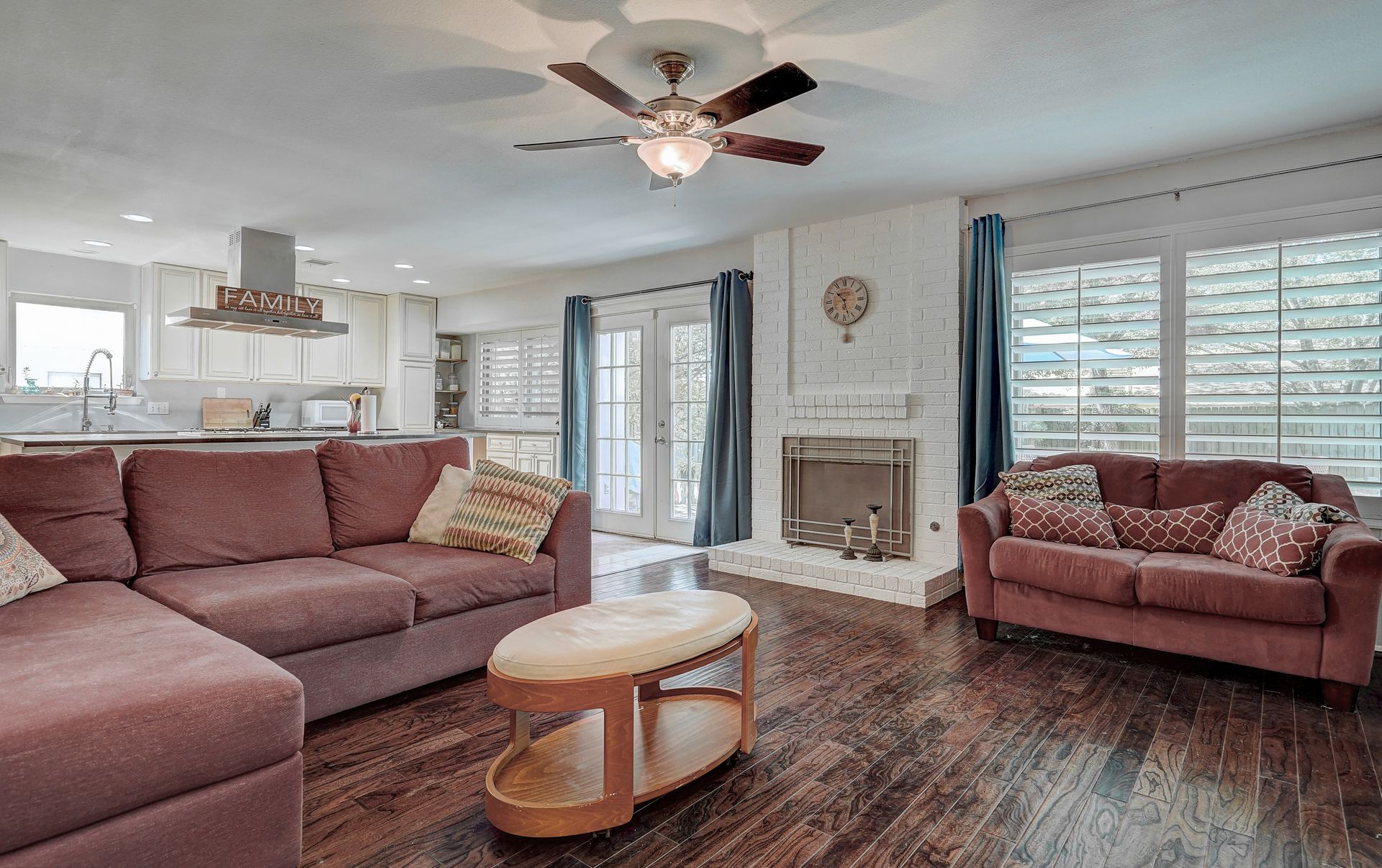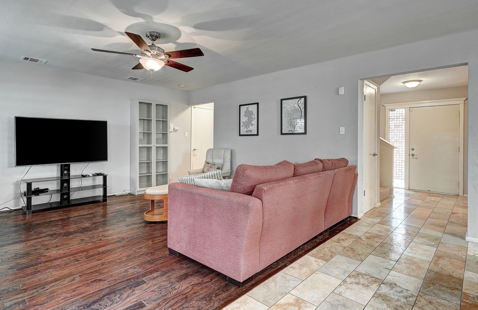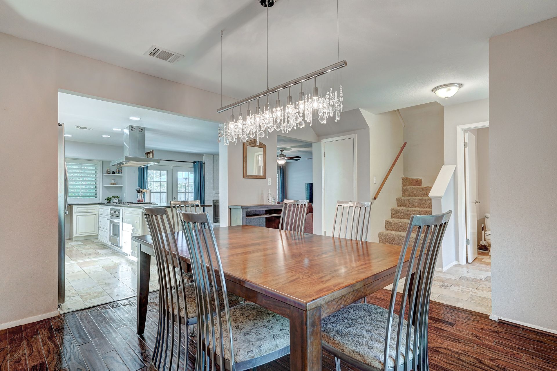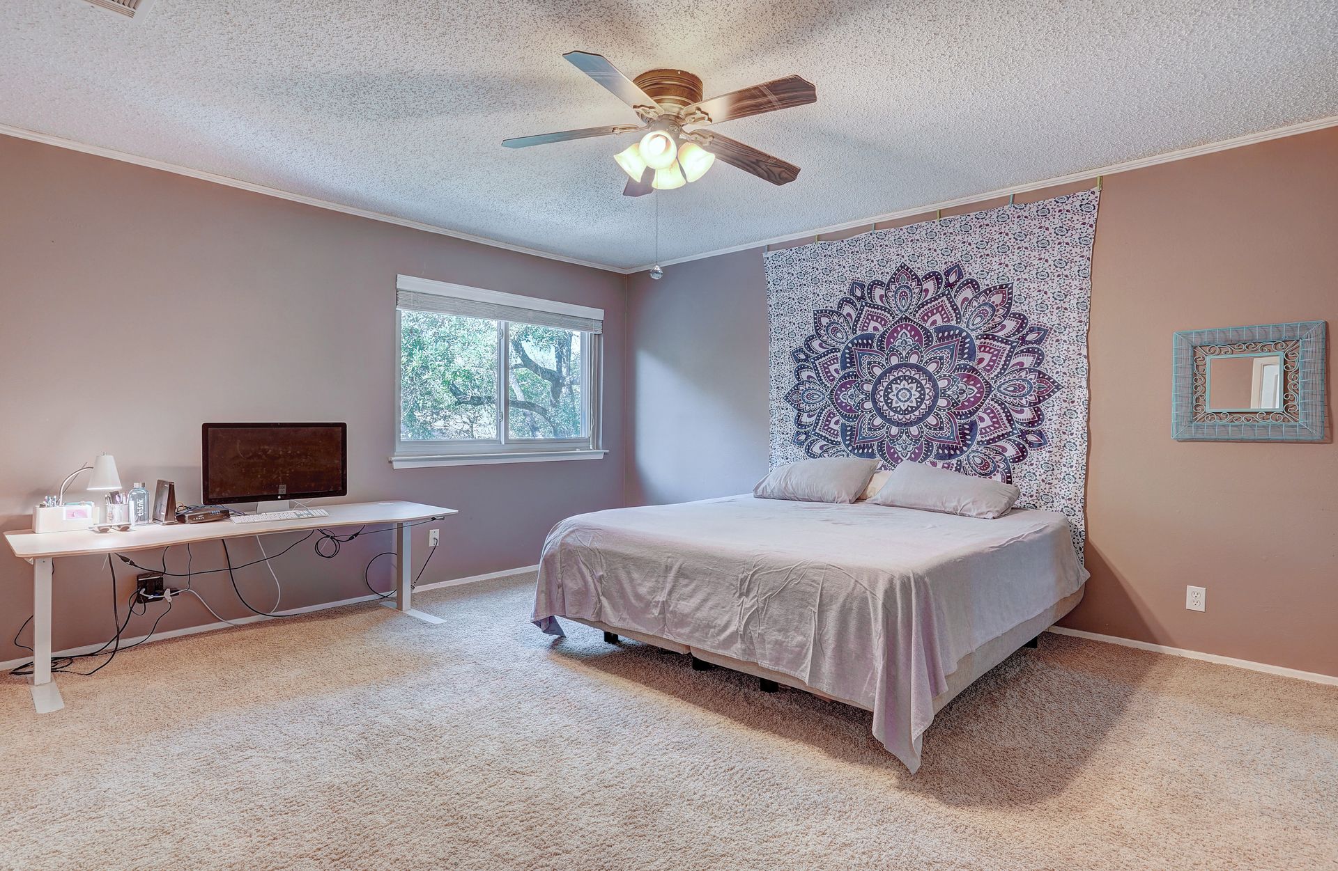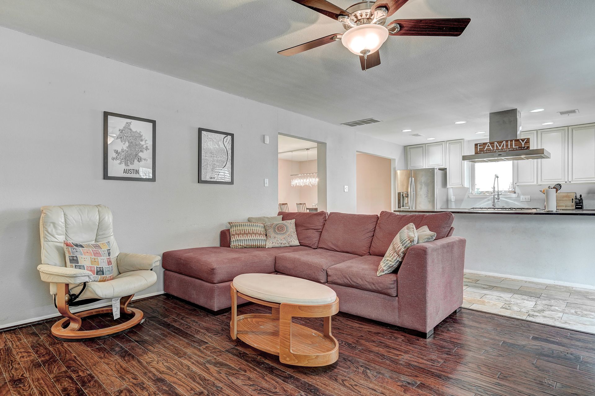 Cute as a button two-story home in Mesa Park with Robin's egg blue trim located just minutes from the Domain, Arboretum and Quarry Lake with easy access to Mopac/183. The home boasts an open floorplan downstairs with a cohesive living/dining area and a kitchen complete with a gourmet bar, stainless steel appliances, oversized cabinets, pot drawers and vent hood, perfect for the stay at home chef. You will enjoy the view of the spacious tree-lined backyard, landscaped with native plants, and the patio with stone firepit through the beautiful Plantation shutters. Many structural updates throughout, including a wall of windows and double French doors which provide loads of natural light, an inviting brick fireplace with raised hearth in living area and recently installed carpet upstairs! All of the fun, bright-colored bedrooms are located upstairs, along with a King-sized great room with attached bath. There is also a bonus half bath downstairs. Exemplary schools include Davis Elementary, Murchison MS and Anderson HS. It is a perfect place to call home!!
