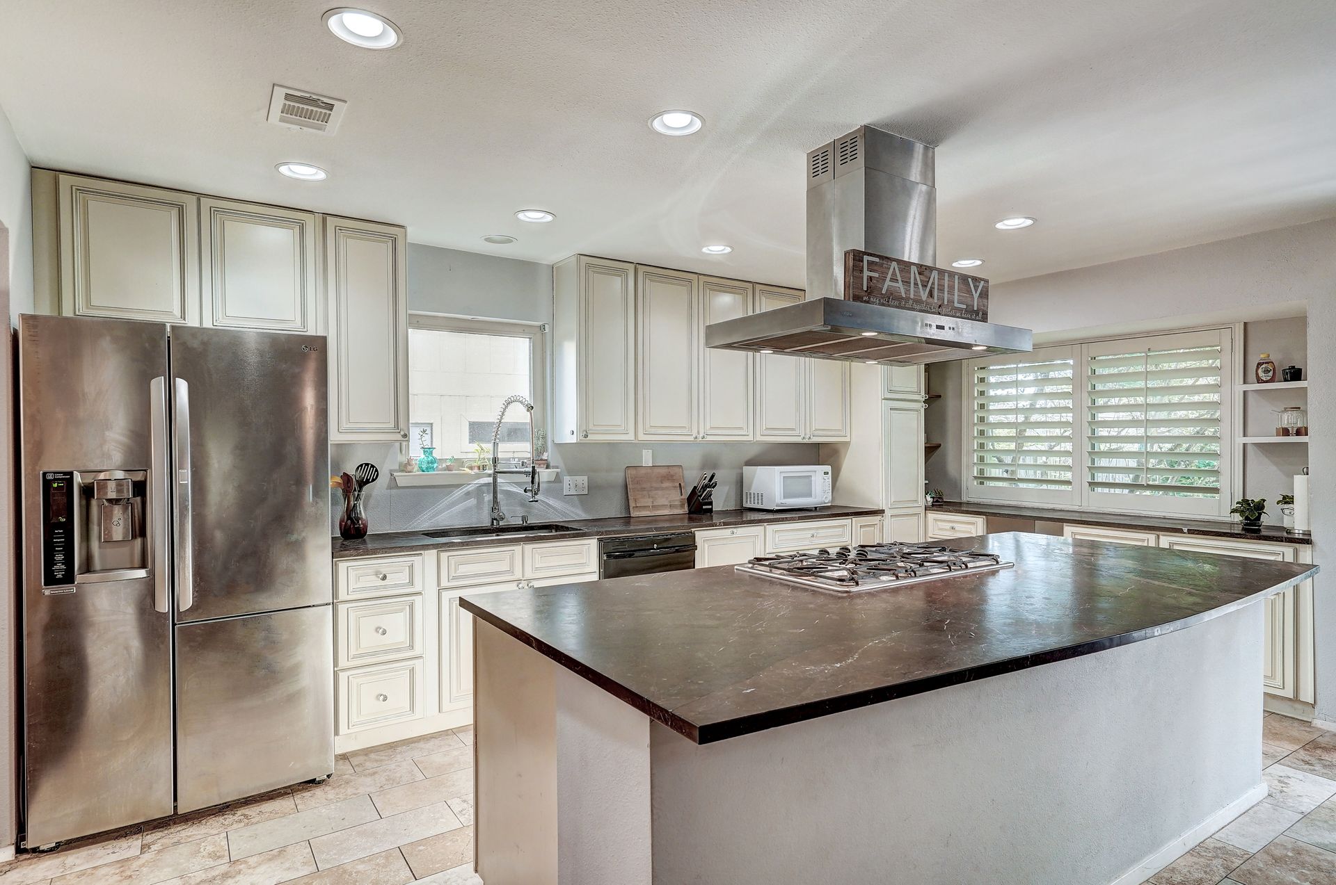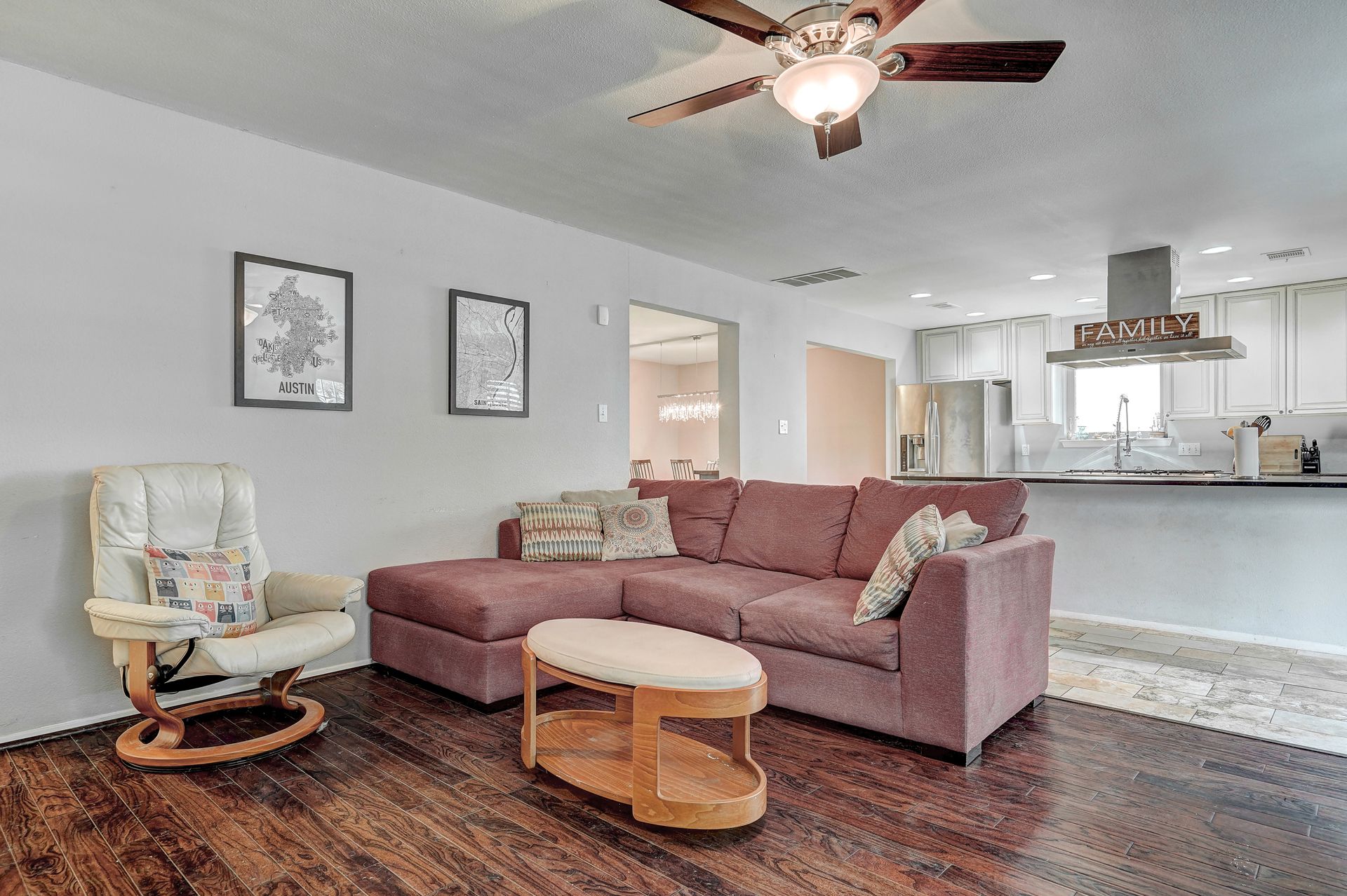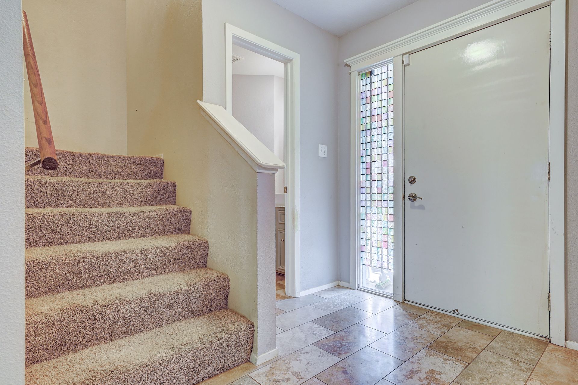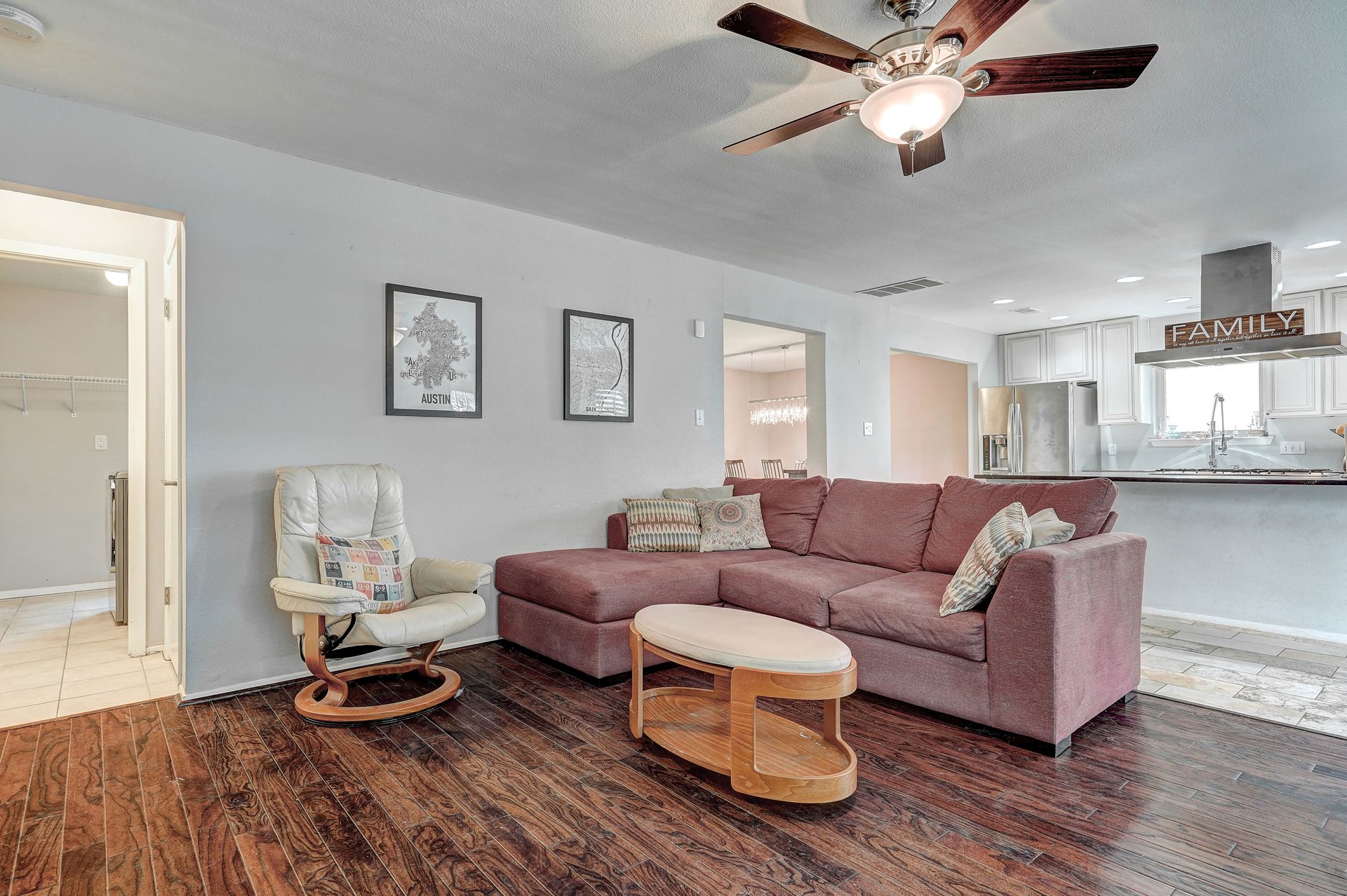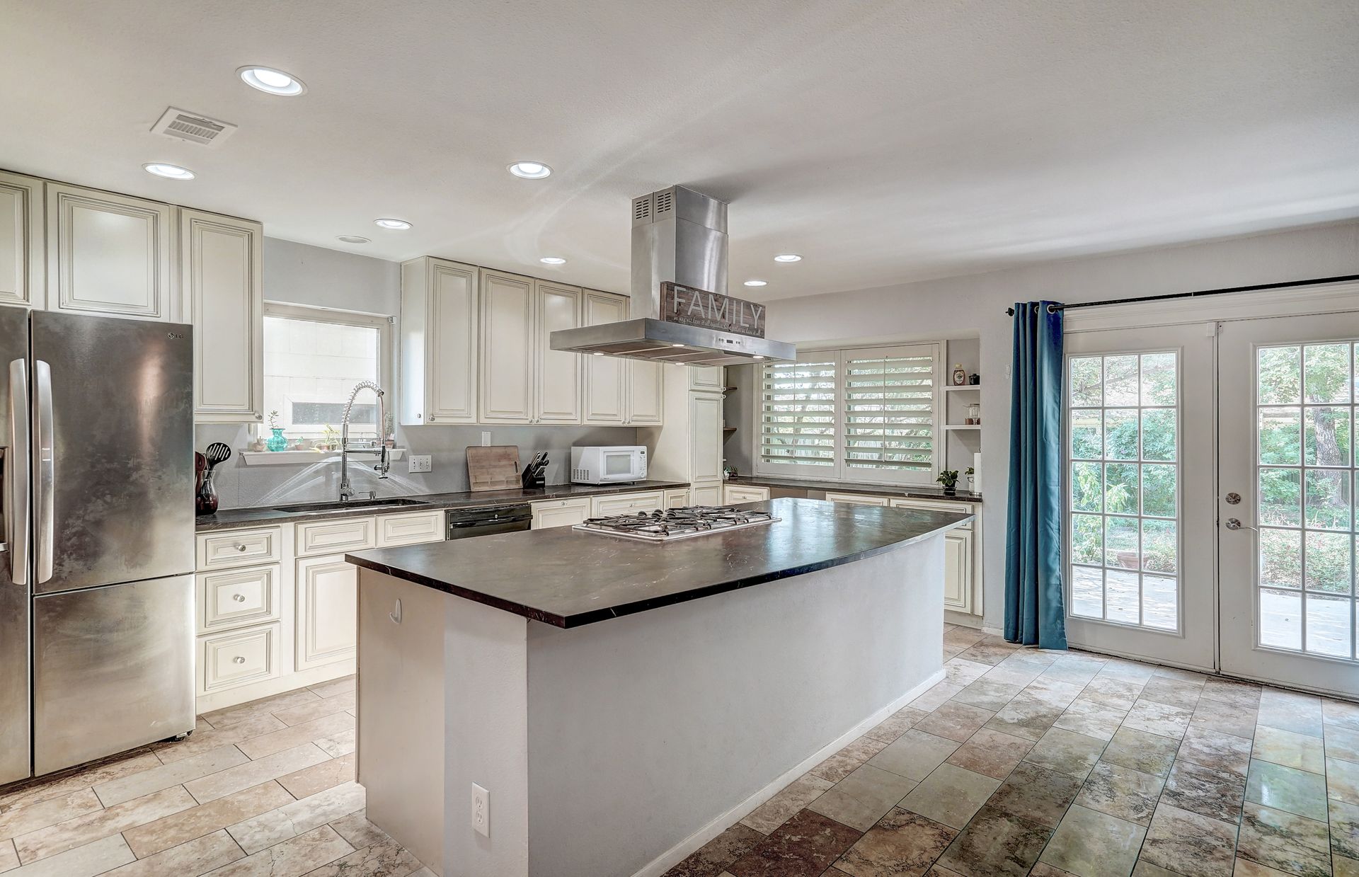 Cute as a button two-story home in Mesa Park with Robin's egg blue trim located just minutes from the Domain, Arboretum and Quarry Lake with easy access to Mopac/183. The home boasts an open floorplan downstairs with a cohesive living/dining area and a kitchen complete with a gourmet bar, stainless steel appliances, oversized cabinets, pot drawers and vent hood, perfect for the stay at home chef. You will enjoy the view of the spacious tree-lined backyard, landscaped with native plants, and the patio with stone firepit through the beautiful Plantation shutters. Many structural updates throughout, including a wall of windows and double French doors which provide loads of natural light, an inviting brick fireplace with raised hearth in living area and recently installed carpet upstairs! All of the fun, bright-colored bedrooms are located upstairs, along with a King-sized great room with attached bath. There is also a bonus half bath downstairs. Exemplary schools include Davis Elementary, Murchison MS and Anderson HS. It is a perfect place to call home!!