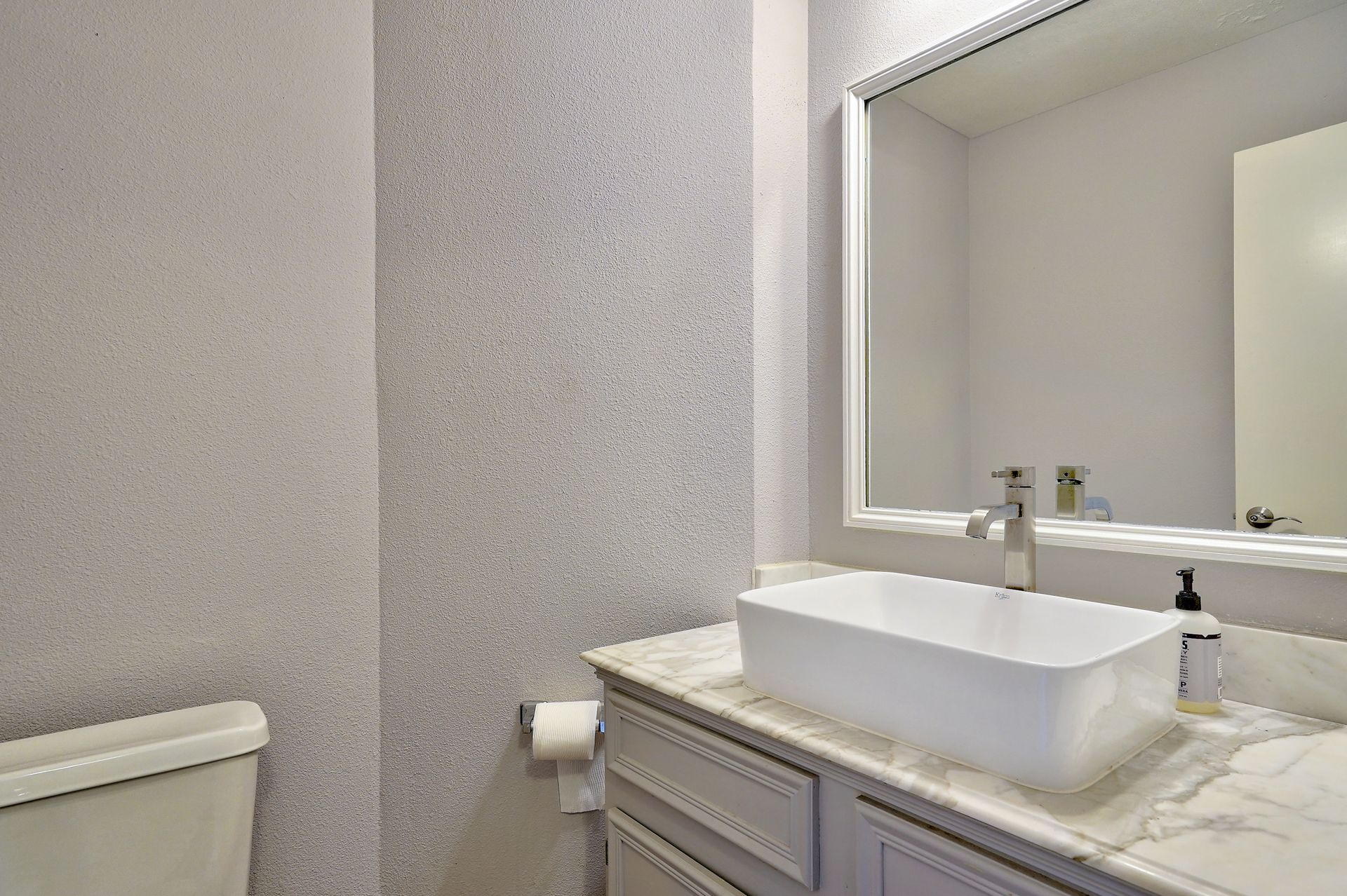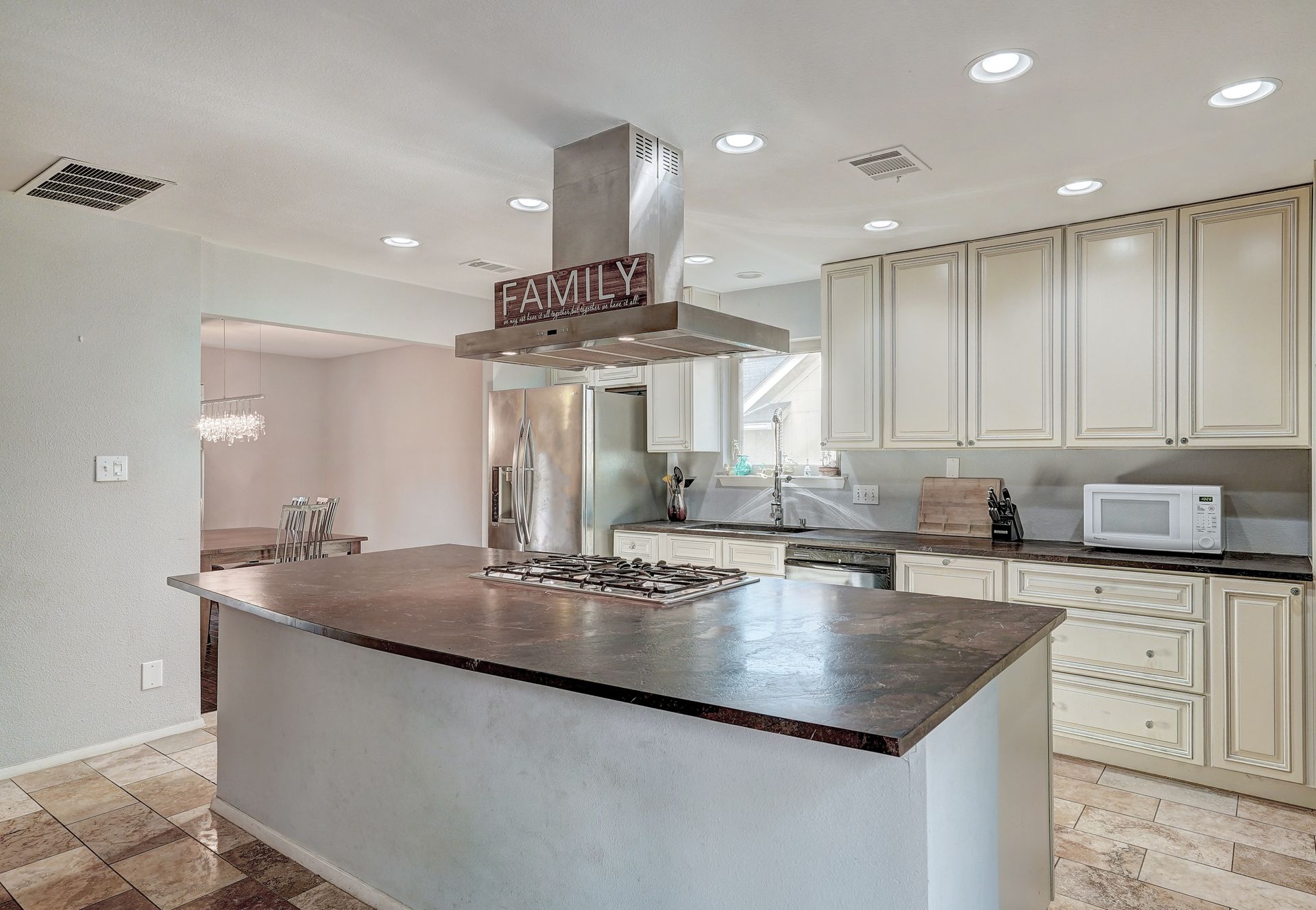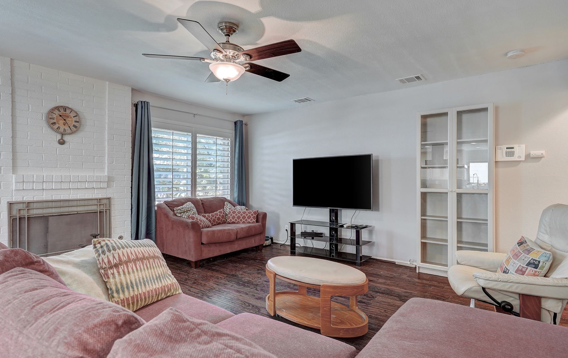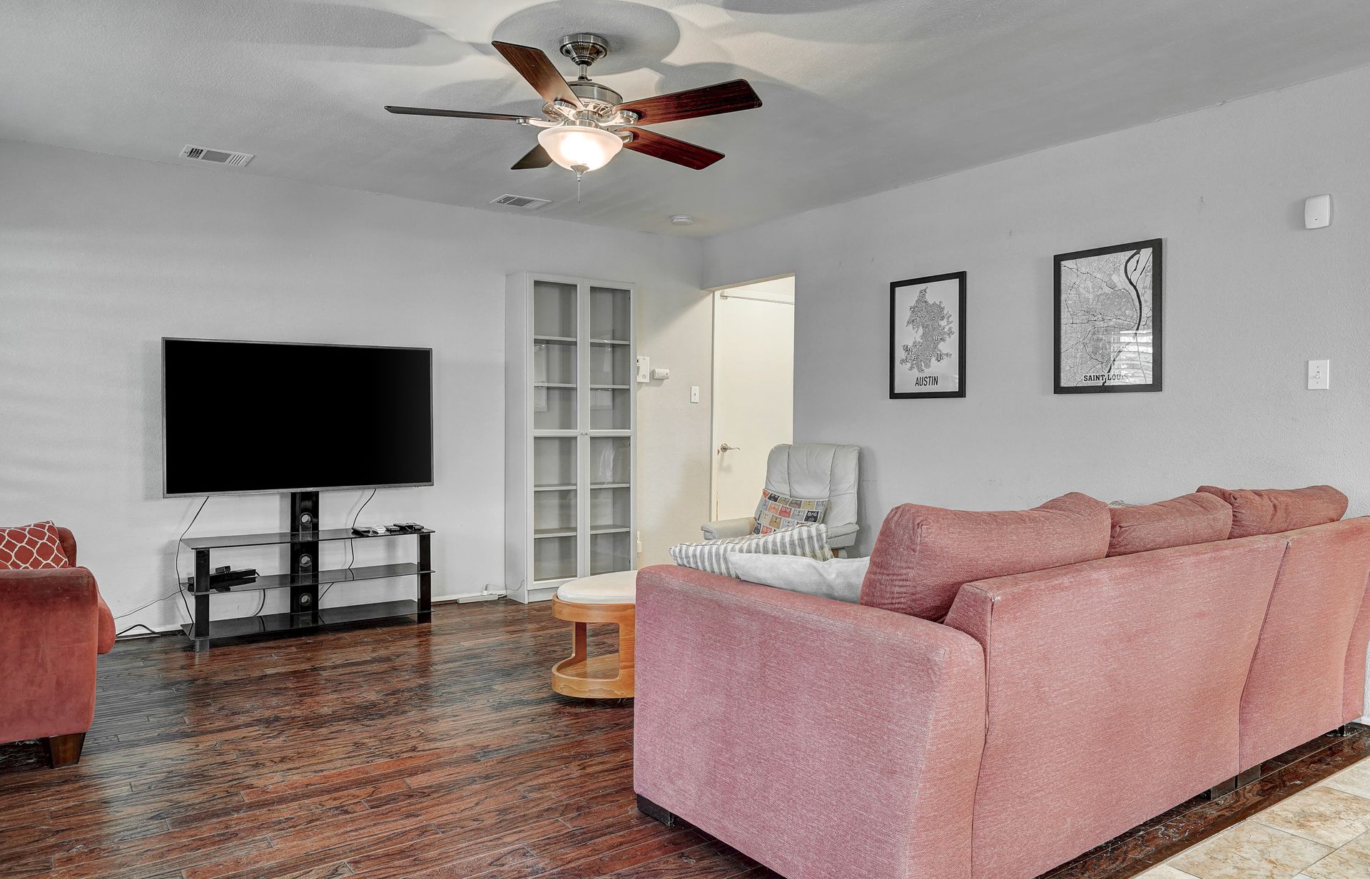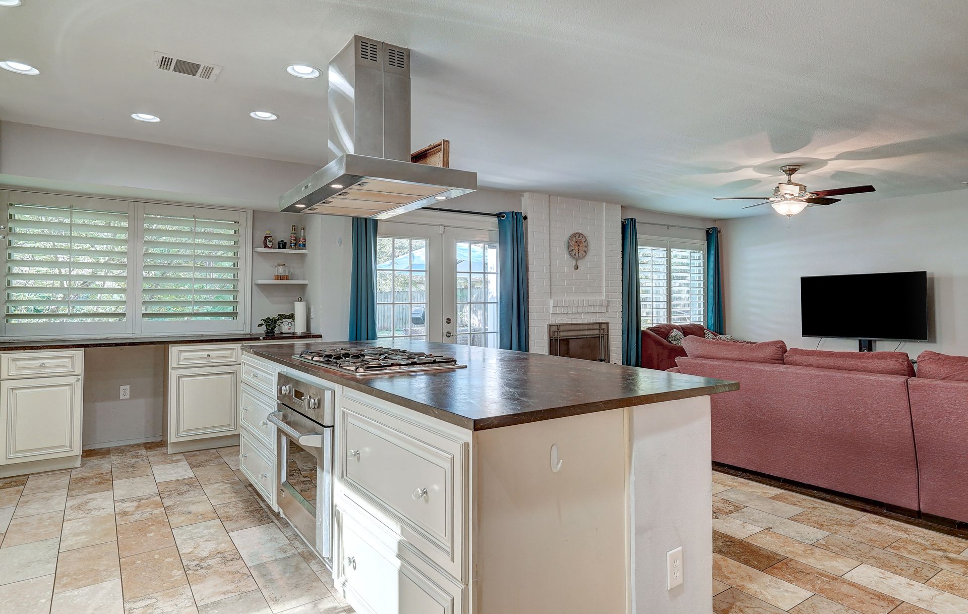 Cute as a button two-story home in Mesa Park with Robin's egg blue trim located just minutes from the Domain, Arboretum and Quarry Lake with easy access to Mopac/183. The home boasts an open floorplan downstairs with a cohesive living/dining area and a kitchen complete with a gourmet bar, stainless steel appliances, oversized cabinets, pot drawers and vent hood, perfect for the stay at home chef. You will enjoy the view of the spacious tree-lined backyard, landscaped with native plants, and the patio with stone firepit through the beautiful Plantation shutters. Many structural updates throughout, including a wall of windows and double French doors which provide loads of natural light, an inviting brick fireplace with raised hearth in living area and recently installed carpet upstairs! All of the fun, bright-colored bedrooms are located upstairs, along with a King-sized great room with attached bath. There is also a bonus half bath downstairs. Exemplary schools include Davis Elementary, Murchison MS and Anderson HS. It is a perfect place to call home!!