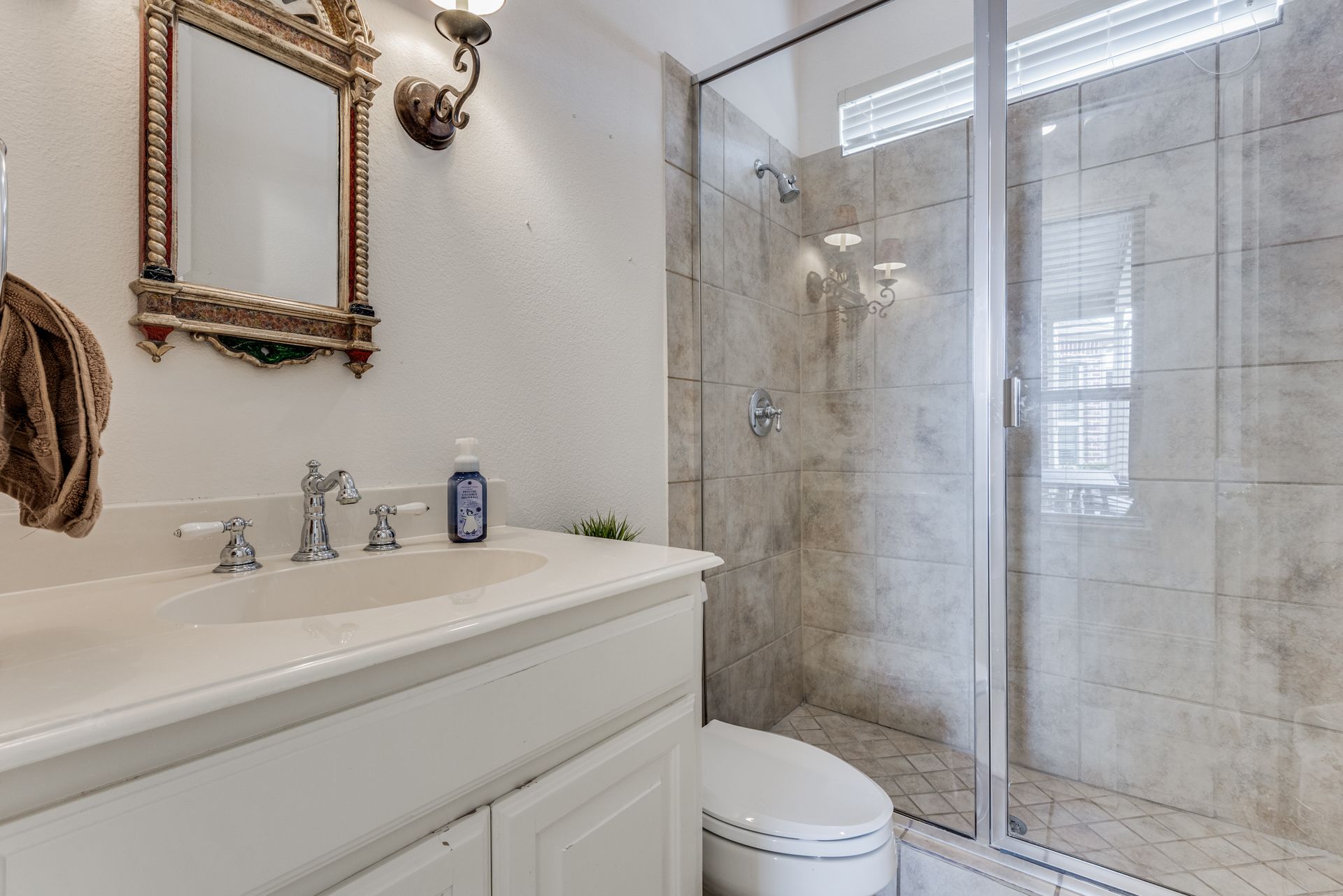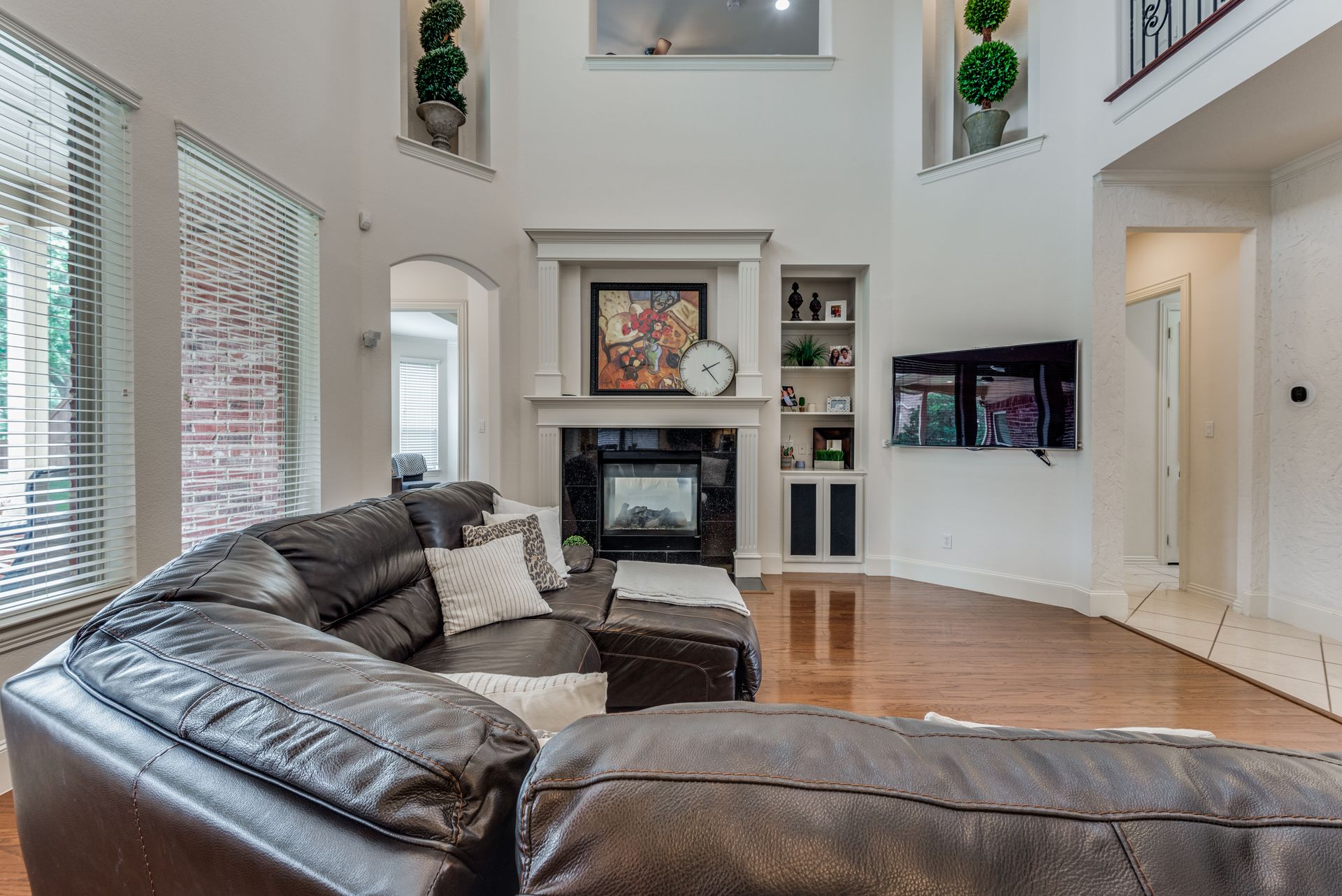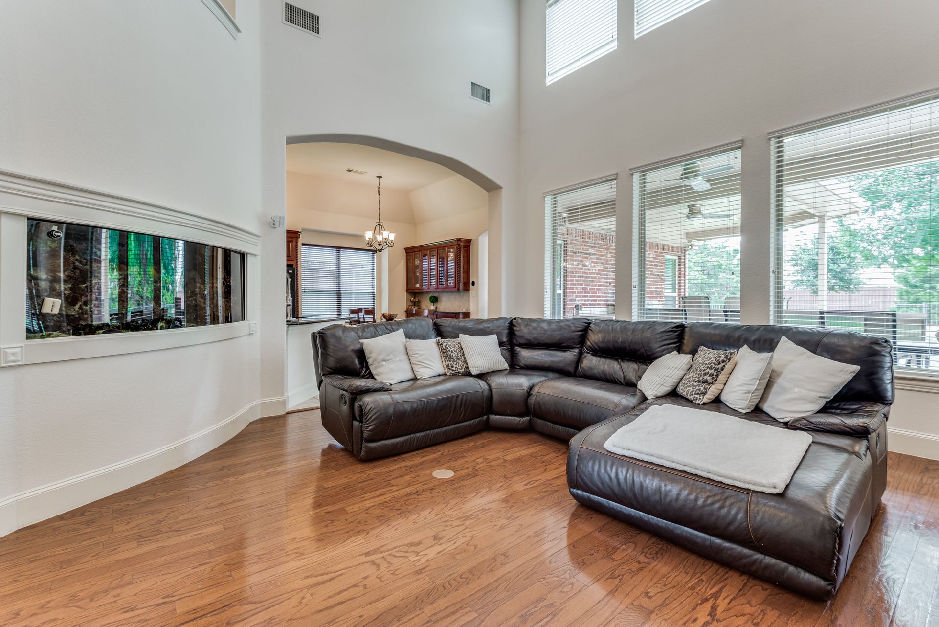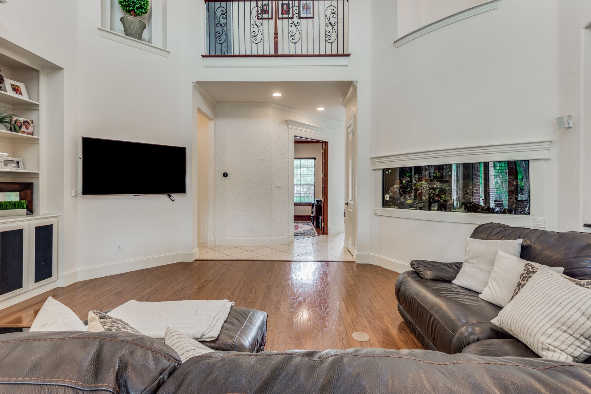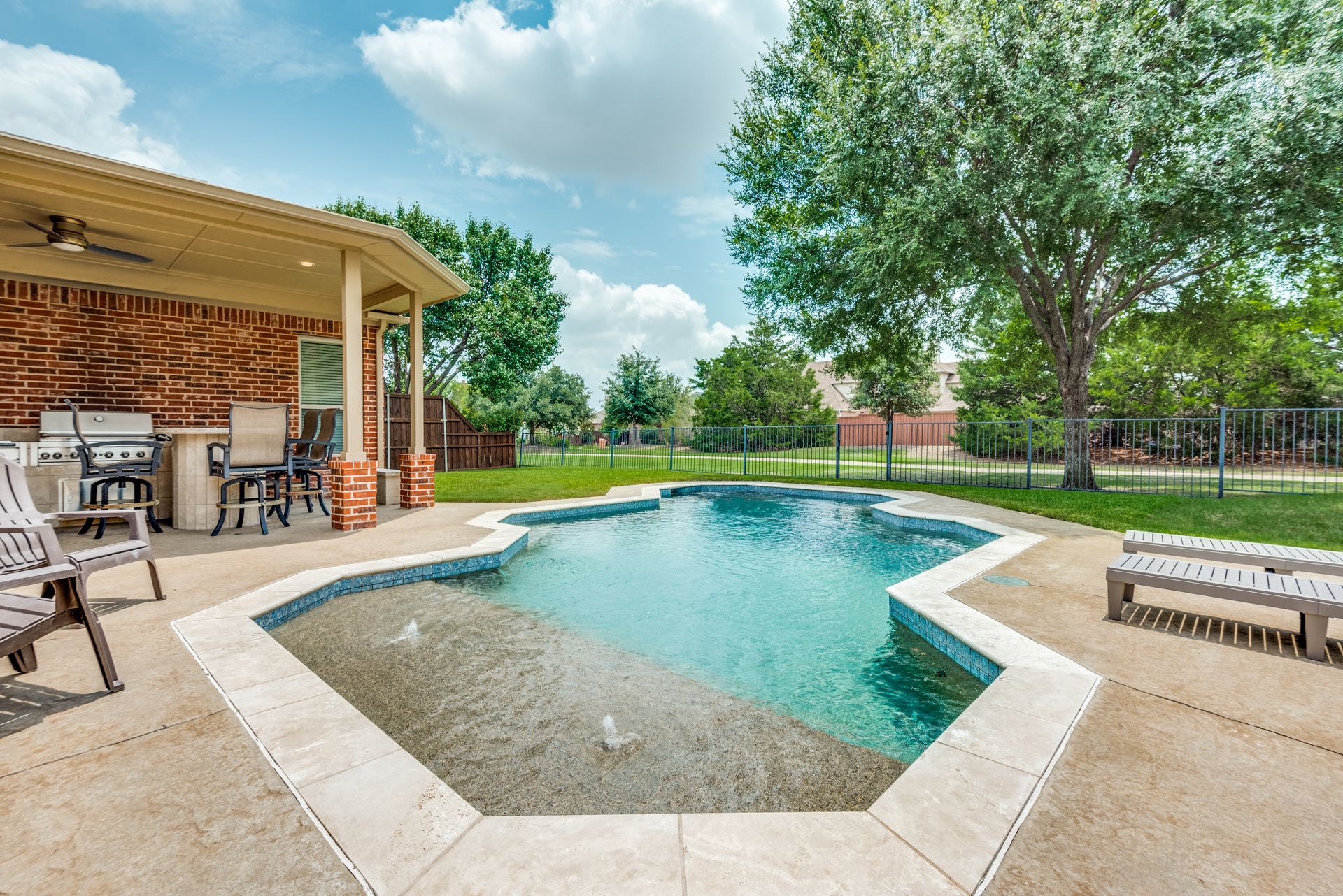 This stunning home offers the perfect blend of style and comfort.Upon entering the home, you are immediately struck by the elegant foyer, featuring high ceilings and a grand staircase. The open-concept design creates a seamless flow between the living areas. The main level boasts a spacious living room, adorned with large windows that bathe the space in natural light.Whether you are hosting a formal gathering or enjoying a cozy movie night, this space provides the perfect backdrop. Adjacent to the living room, you'll find the gourmet kitchen with sleek black appliances, including a gas cook-top. One of the highlights of this remarkable home is the two bedrooms located on the lower level.The sparkling pool invites you to take a refreshing dip on hot summer days.You can appreciate the privacy and serenity provided by the greenbelt backdrop.