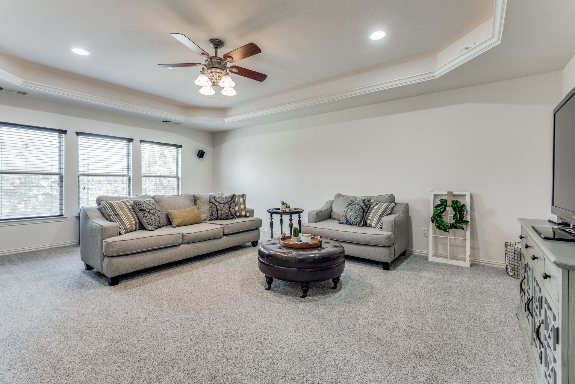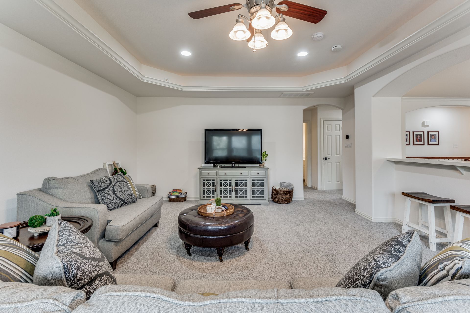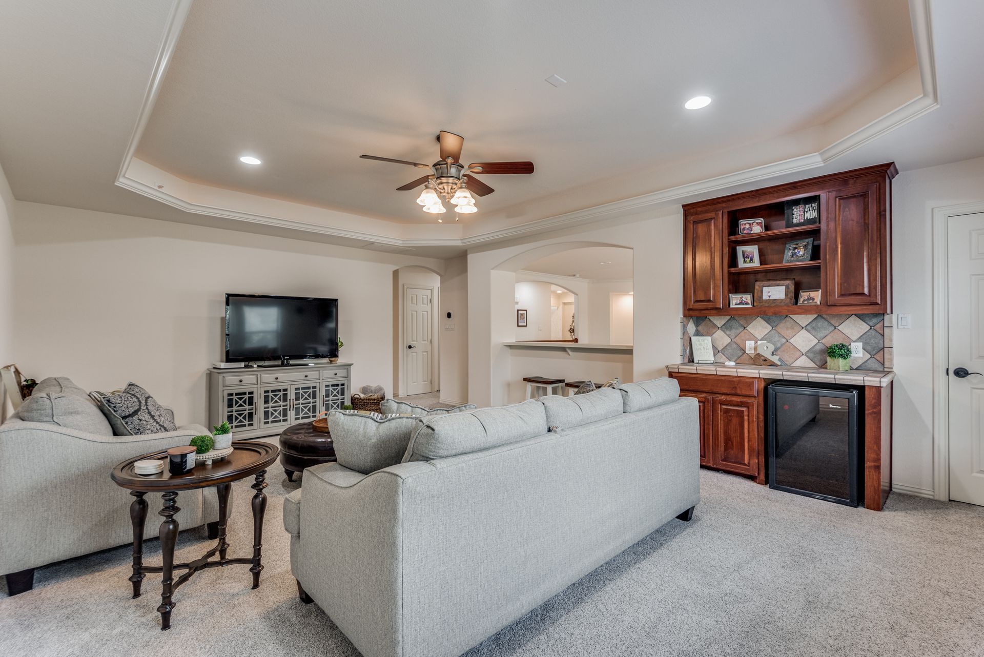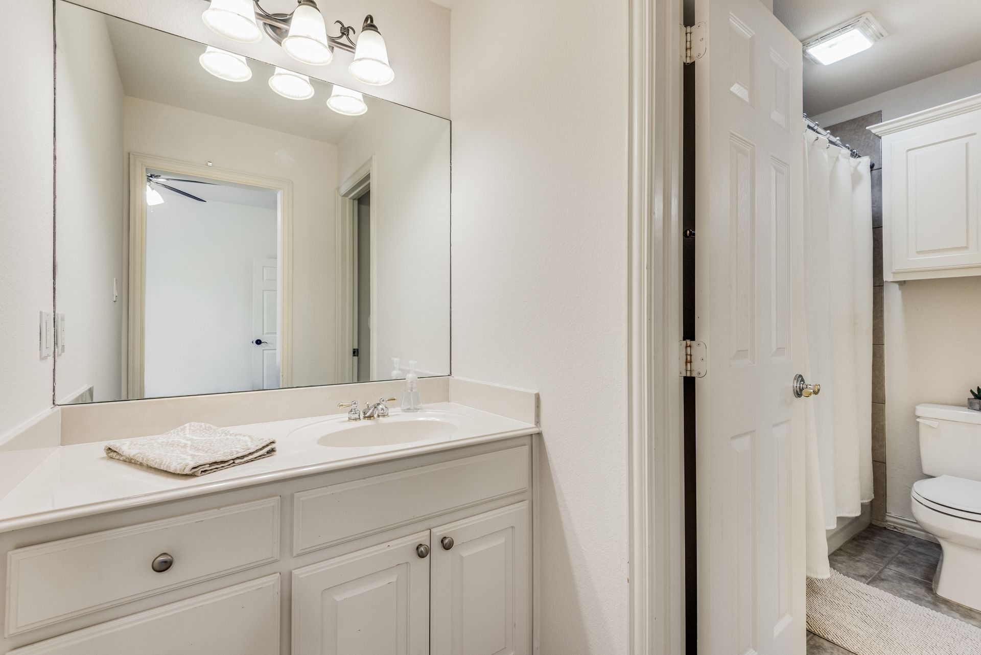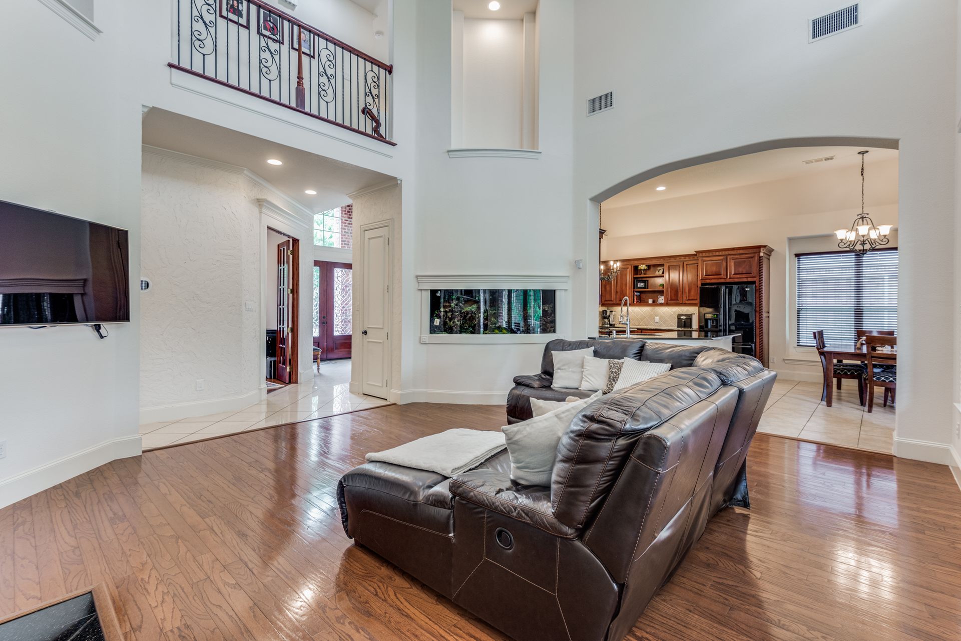 This stunning home offers the perfect blend of style and comfort.Upon entering the home, you are immediately struck by the elegant foyer, featuring high ceilings and a grand staircase. The open-concept design creates a seamless flow between the living areas. The main level boasts a spacious living room, adorned with large windows that bathe the space in natural light.Whether you are hosting a formal gathering or enjoying a cozy movie night, this space provides the perfect backdrop. Adjacent to the living room, you'll find the gourmet kitchen with sleek black appliances, including a gas cook-top. One of the highlights of this remarkable home is the two bedrooms located on the lower level.The sparkling pool invites you to take a refreshing dip on hot summer days.You can appreciate the privacy and serenity provided by the greenbelt backdrop.