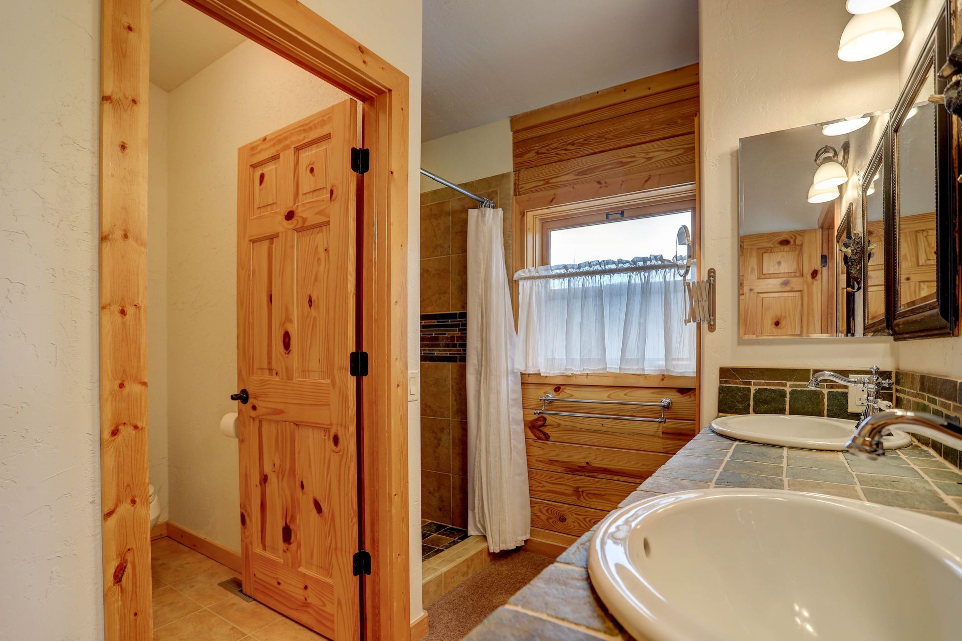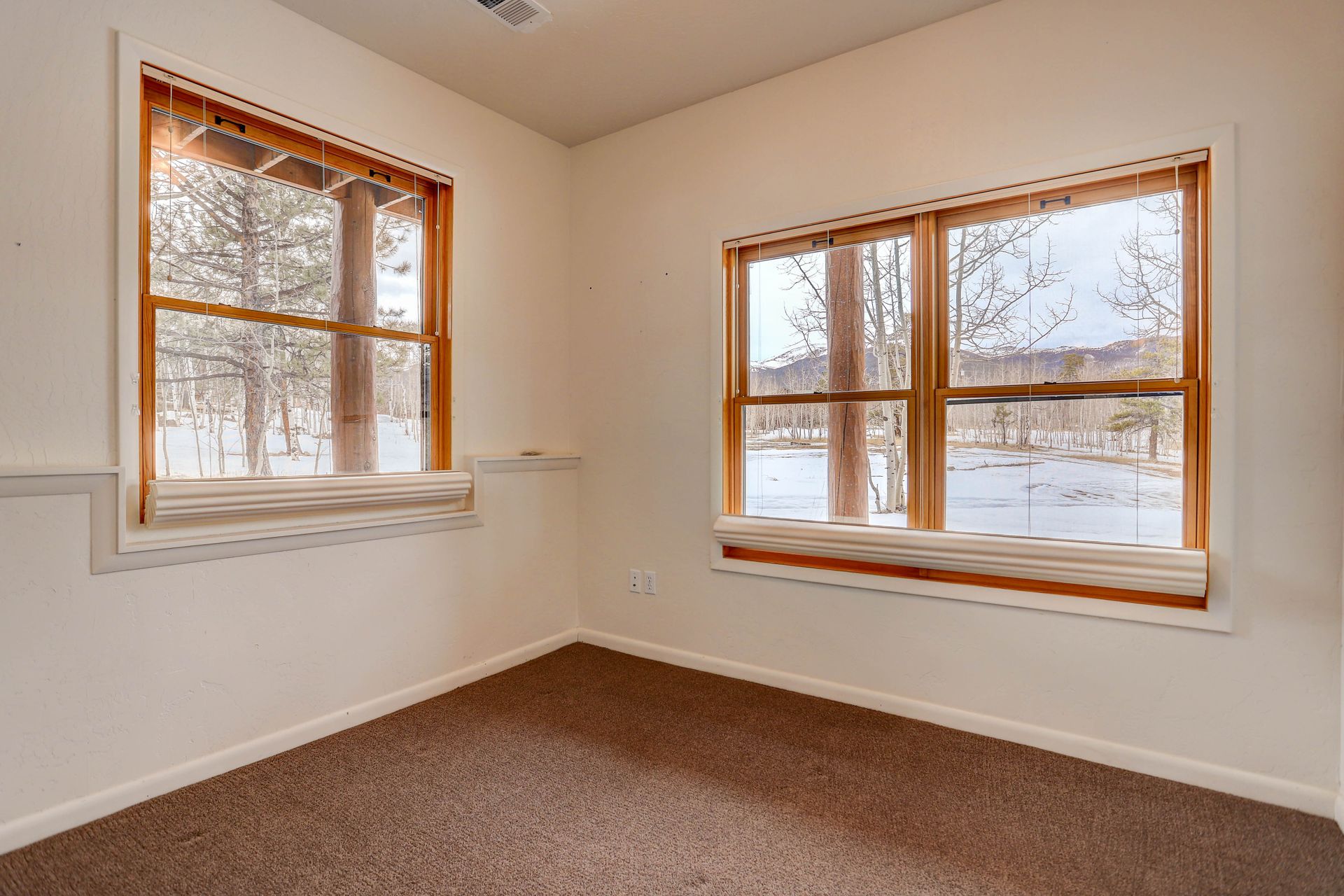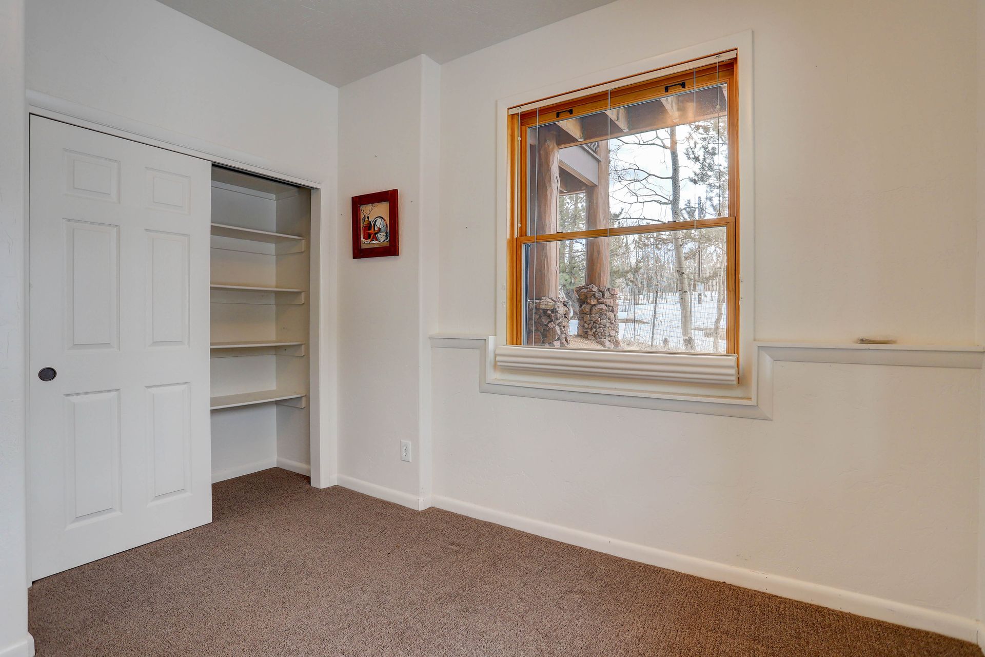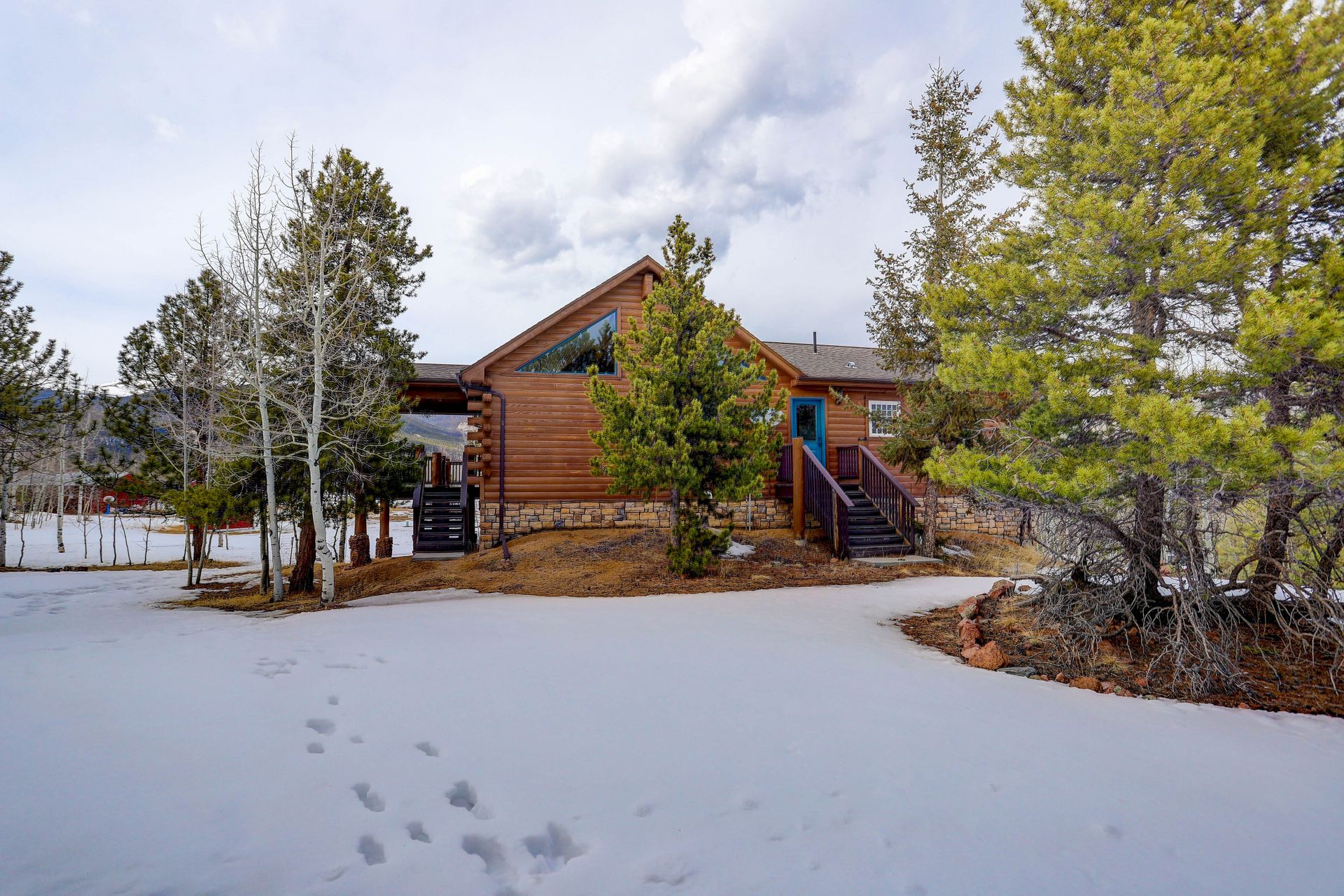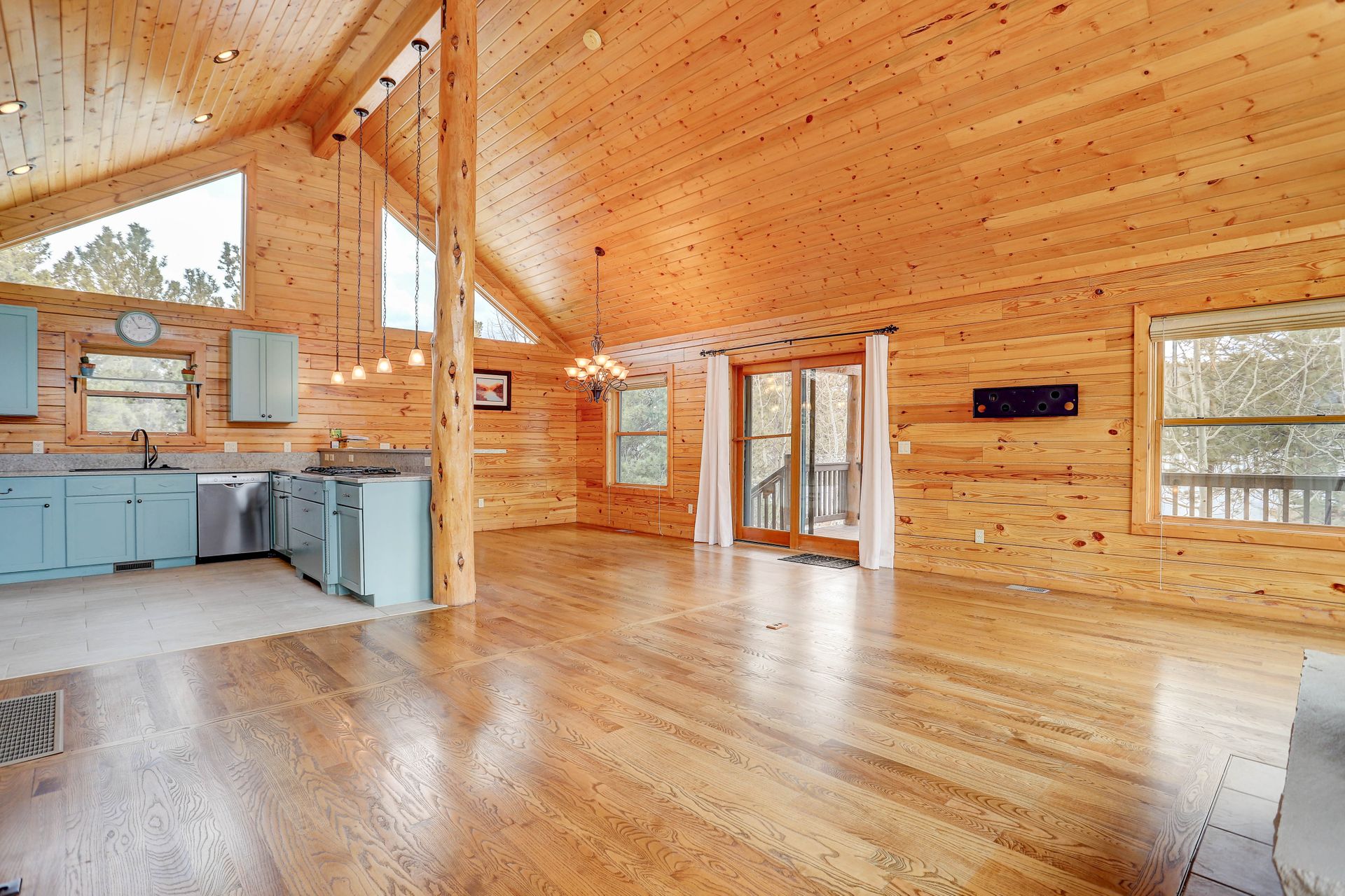 Looking out to the Pike National Forest and Mt Evans Wilderness you’ll have snowcapped views from Mt Logan to Rosalie Peak from your vaulted great room. Towering beetle killed pine ceilings, oak and tile floors, turquoise cabinets, quartz counters and a brick hearth with wood stove accent this living, dining and kitchen space. The engineered logs make for an incredibly solid home and provide that mountain rustic feel that you move here to find. Immaculately maintained and ready for immediate occupancy you can be home before the spring flowers arrive. The wrap around deck is low maintenance so you’ll only need to enjoy the stars, sun and views. The acre lot is flat to gently sloping and graced with pines, aspen and meadow. The HOA is voluntary but for a small annual fee you will have access to stocked trout ponds for summer or winter fun. There are even horse facilities that may have room for your “ride”. Recreational opportunities are endless and begin minutes from your front door.