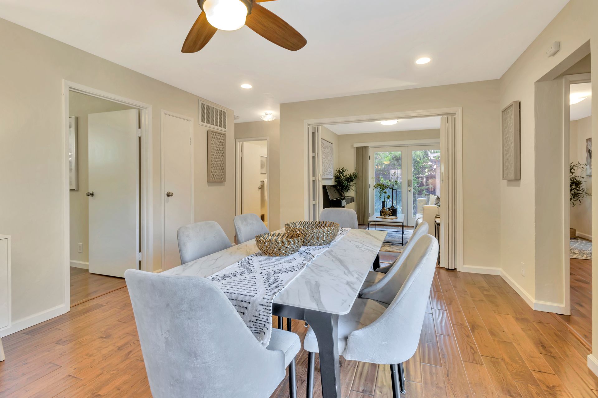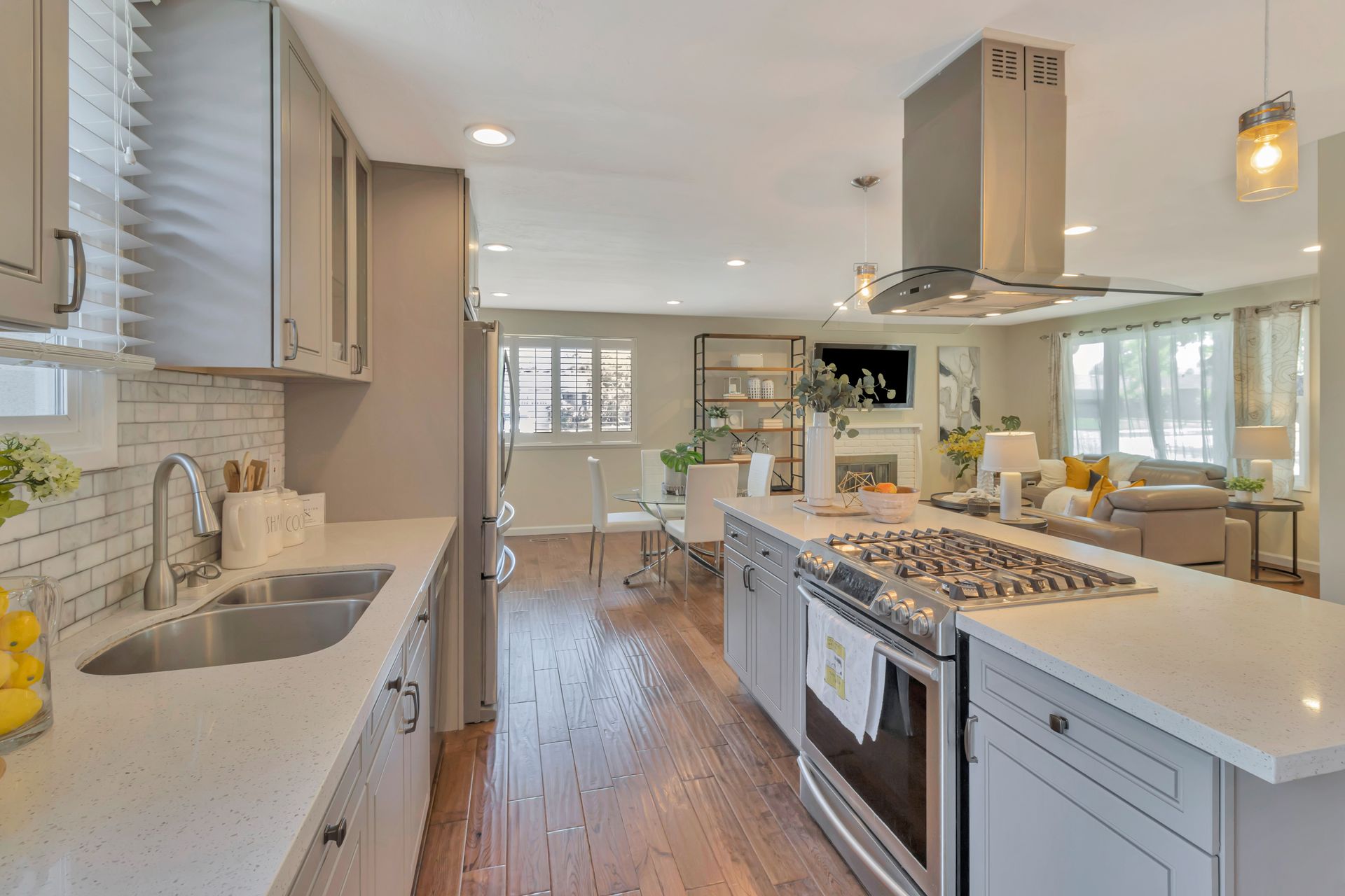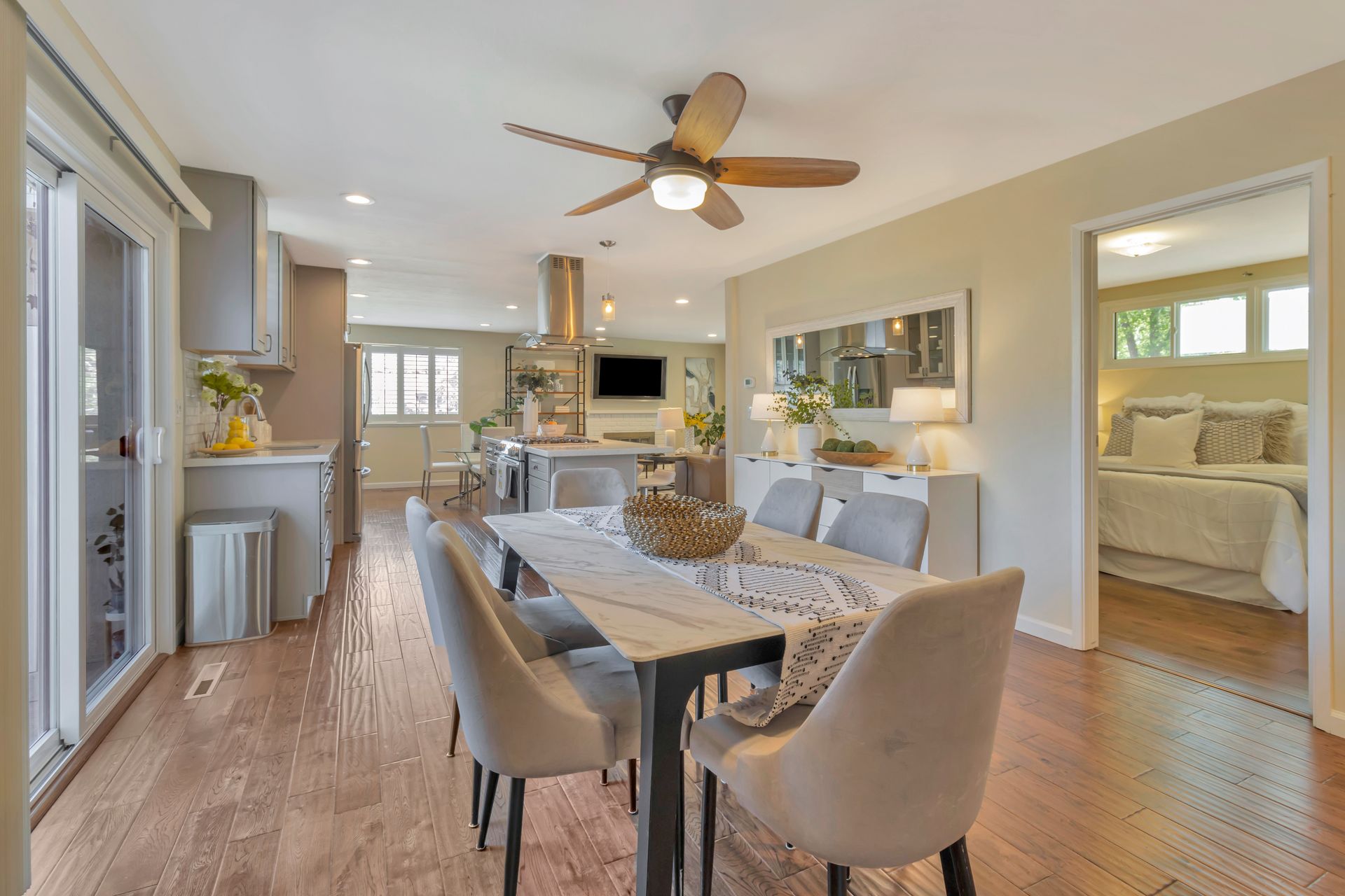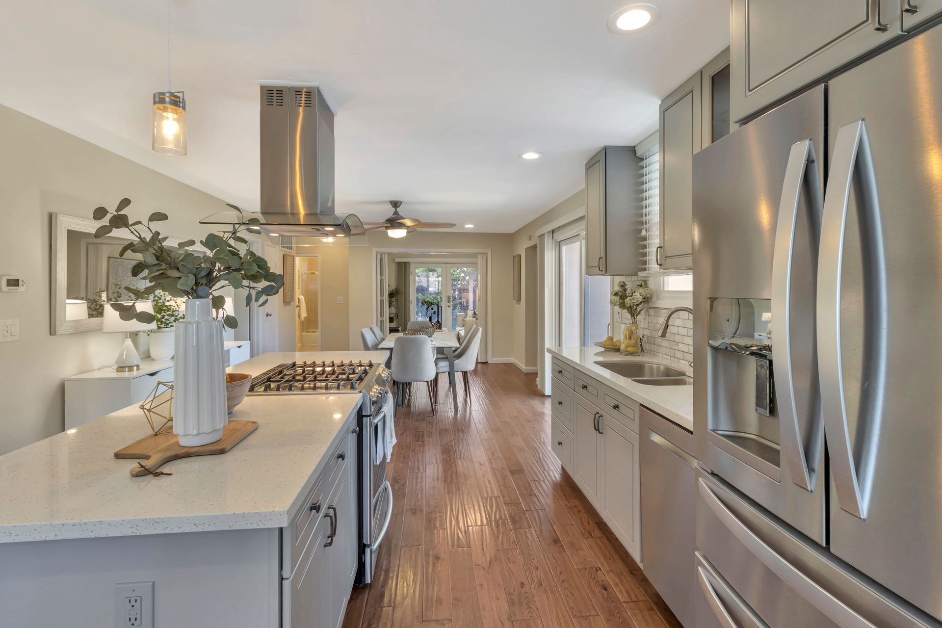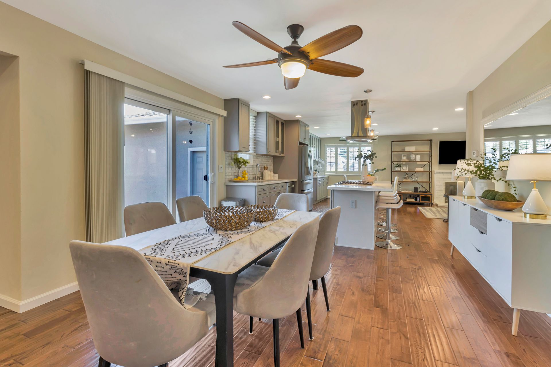 stainless-steel appliances, also hardwood flooring throughout. Relax in front of the cozy fireplace in the living room or enjoy a lovely day in the backyard with a gazebo and natural stone pavers. This home boasts 1,554 sf of living space on a 7,000 sf lot, 5 bedrooms, plenty of space for a home office, and 3 full baths, easy access to shopping and freeways and Union schools: Oster Elementary, Dartmouth Middle and Leigh High!