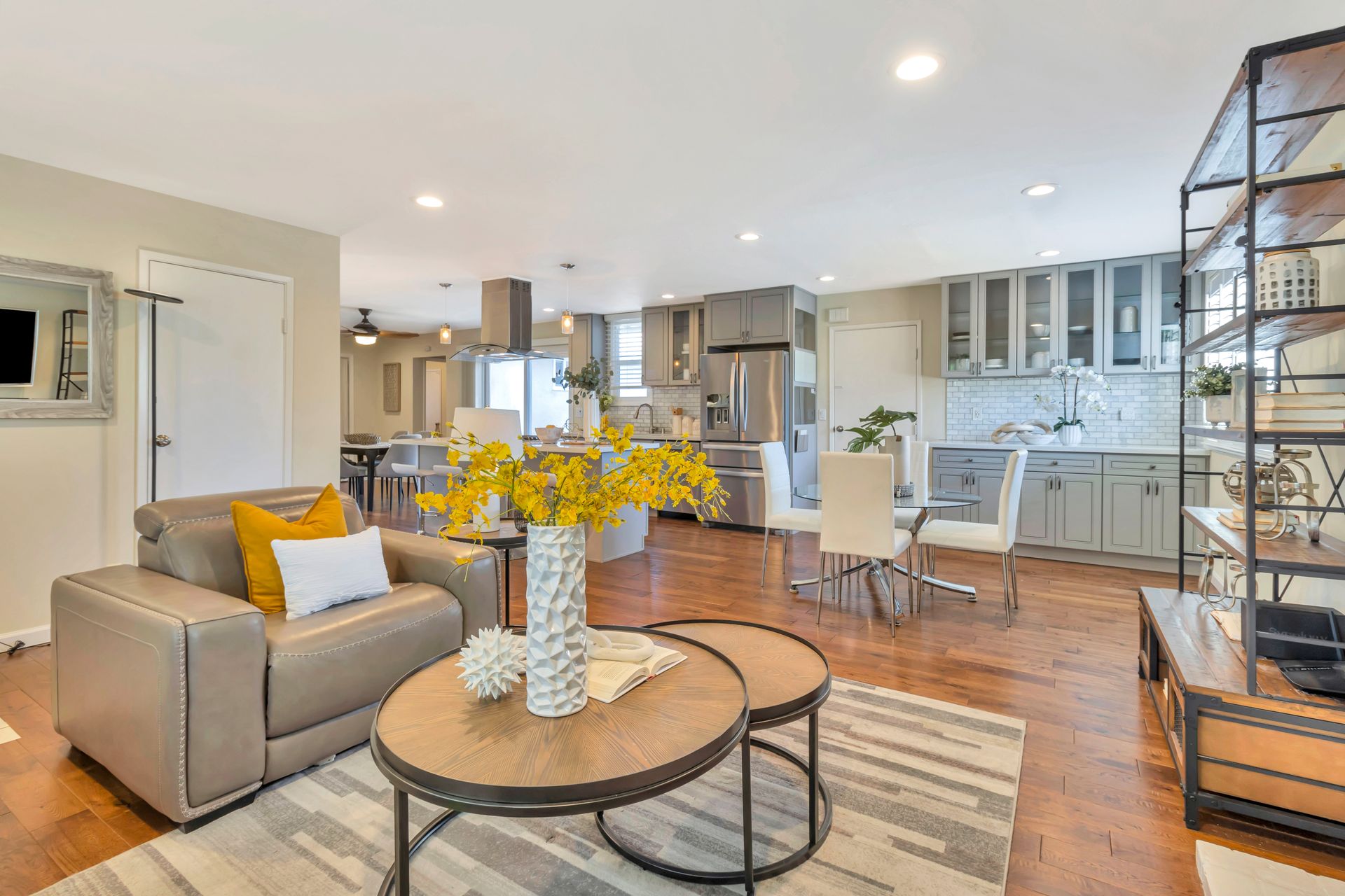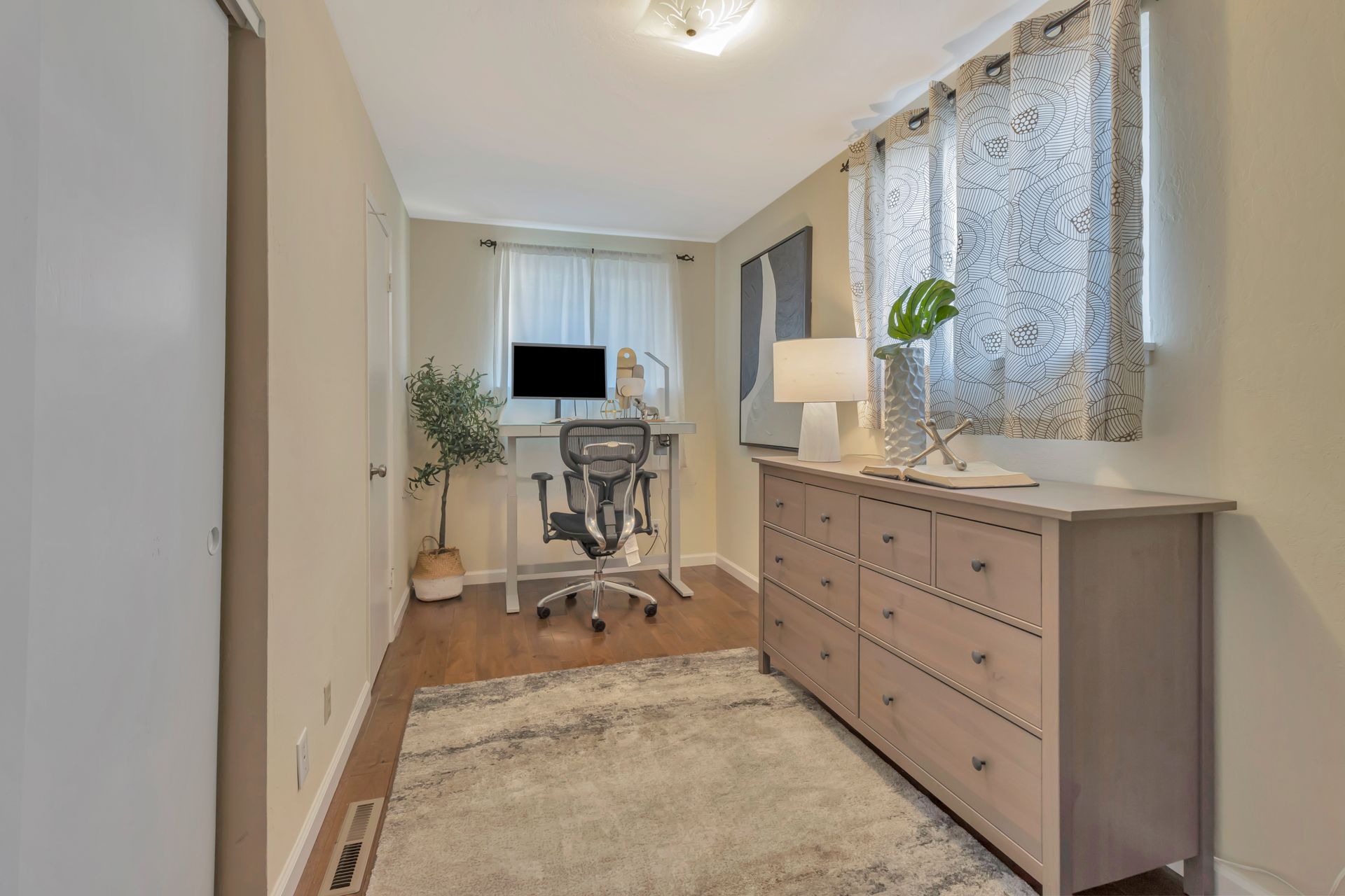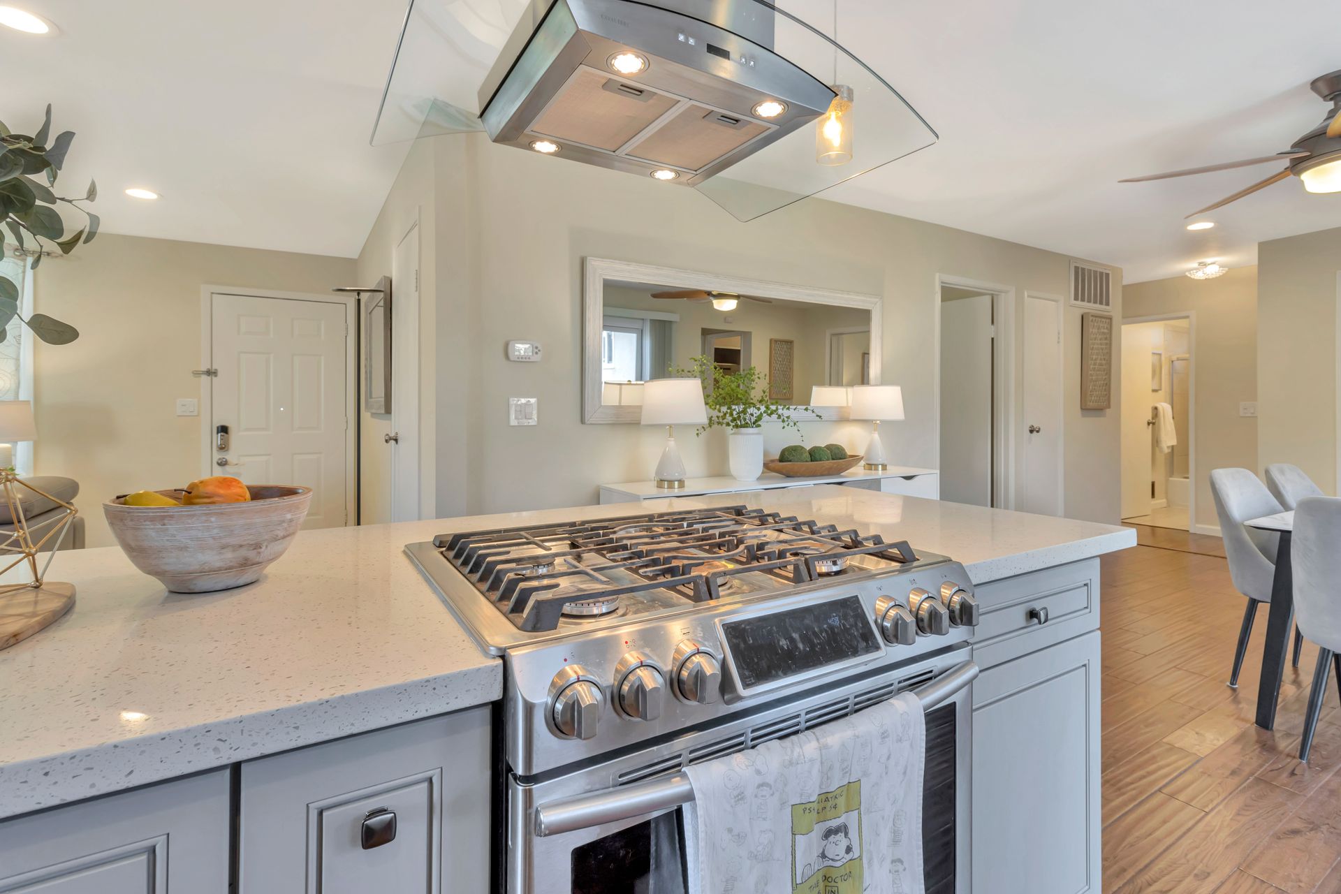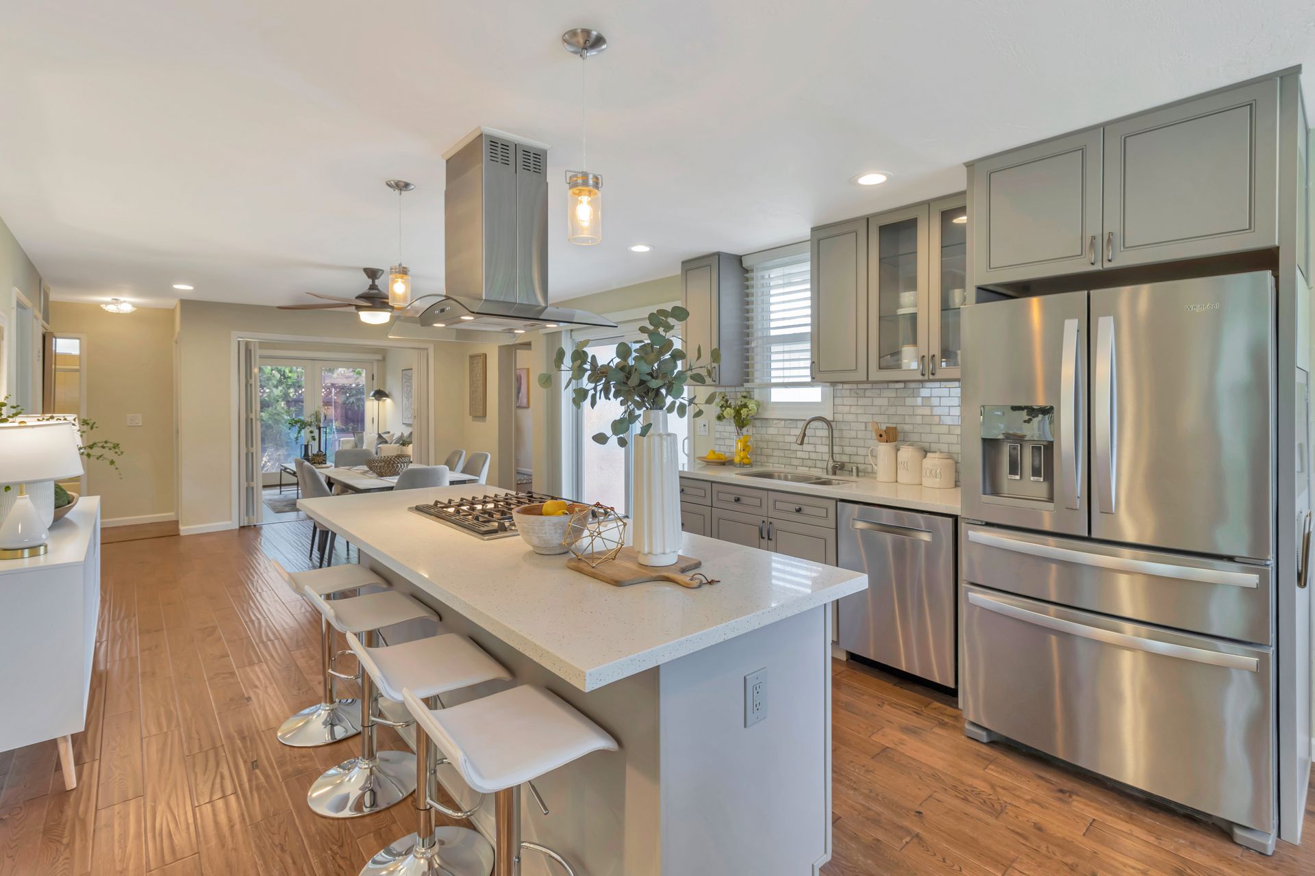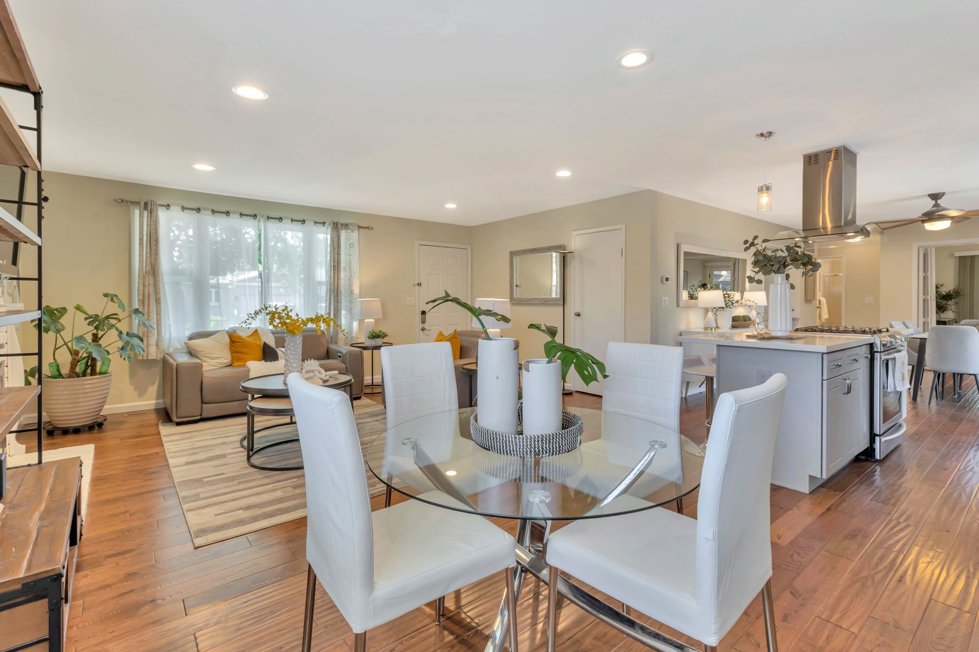 stainless-steel appliances, also hardwood flooring throughout. Relax in front of the cozy fireplace in the living room or enjoy a lovely day in the backyard with a gazebo and natural stone pavers. This home boasts 1,554 sf of living space on a 7,000 sf lot, 5 bedrooms, plenty of space for a home office, and 3 full baths, easy access to shopping and freeways and Union schools: Oster Elementary, Dartmouth Middle and Leigh High!