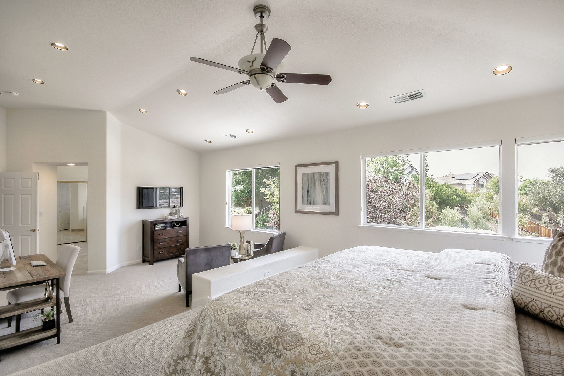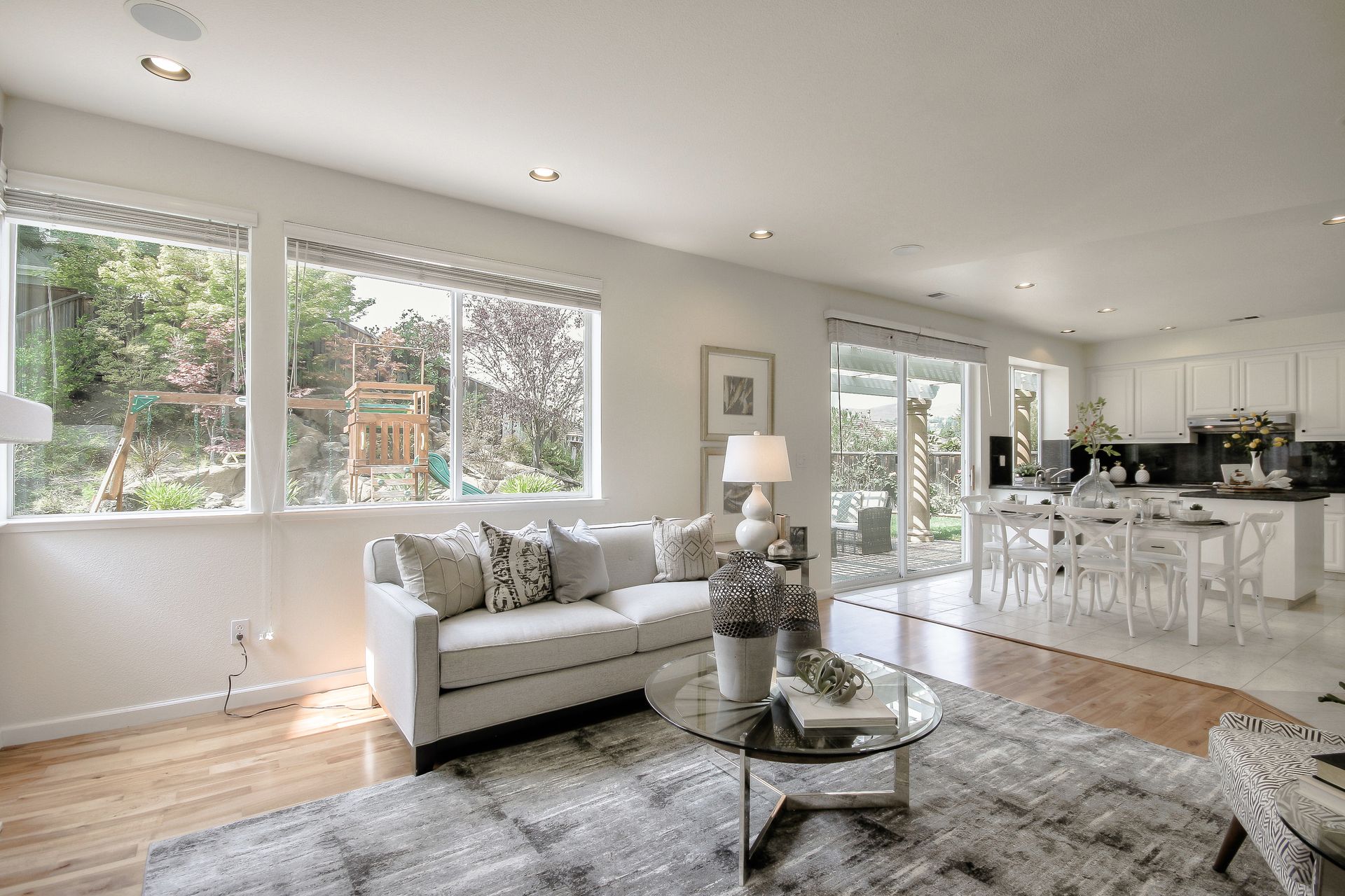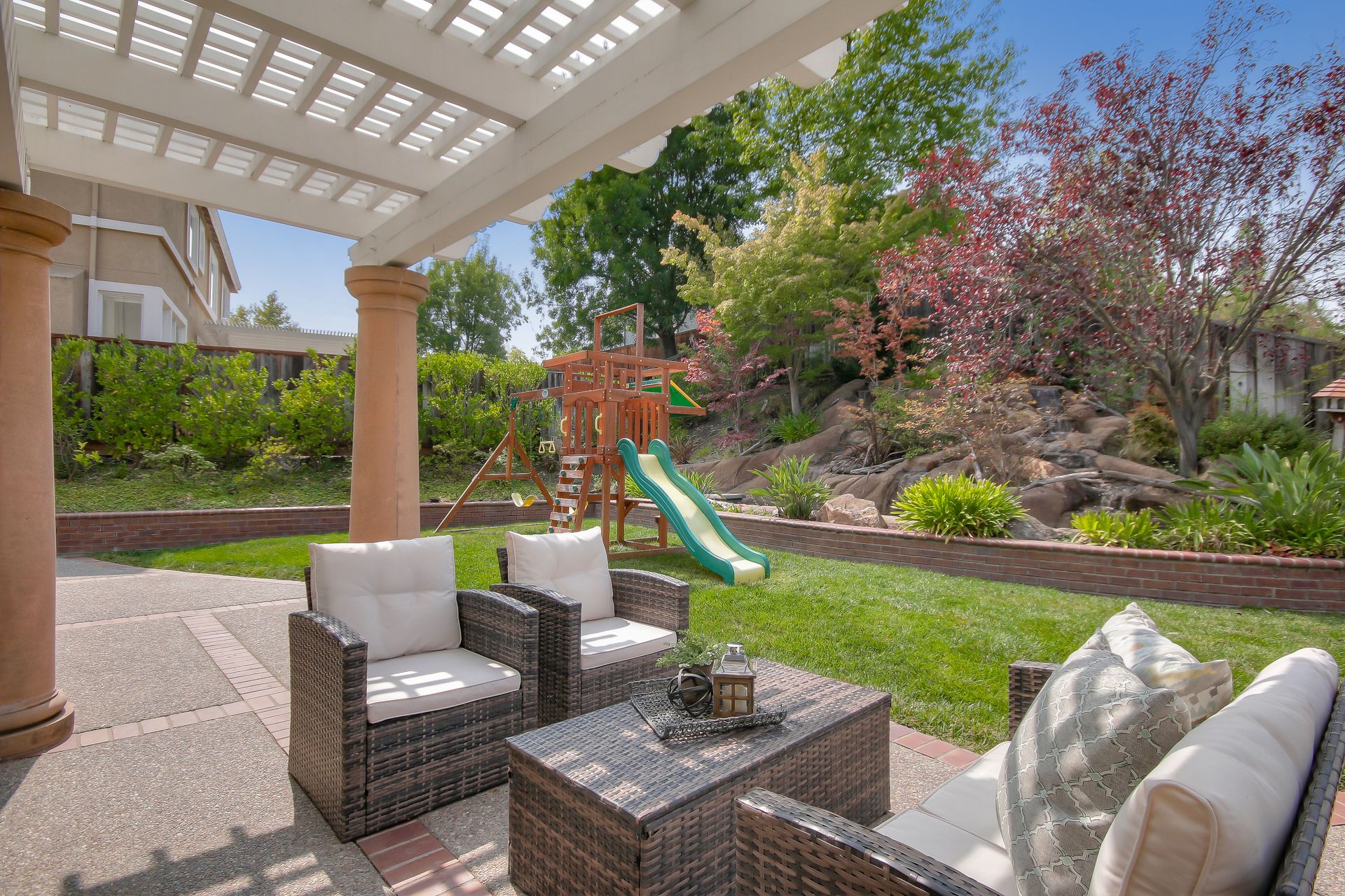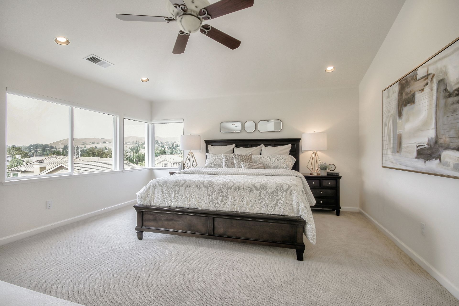 Ready to enjoy Mount Diablo views and executive Danville living? From the curb appeal of this EAST facing home, to the sought-after floorplan, to the backyard oasis, this home delivers! Soaring ceilings, curved staircase, clerestory windows, hardwood flooring and plantation shutters greet you as you enter. With four bedrooms (one bedroom/one bath on the first floor) and three full baths, there is room for everyone. The sparkling eat-in kitchen with white cabinetry, slab granite, gas cooktop, center island and walk-in pantry opens to the generously sized family room complete with cozy gas burning fireplace. The plethora of windows highlight the view of the private backyard with amazing water feature, multiple seating areas, professional landscaping and Mount Diablo views! Upstairs find the spacious ensuite master with private retreat and two bedrooms which share a dual bath. All bedrooms offer recently installed carpeting. Award-winning schools, close to Blackhawk shops and entertainment make this a very special place to live! OWNED solar system! Come and experience for yourself! You just may decide not to leave!
