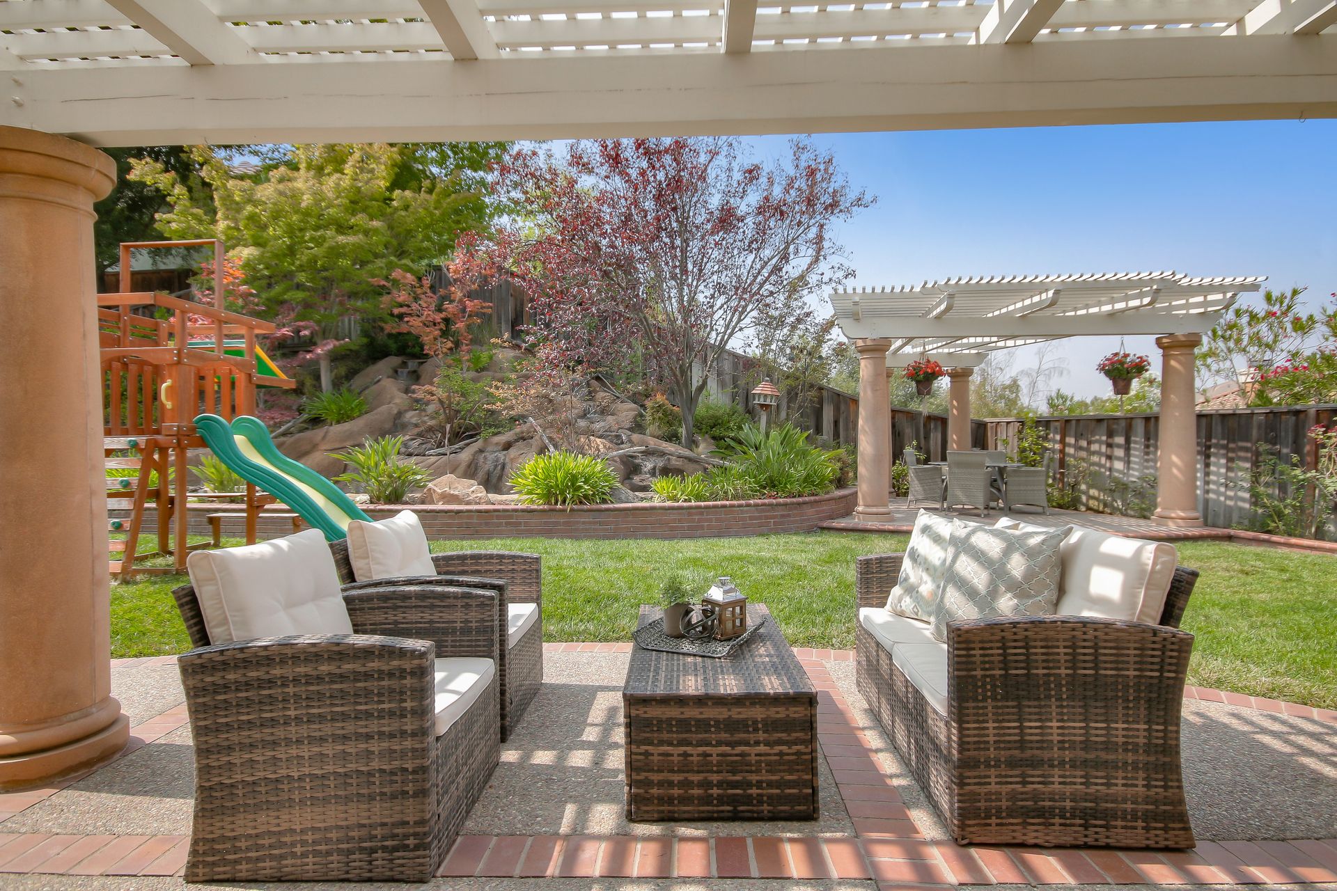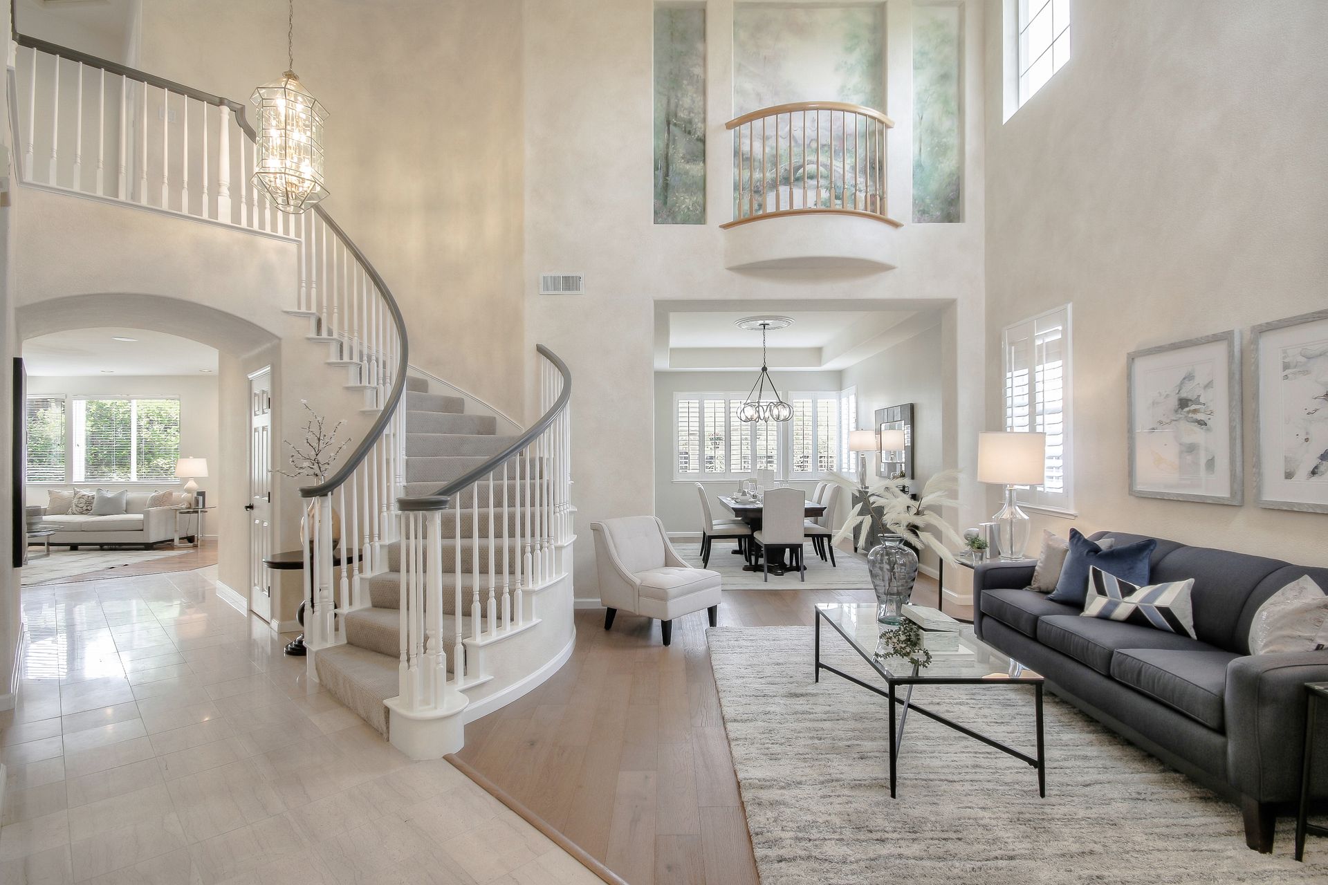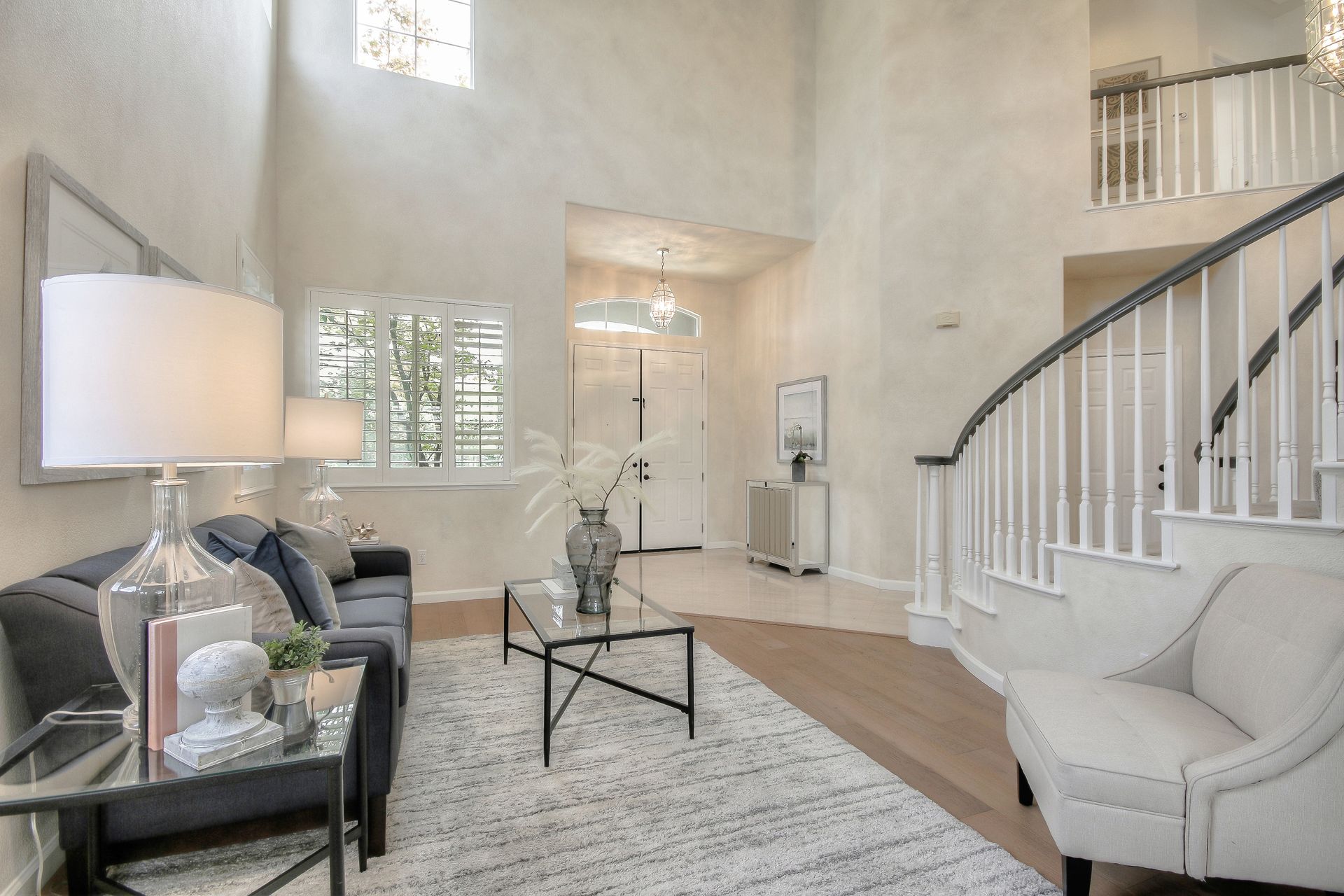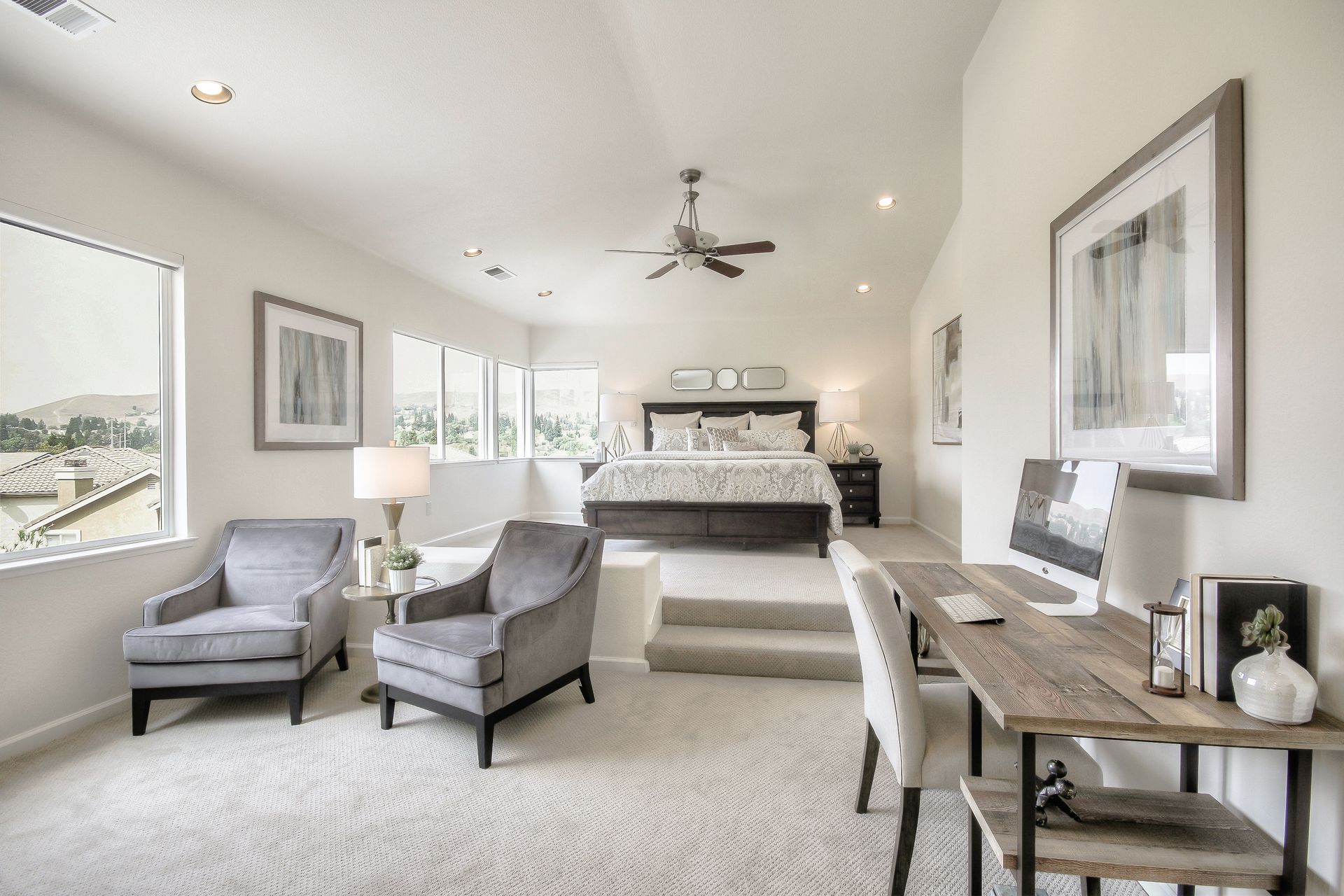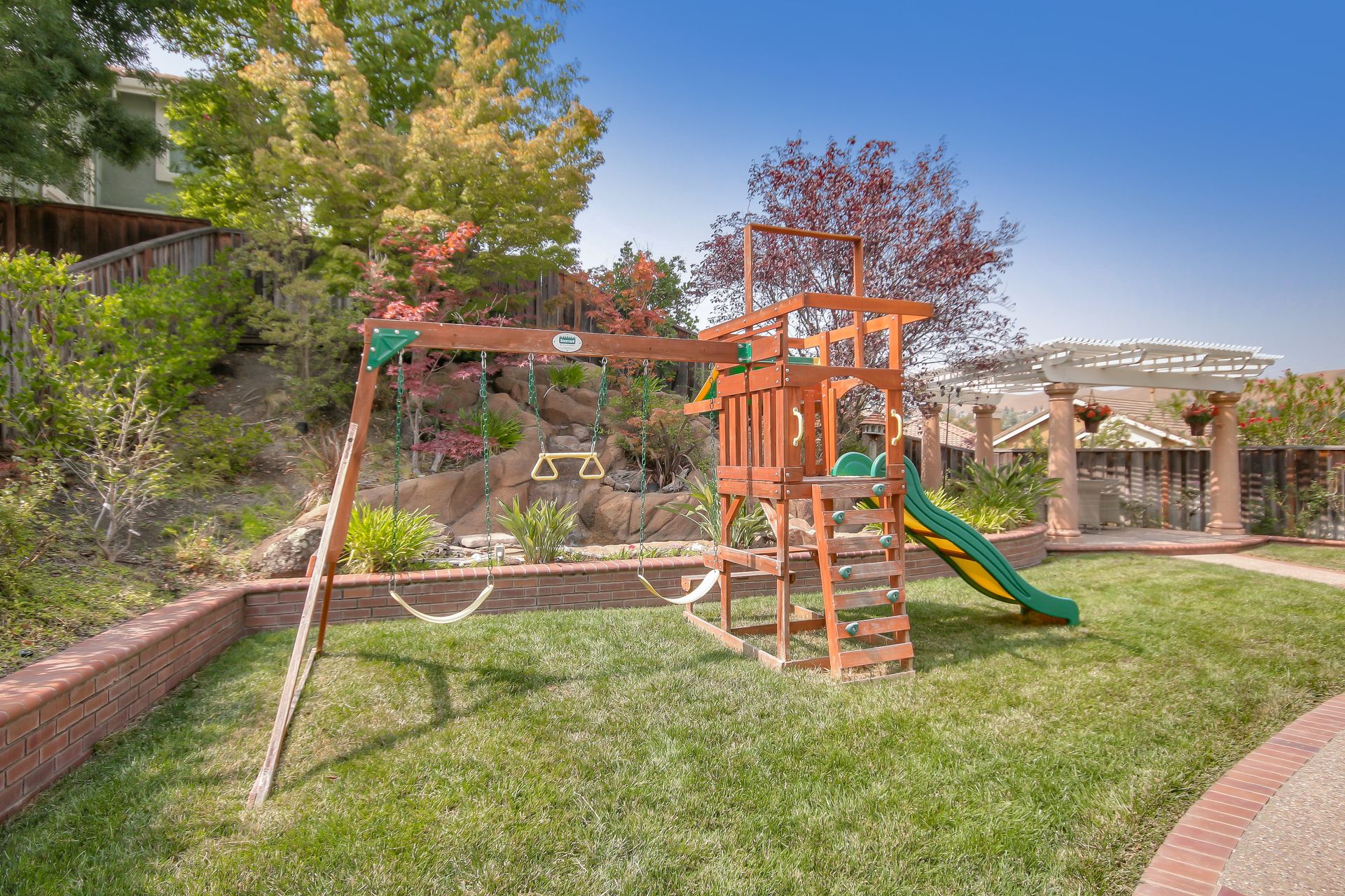 Ready to enjoy Mount Diablo views and executive Danville living? From the curb appeal of this EAST facing home, to the sought-after floorplan, to the backyard oasis, this home delivers! Soaring ceilings, curved staircase, clerestory windows, hardwood flooring and plantation shutters greet you as you enter. With four bedrooms (one bedroom/one bath on the first floor) and three full baths, there is room for everyone. The sparkling eat-in kitchen with white cabinetry, slab granite, gas cooktop, center island and walk-in pantry opens to the generously sized family room complete with cozy gas burning fireplace. The plethora of windows highlight the view of the private backyard with amazing water feature, multiple seating areas, professional landscaping and Mount Diablo views! Upstairs find the spacious ensuite master with private retreat and two bedrooms which share a dual bath. All bedrooms offer recently installed carpeting. Award-winning schools, close to Blackhawk shops and entertainment make this a very special place to live! OWNED solar system! Come and experience for yourself! You just may decide not to leave!