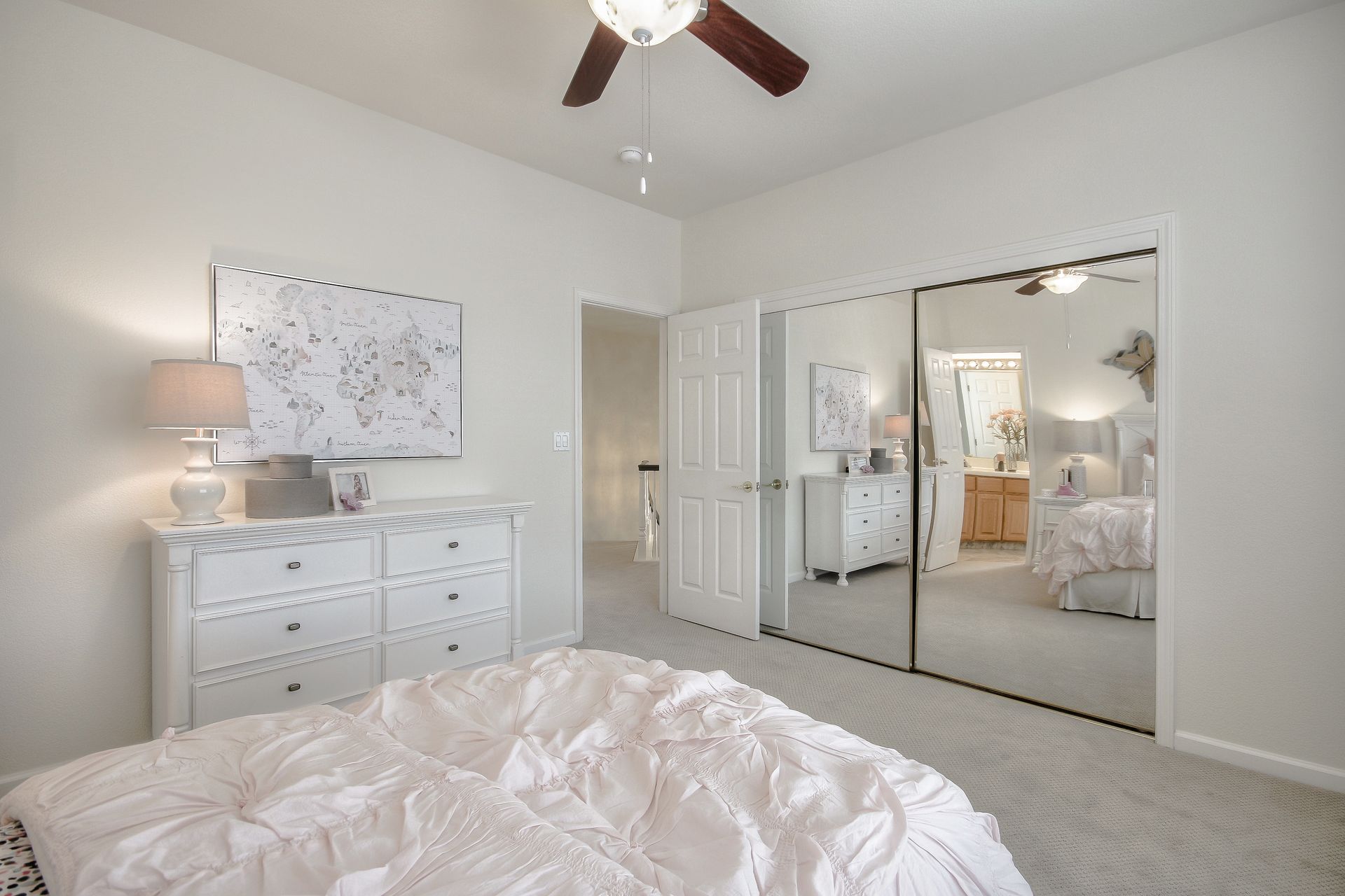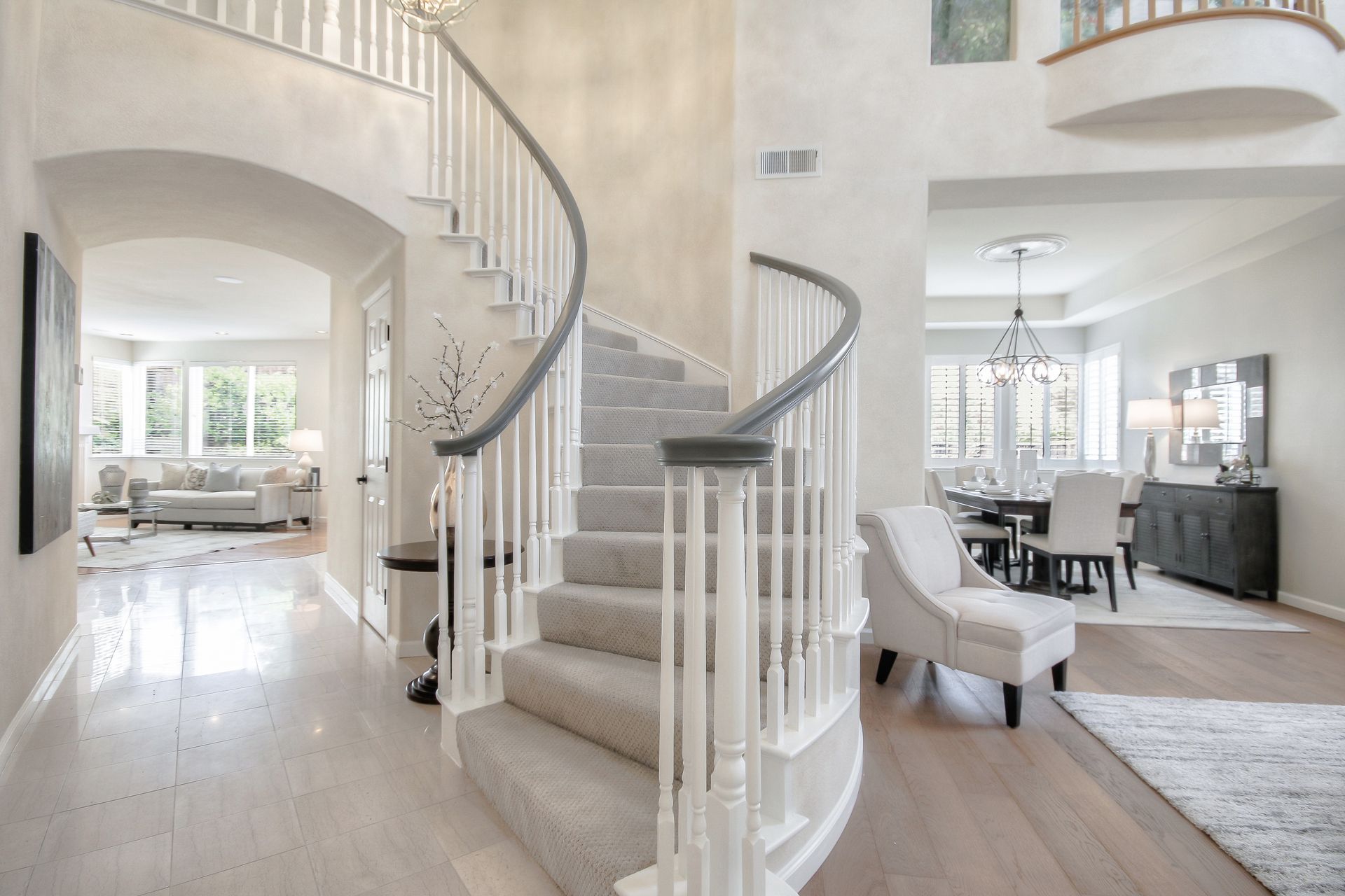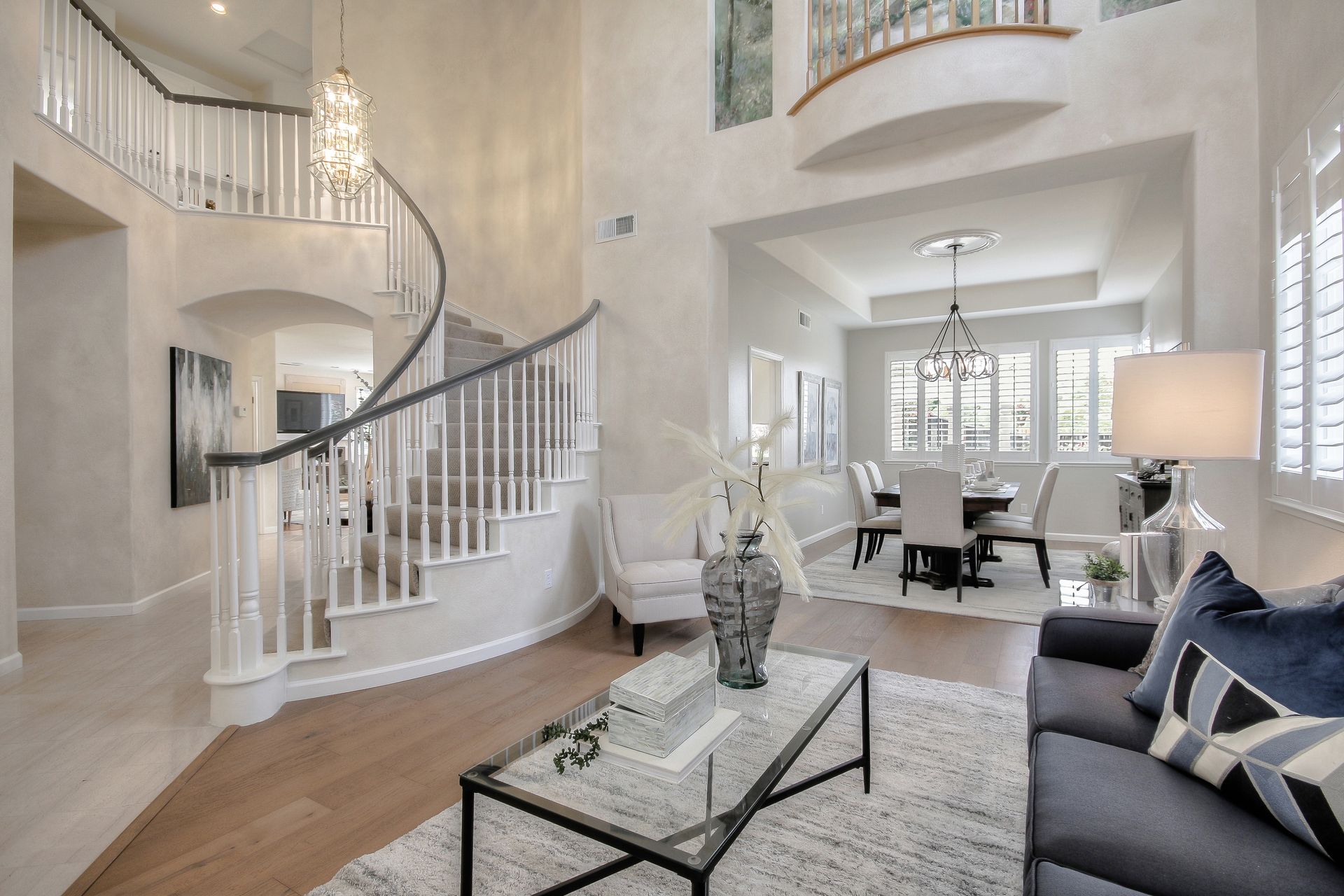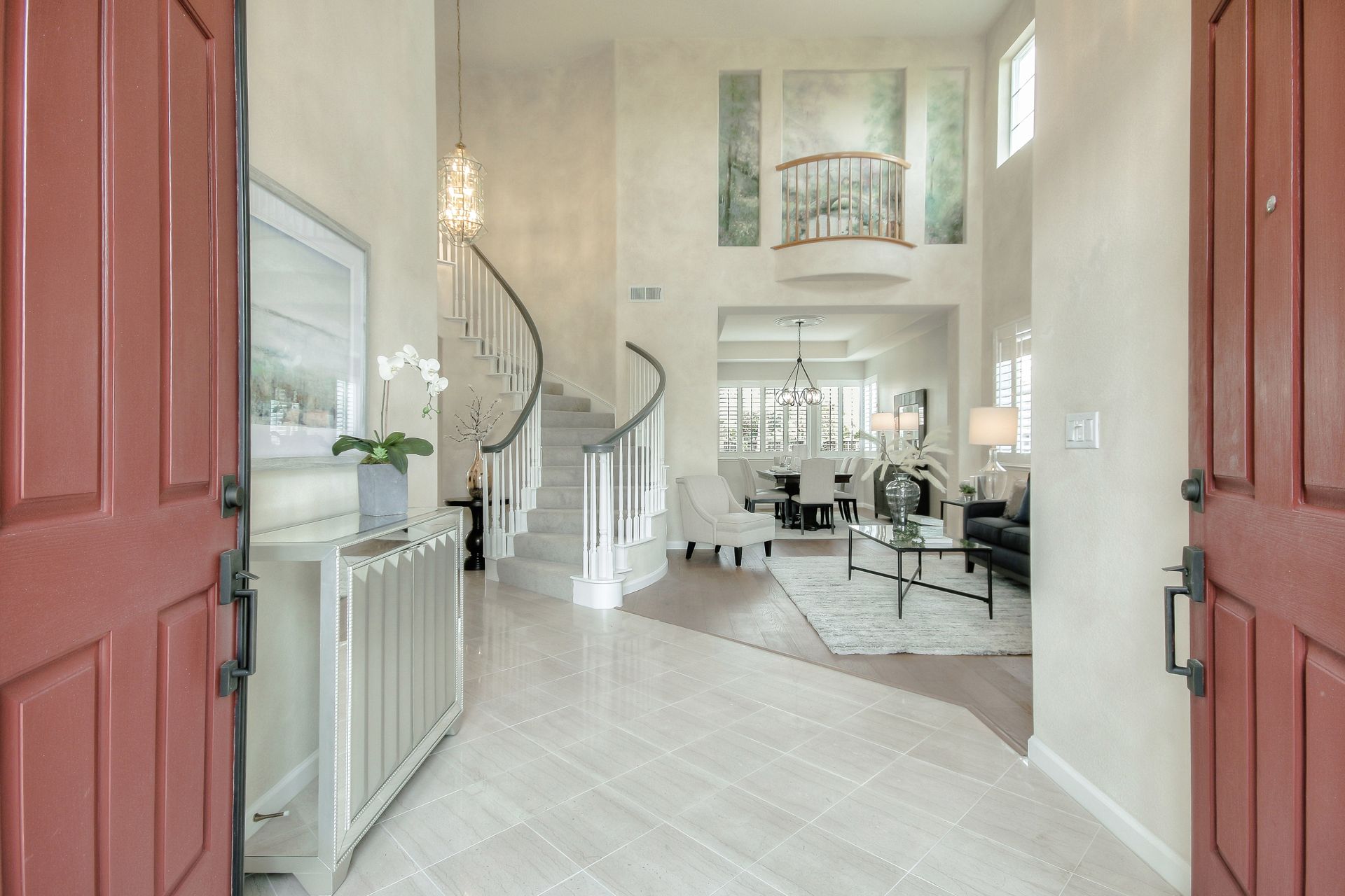 Ready to enjoy Mount Diablo views and executive Danville living? From the curb appeal of this EAST facing home, to the sought-after floorplan, to the backyard oasis, this home delivers! Soaring ceilings, curved staircase, clerestory windows, hardwood flooring and plantation shutters greet you as you enter. With four bedrooms (one bedroom/one bath on the first floor) and three full baths, there is room for everyone. The sparkling eat-in kitchen with white cabinetry, slab granite, gas cooktop, center island and walk-in pantry opens to the generously sized family room complete with cozy gas burning fireplace. The plethora of windows highlight the view of the private backyard with amazing water feature, multiple seating areas, professional landscaping and Mount Diablo views! Upstairs find the spacious ensuite master with private retreat and two bedrooms which share a dual bath. All bedrooms offer recently installed carpeting. Award-winning schools, close to Blackhawk shops and entertainment make this a very special place to live! OWNED solar system! Come and experience for yourself! You just may decide not to leave!