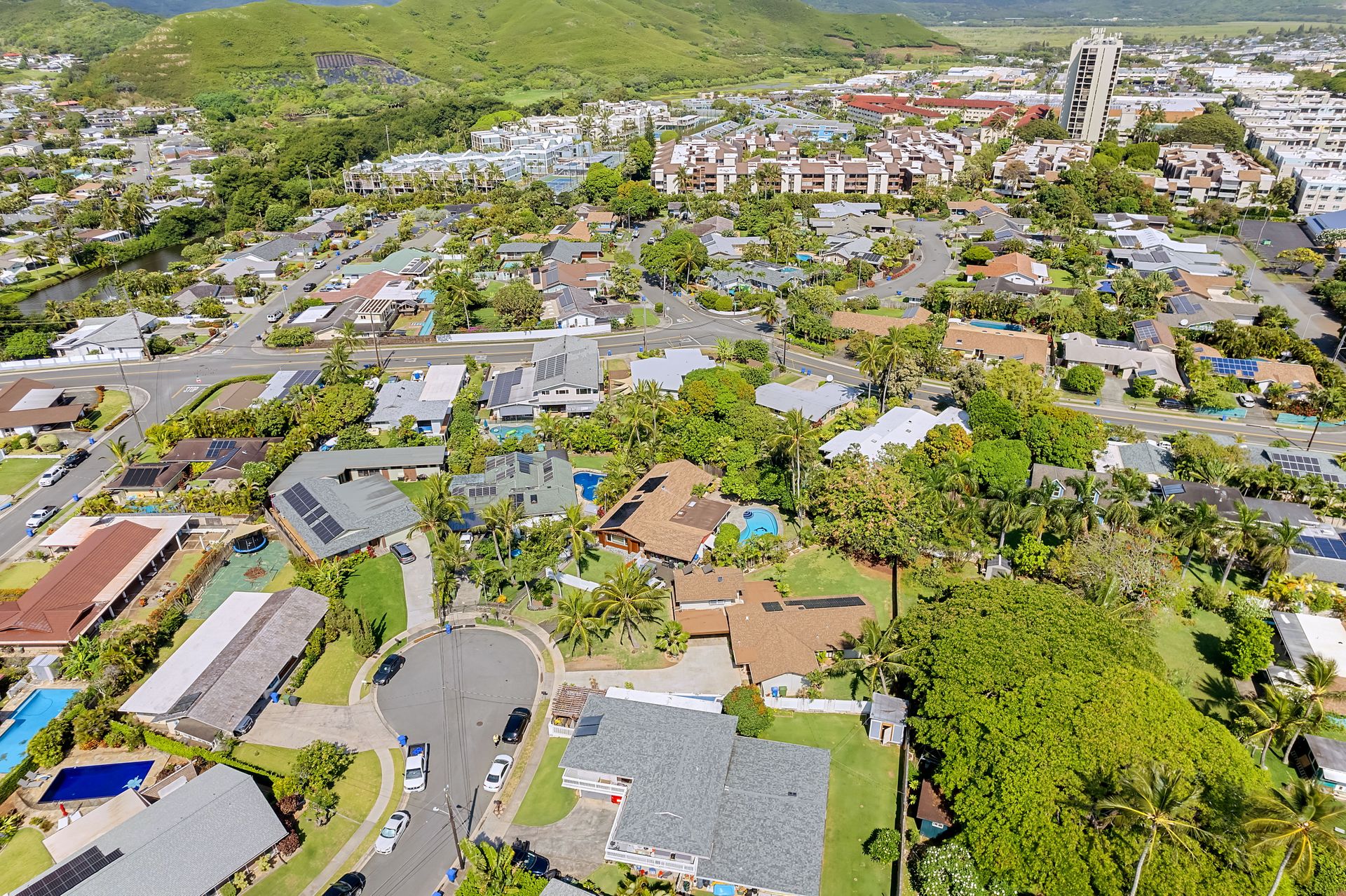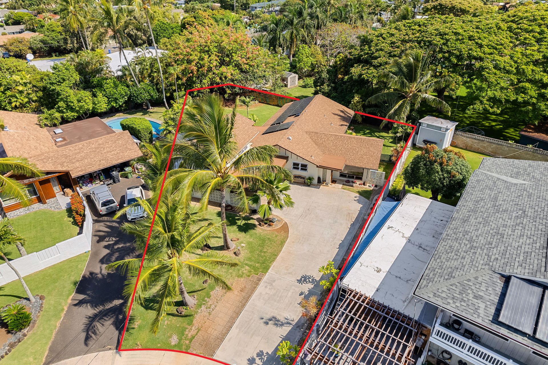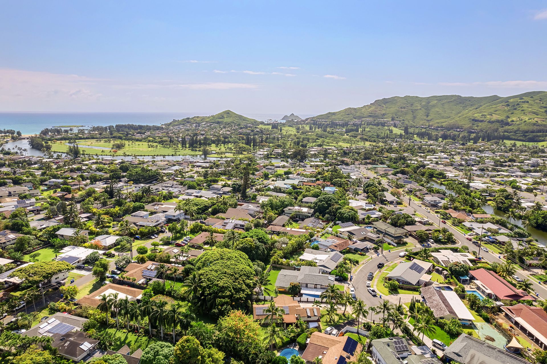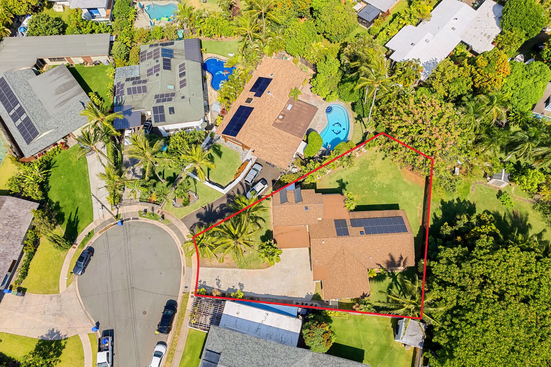 Fabulous location and absolutely charming! Rarely available cul-de-sac location in area of custom homes. This peaceful serene neighborhood is nestled just a short distance to world famous Kailua Beach and trendy Kailua Town. Nicely tucked back from the road, this four bedroom two and one-half bath home offers gracious Hawaiian living with a wonderful open floor plan that naturally flows to the spacious outdoors (10,398 square foot lot). Features include a separate recreation room above carport, solar hot water, 20 owned PV panels w/net energy metering agreement, freshly painted interior, workshop and separate laundry room off carport, and so much more! This is the Kailua Lifestyle at its best! Must see! Home warranty included.