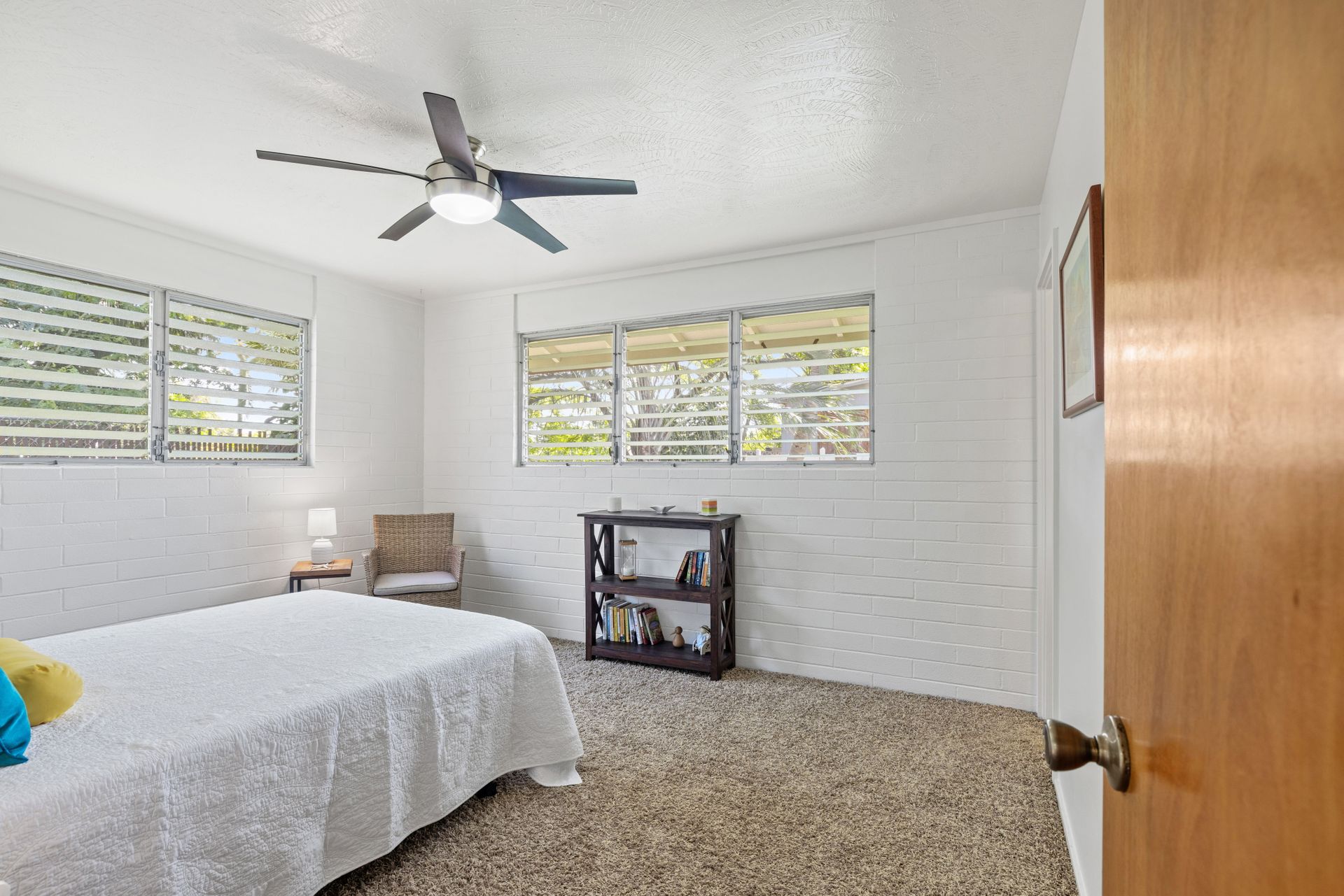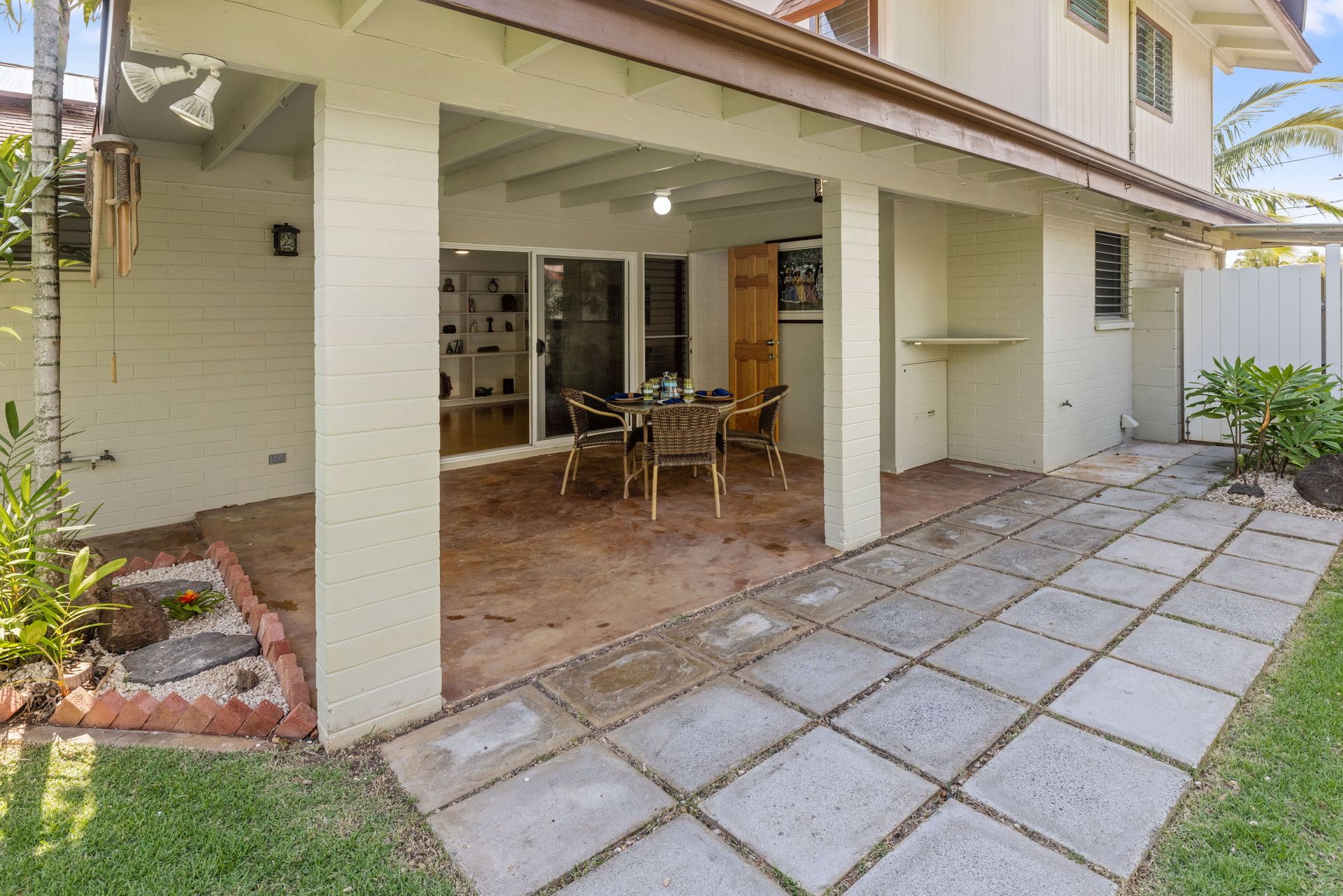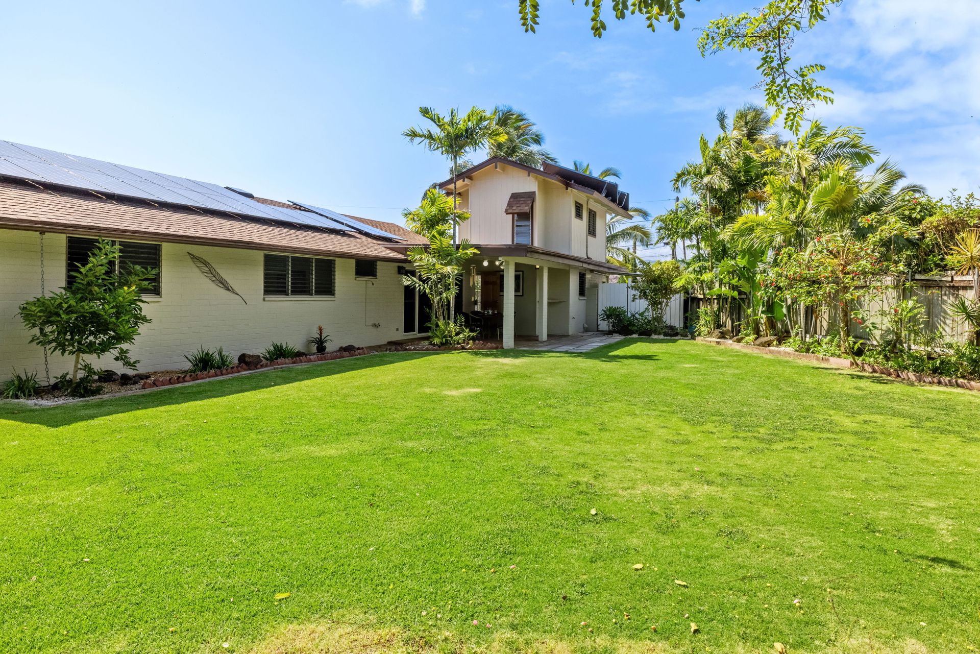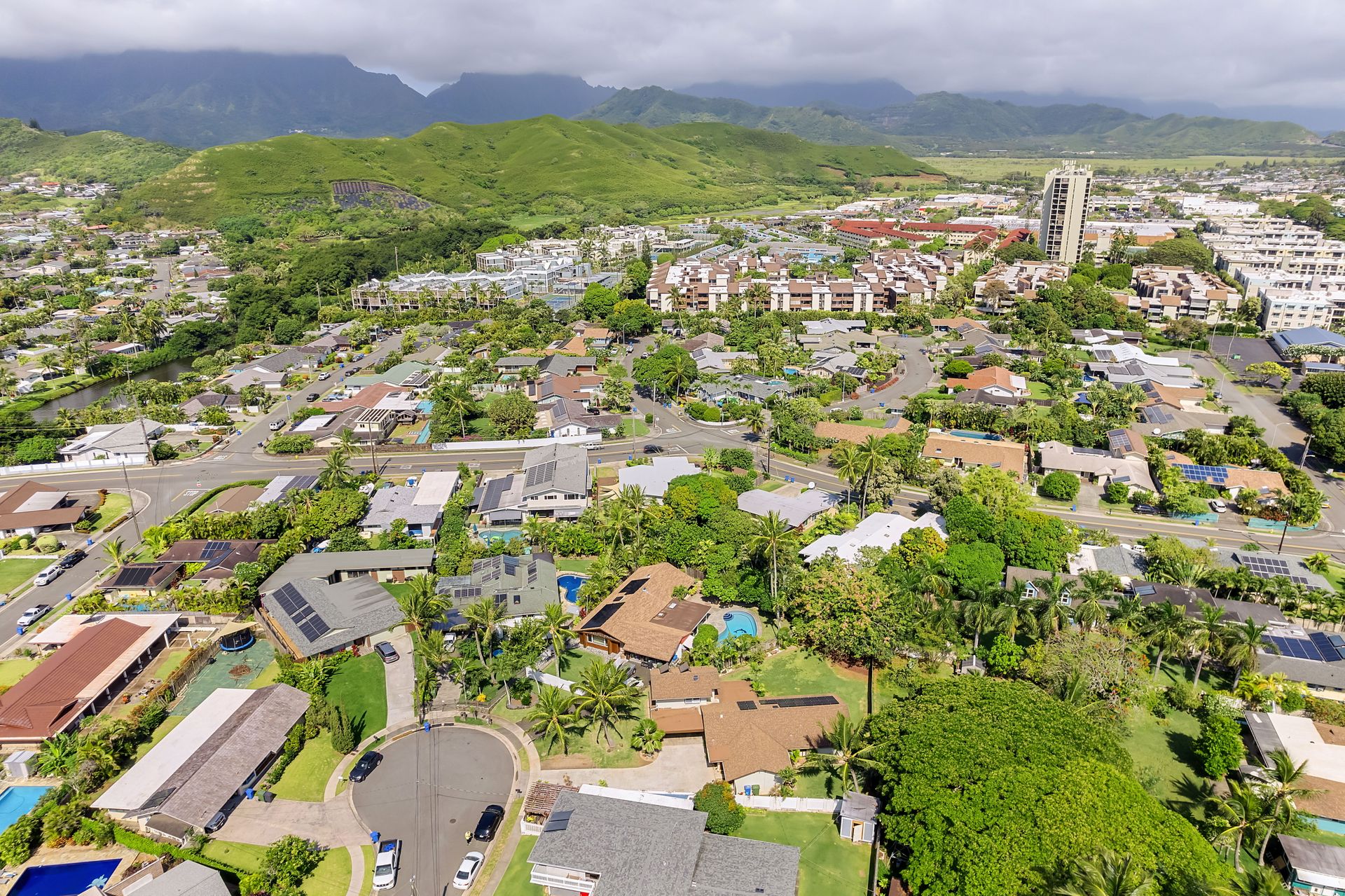 Fabulous location and absolutely charming! Rarely available cul-de-sac location in area of custom homes. This peaceful serene neighborhood is nestled just a short distance to world famous Kailua Beach and trendy Kailua Town. Nicely tucked back from the road, this four bedroom two and one-half bath home offers gracious Hawaiian living with a wonderful open floor plan that naturally flows to the spacious outdoors (10,398 square foot lot). Features include a separate recreation room above carport, solar hot water, 20 owned PV panels w/net energy metering agreement, freshly painted interior, workshop and separate laundry room off carport, and so much more! This is the Kailua Lifestyle at its best! Must see! Home warranty included.